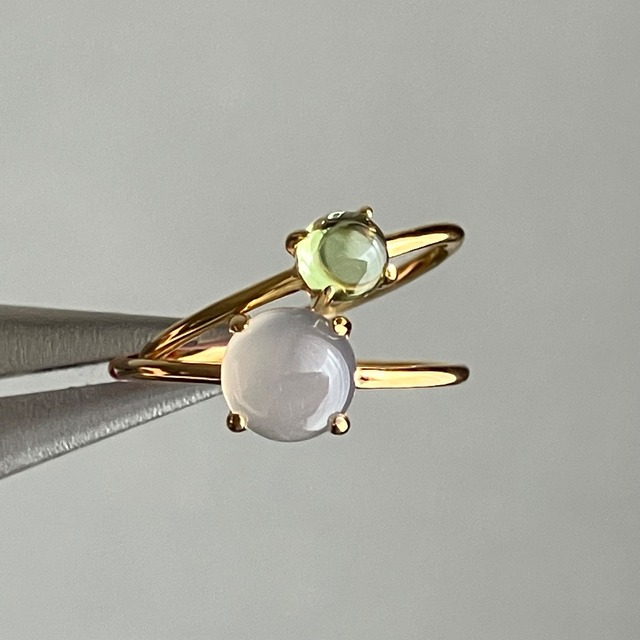 ペリドットとグレーオニキス(カルセドニー)のリングセットです。 (ペリドット4mm、グレーオニキス6mm) (SILVER925製・18kgp仕上げ) ※ ロジウムメッキタイプ(シルバー色)もご案内可能です。 ※フリーサイズ・7・9・11・13・15号承ります。 商品オプションよりご選択ください_φ(・v・ (画像はフリーサイズのサンプルです) ※天然石を使用したハンドメイドの為、クラックや不揃いな部分があります。