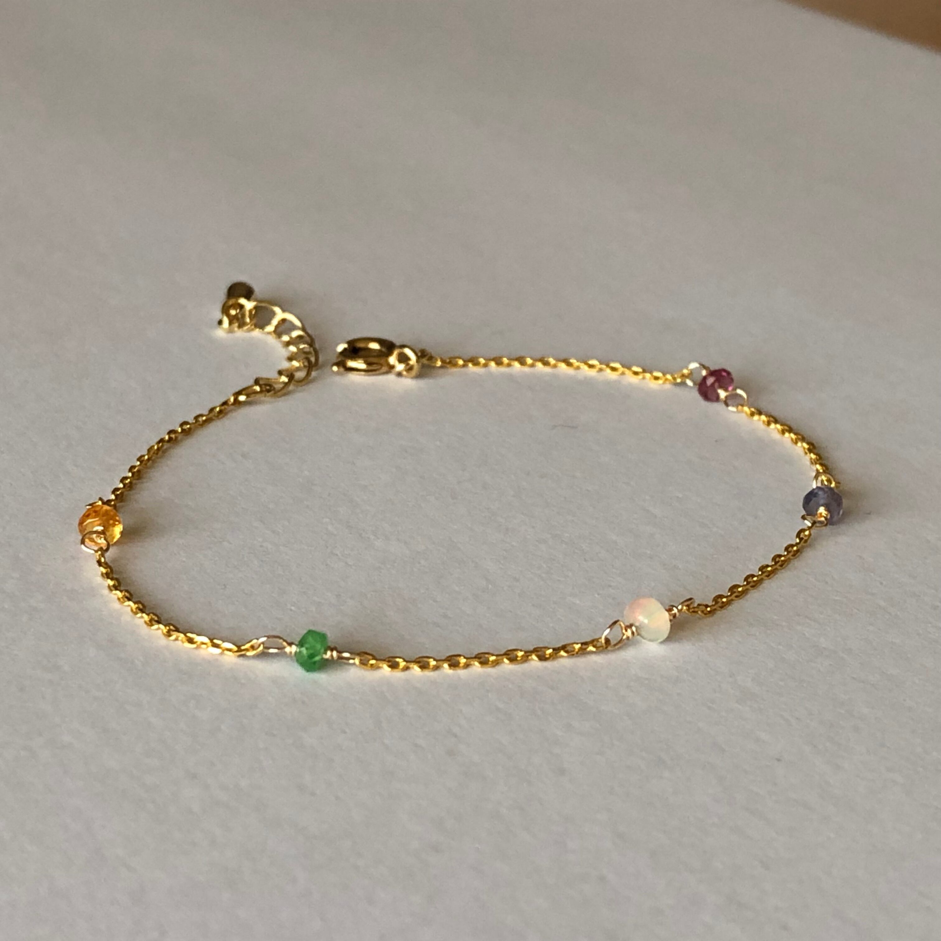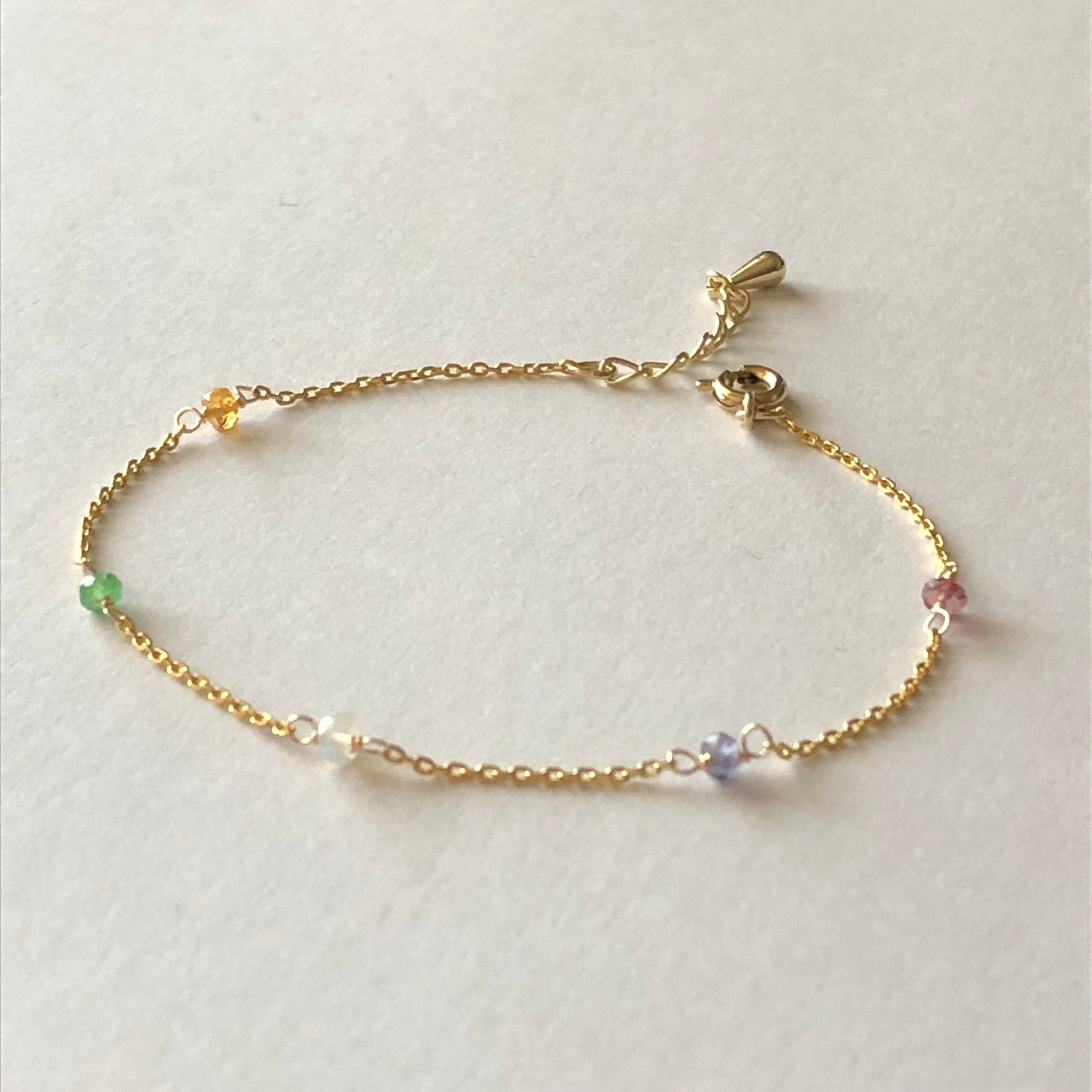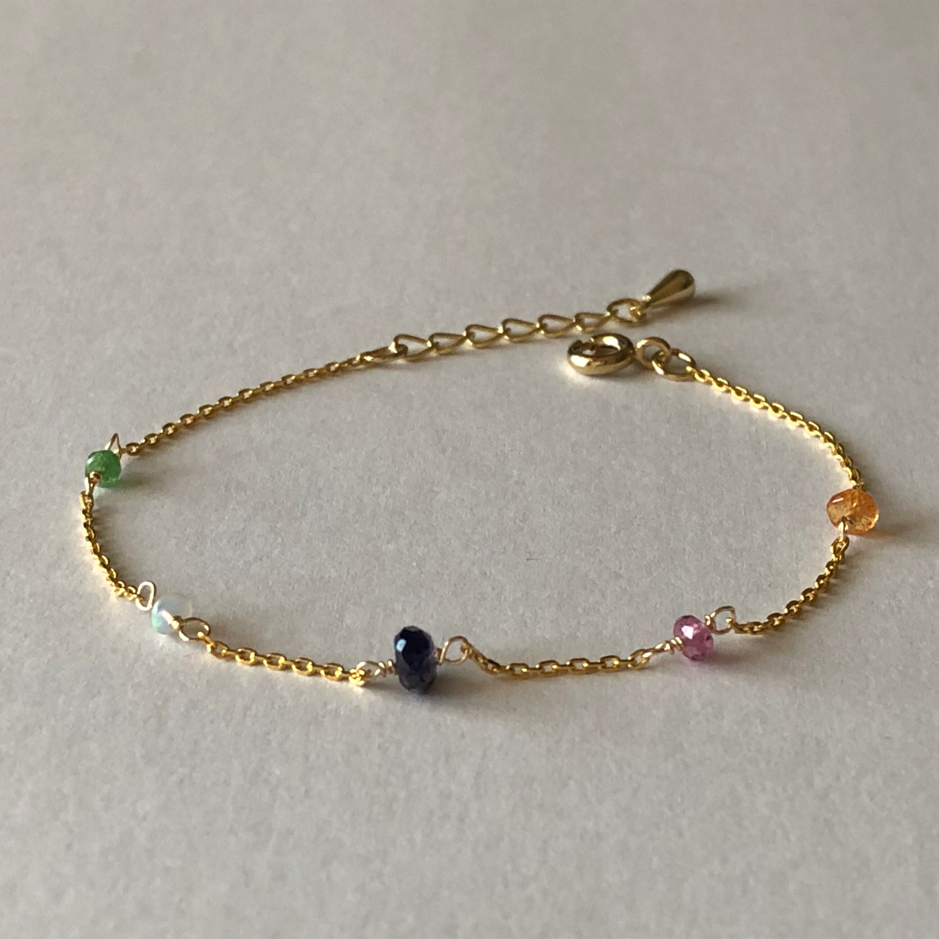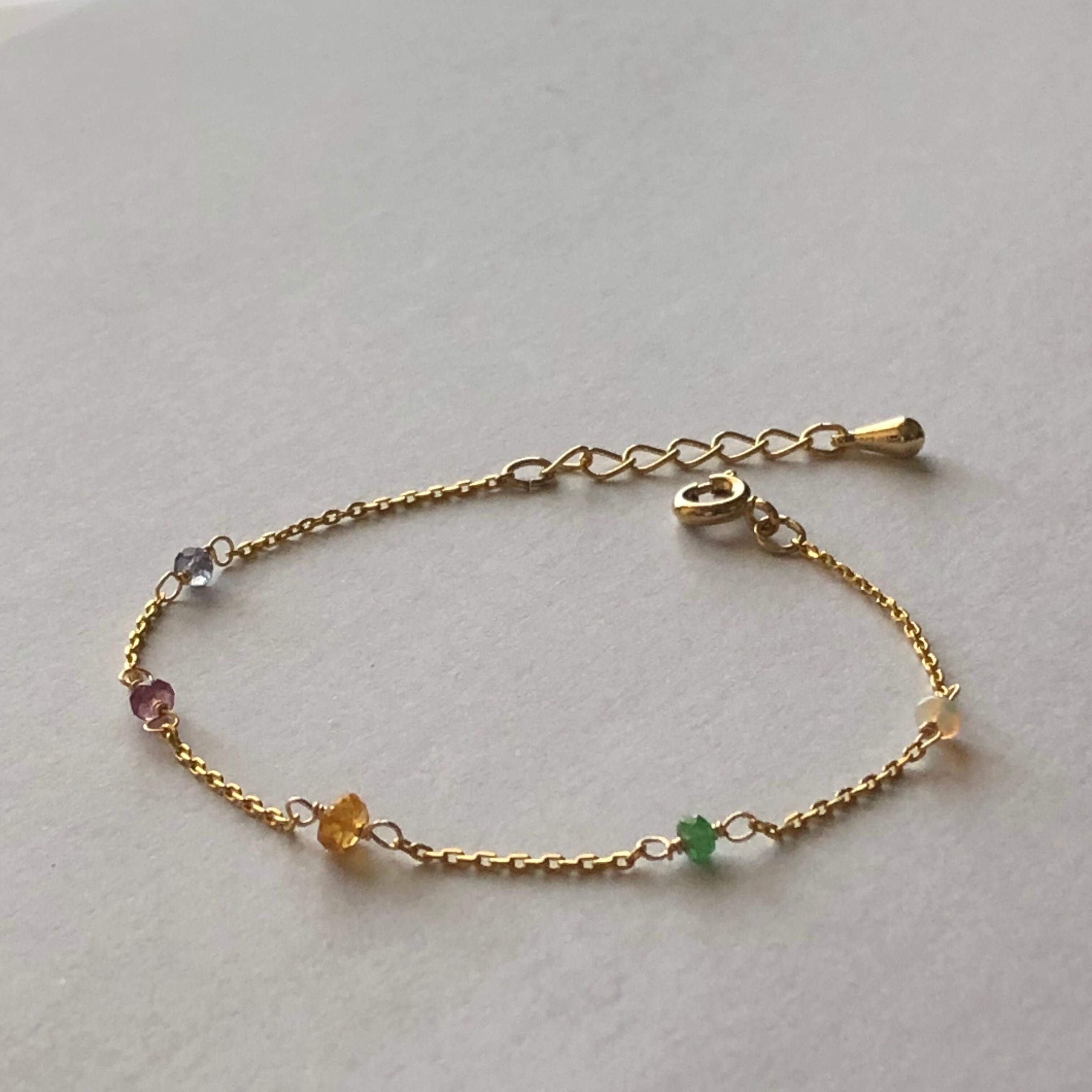 5種類のストーンを散りばめたステーションタイプのブレスレットです。