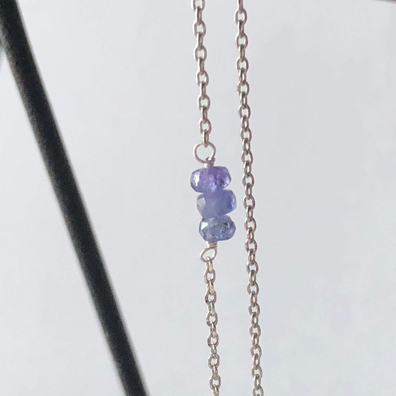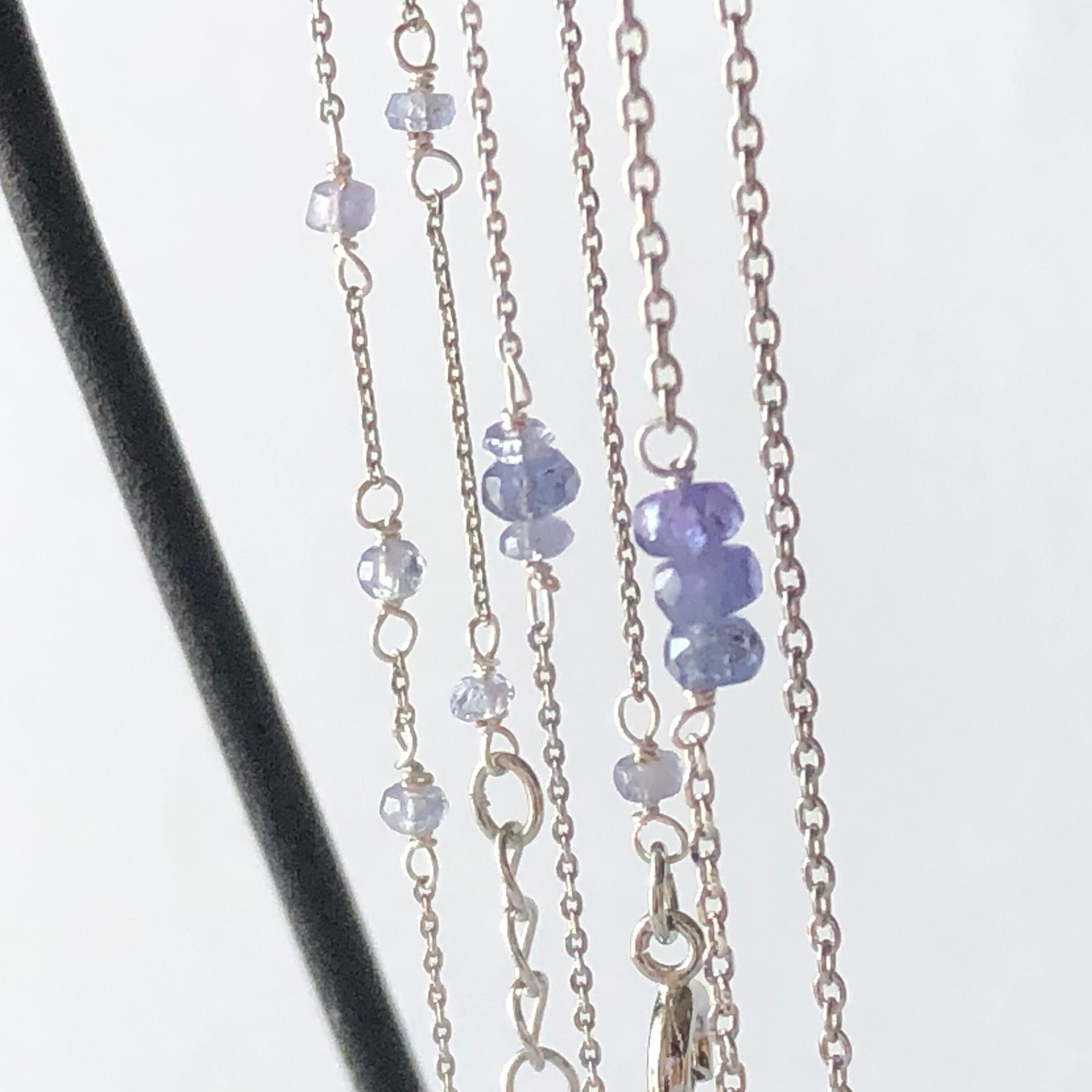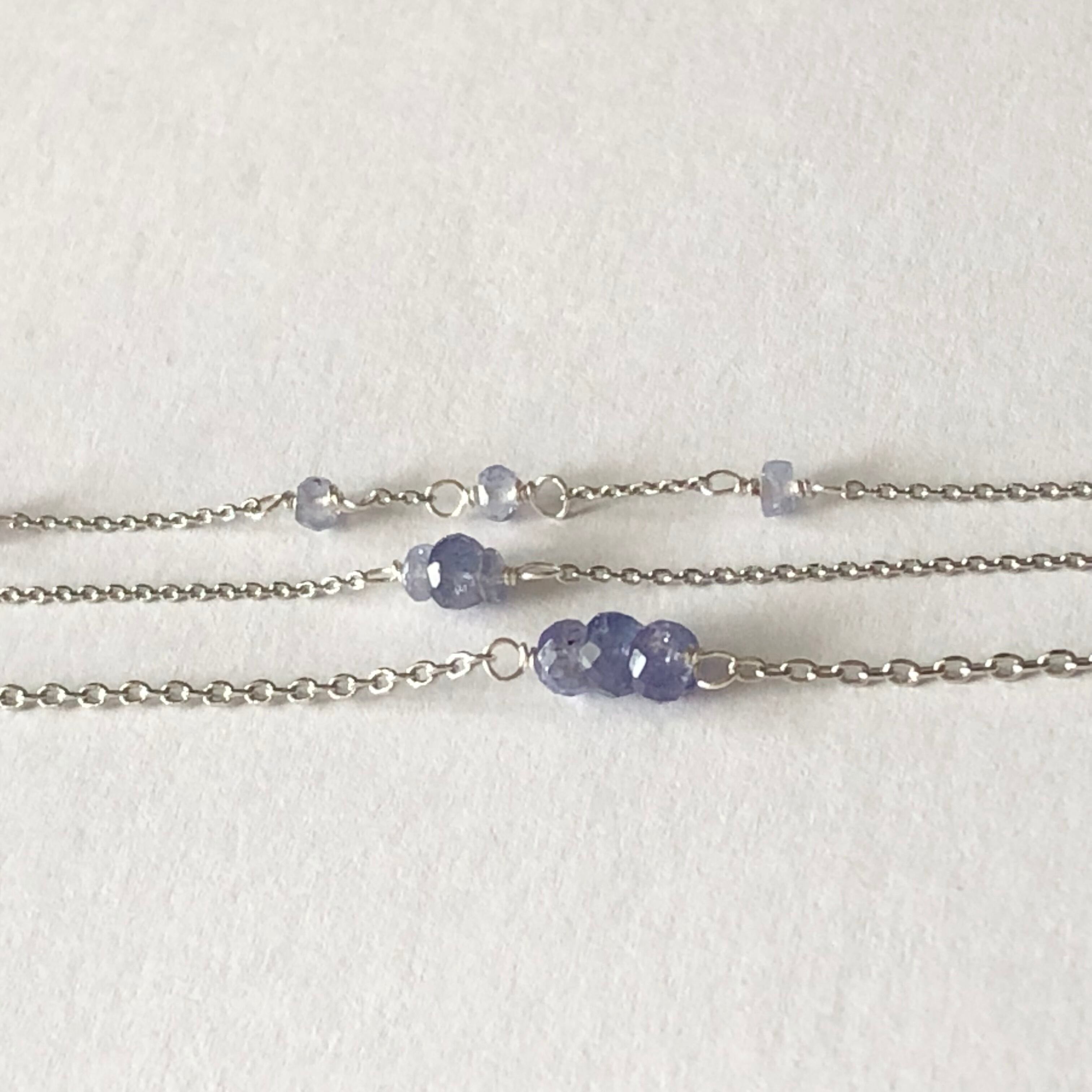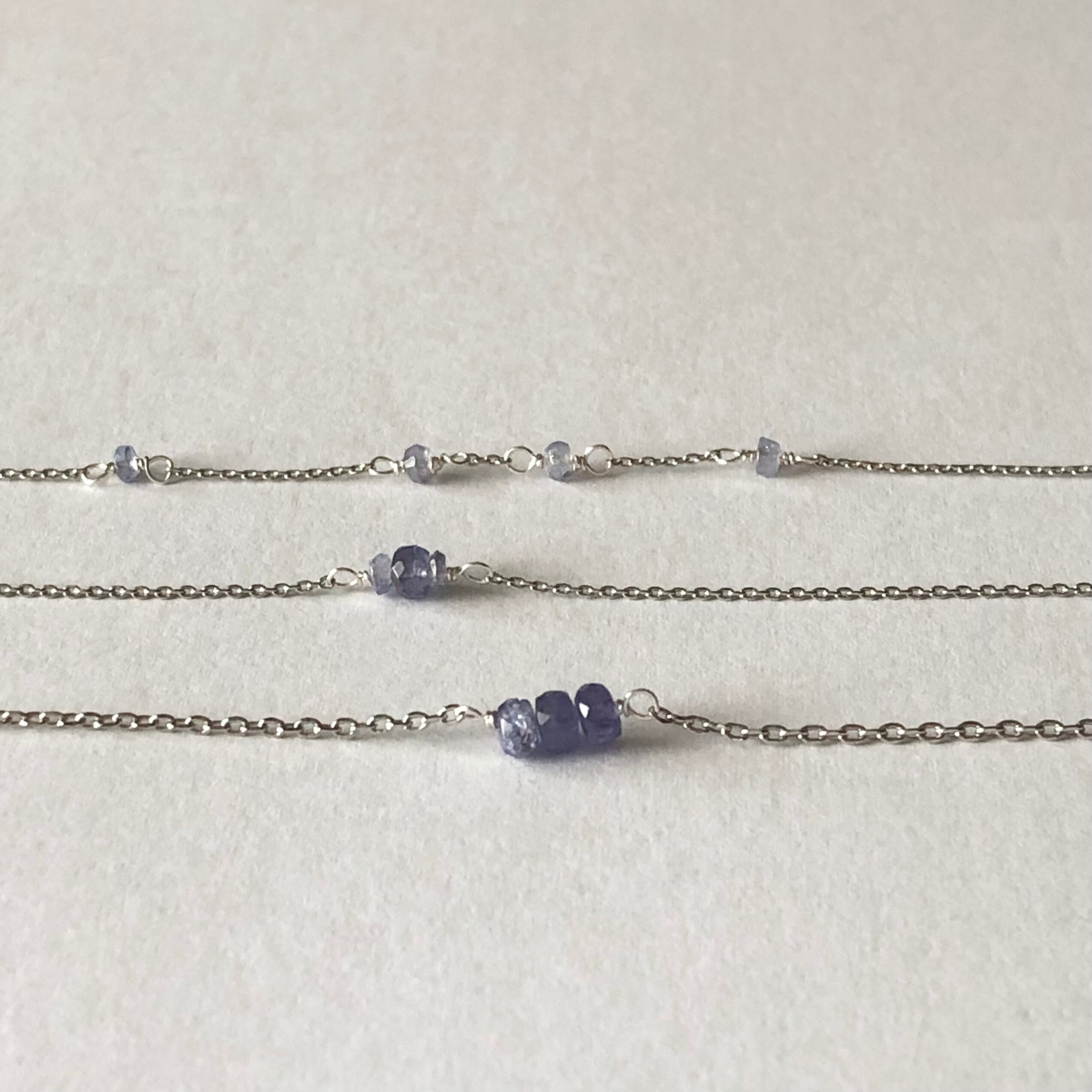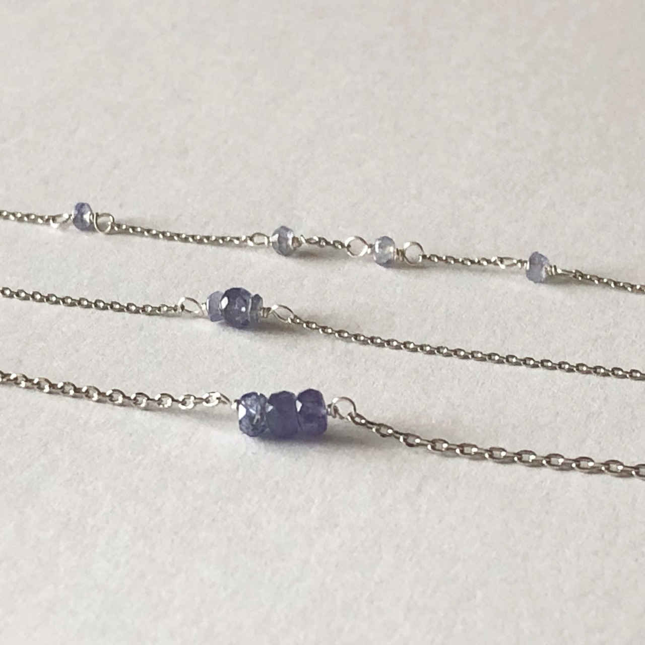 シルバーカラーのチェーンとブルー〜バイオレットの淡い色が夏に涼しいタンザナイトのブレスレットセットです。