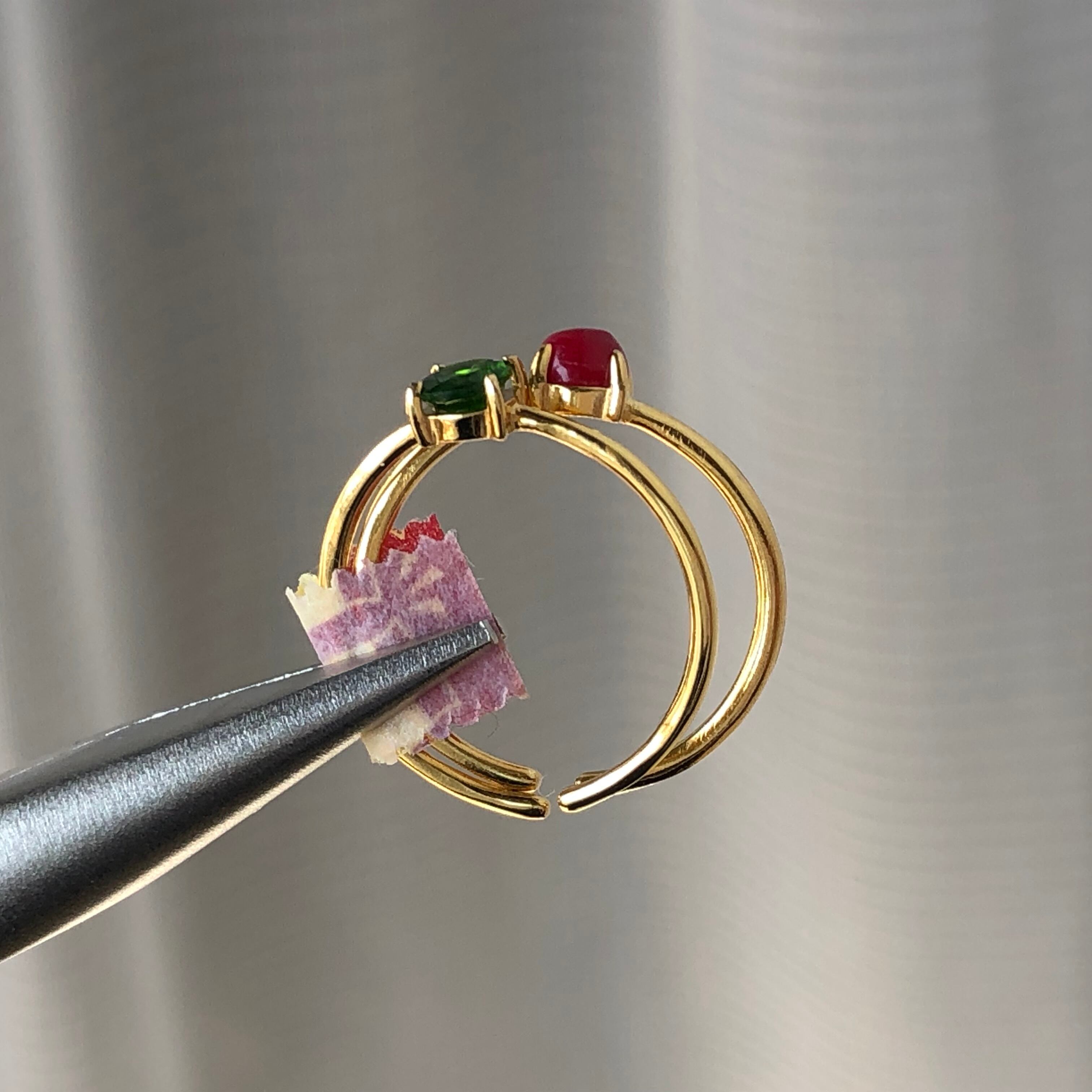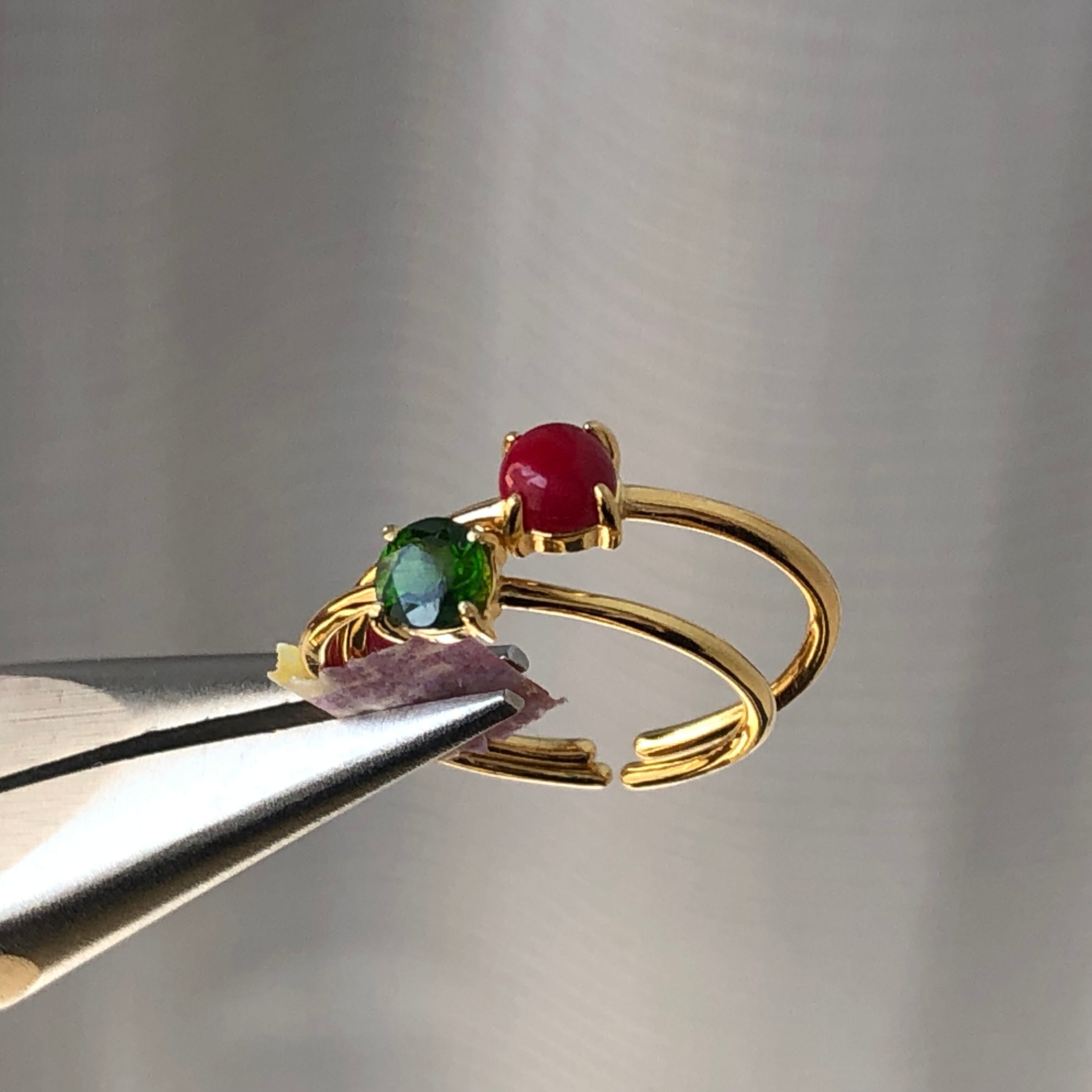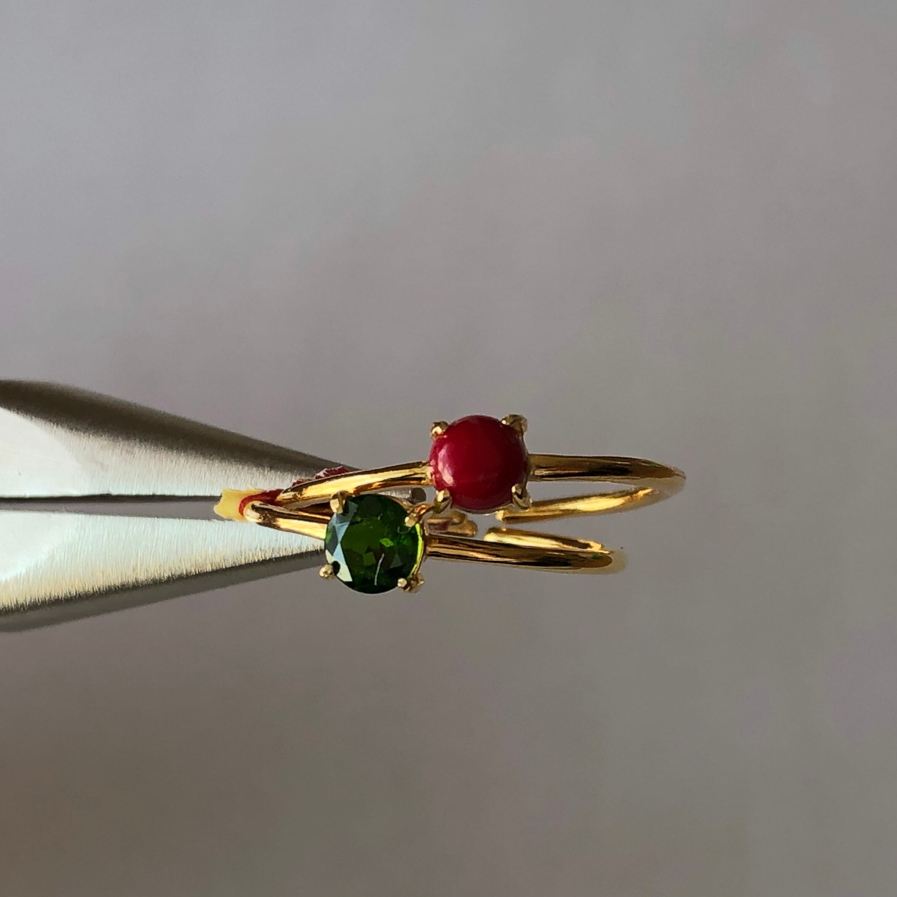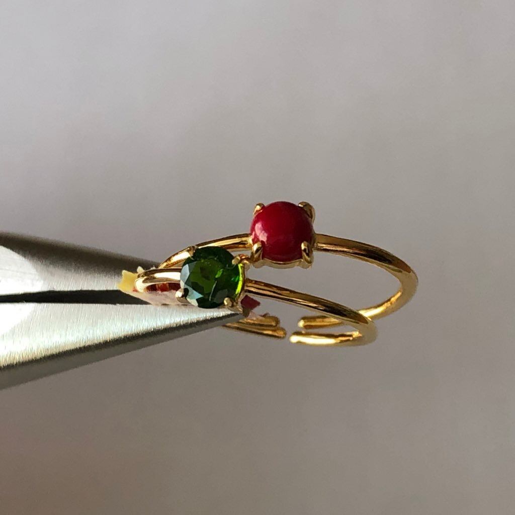 (レッドコーラル4mm、クロムダイオプサイド4mm)