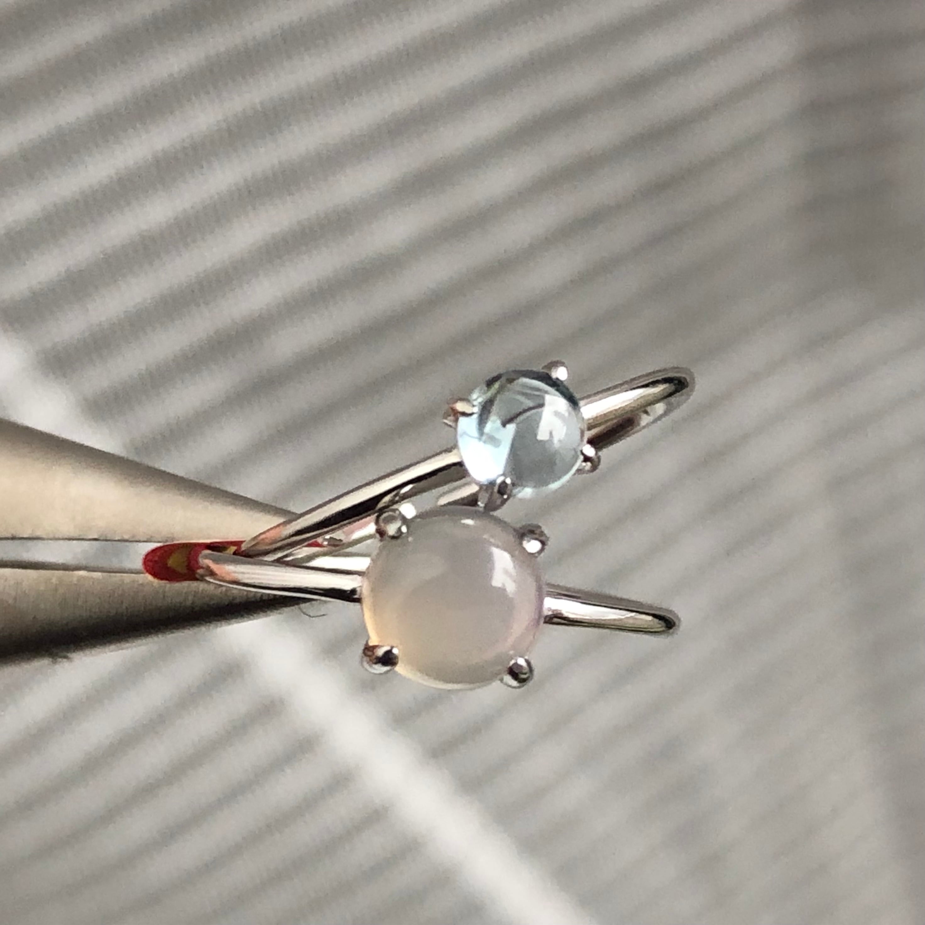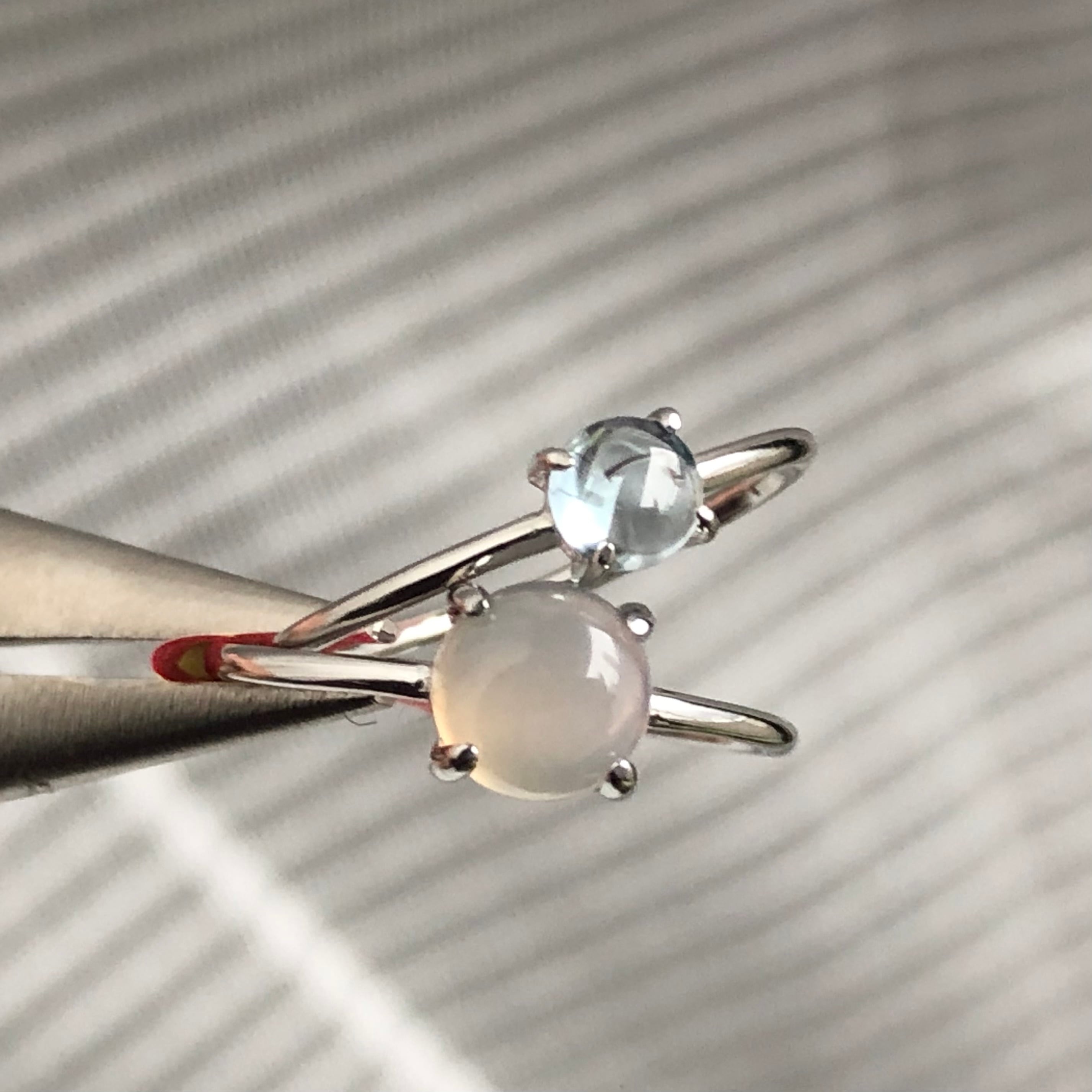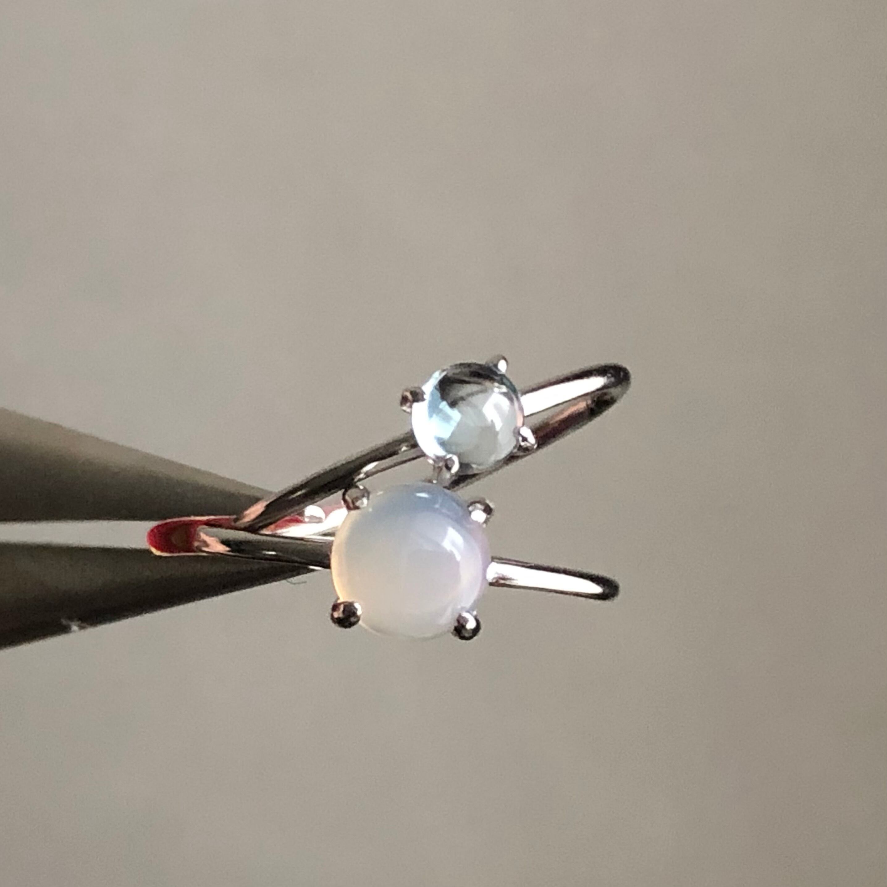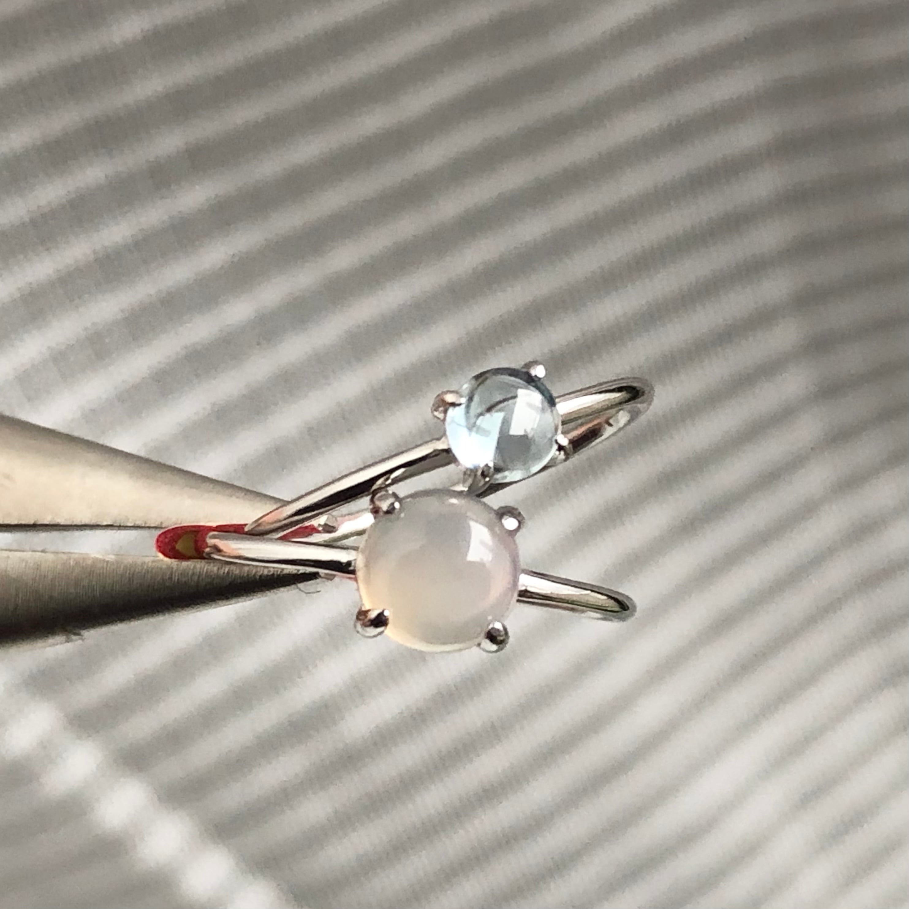 グレーオニキスとブルートパーズのリングセットです。