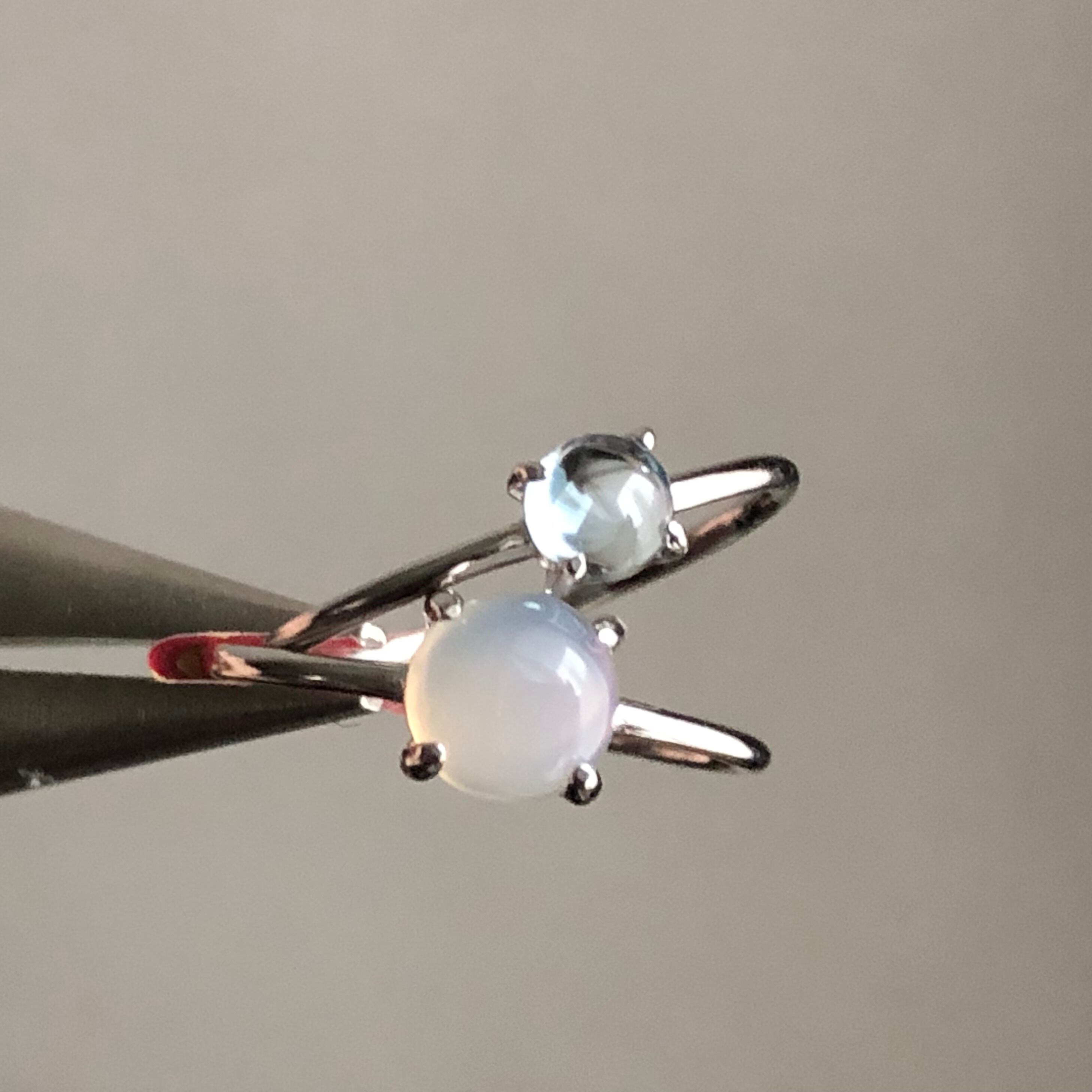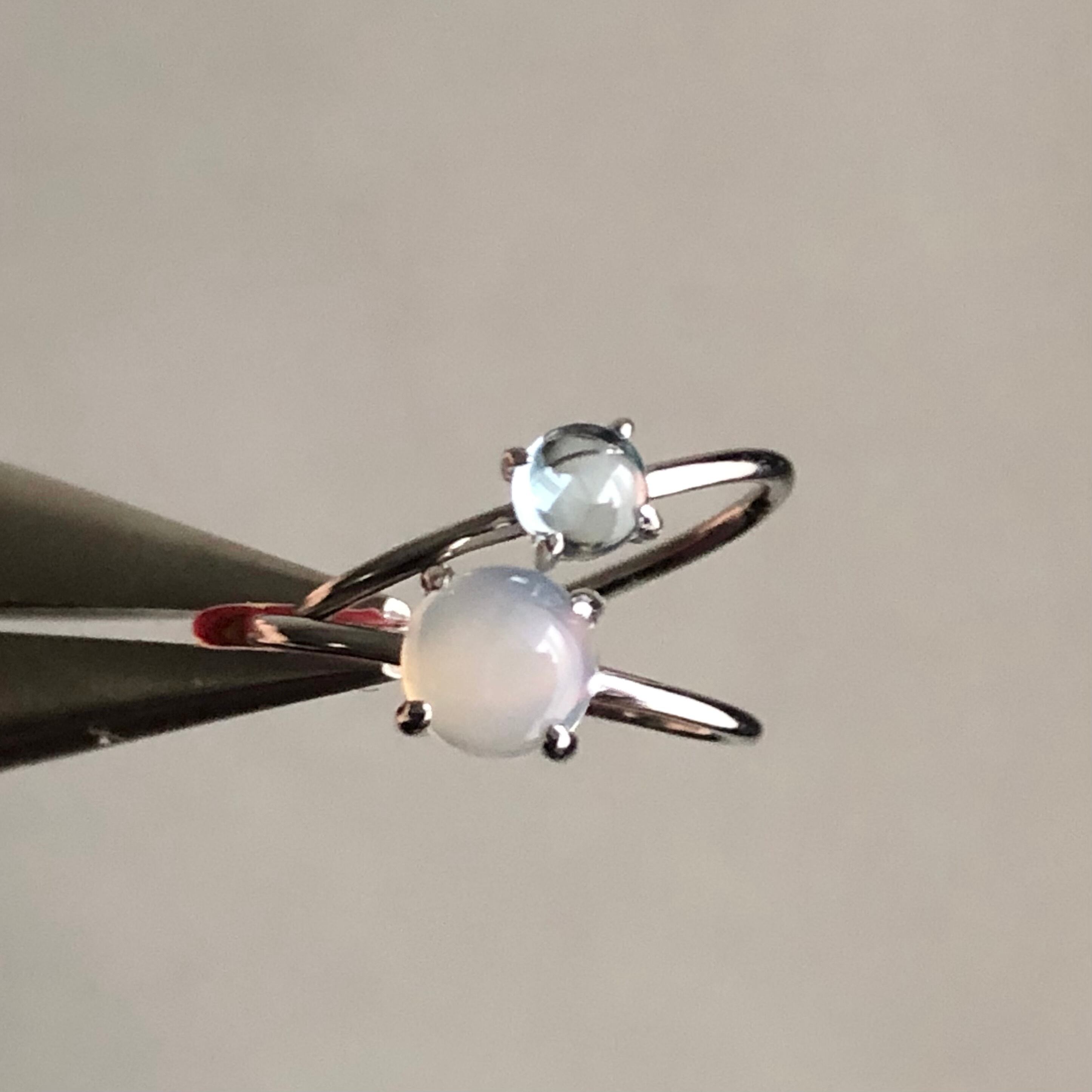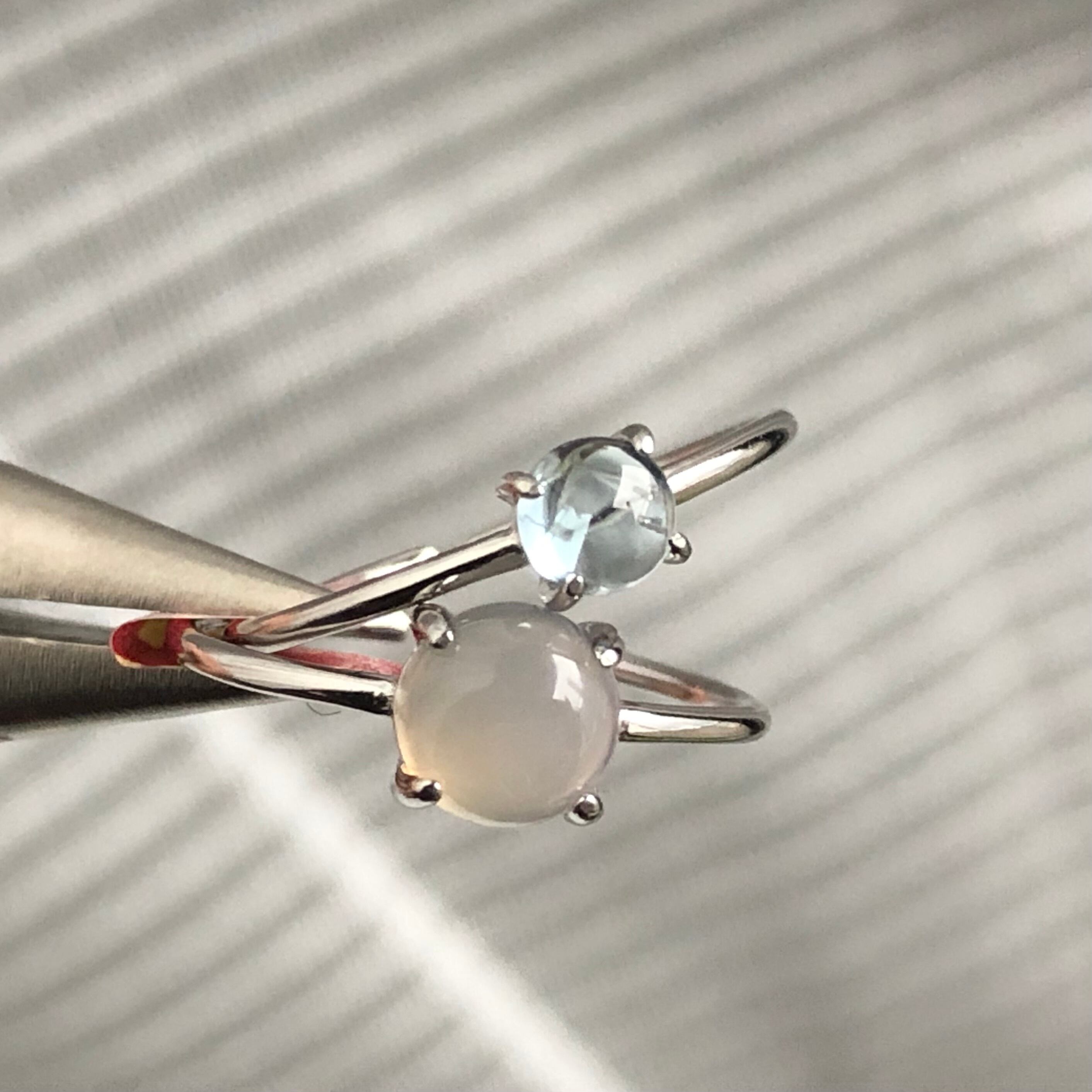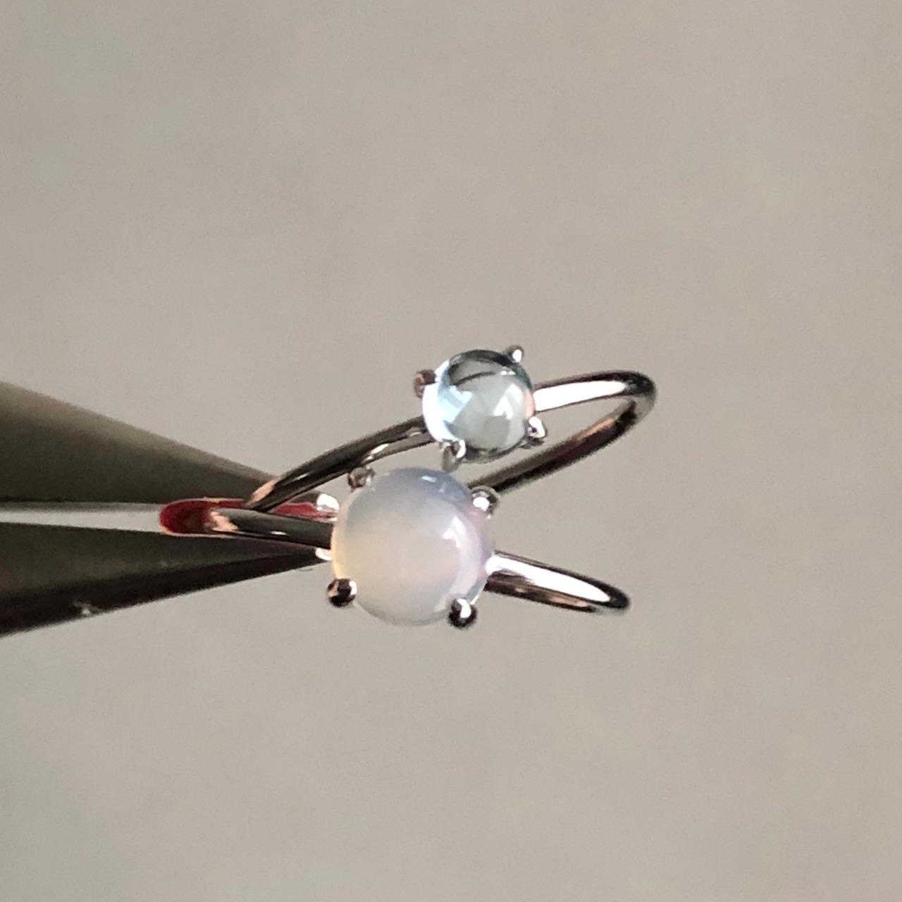 グレーオニキスとブルートパーズのリングセットです。