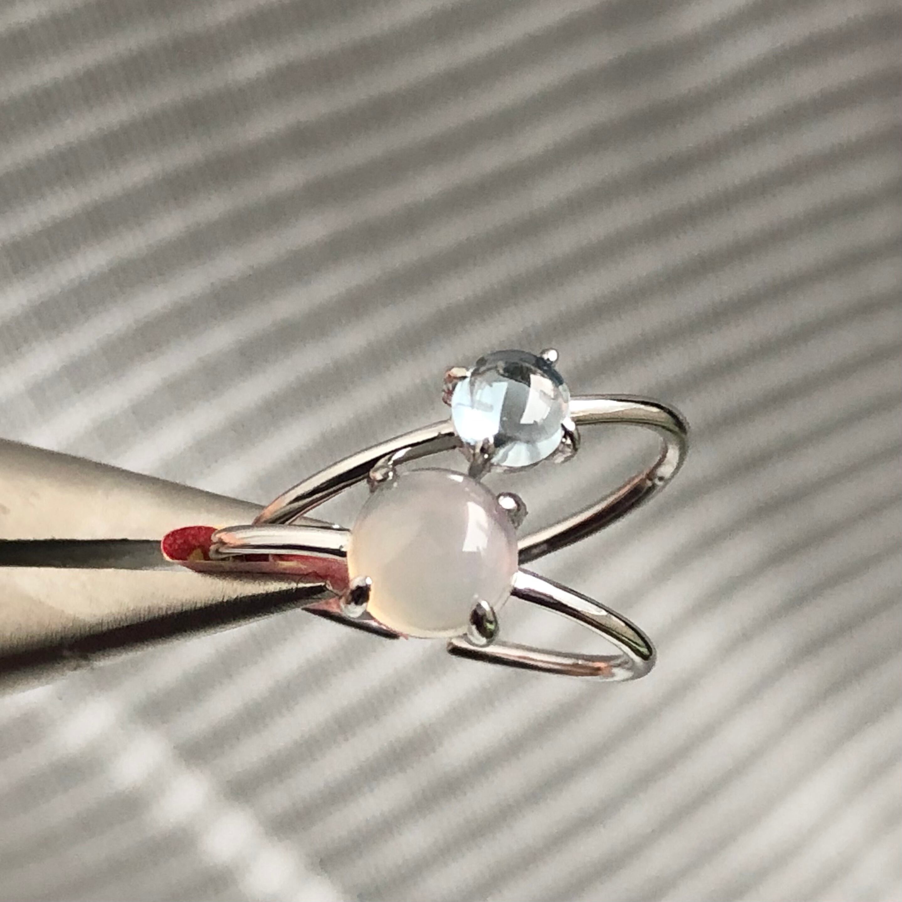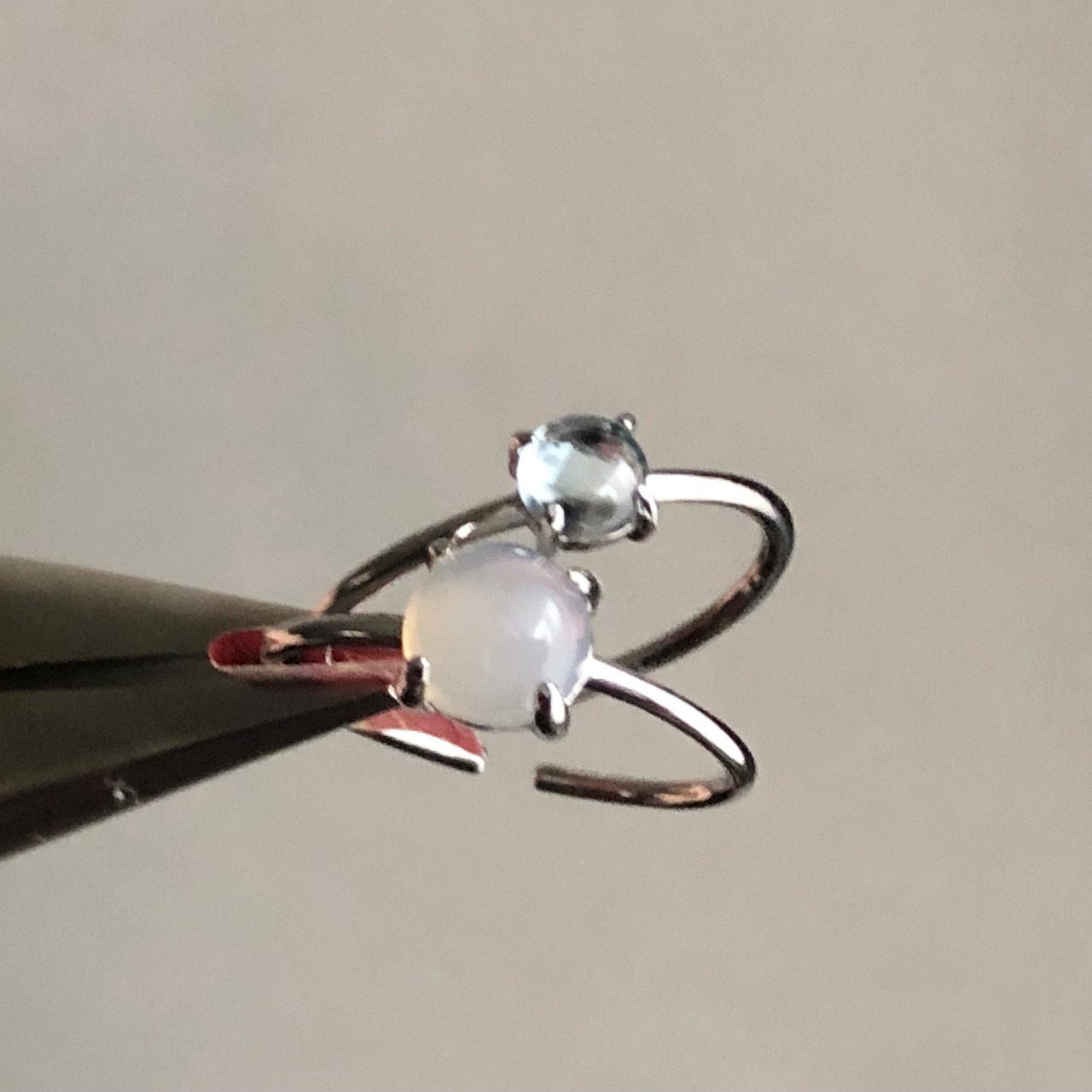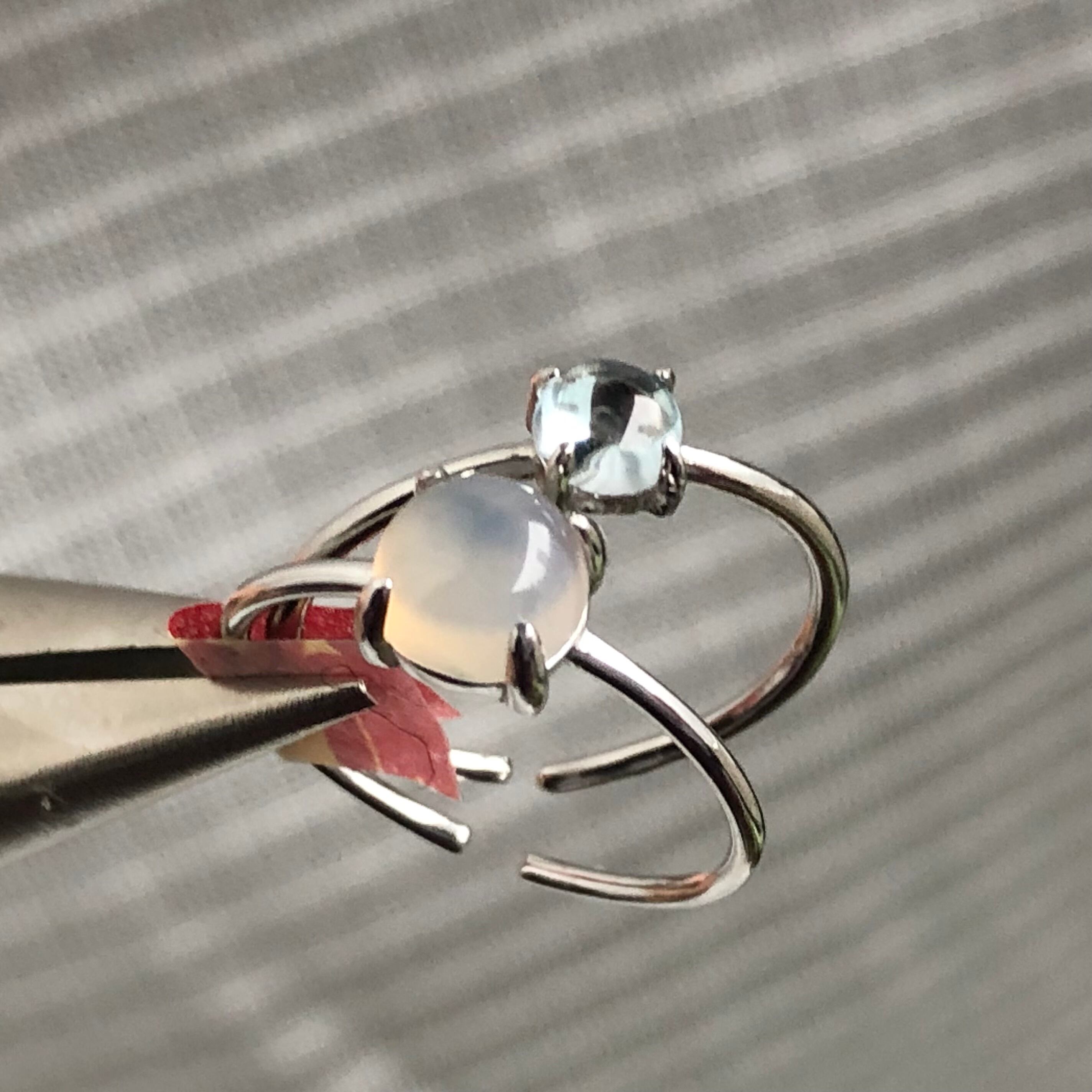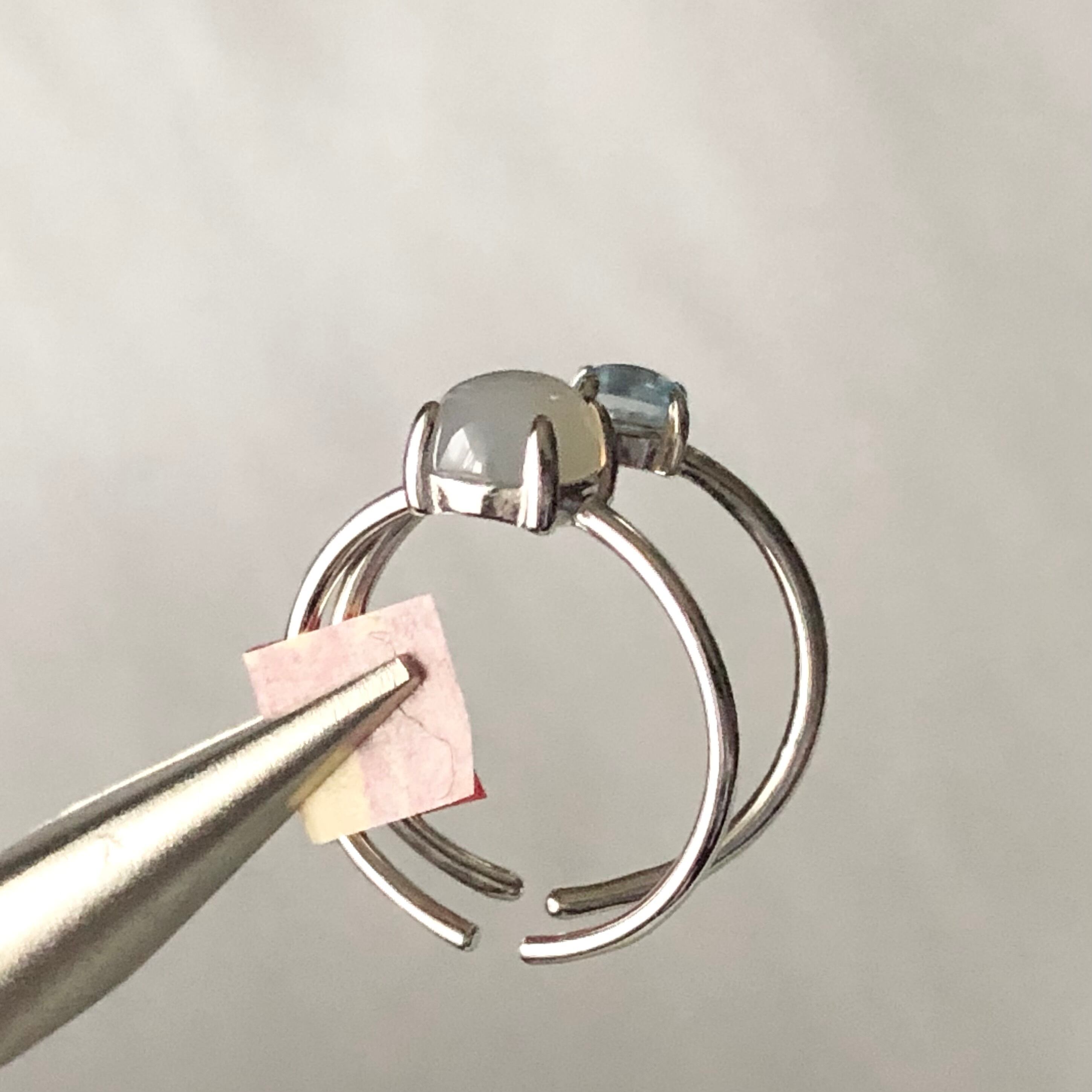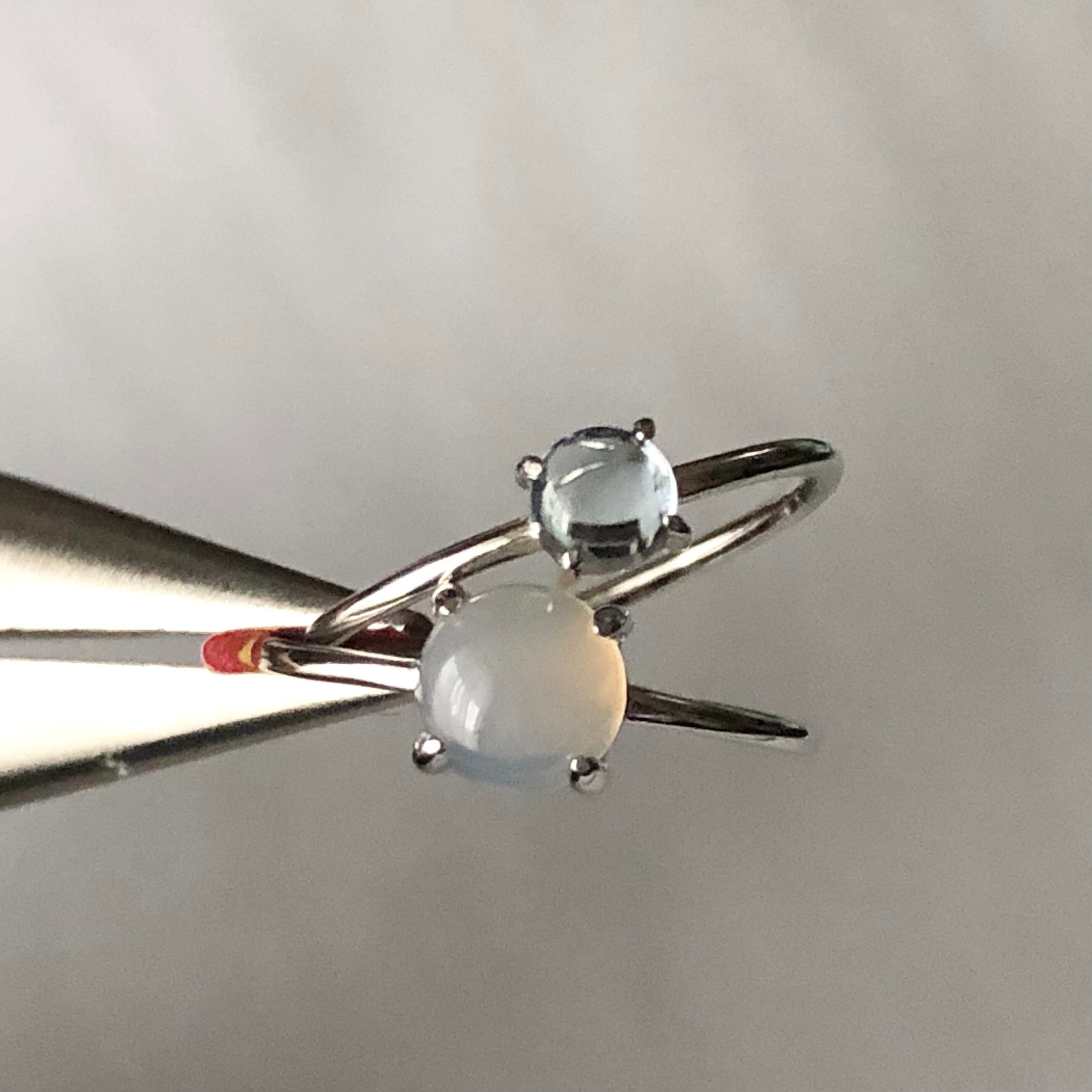 グレーオニキスとブルートパーズのリングセットです。