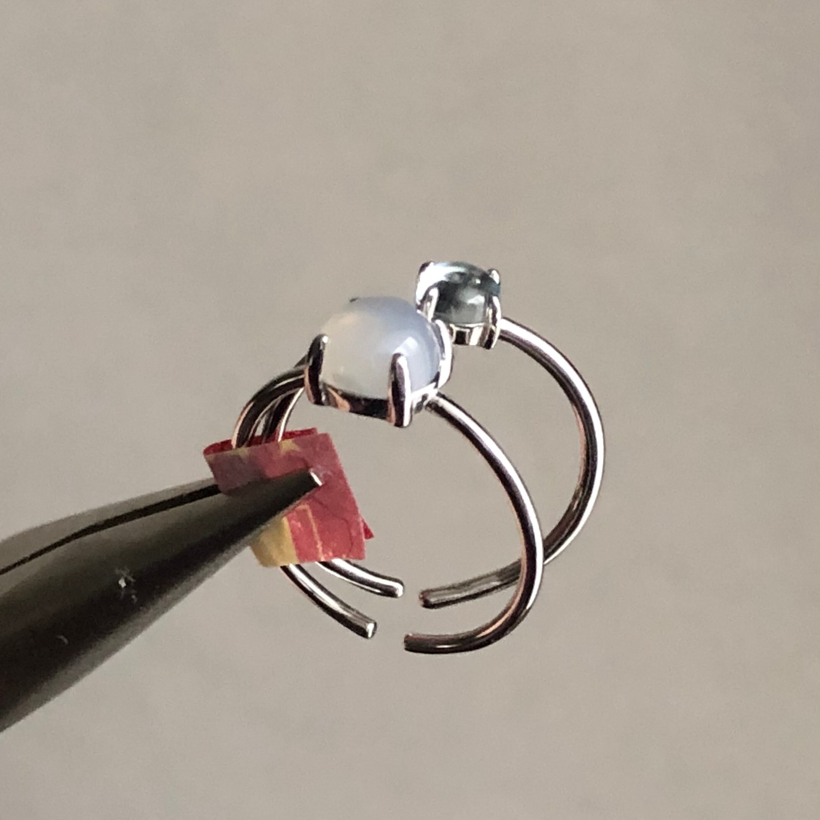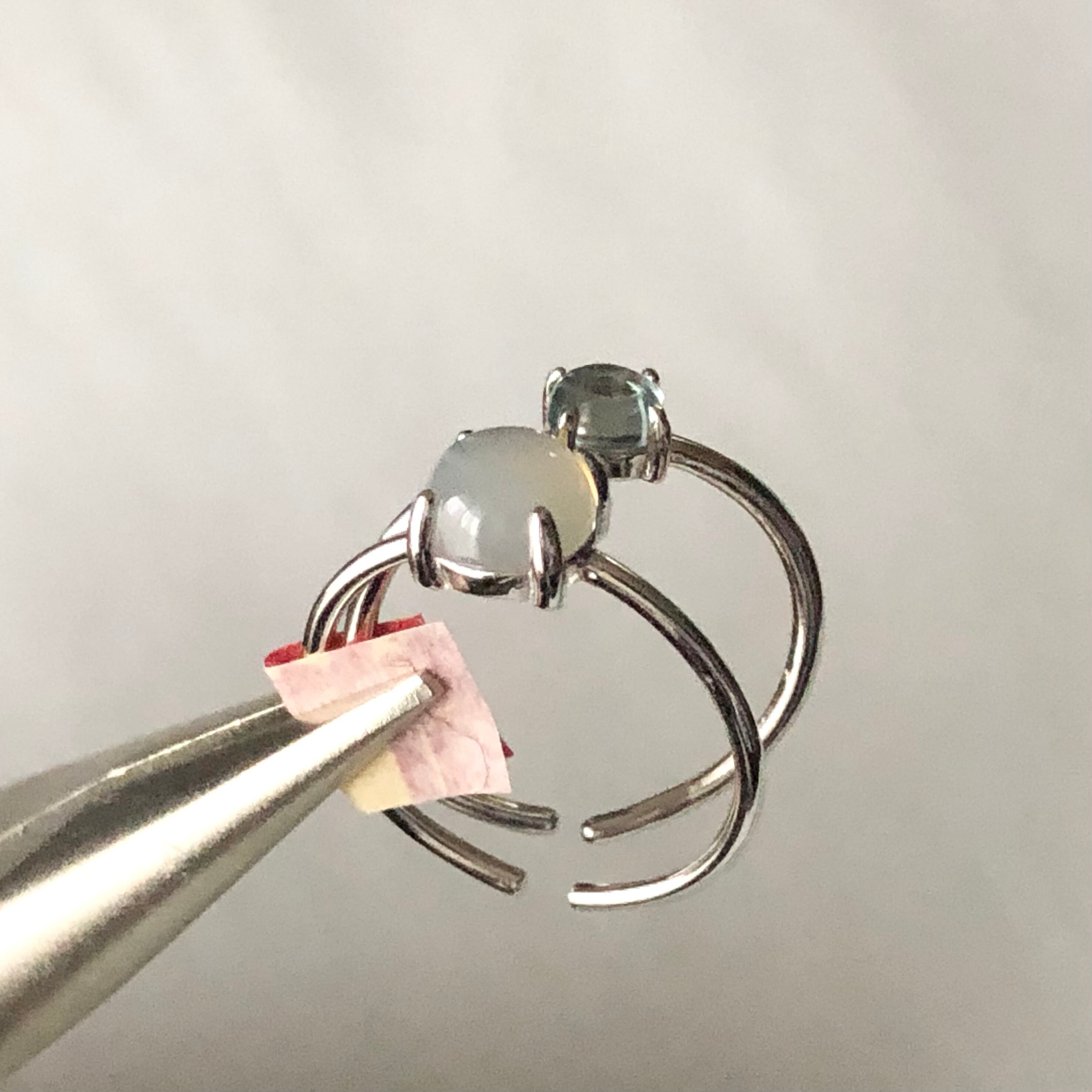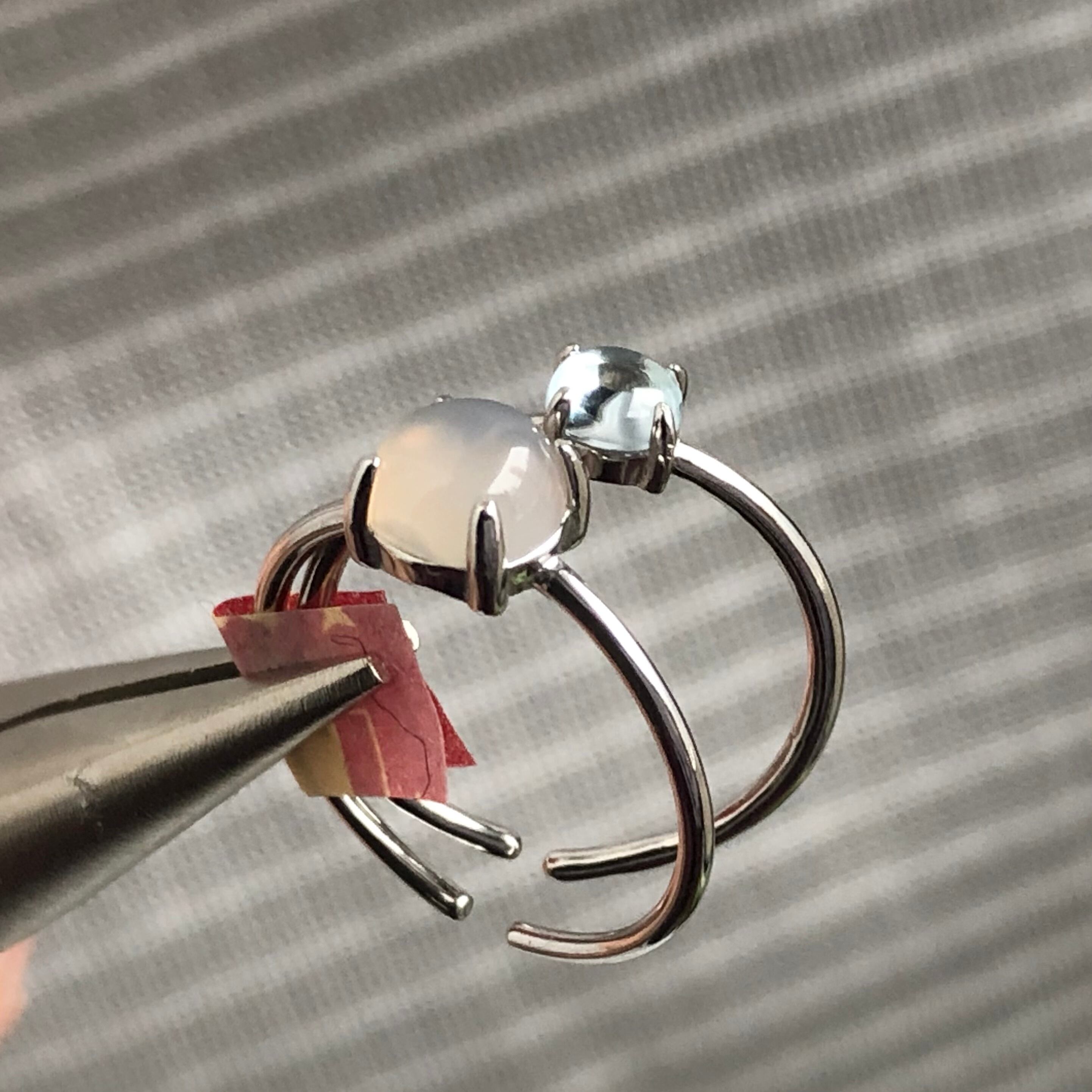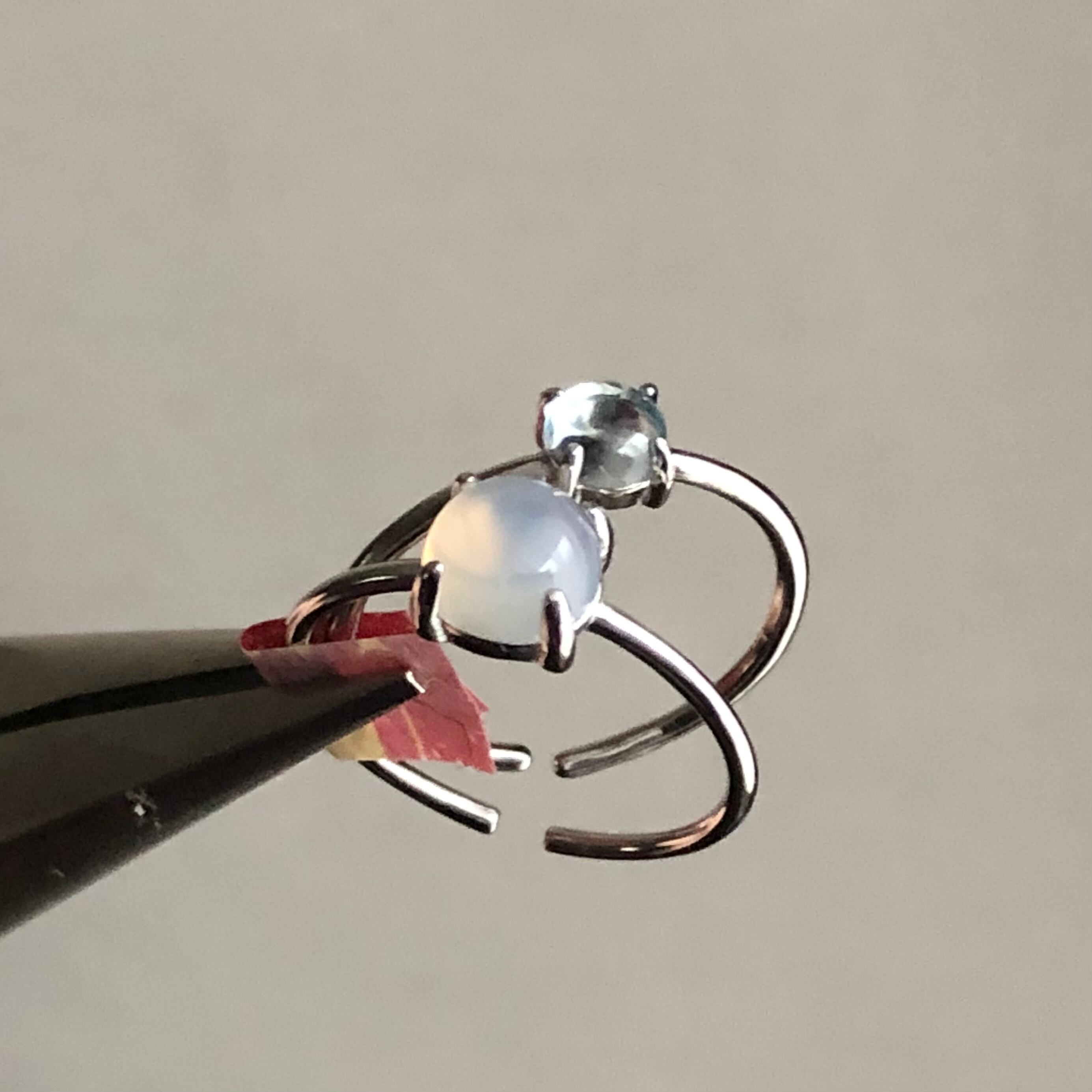 グレーオニキスとブルートパーズのリングセットです。