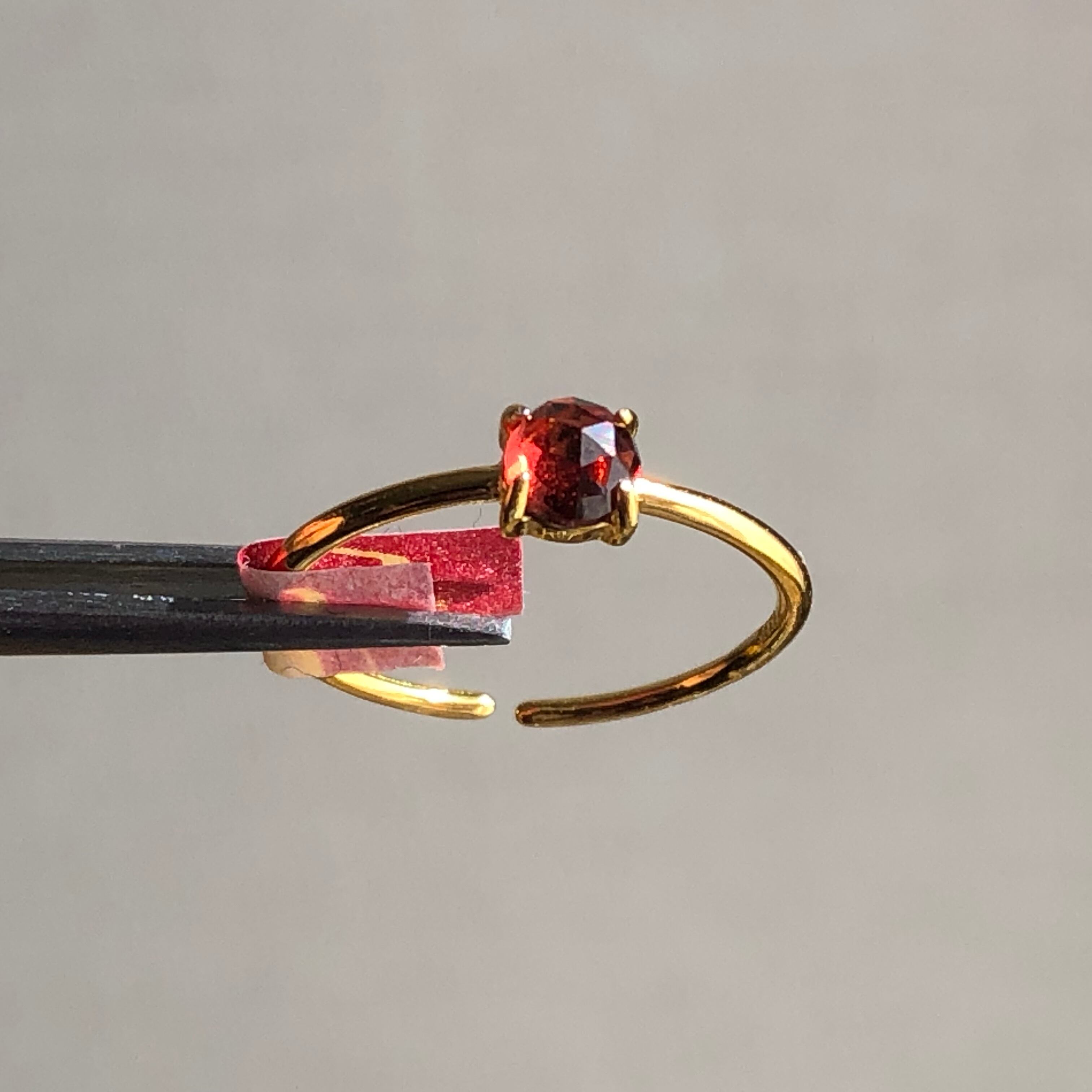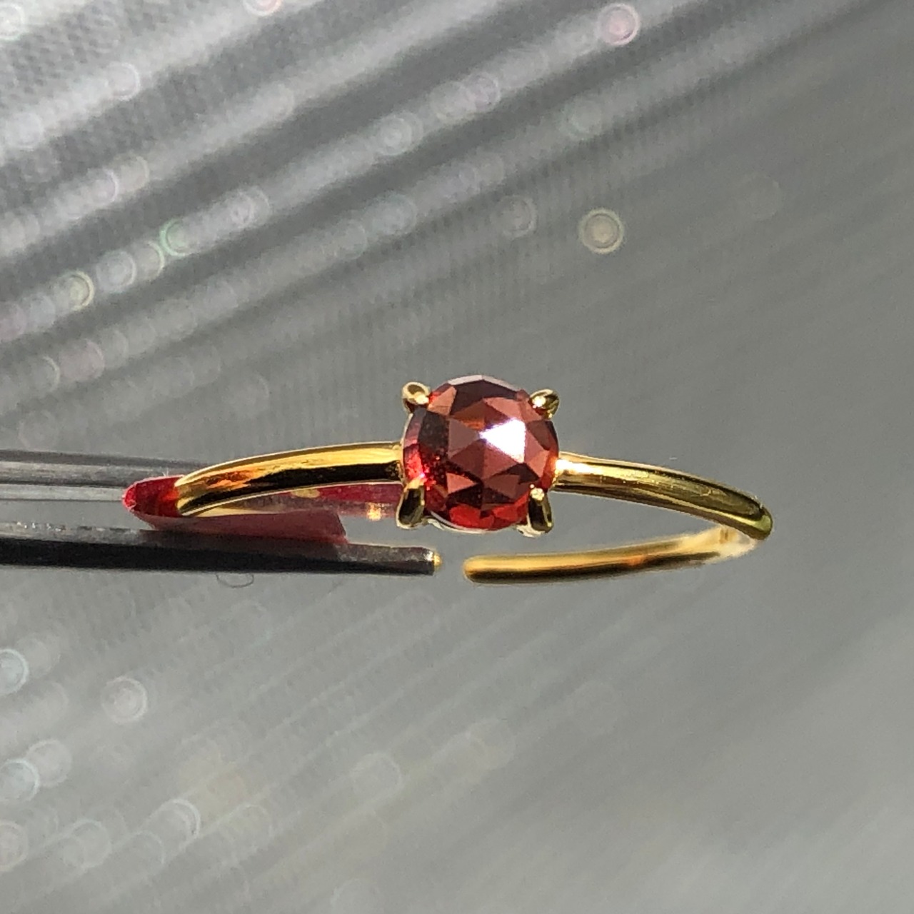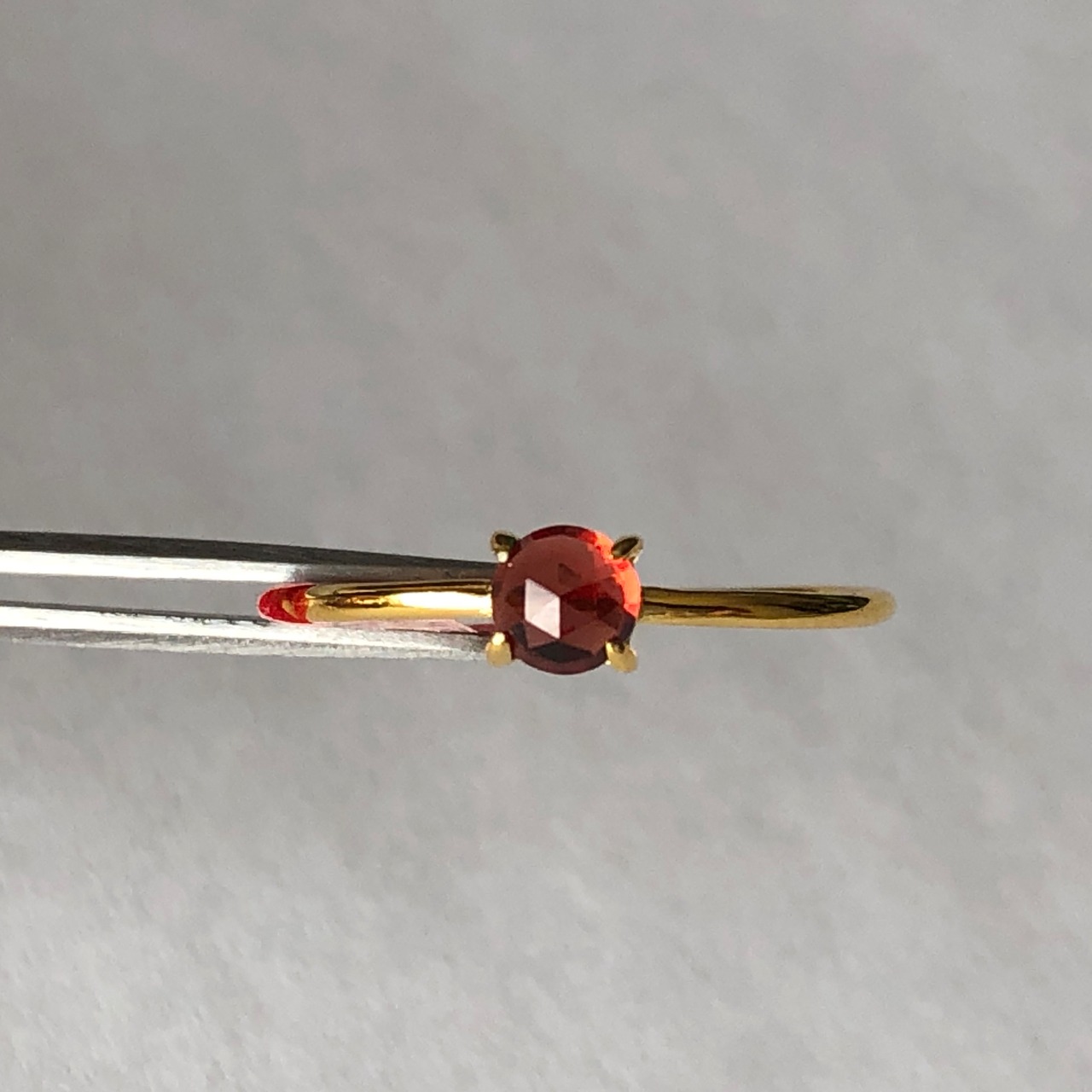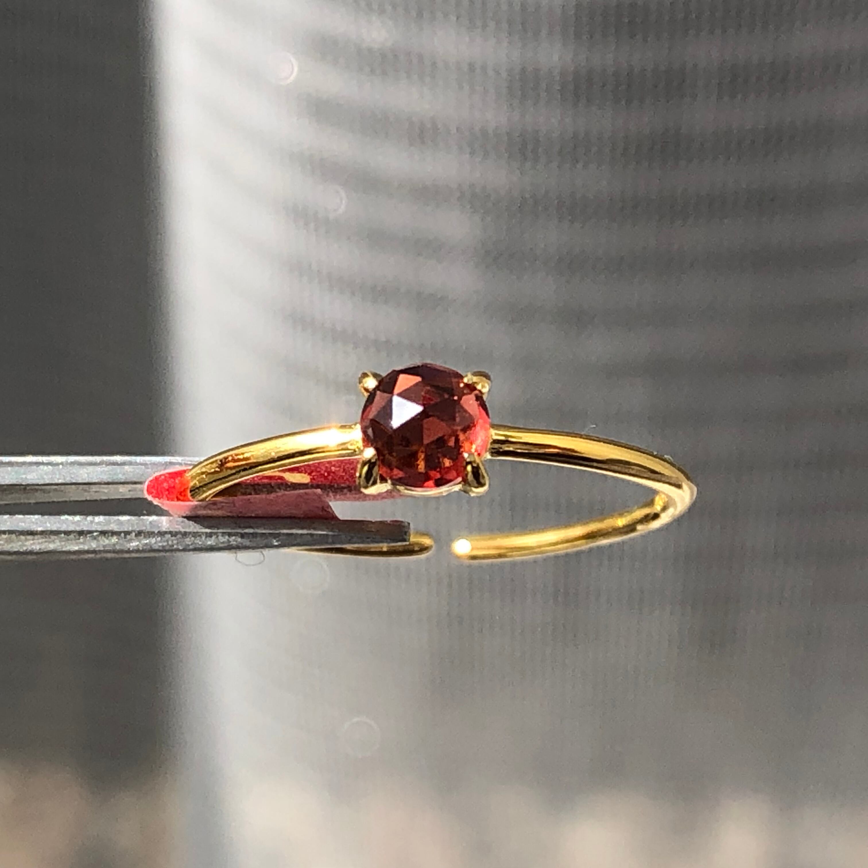 ローズカットの真っ赤なガーネットのリング。