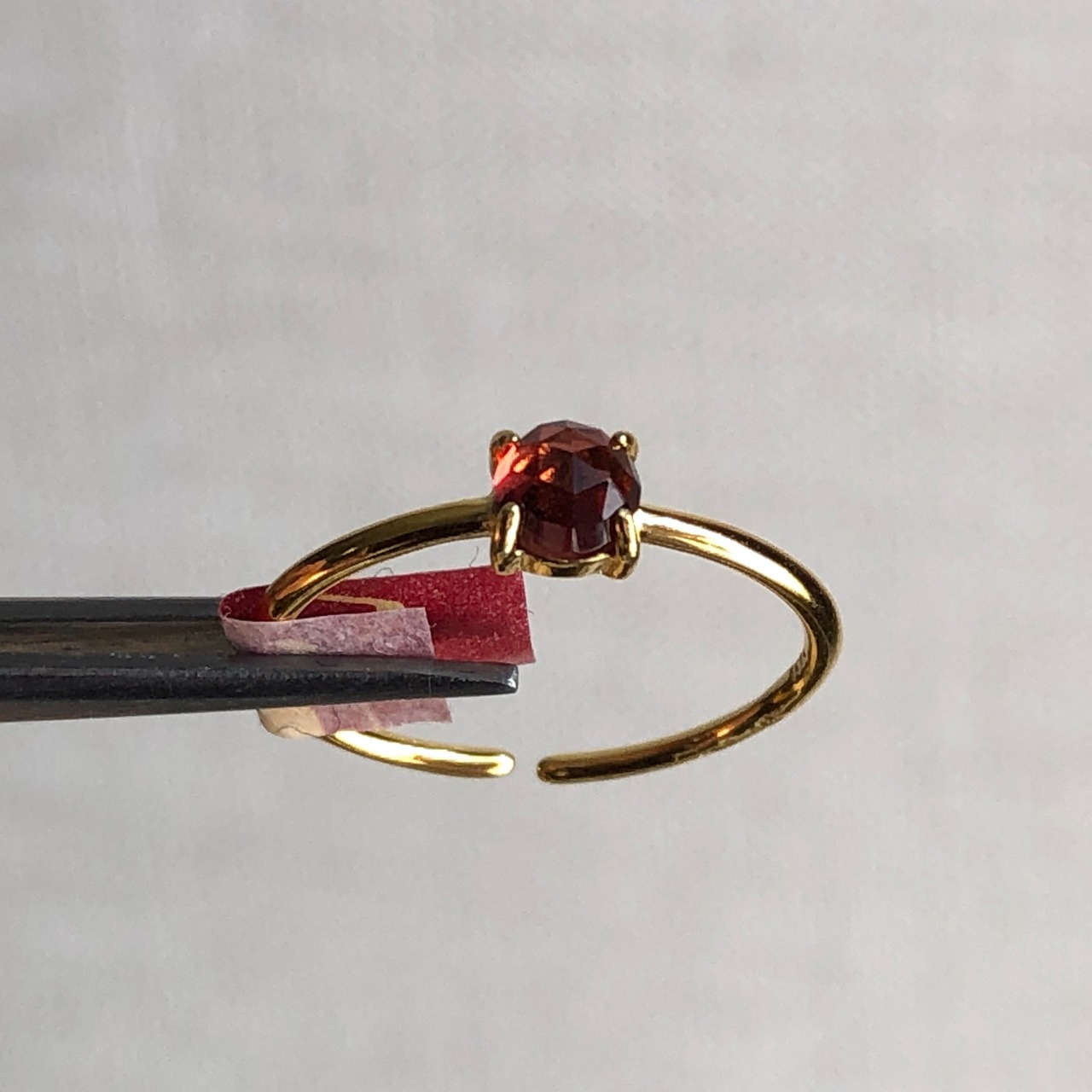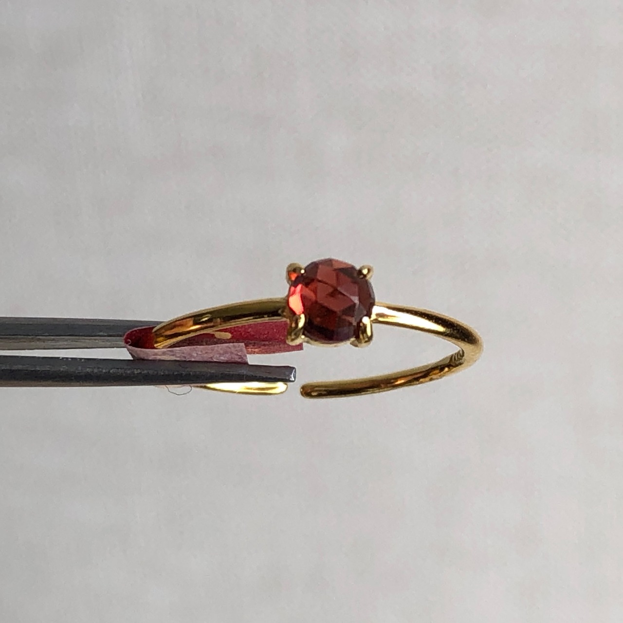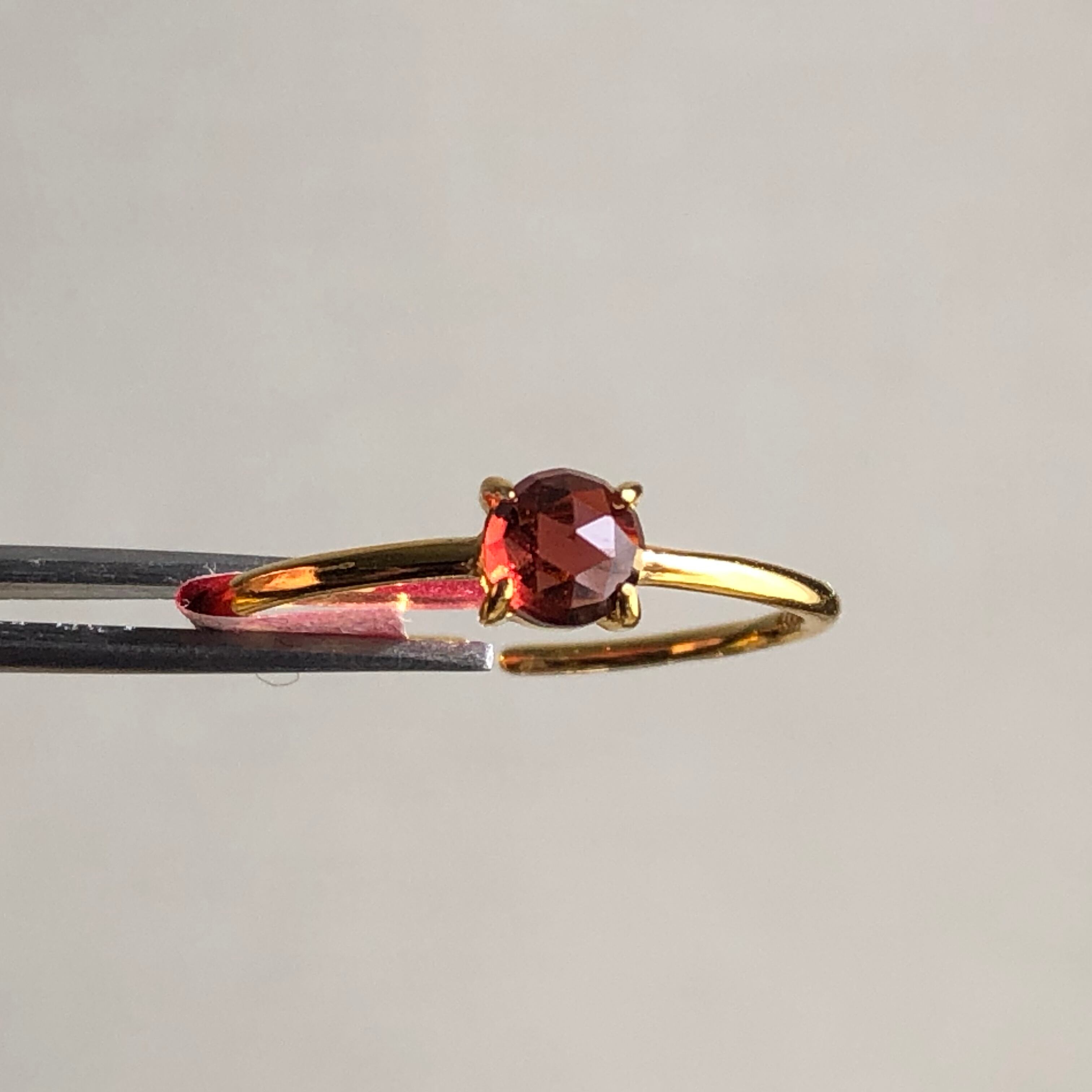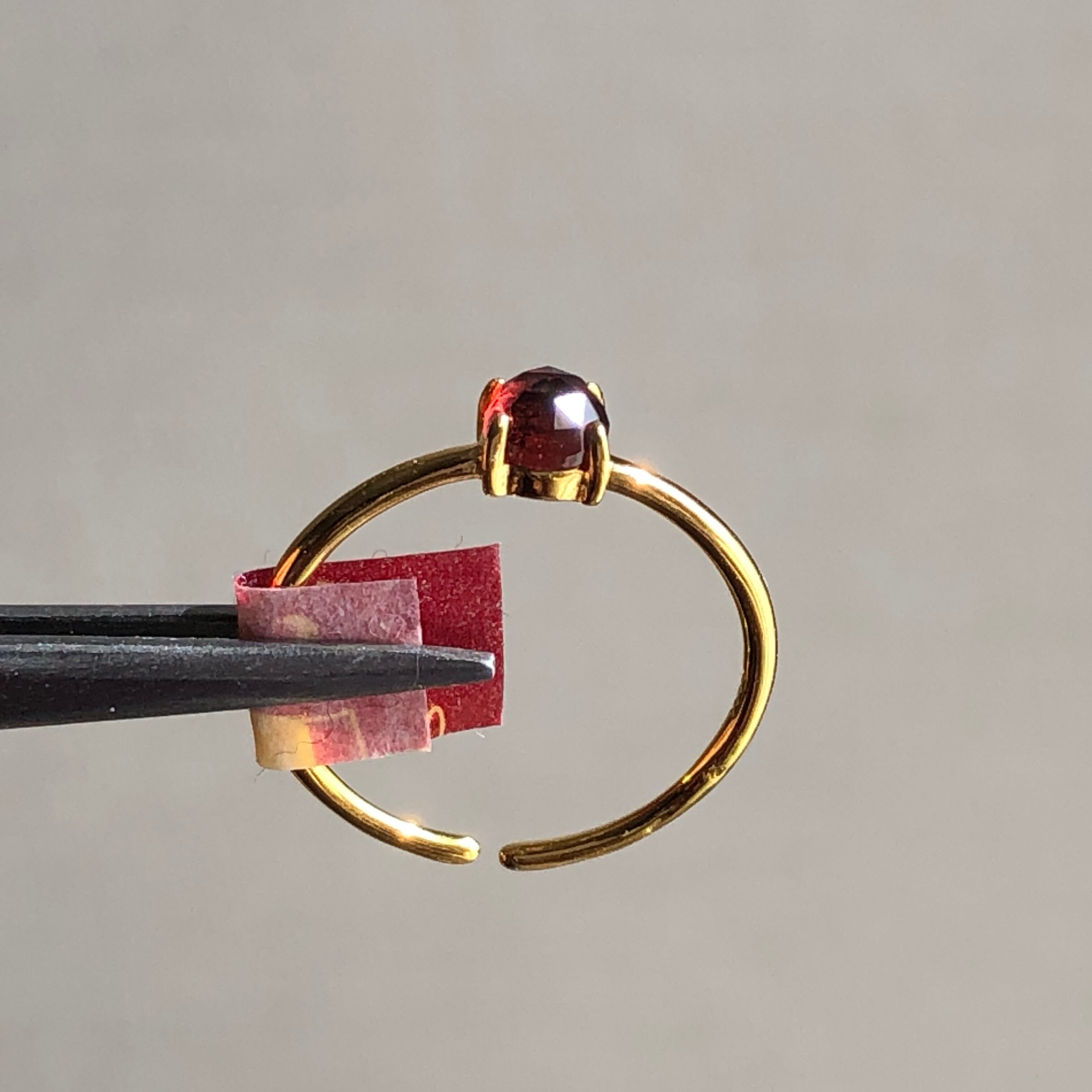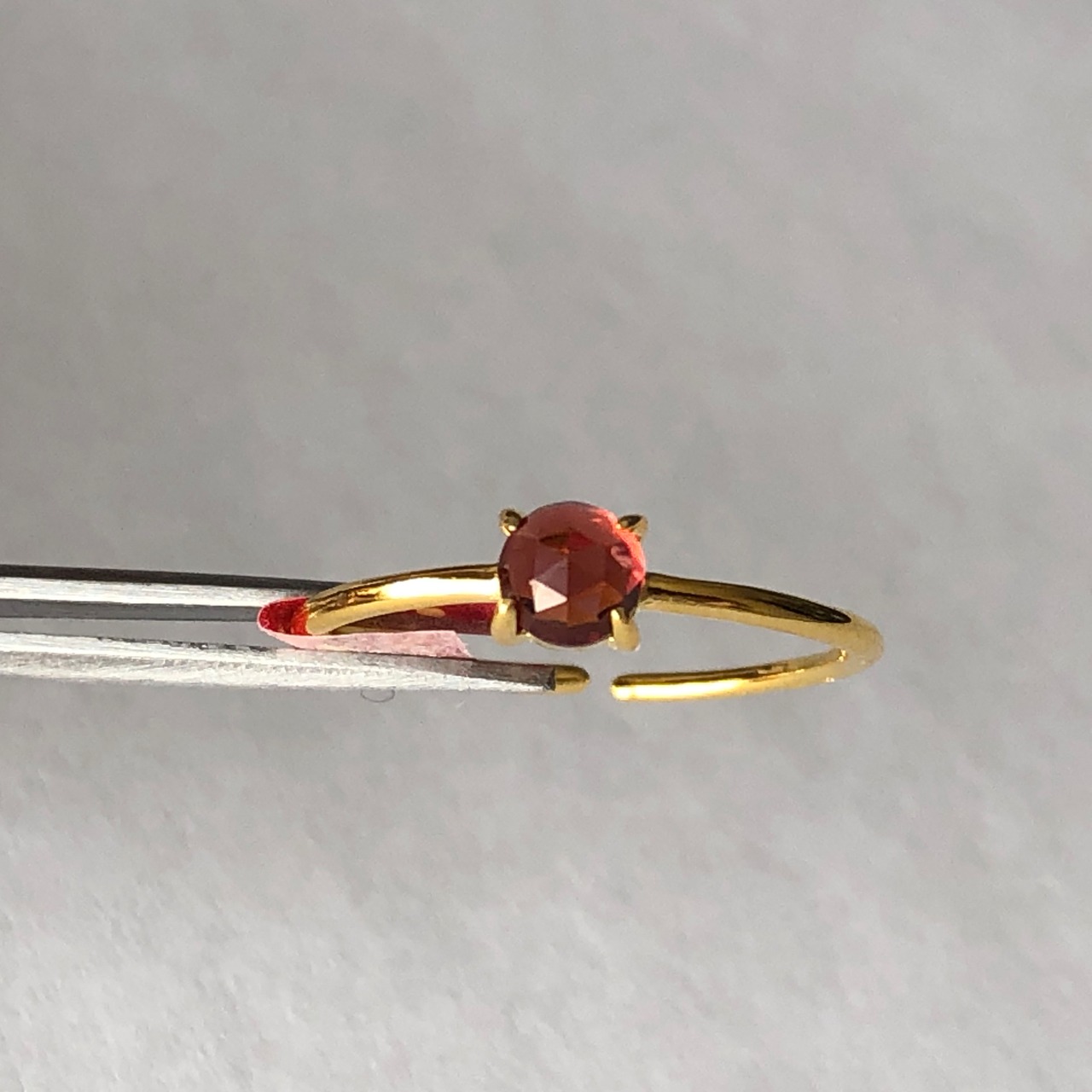 ローズカットの真っ赤なガーネットのリング。