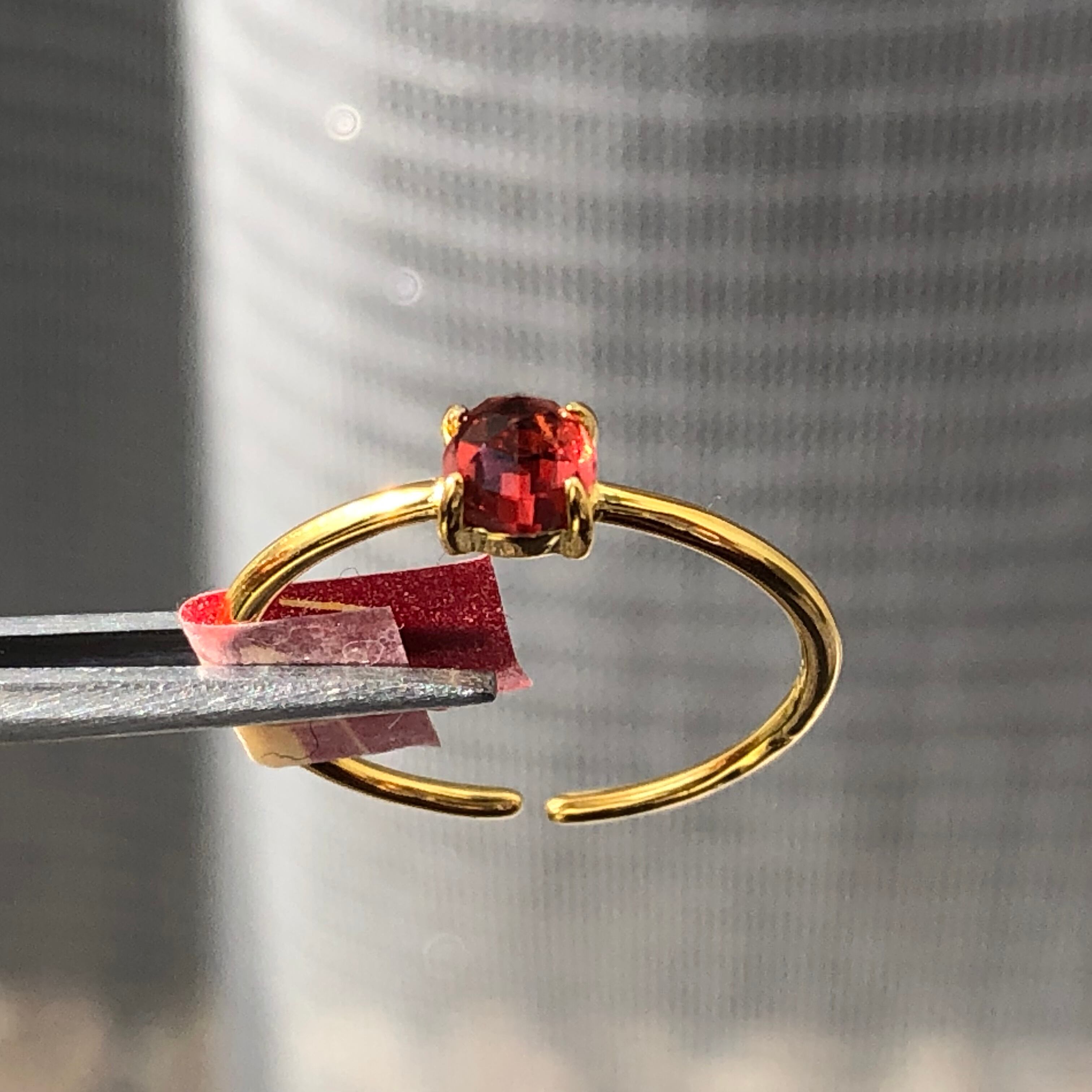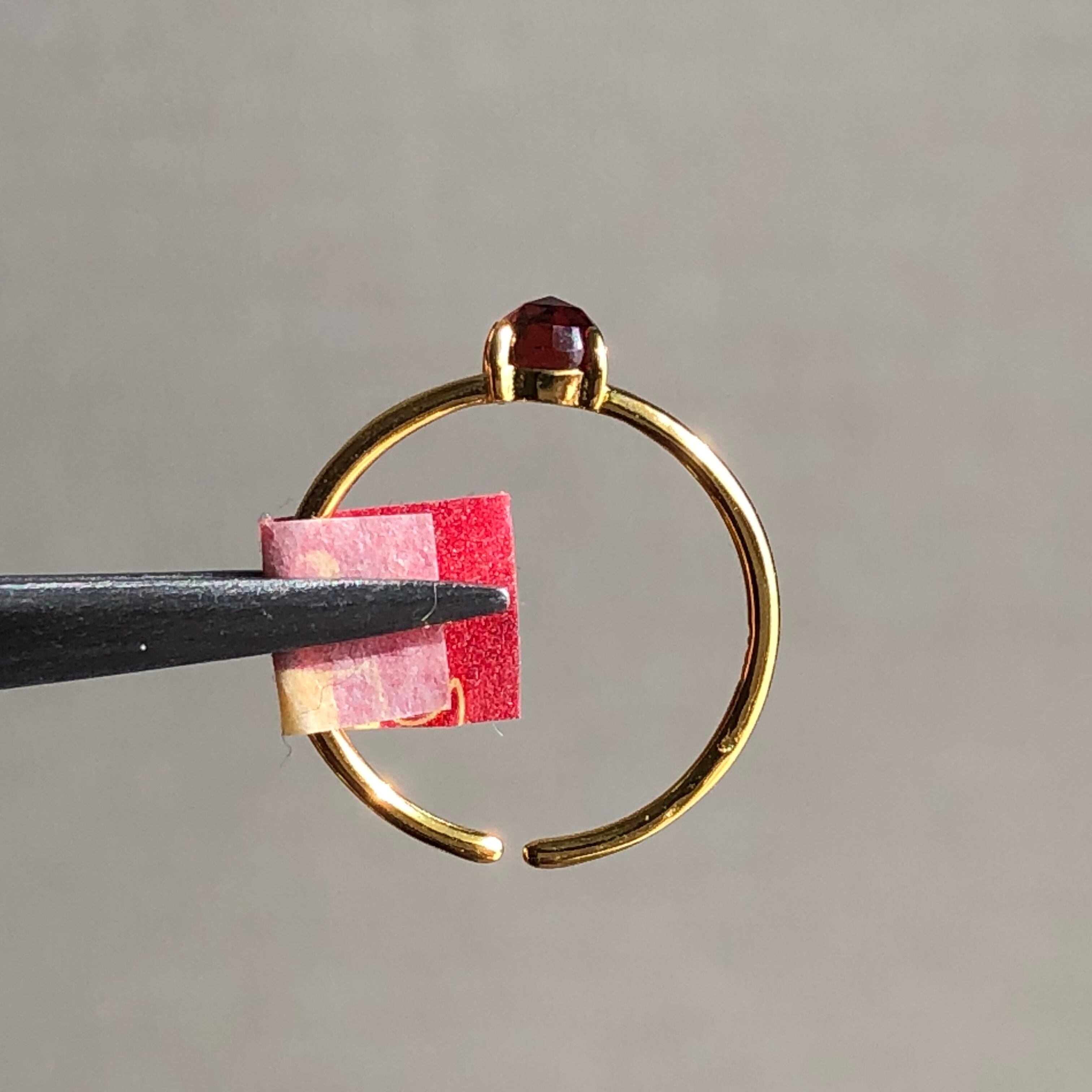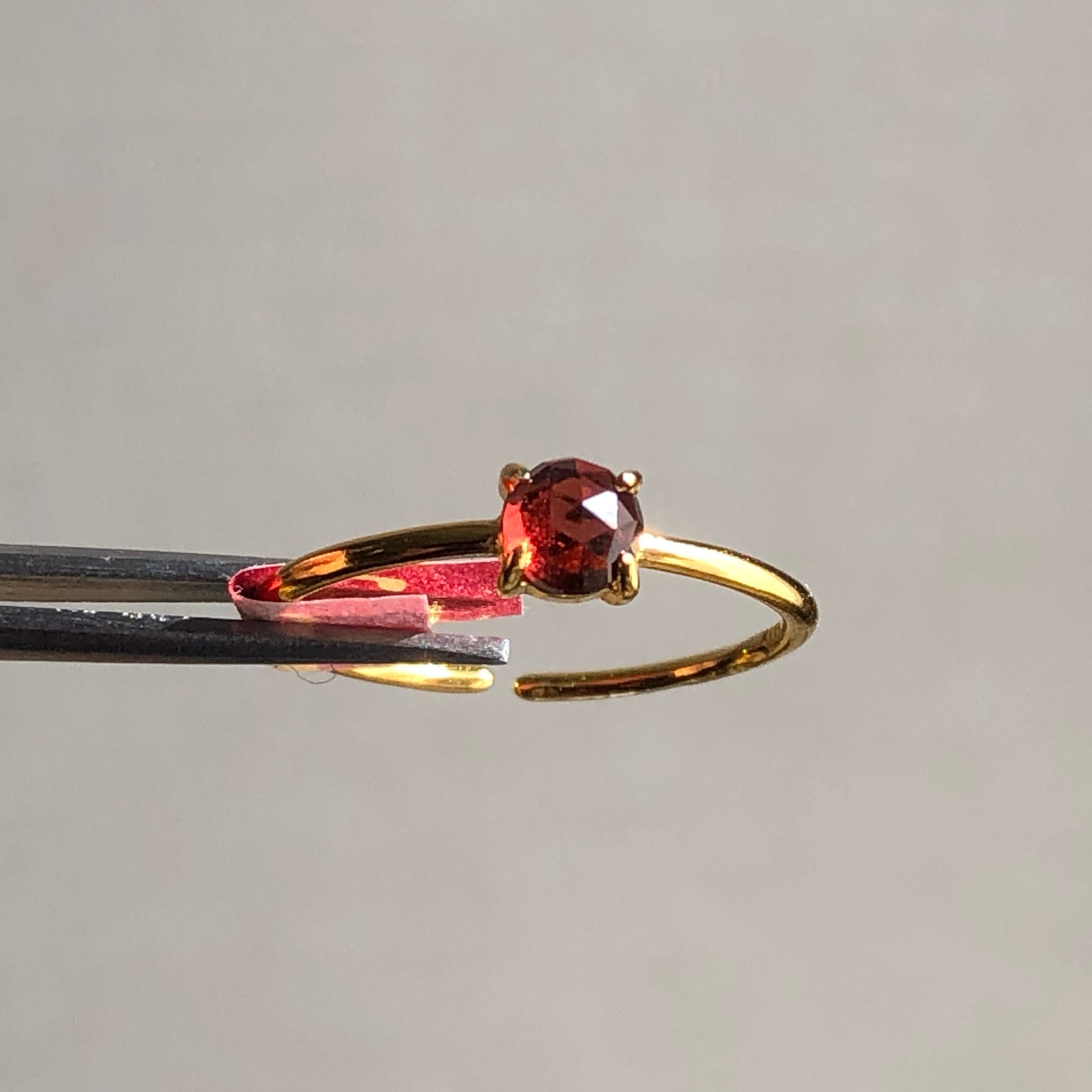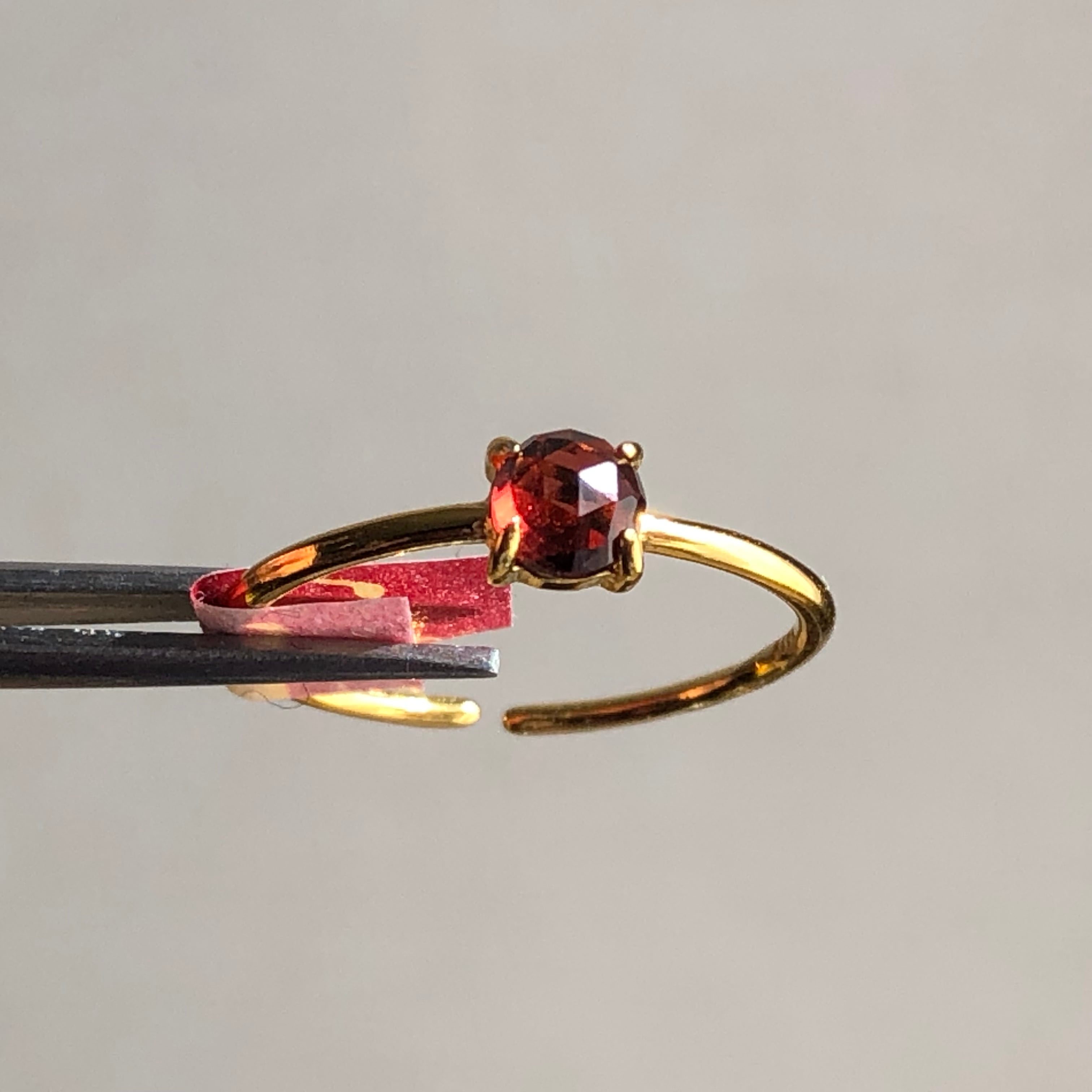 ローズカットの真っ赤なガーネットのリング。
