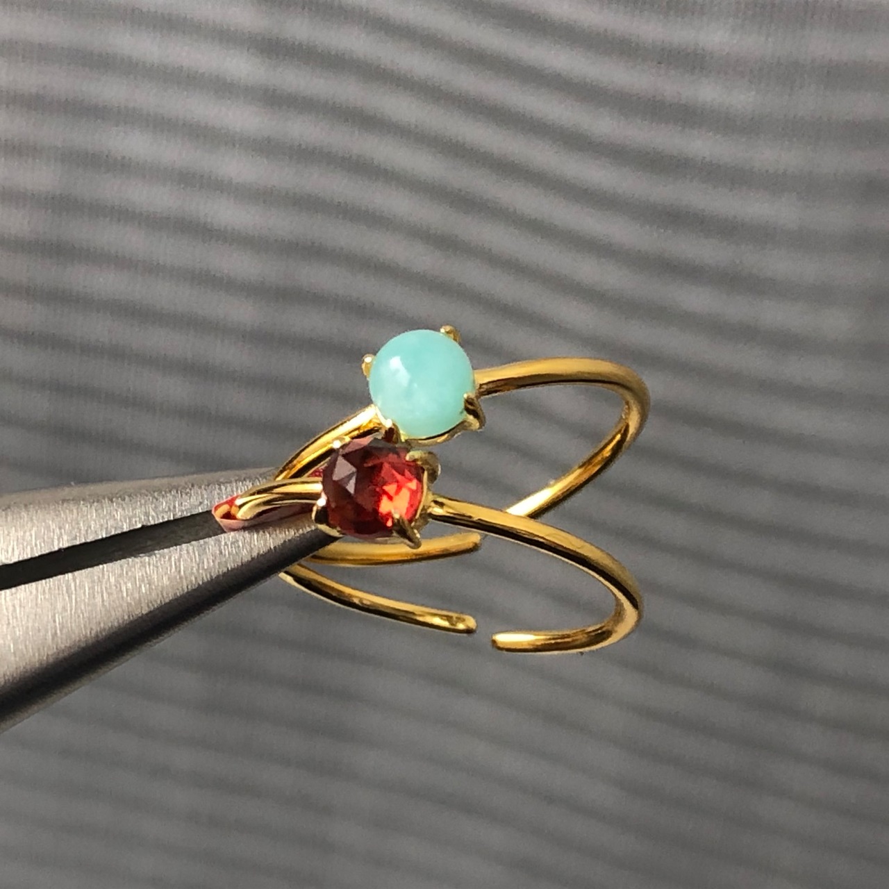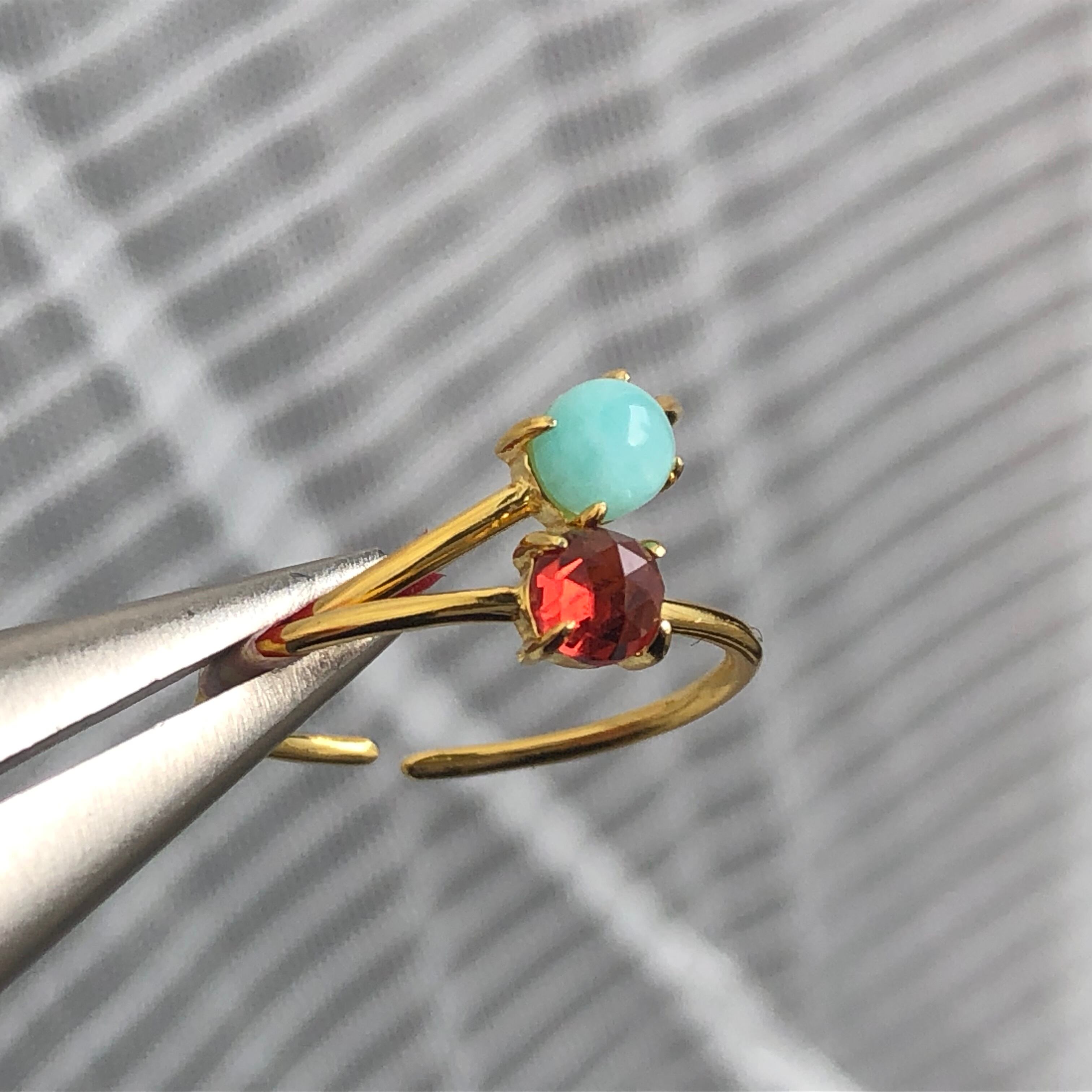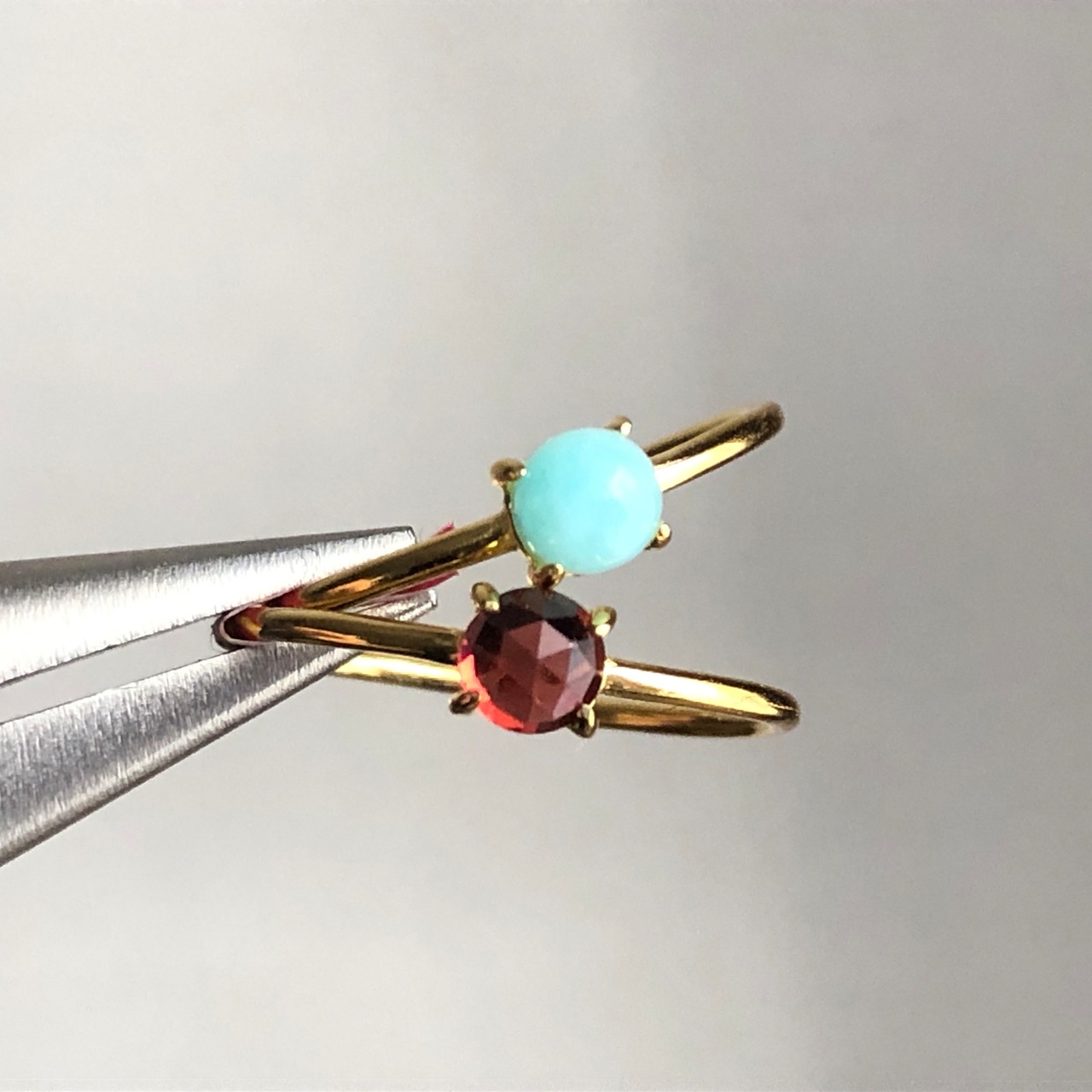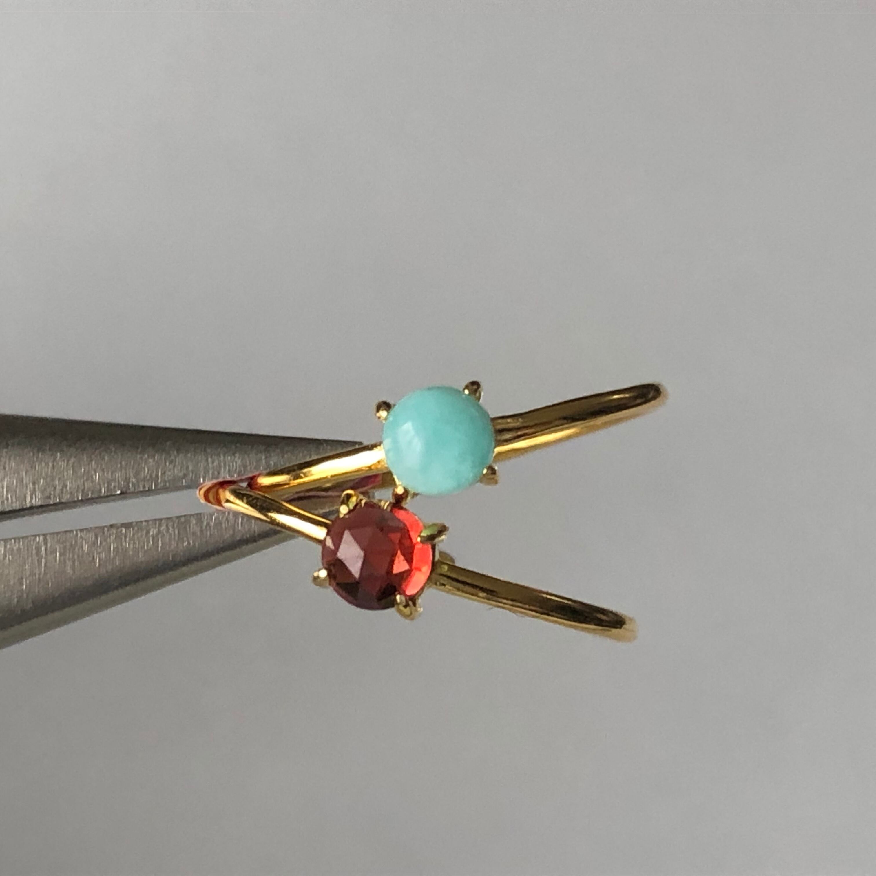 ローズカットのガーネットとアマゾナイトのリングセットです。