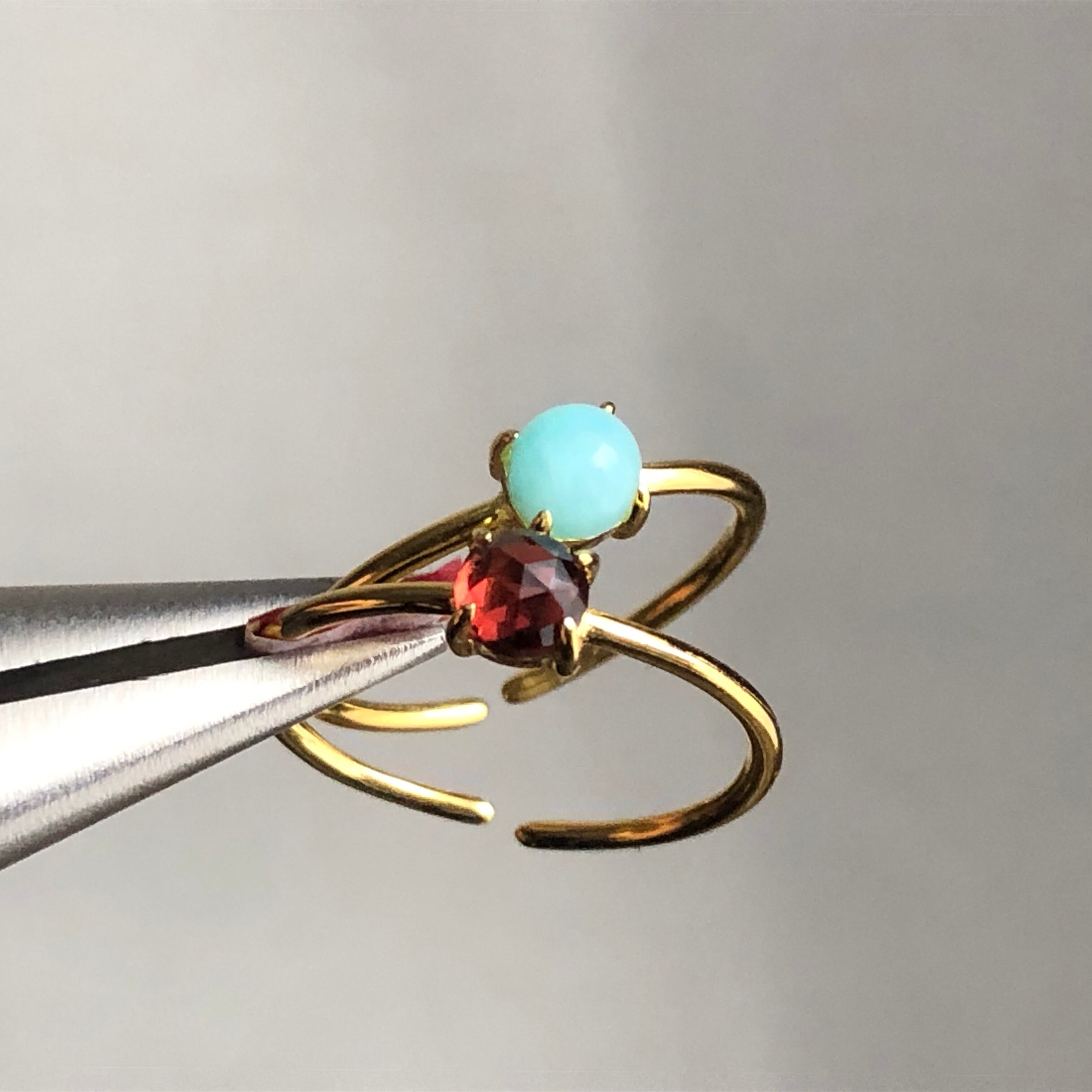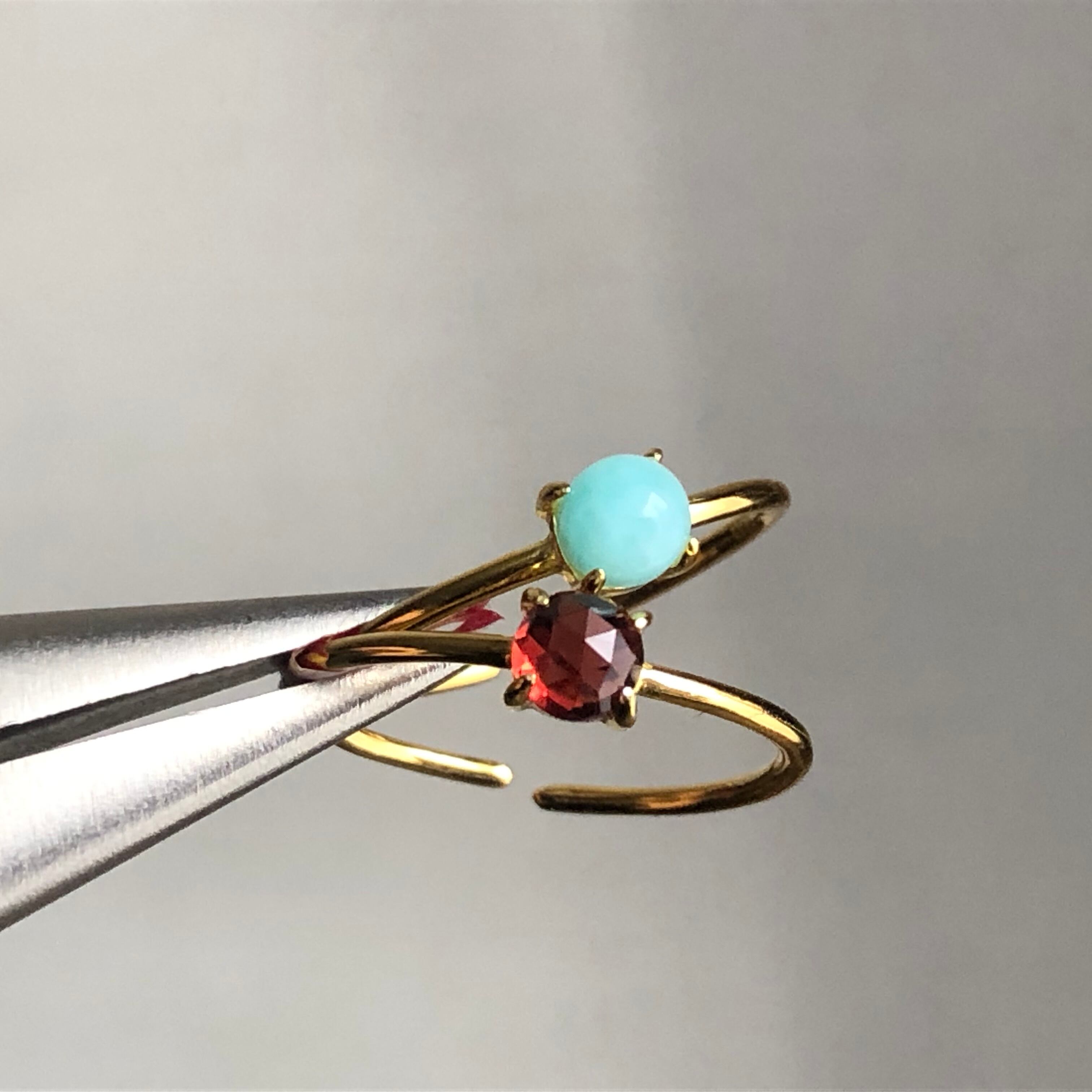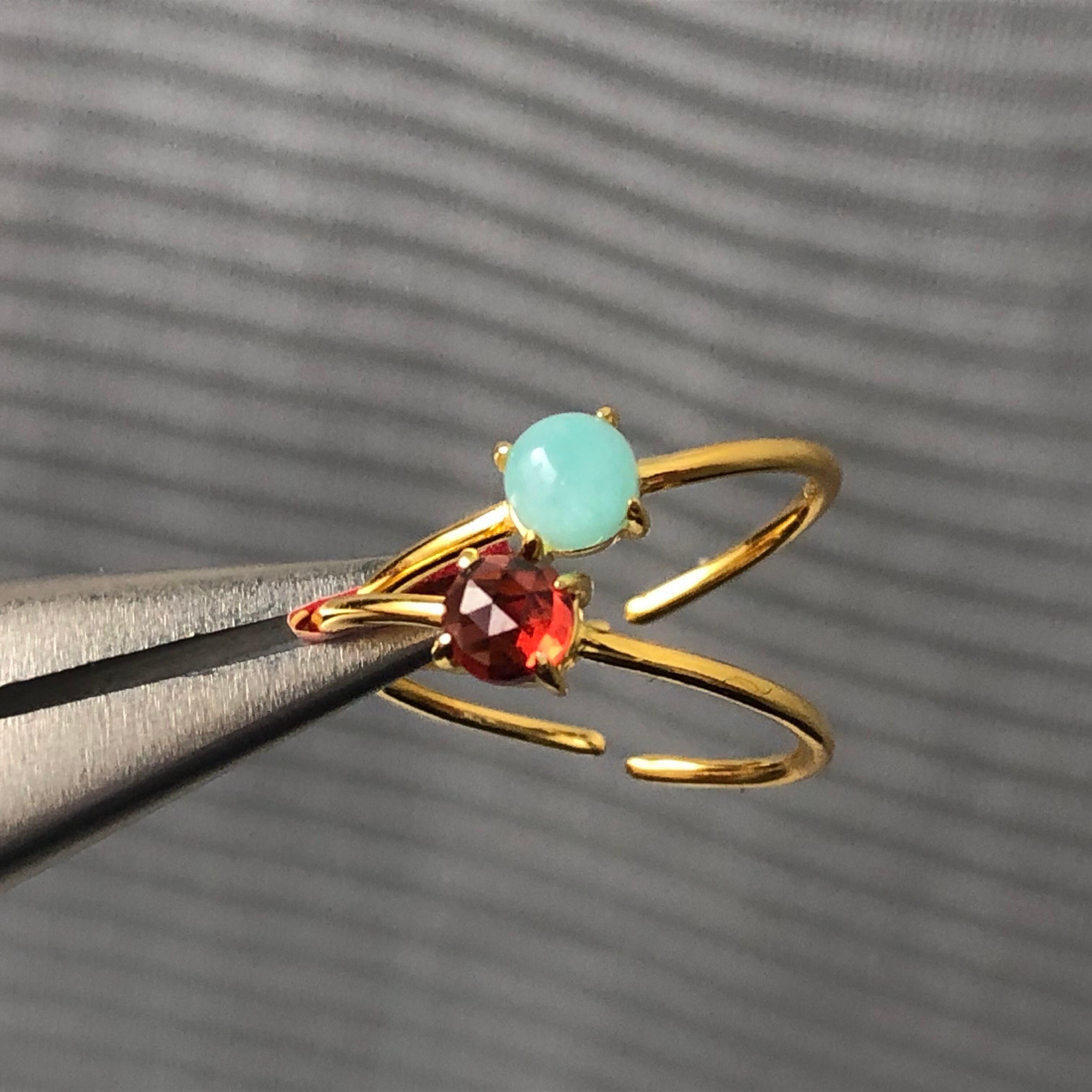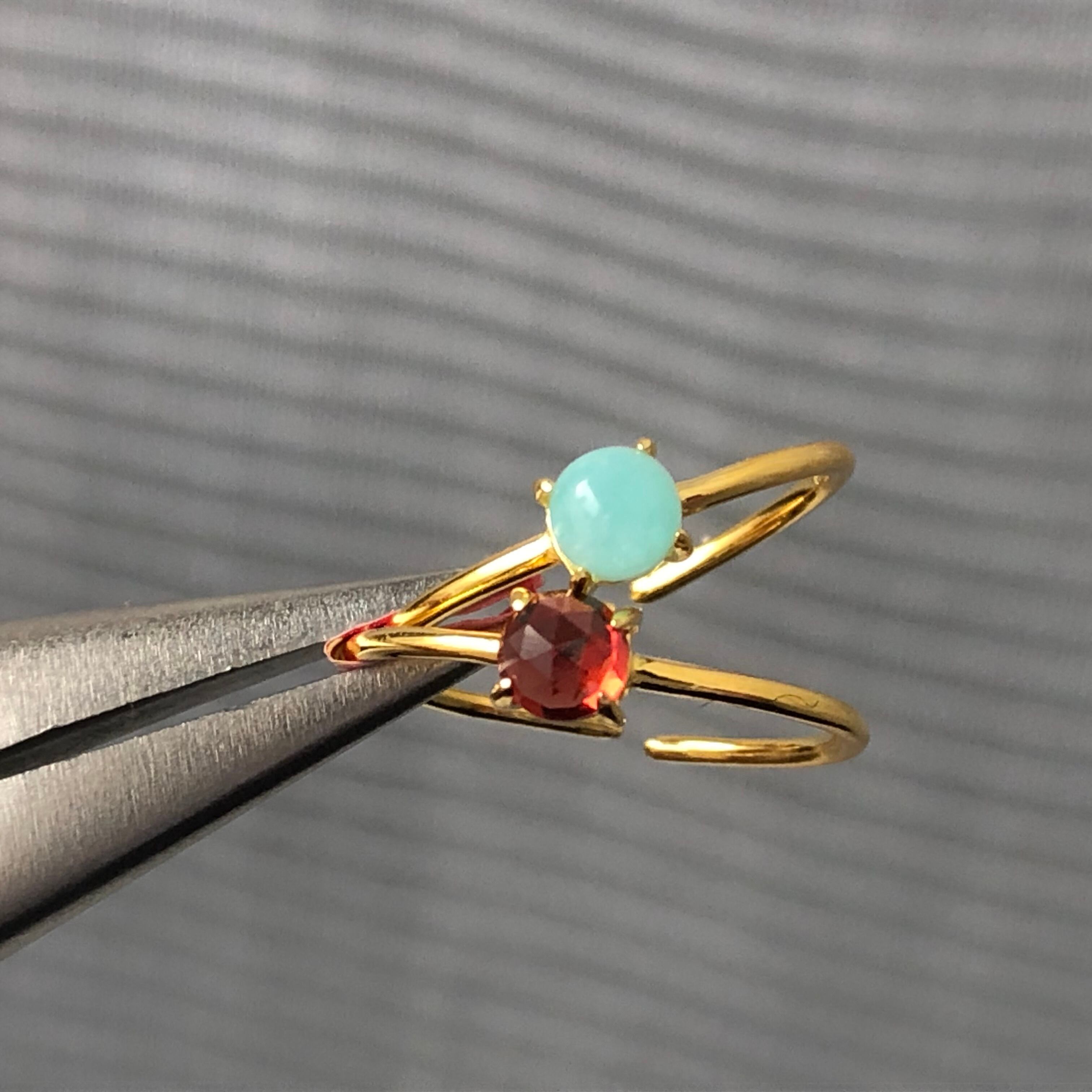 ローズカットのガーネットとアマゾナイトのリングセットです。
