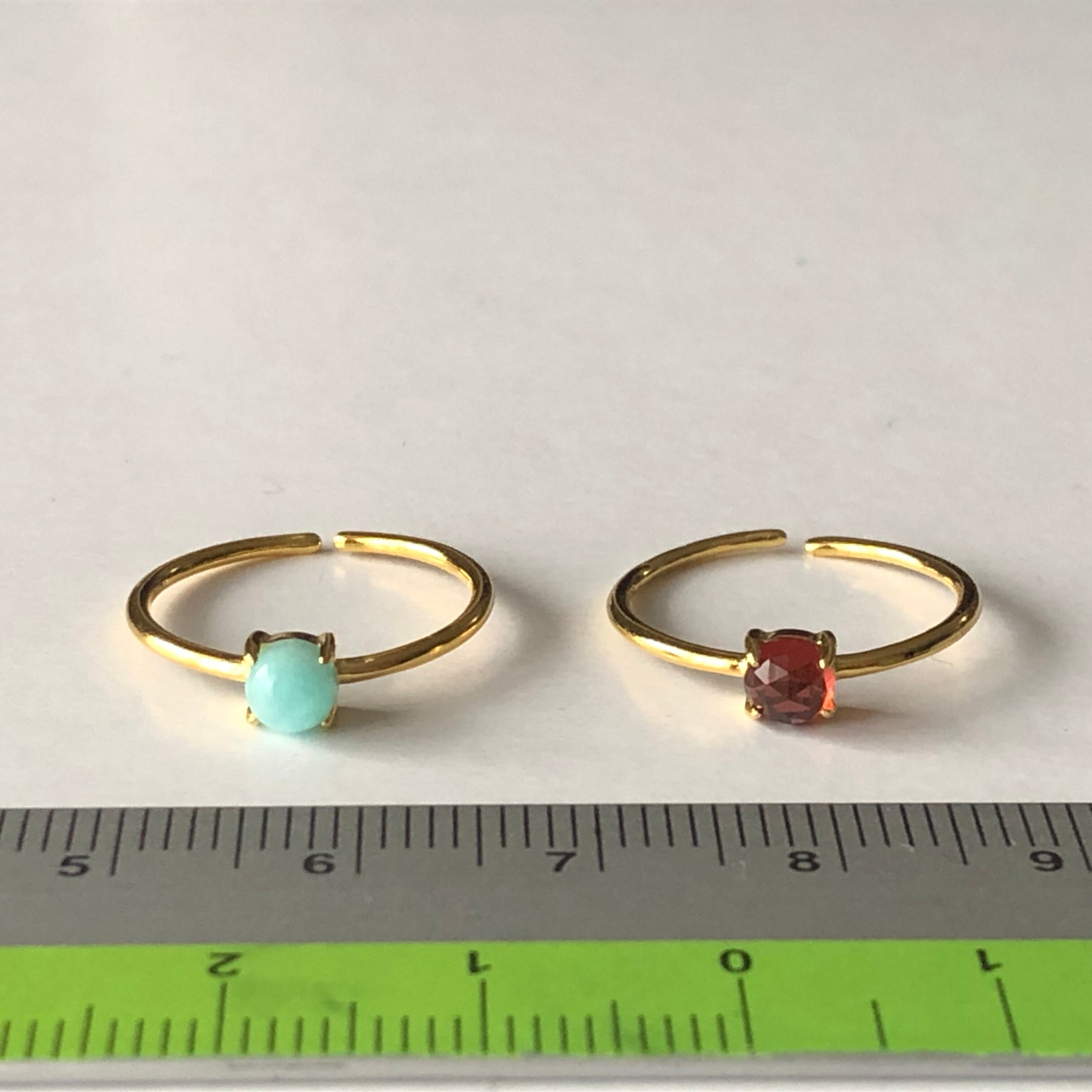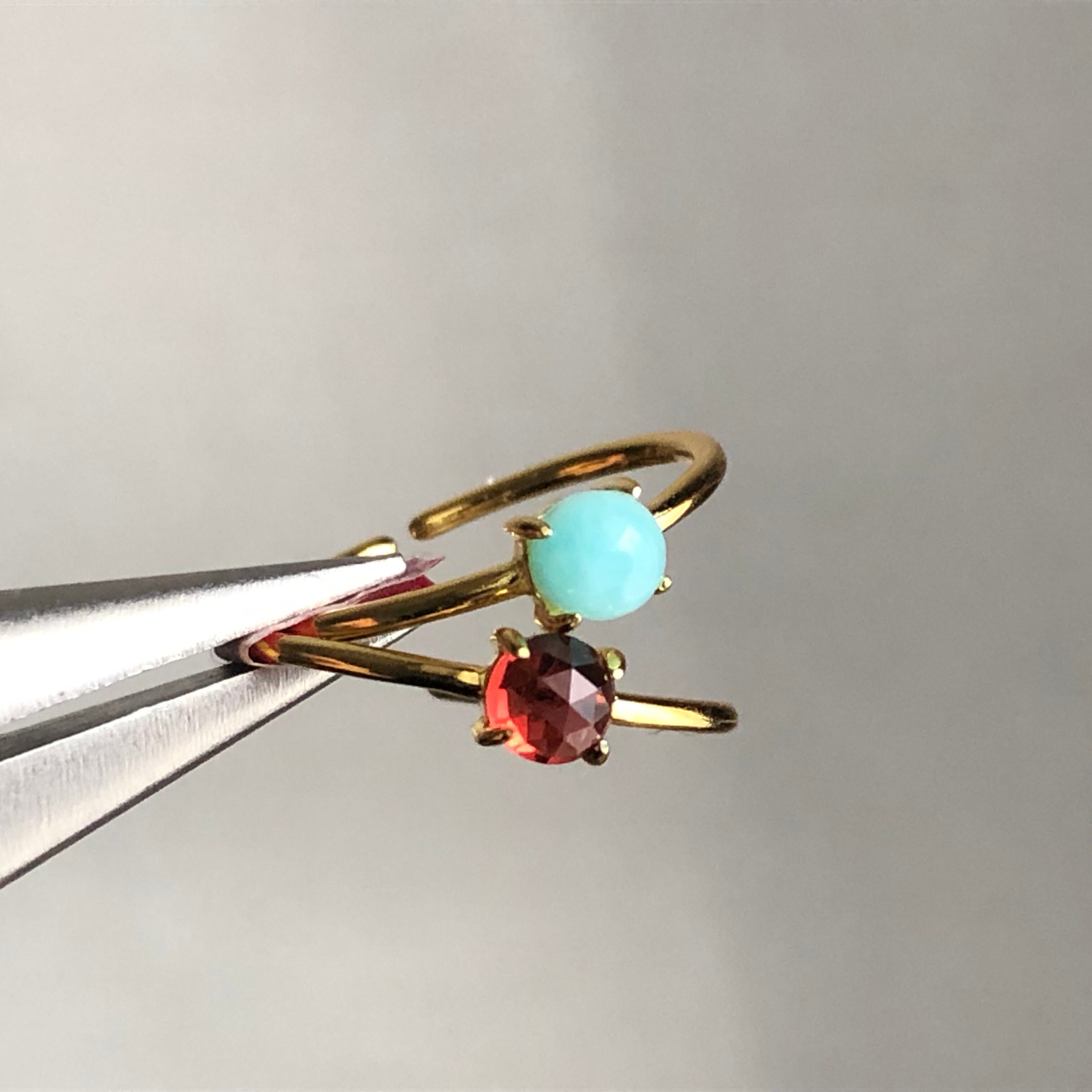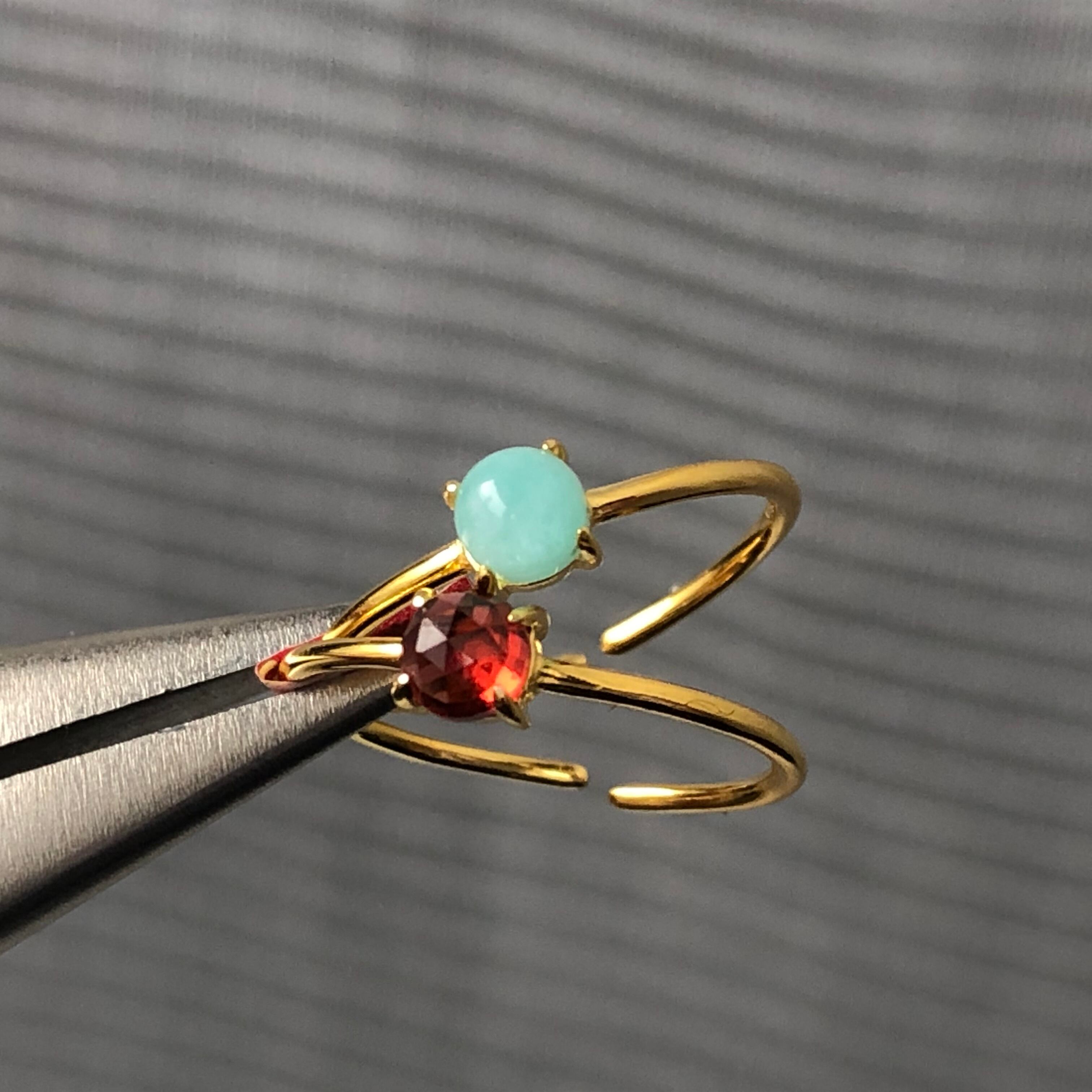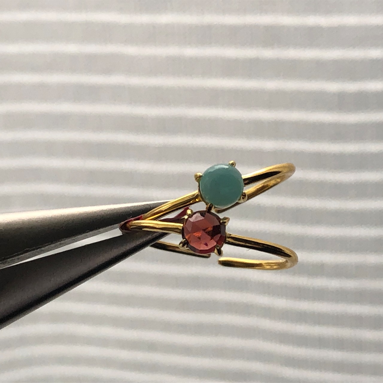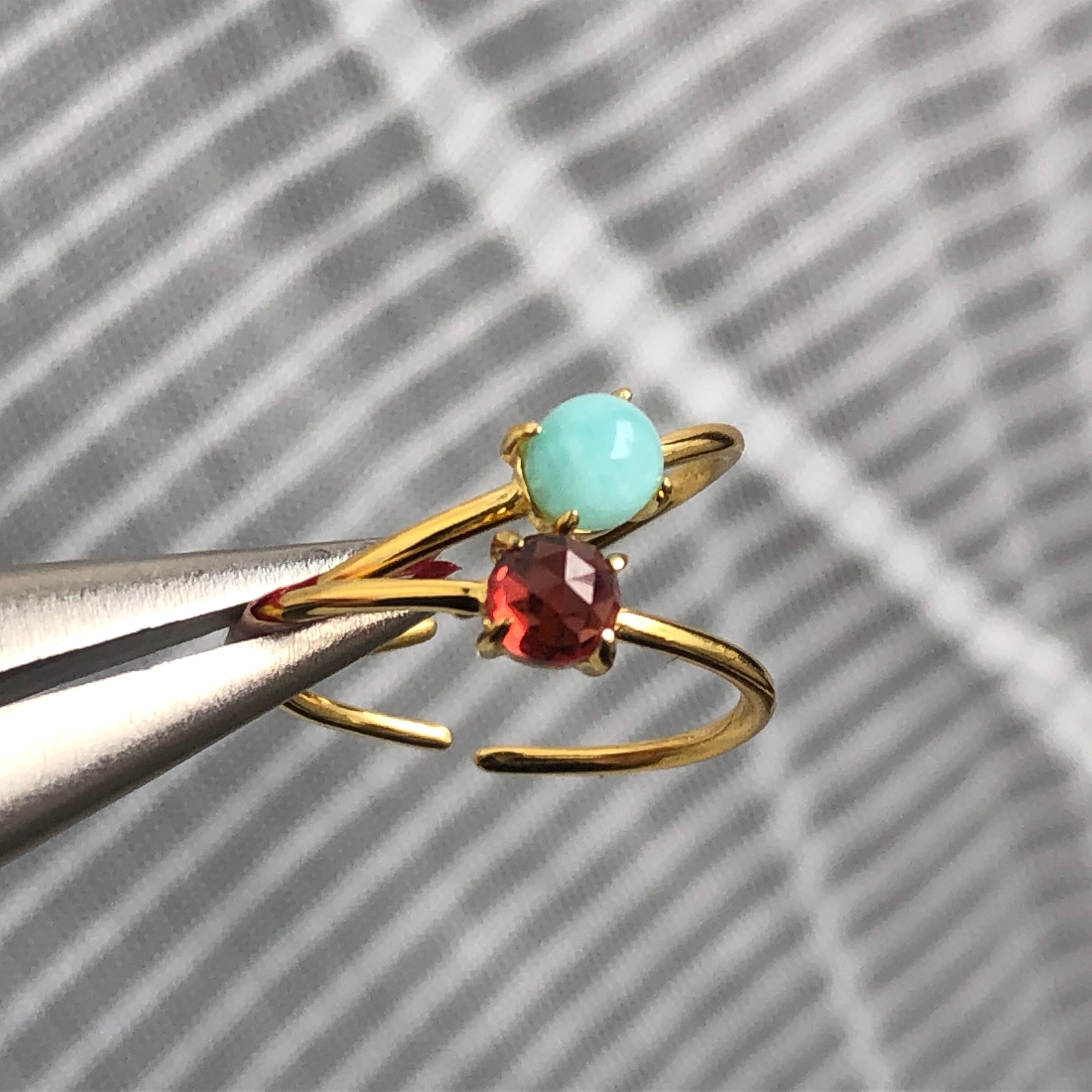 ローズカットのガーネットとアマゾナイトのリングセットです。