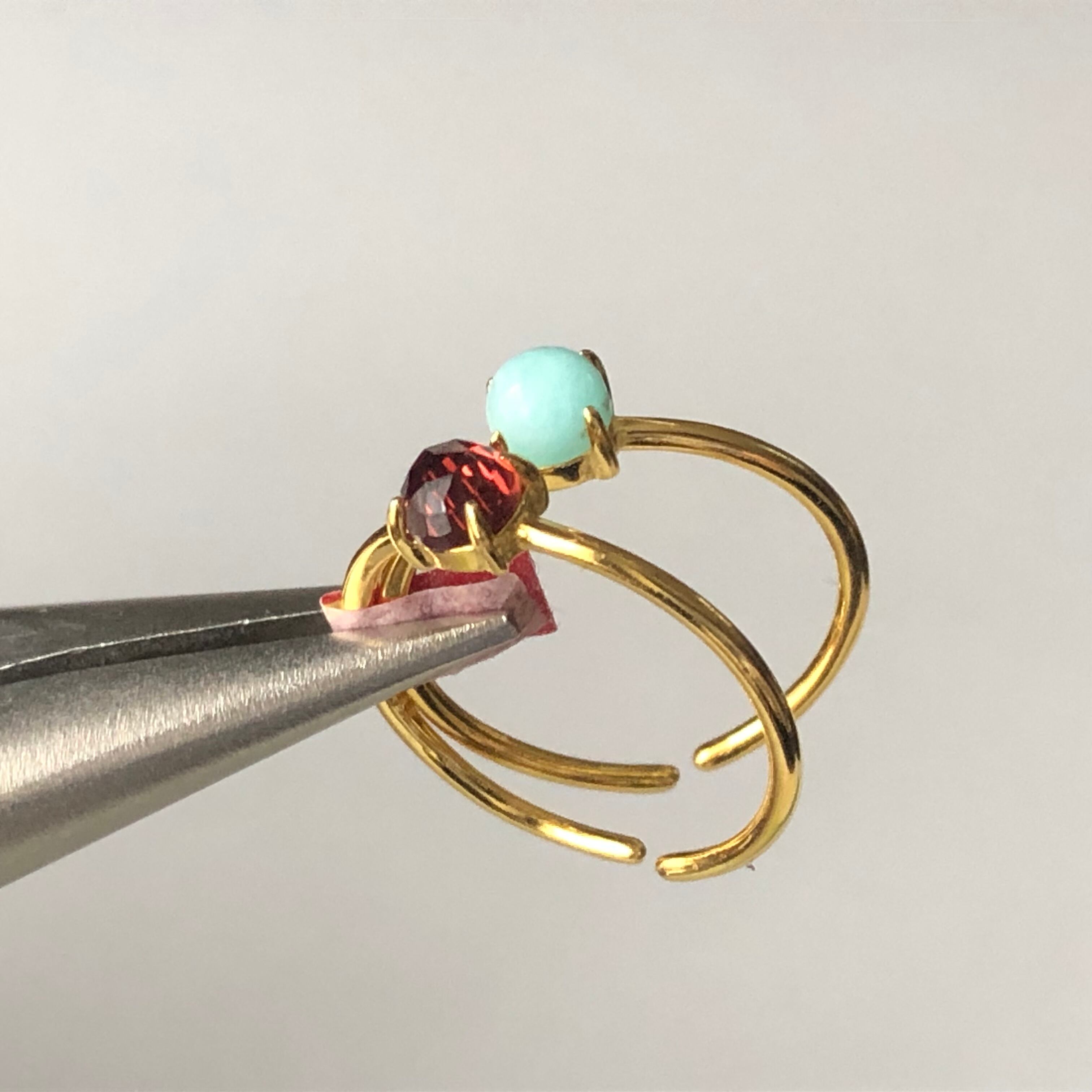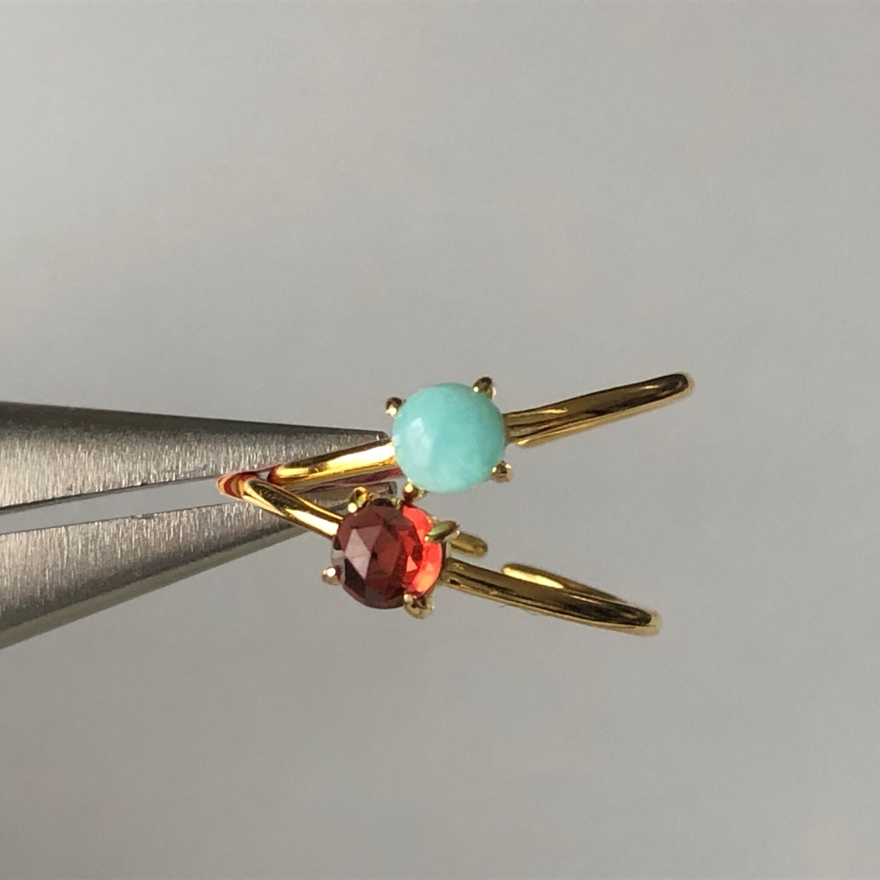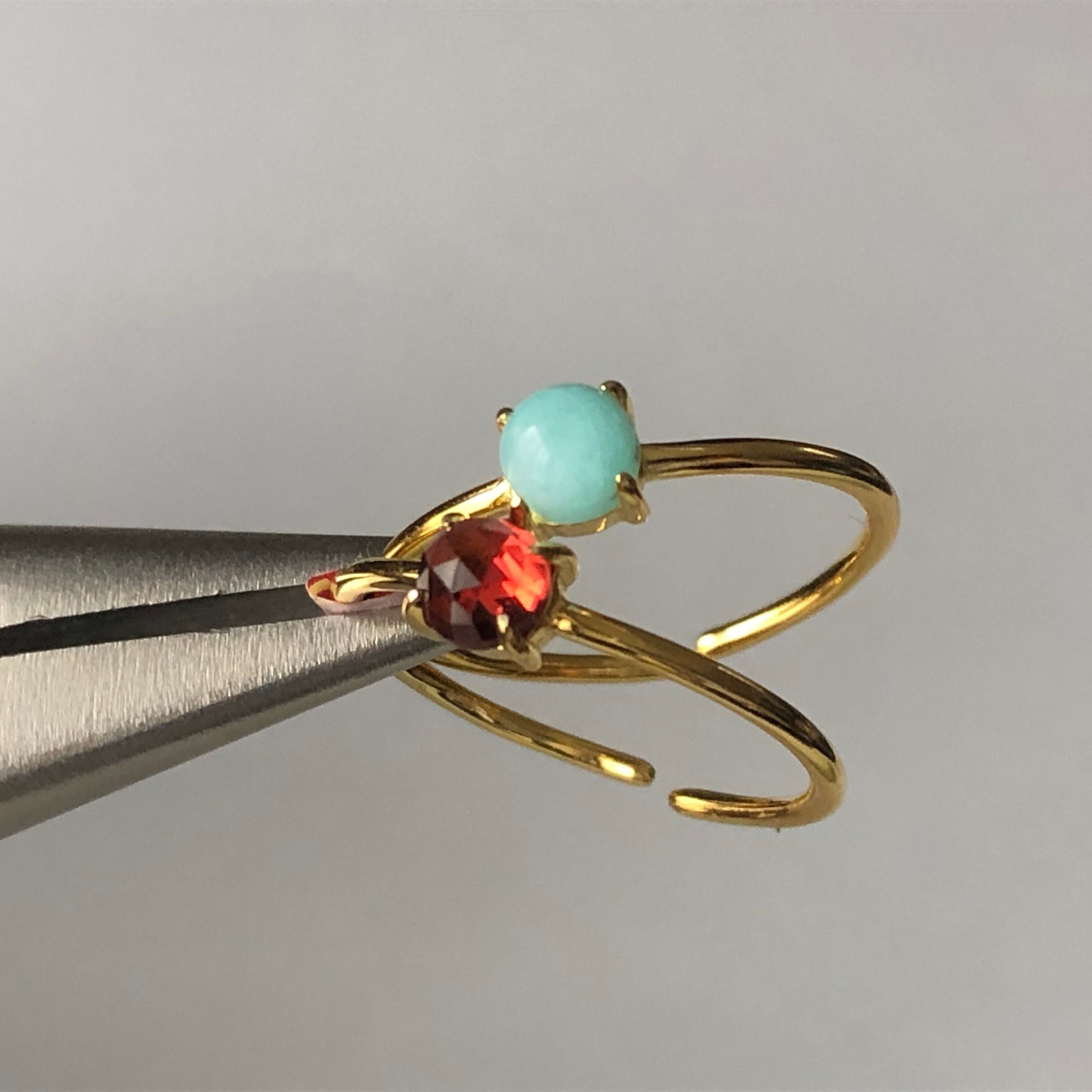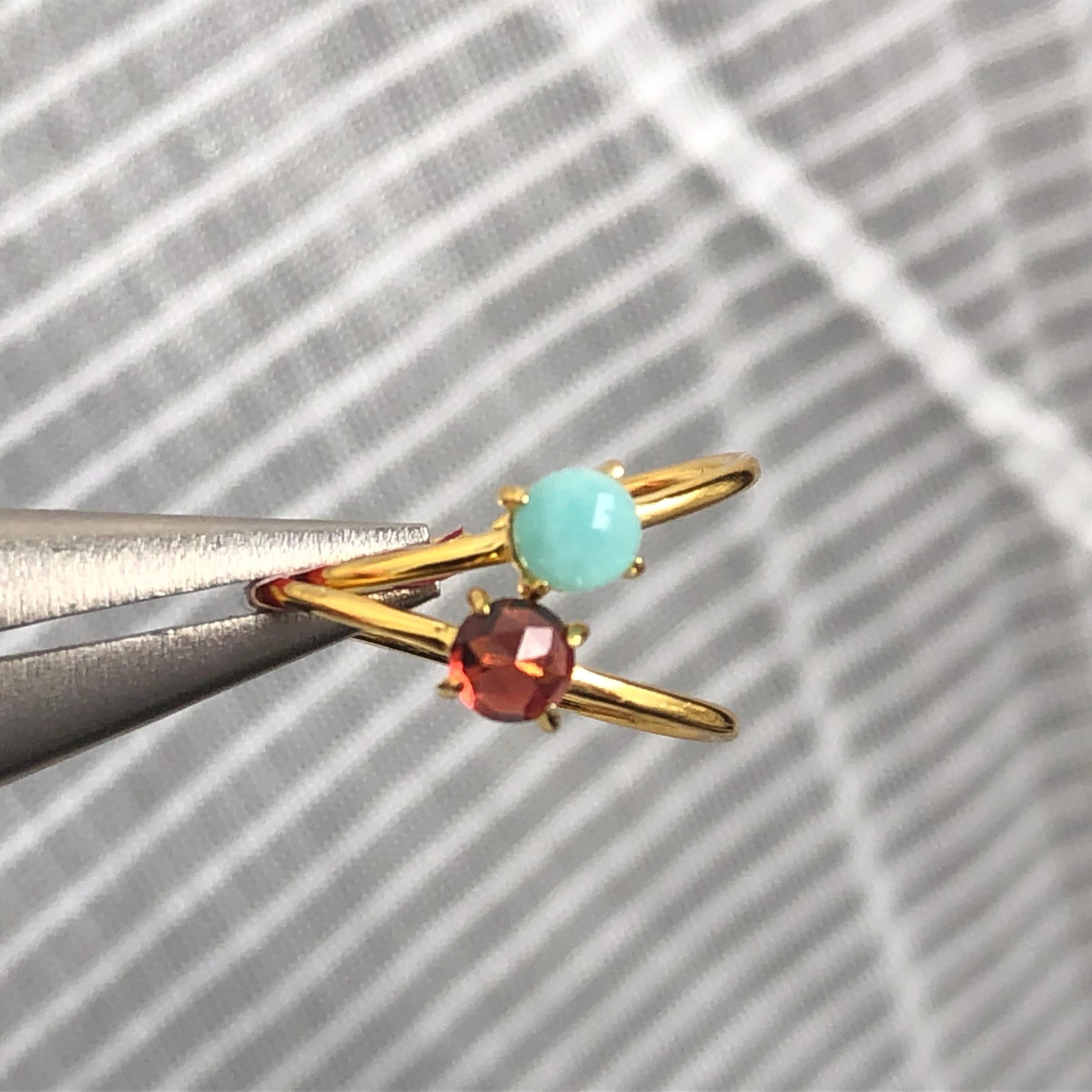 ローズカットのガーネットとアマゾナイトのリングセットです。