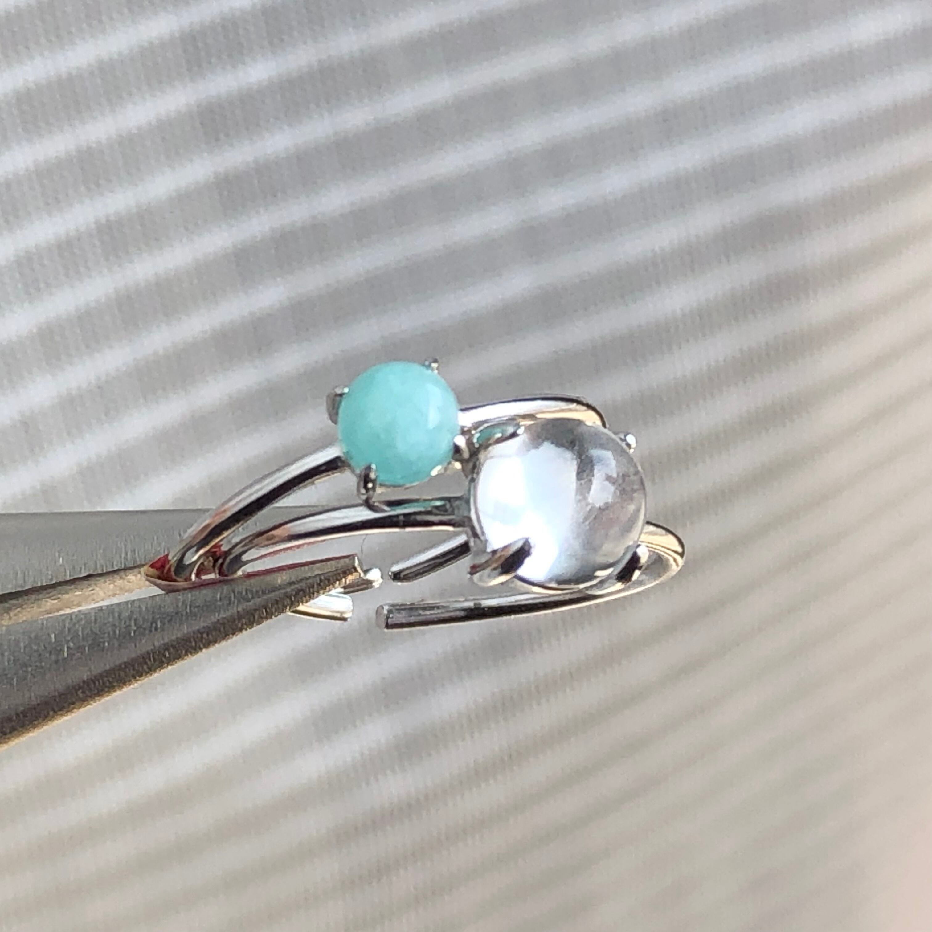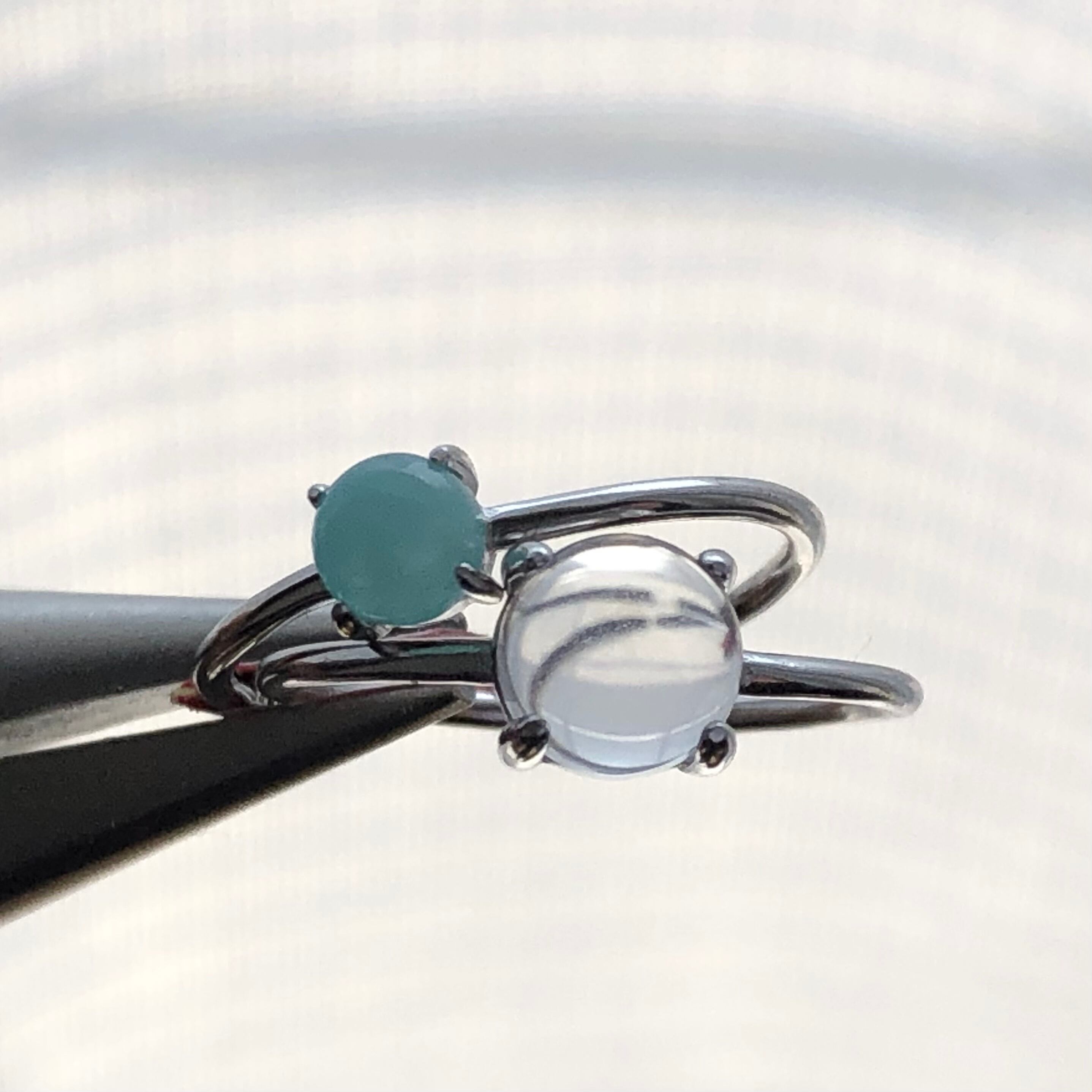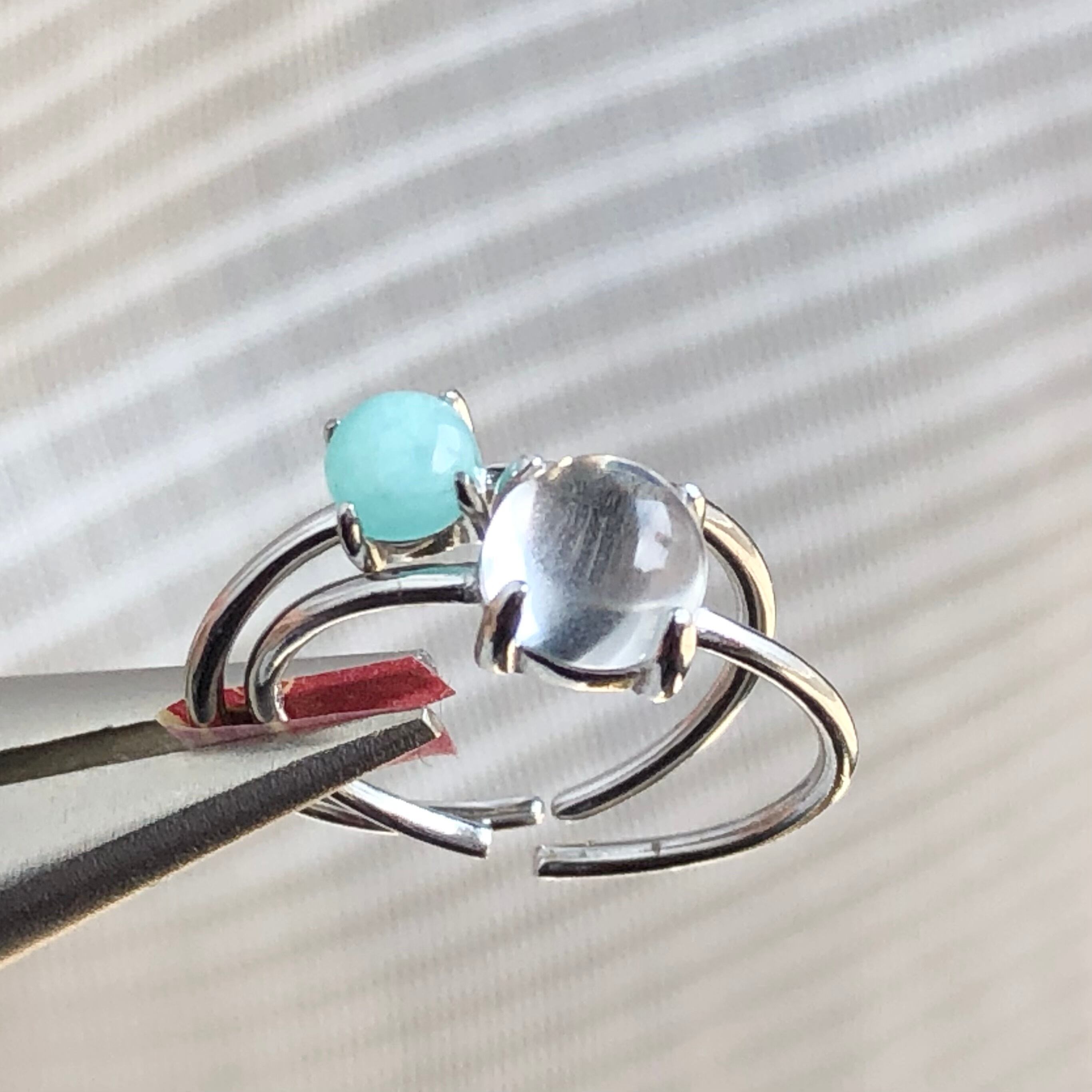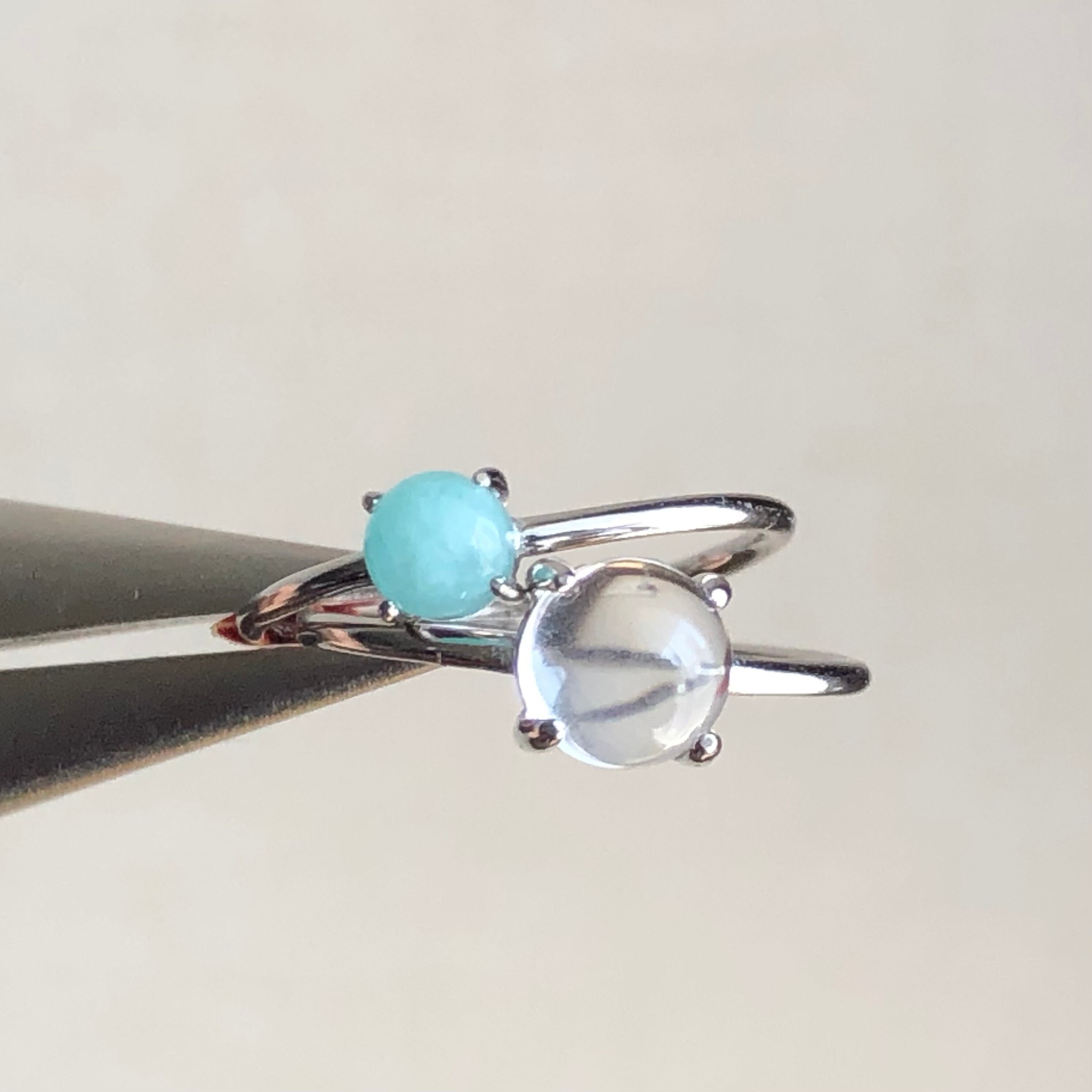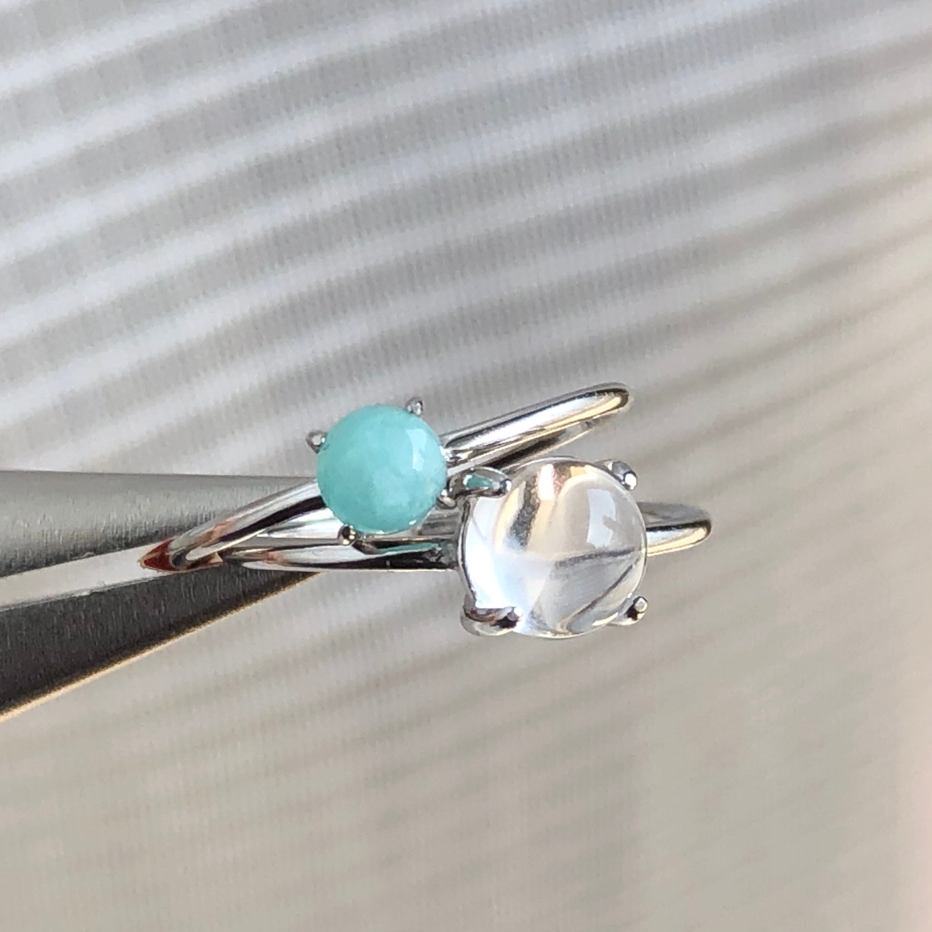 アマゾナイトとクリスタルのリングセットです。