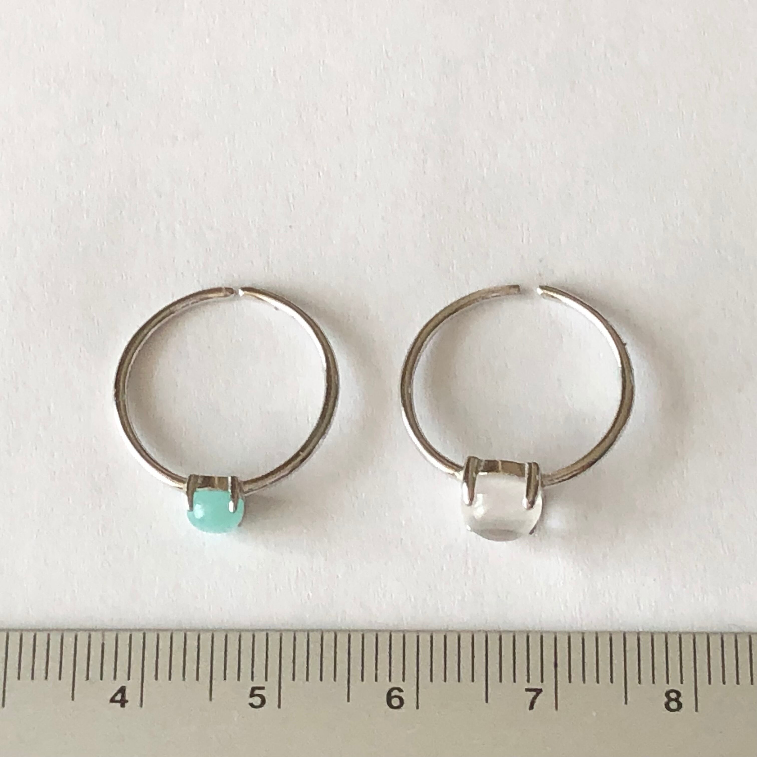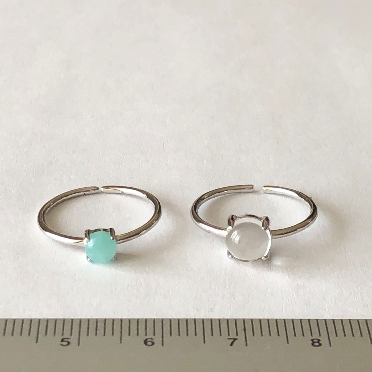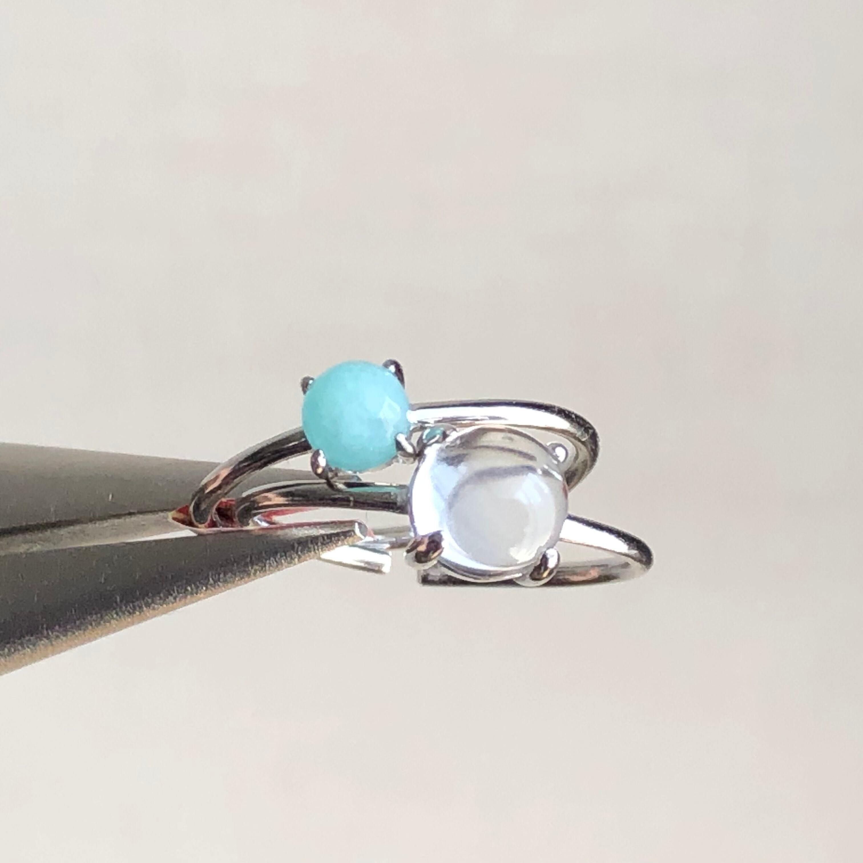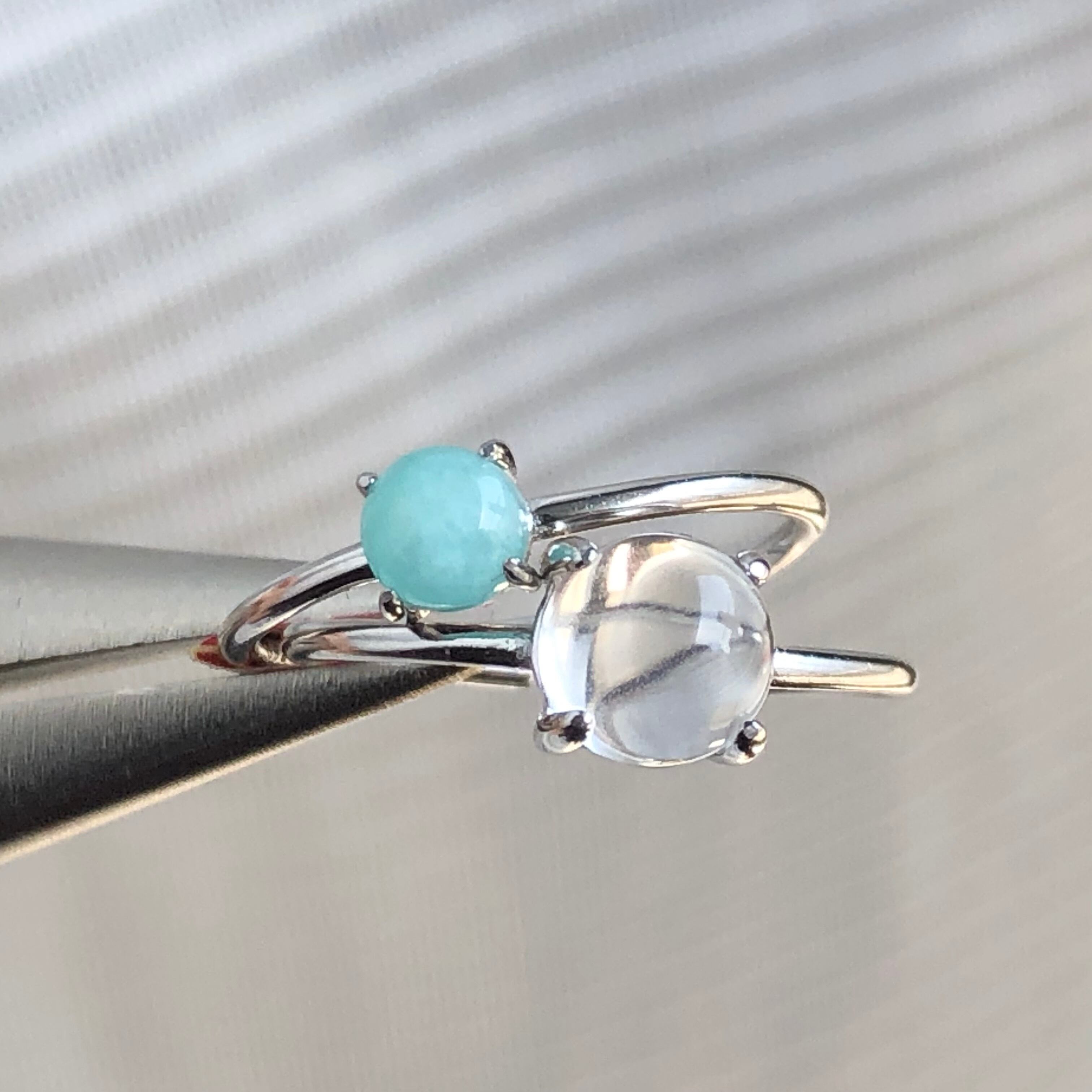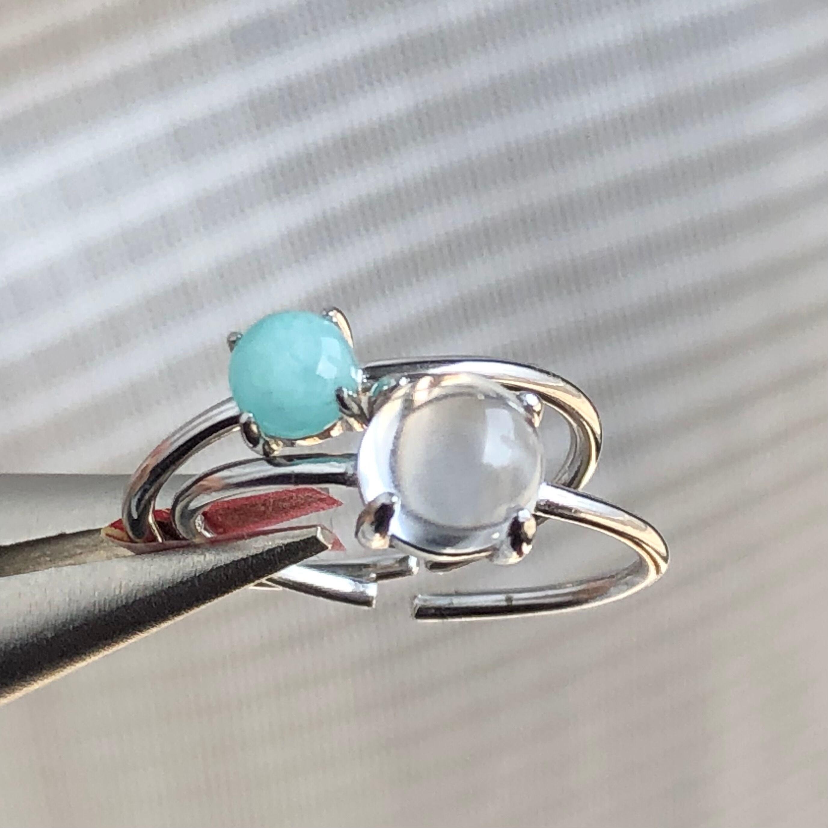 アマゾナイトとクリスタルのリングセットです。