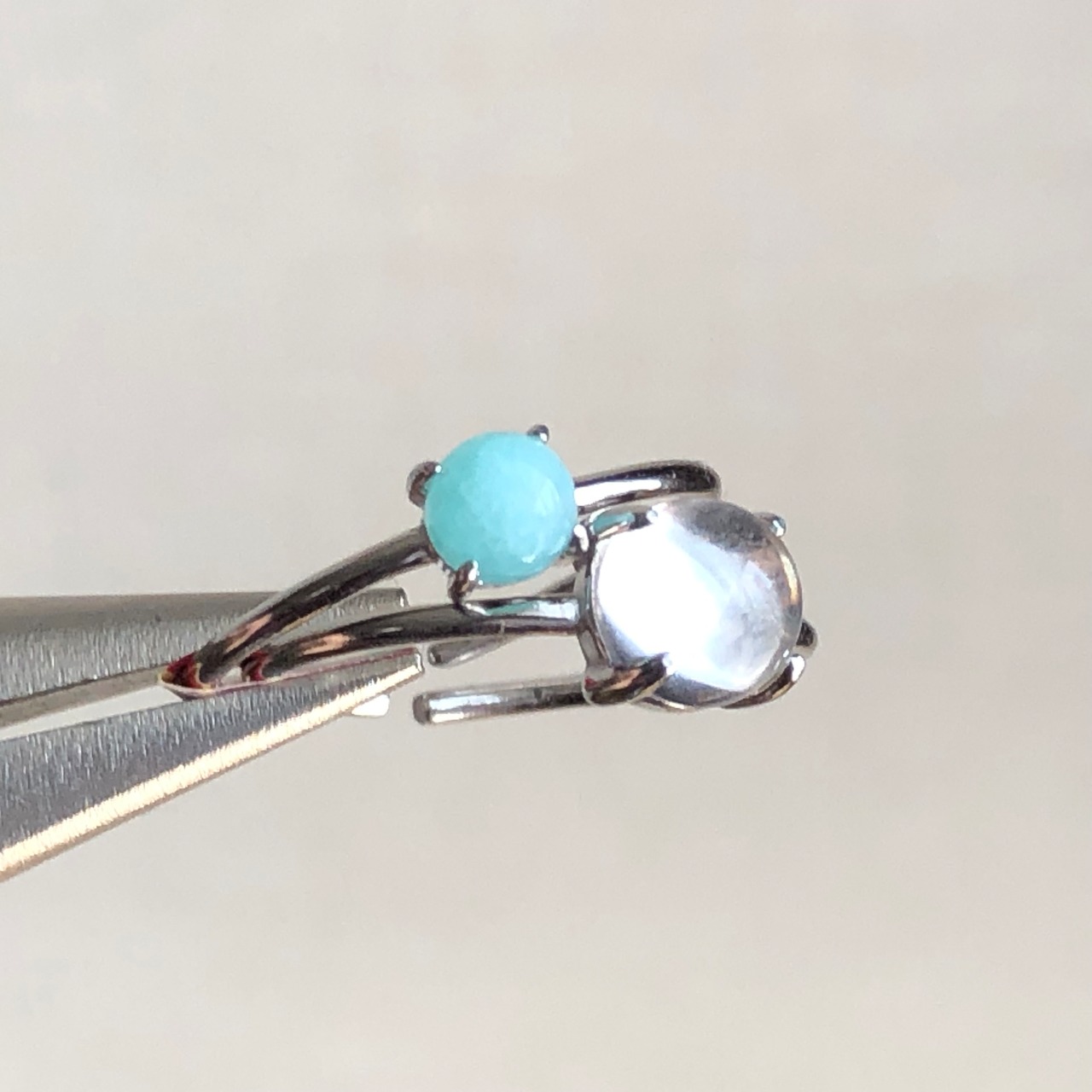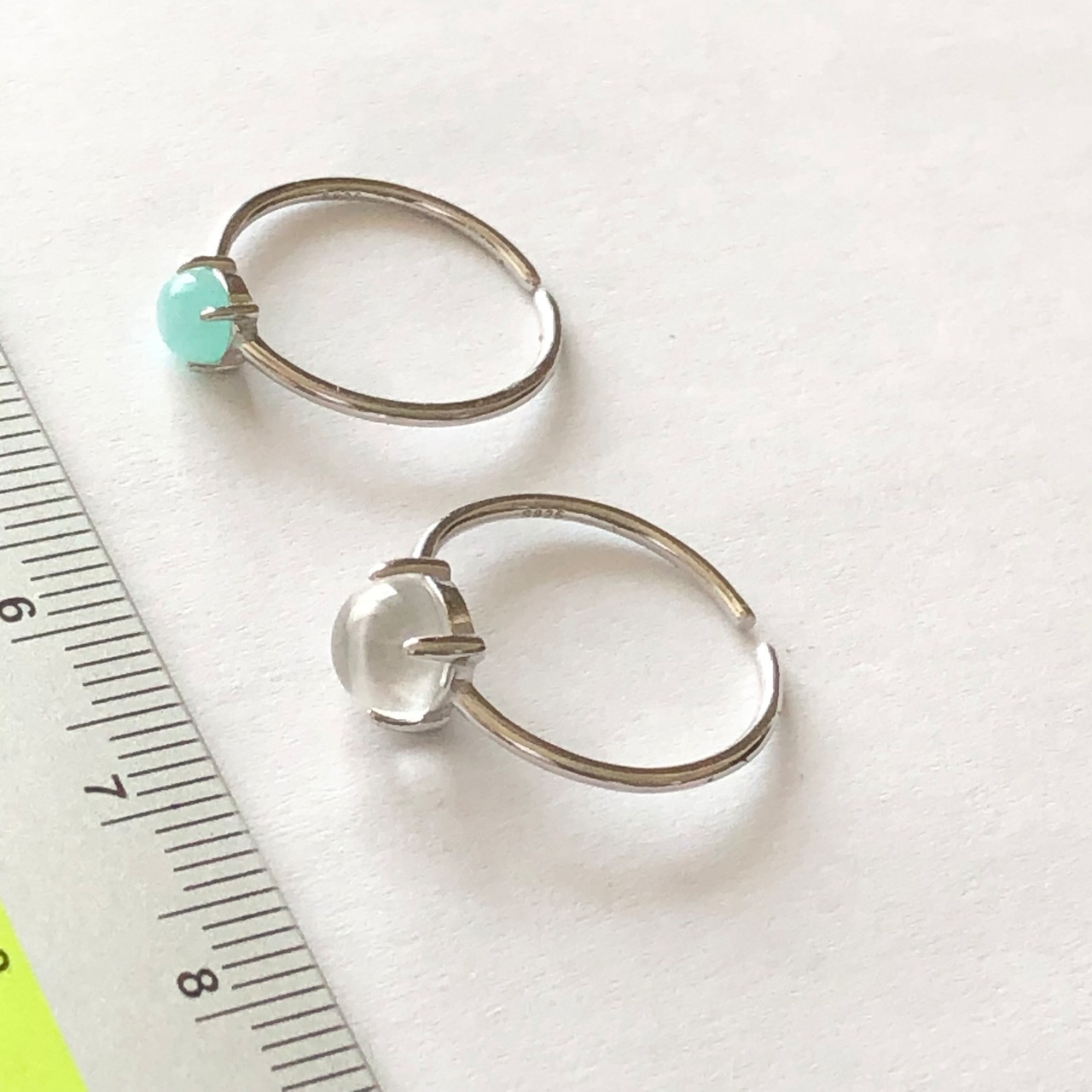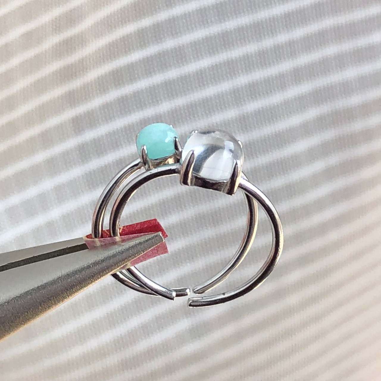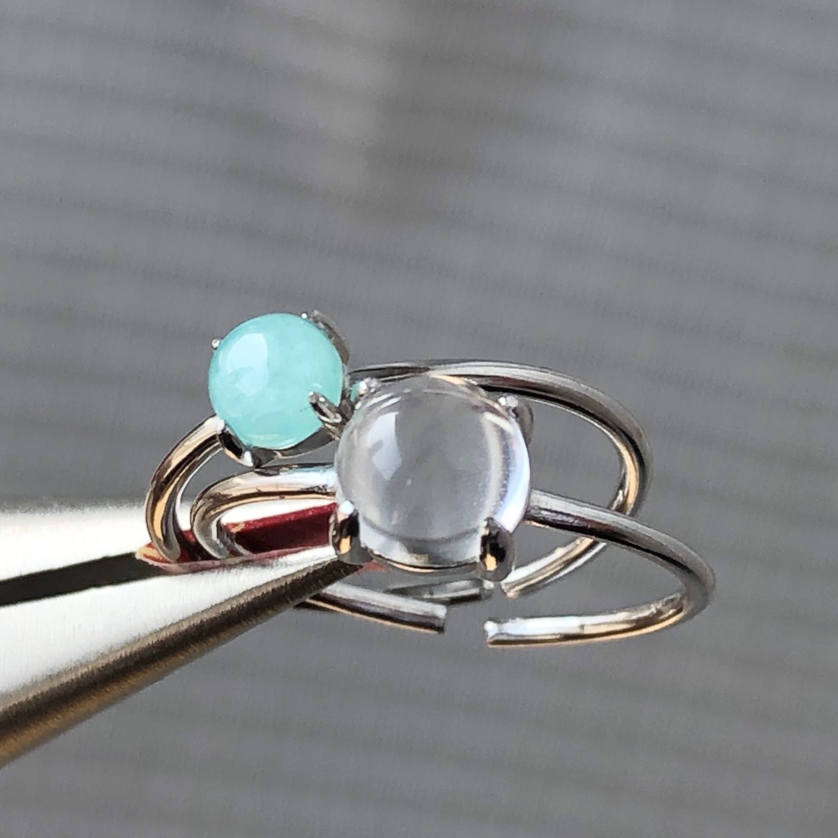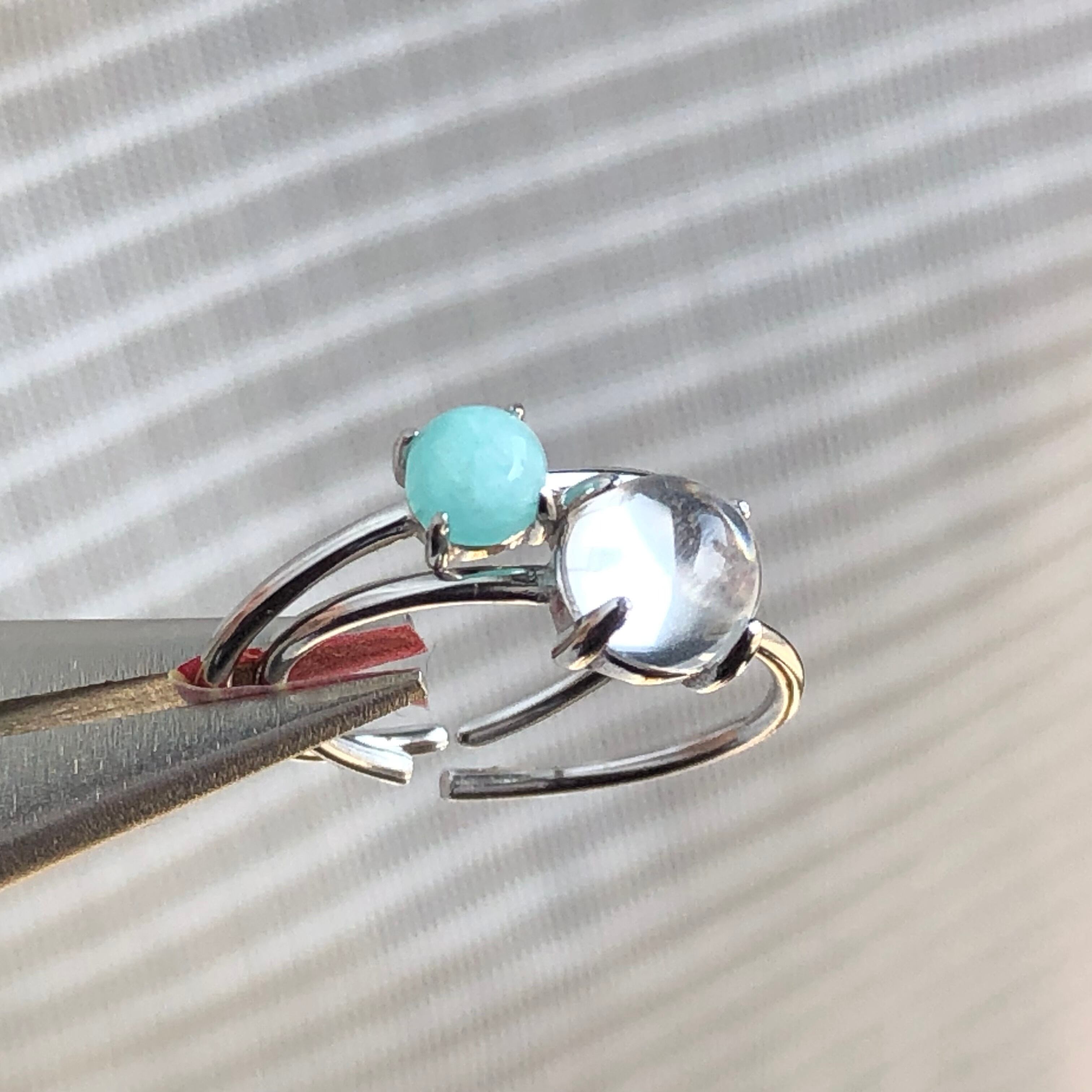 アマゾナイトとクリスタルのリングセットです。