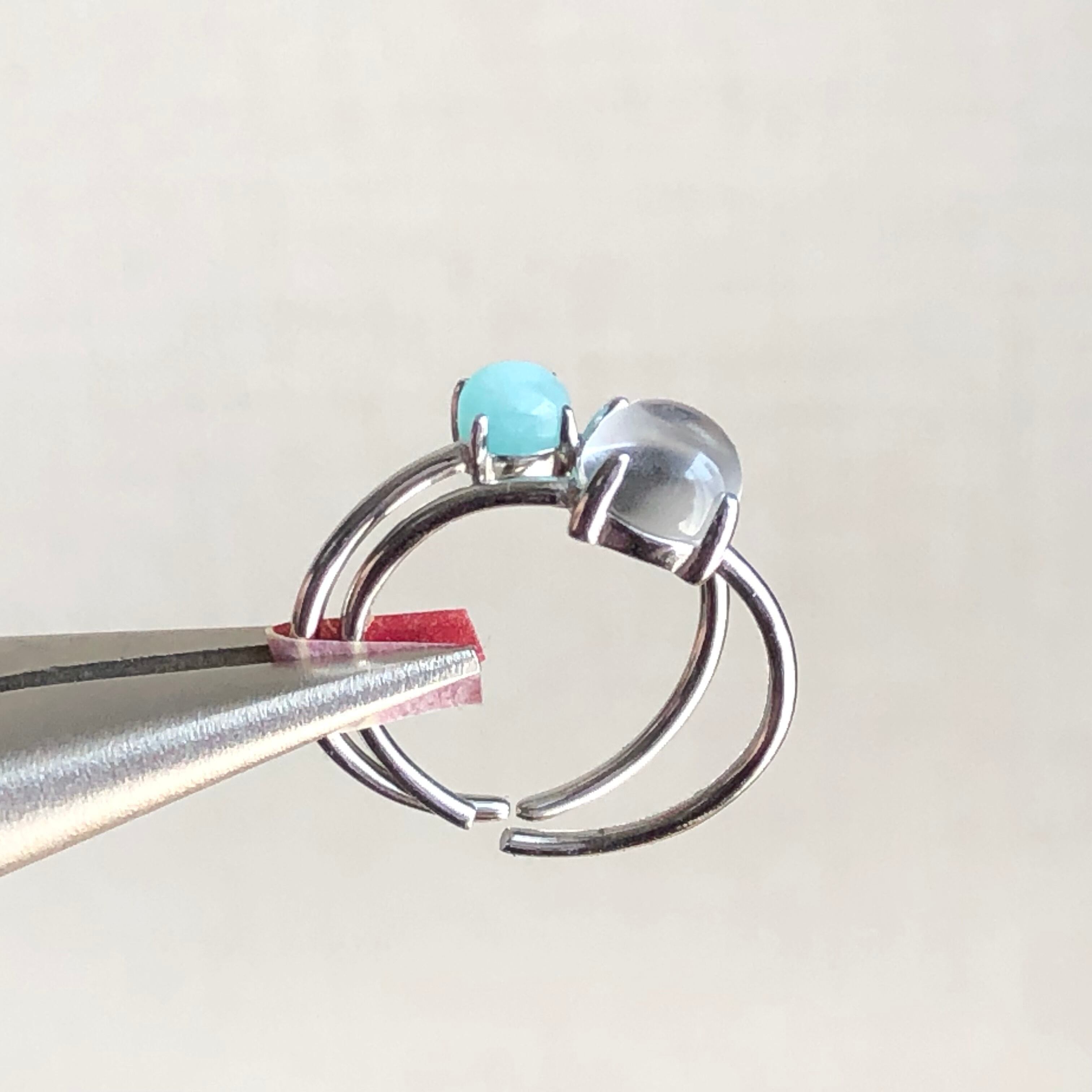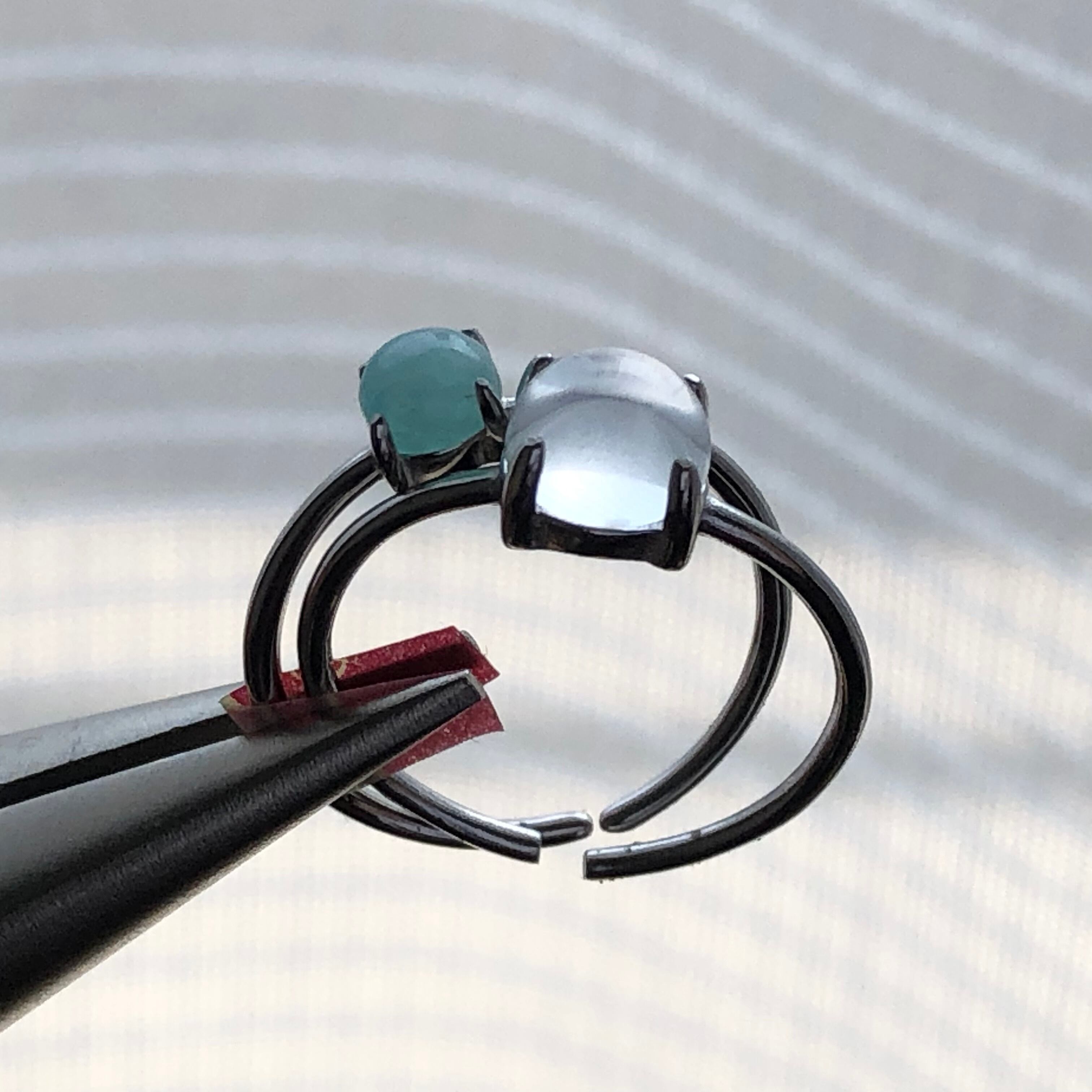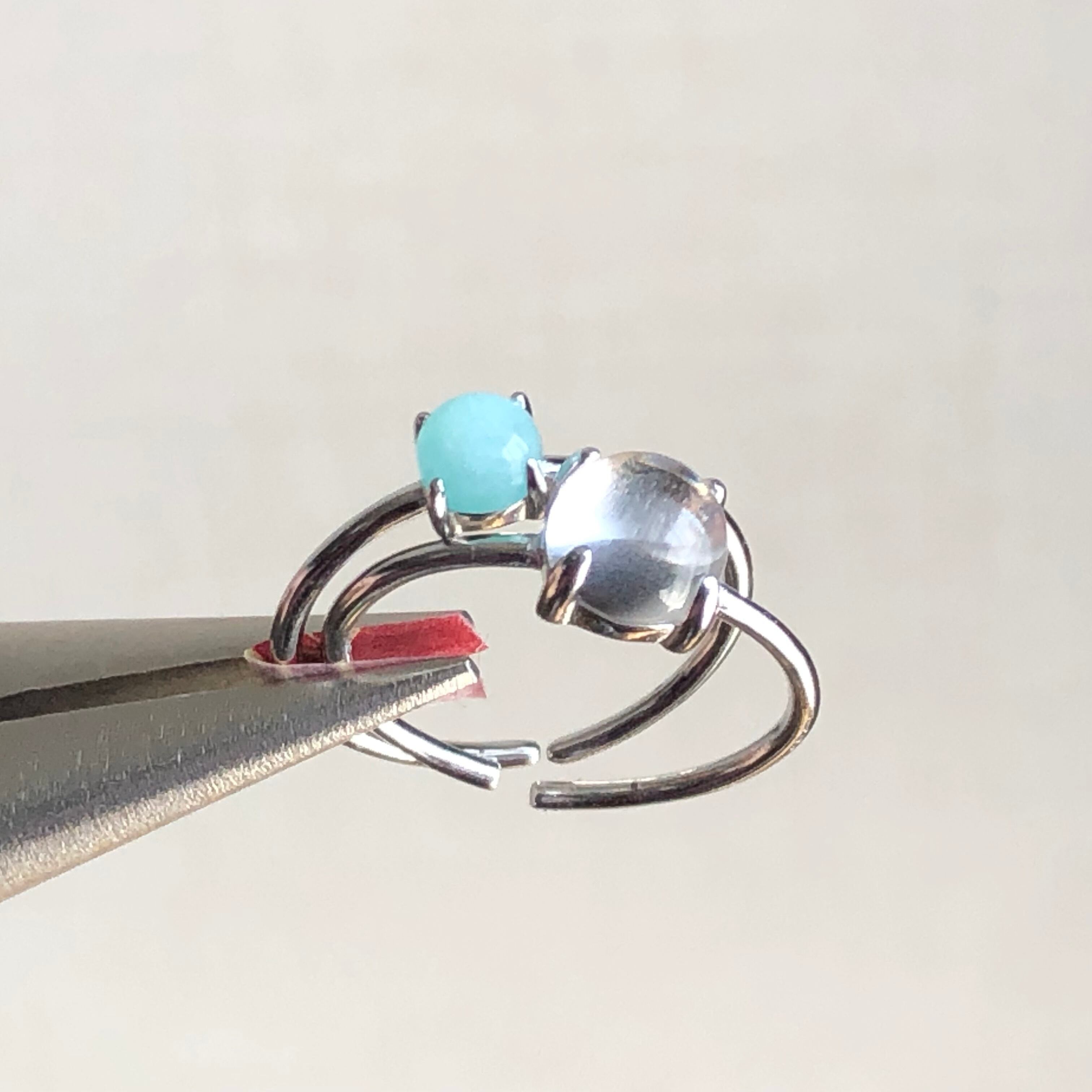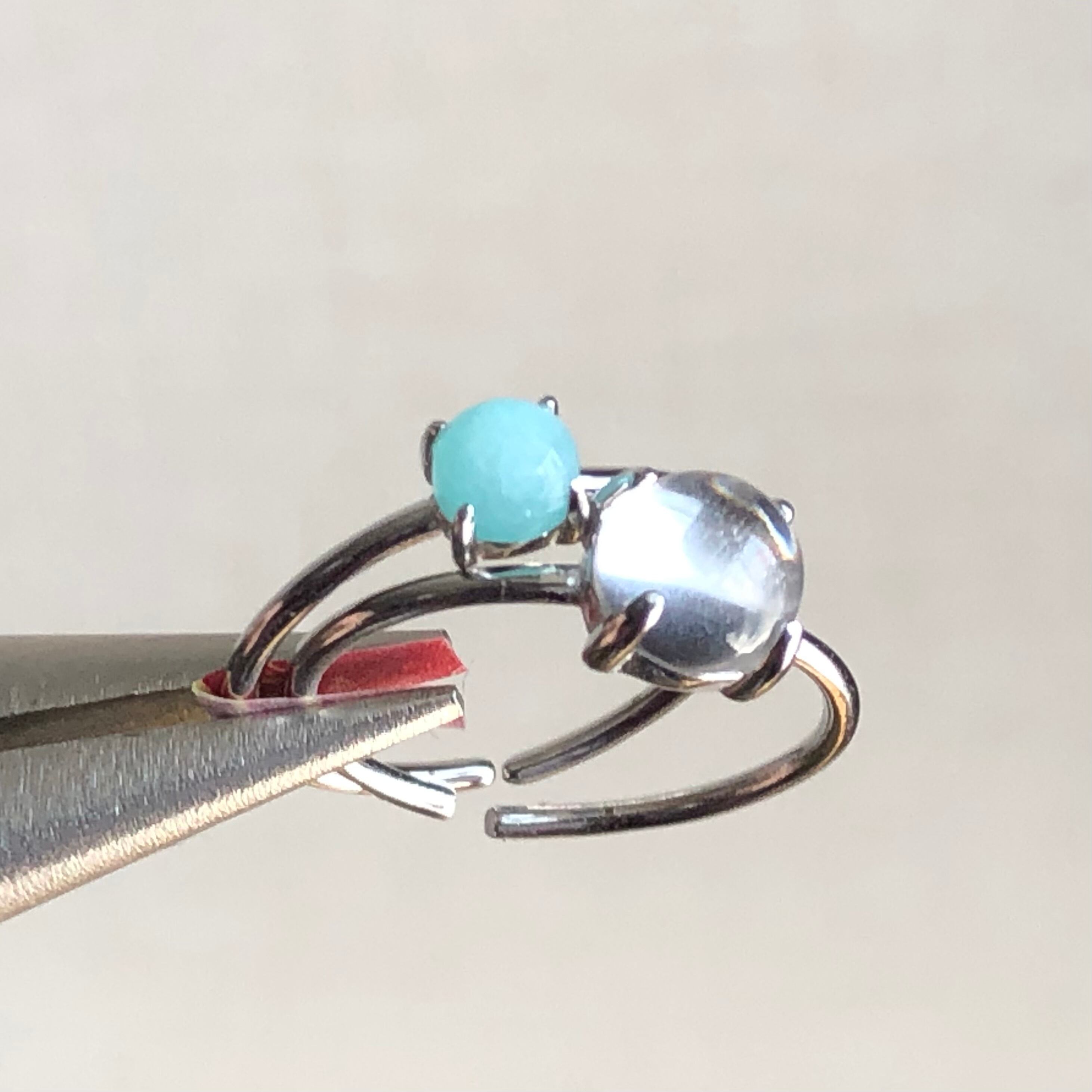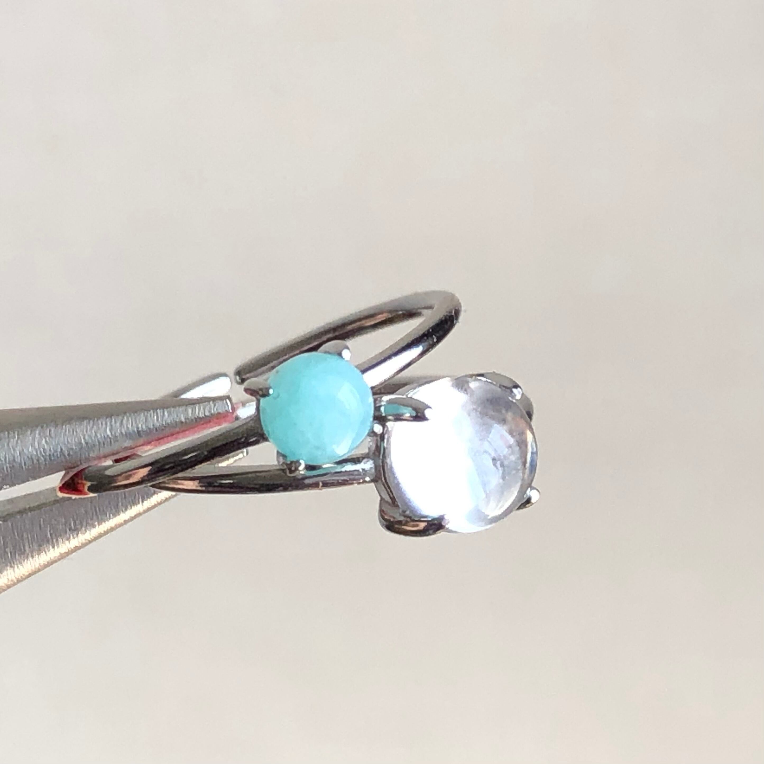 アマゾナイトとクリスタルのリングセットです。
