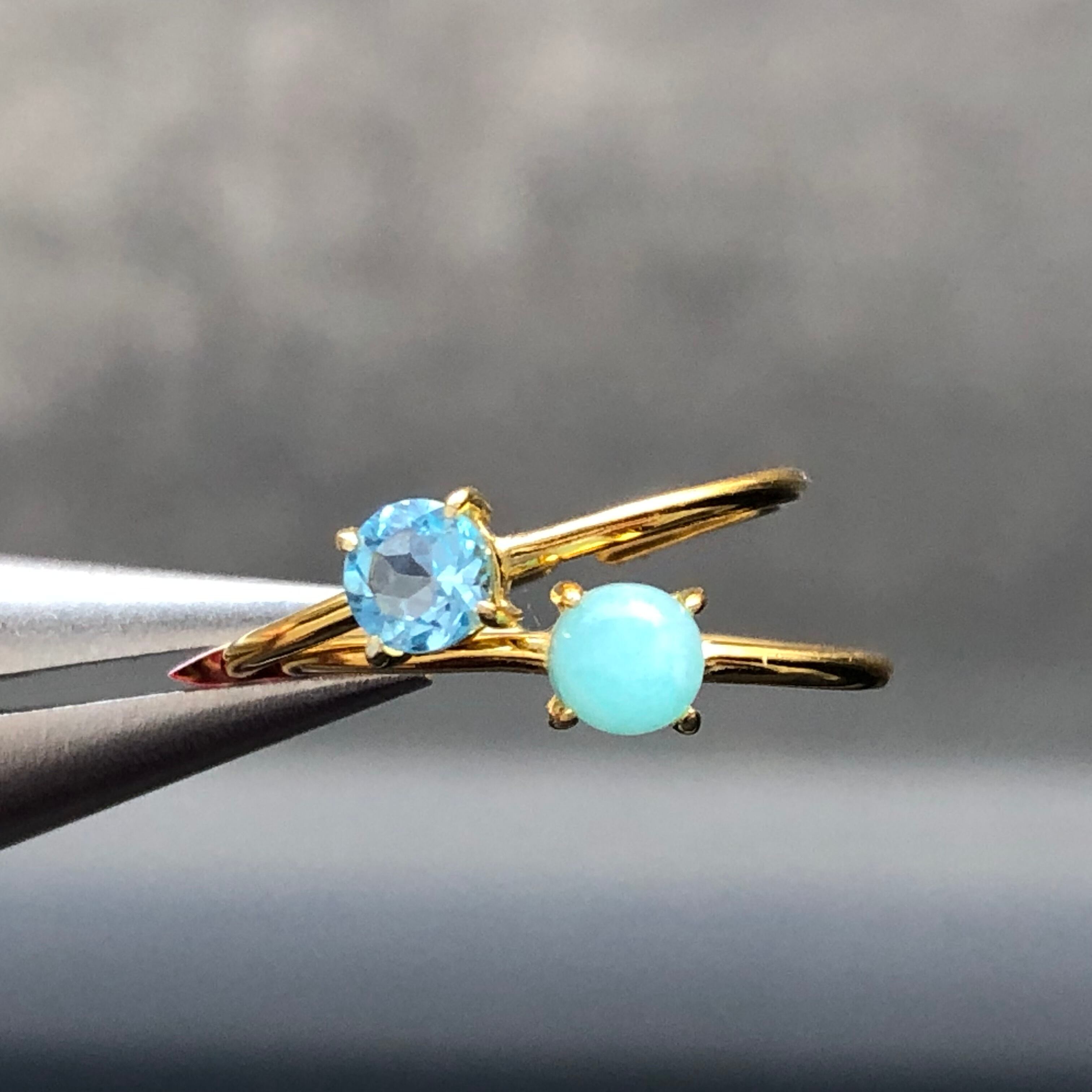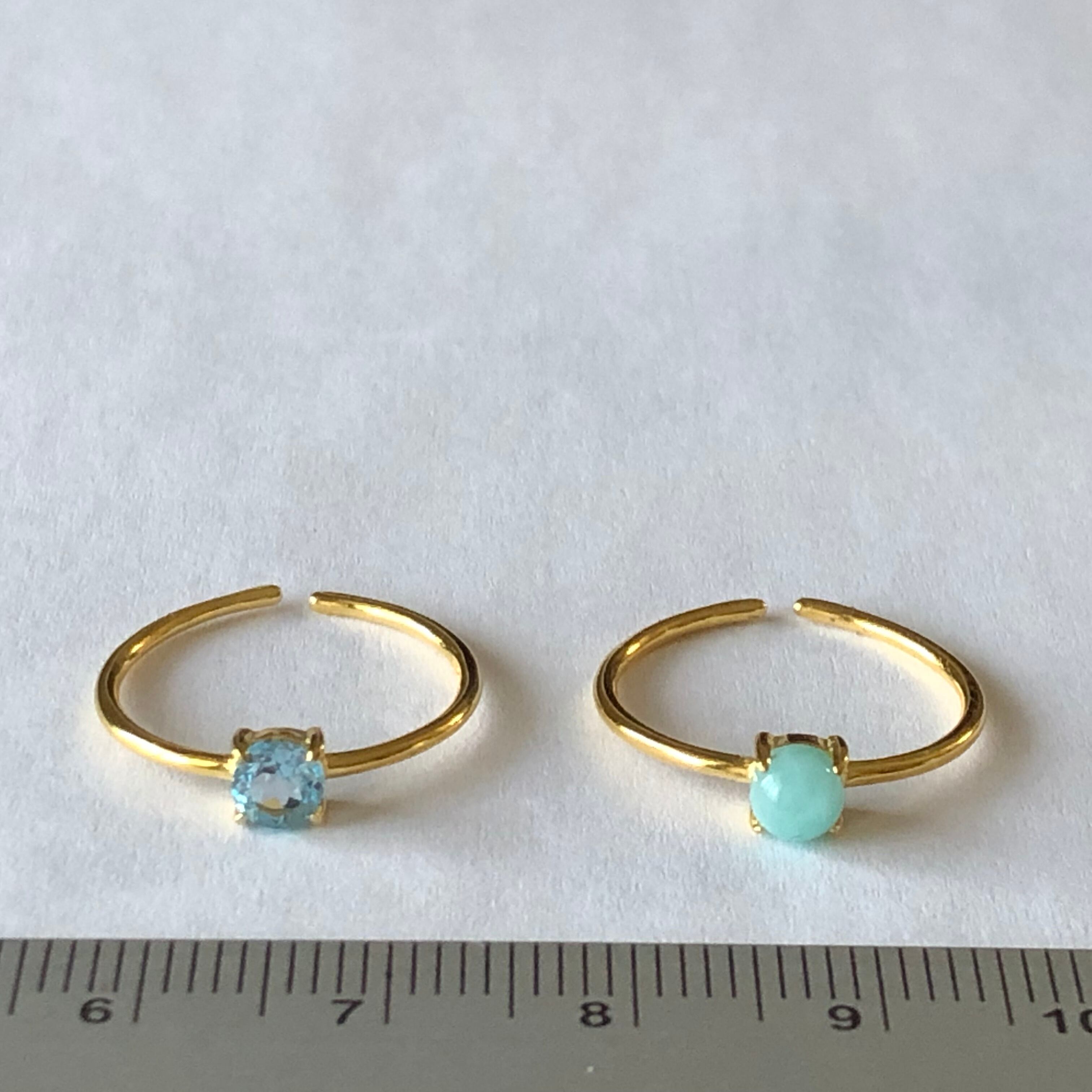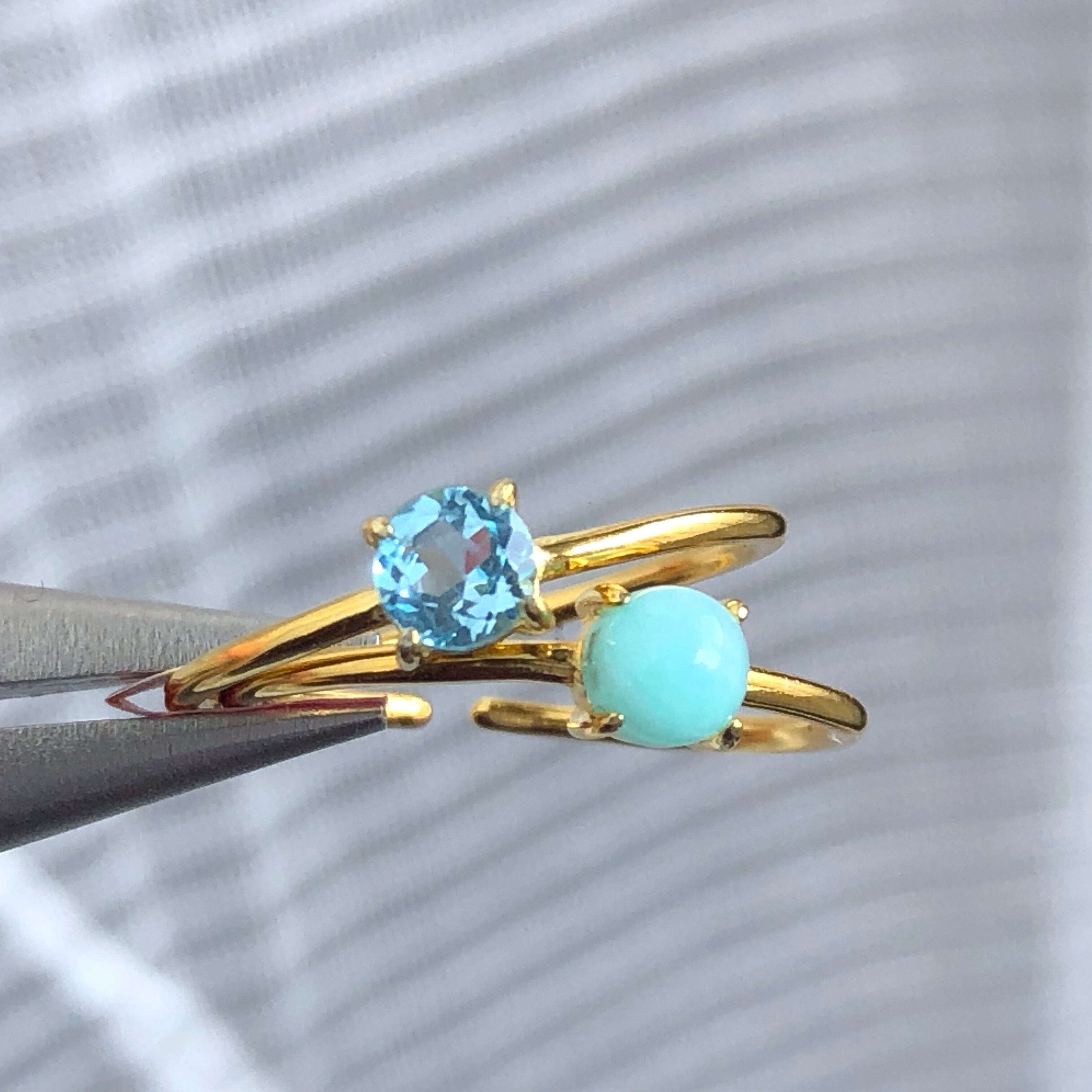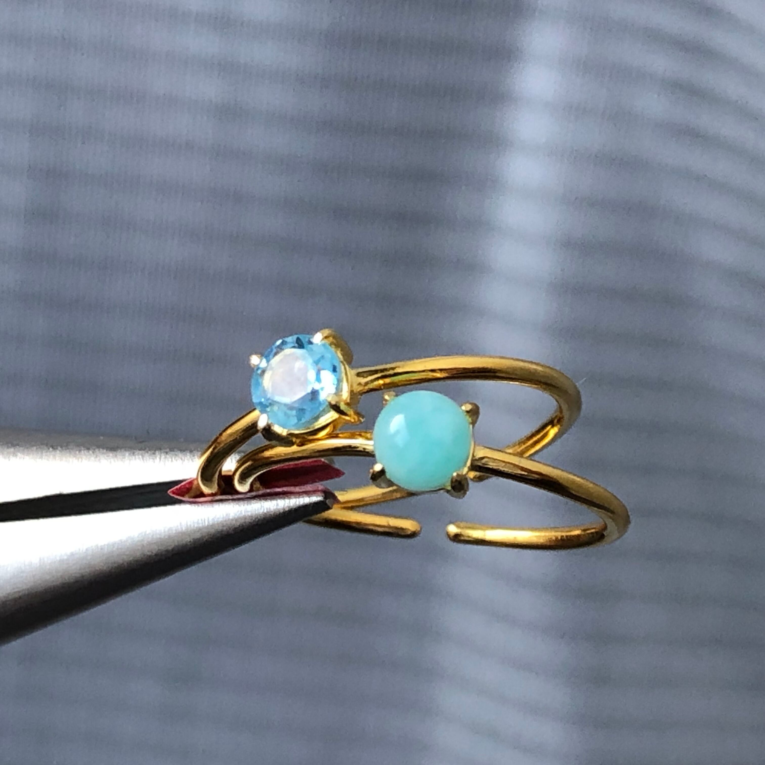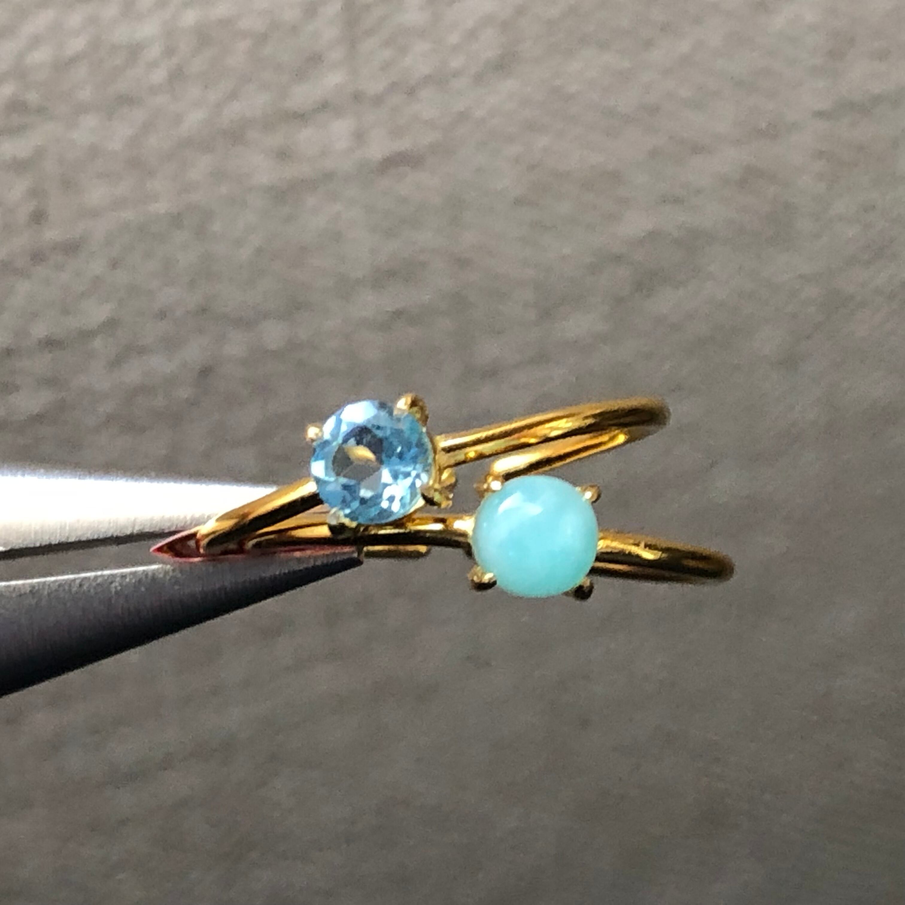スイスブルートパーズとアマゾナイトのリングセットです。