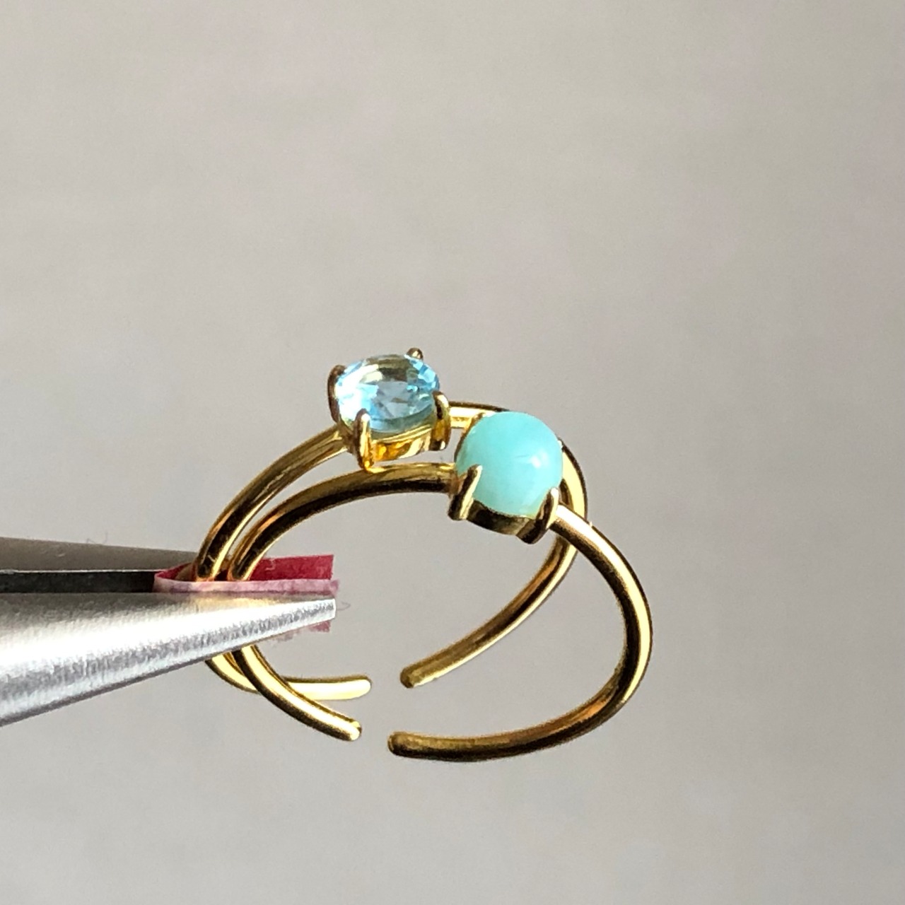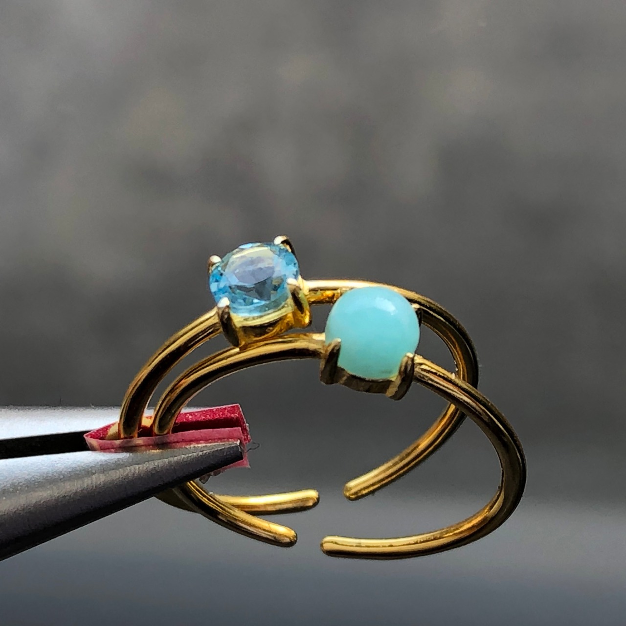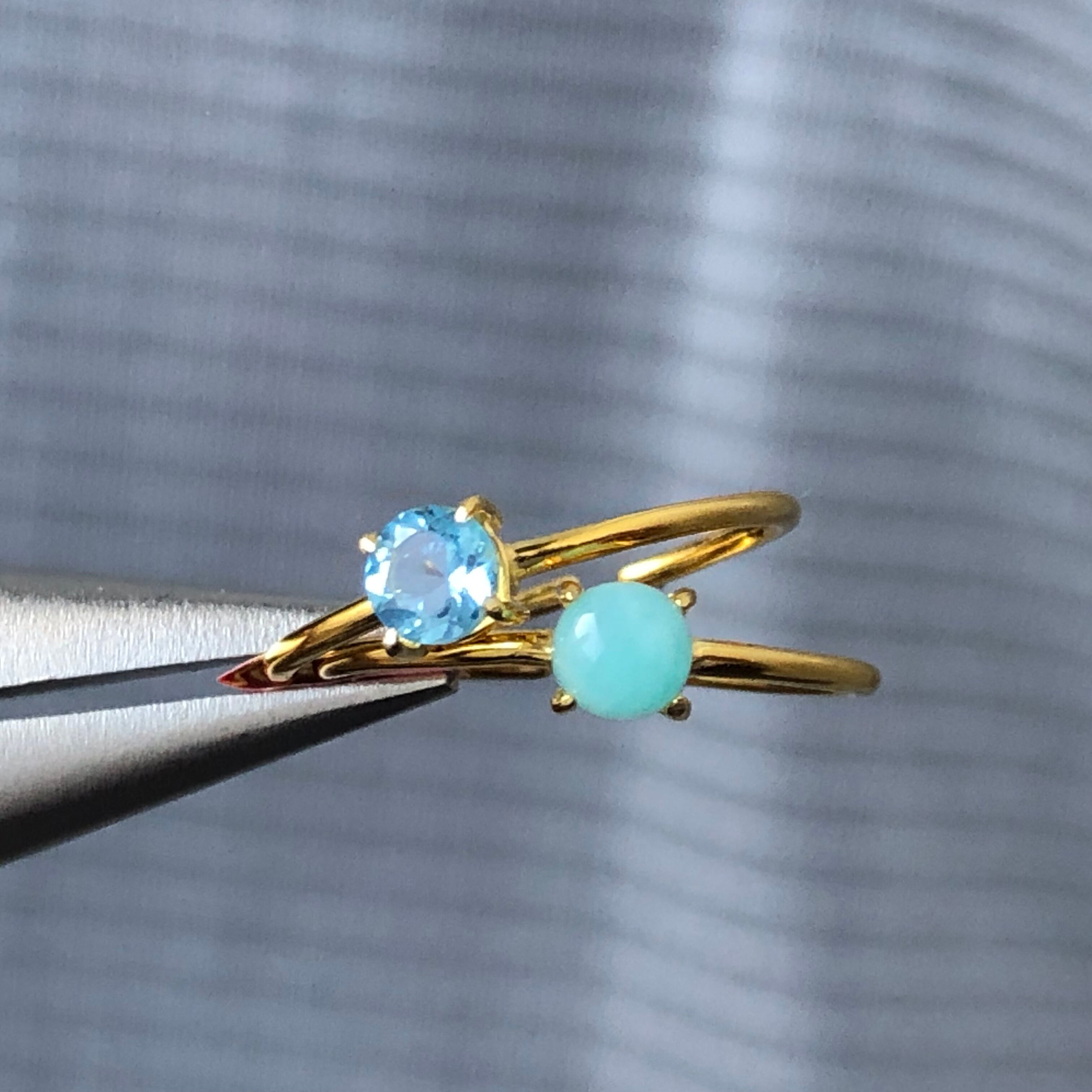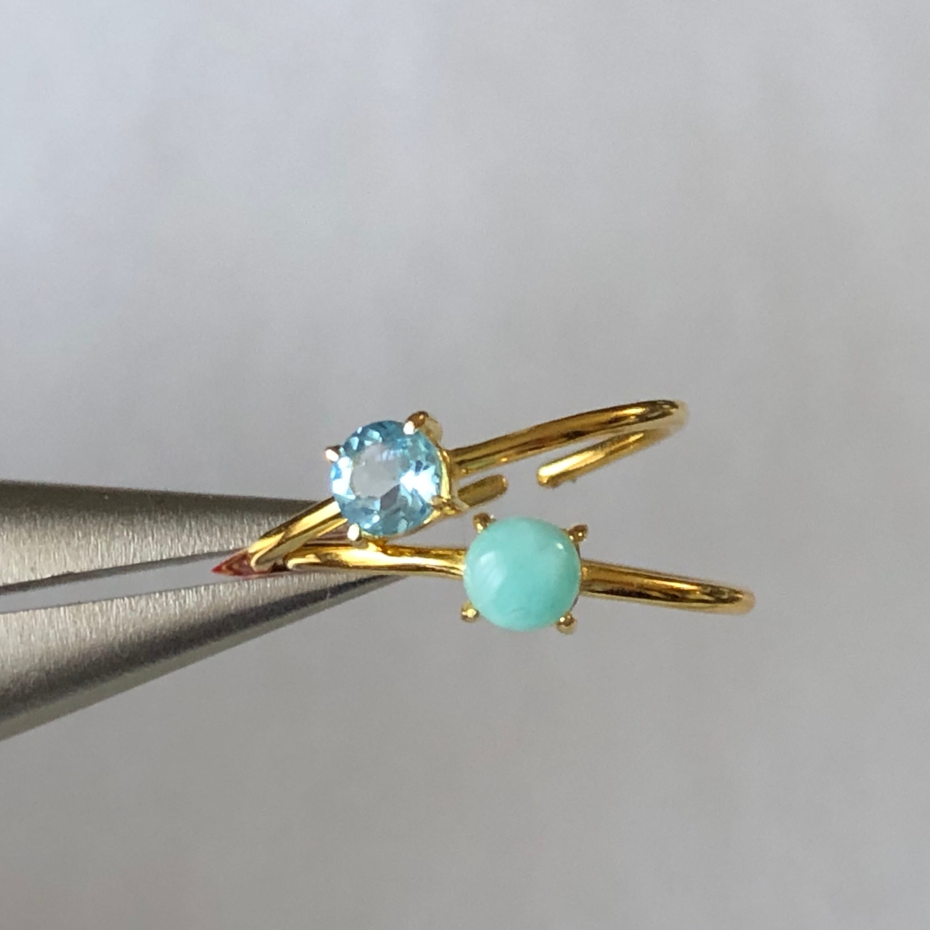 スイスブルートパーズとアマゾナイトのリングセットです。