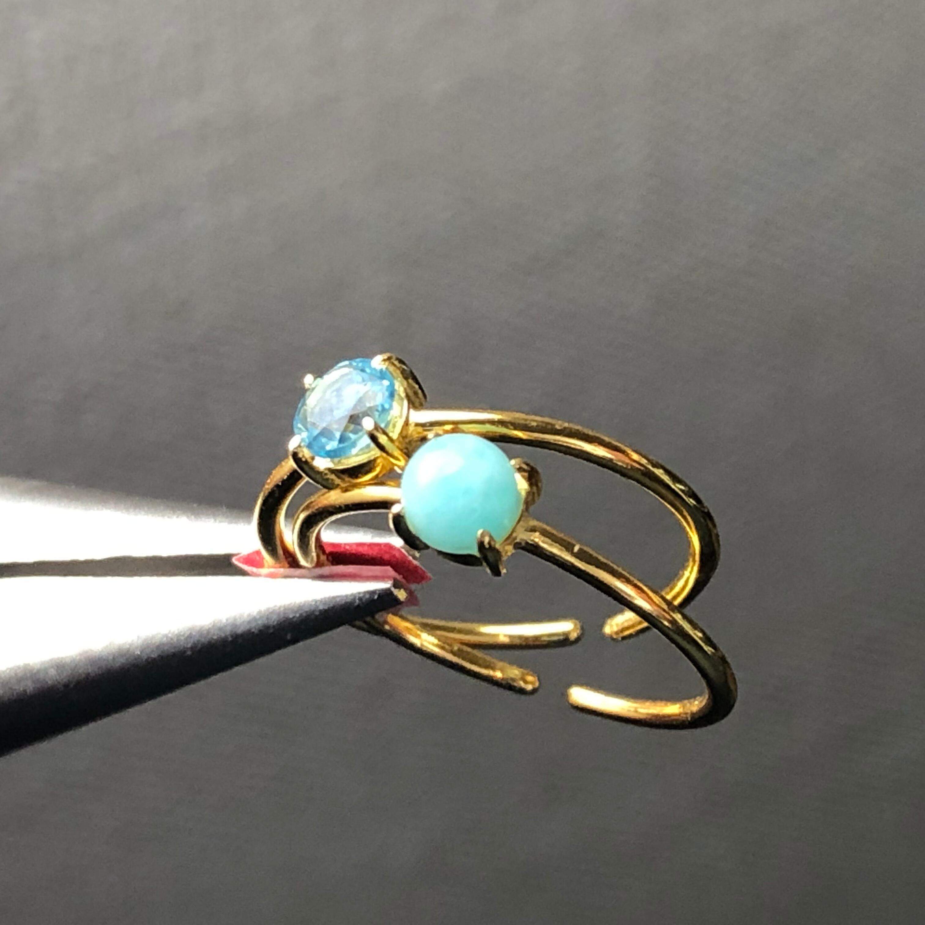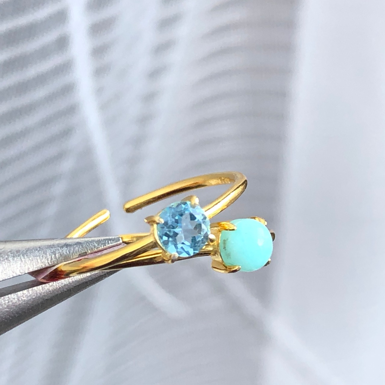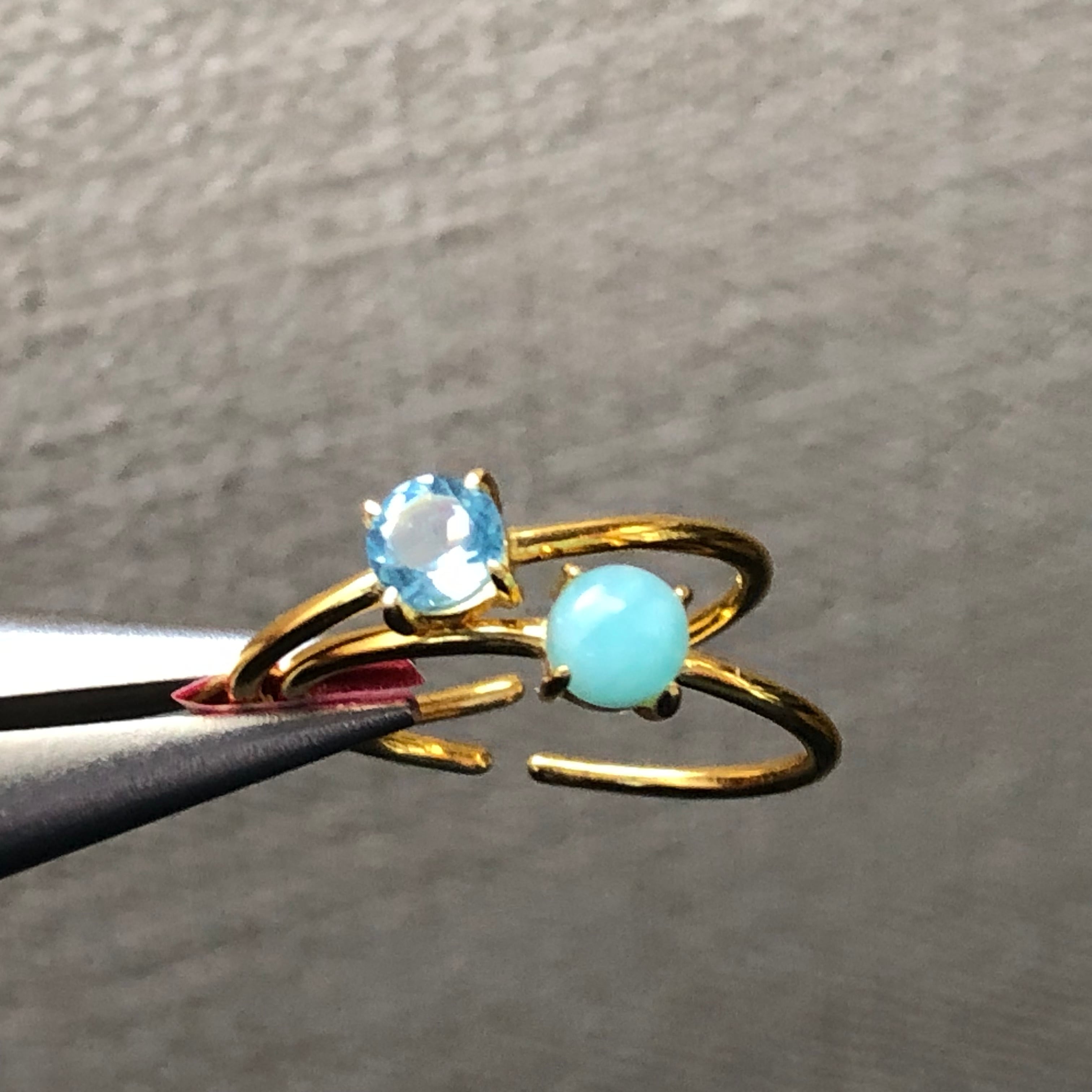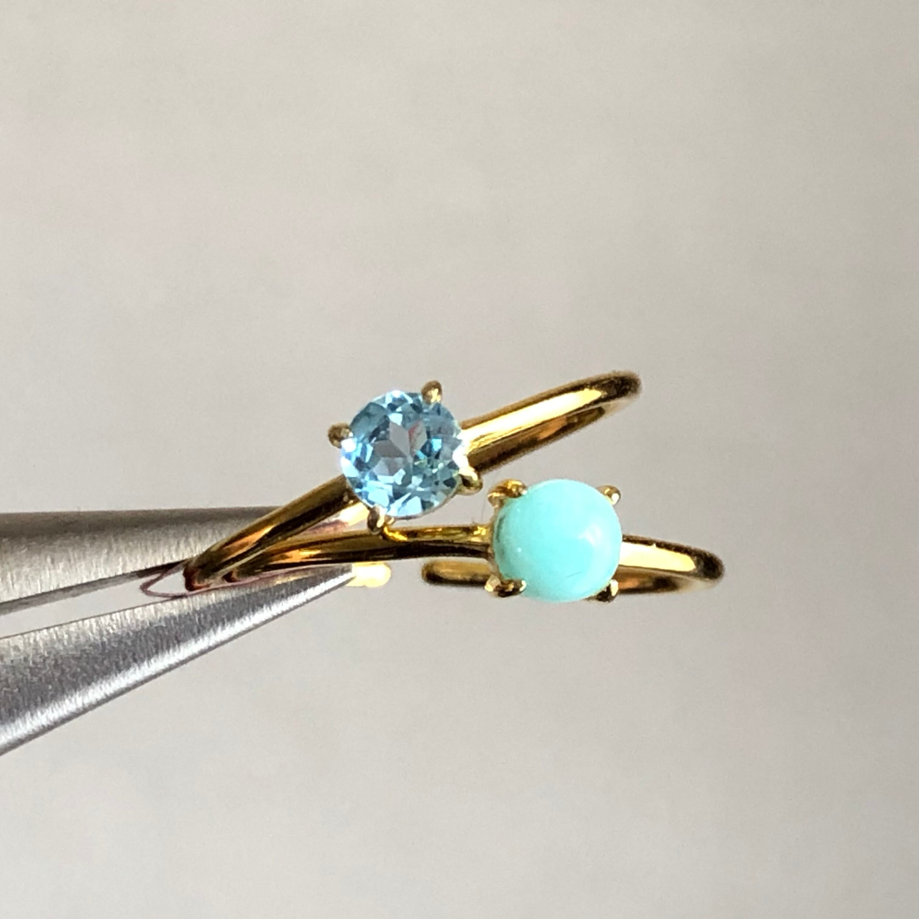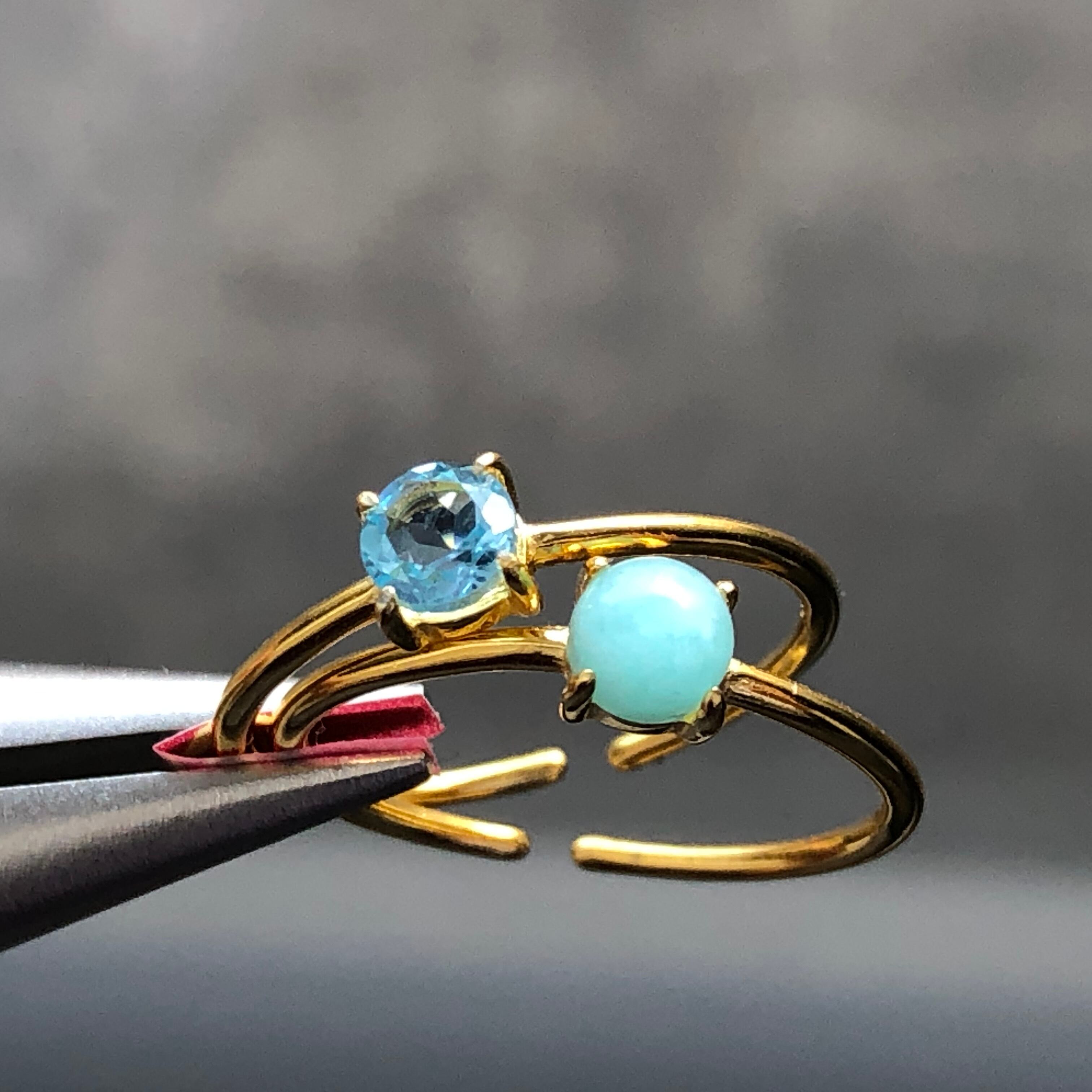スイスブルートパーズとアマゾナイトのリングセットです。