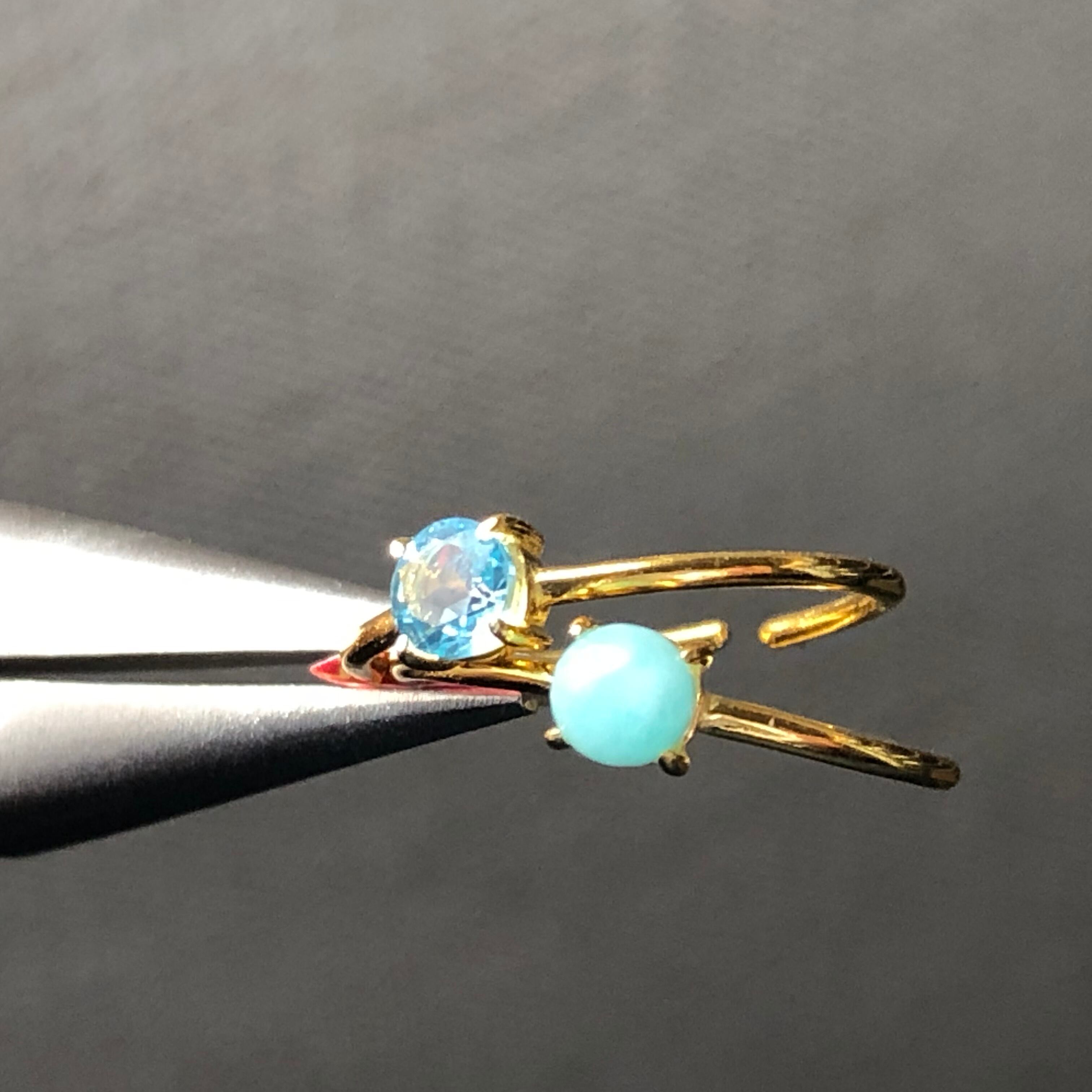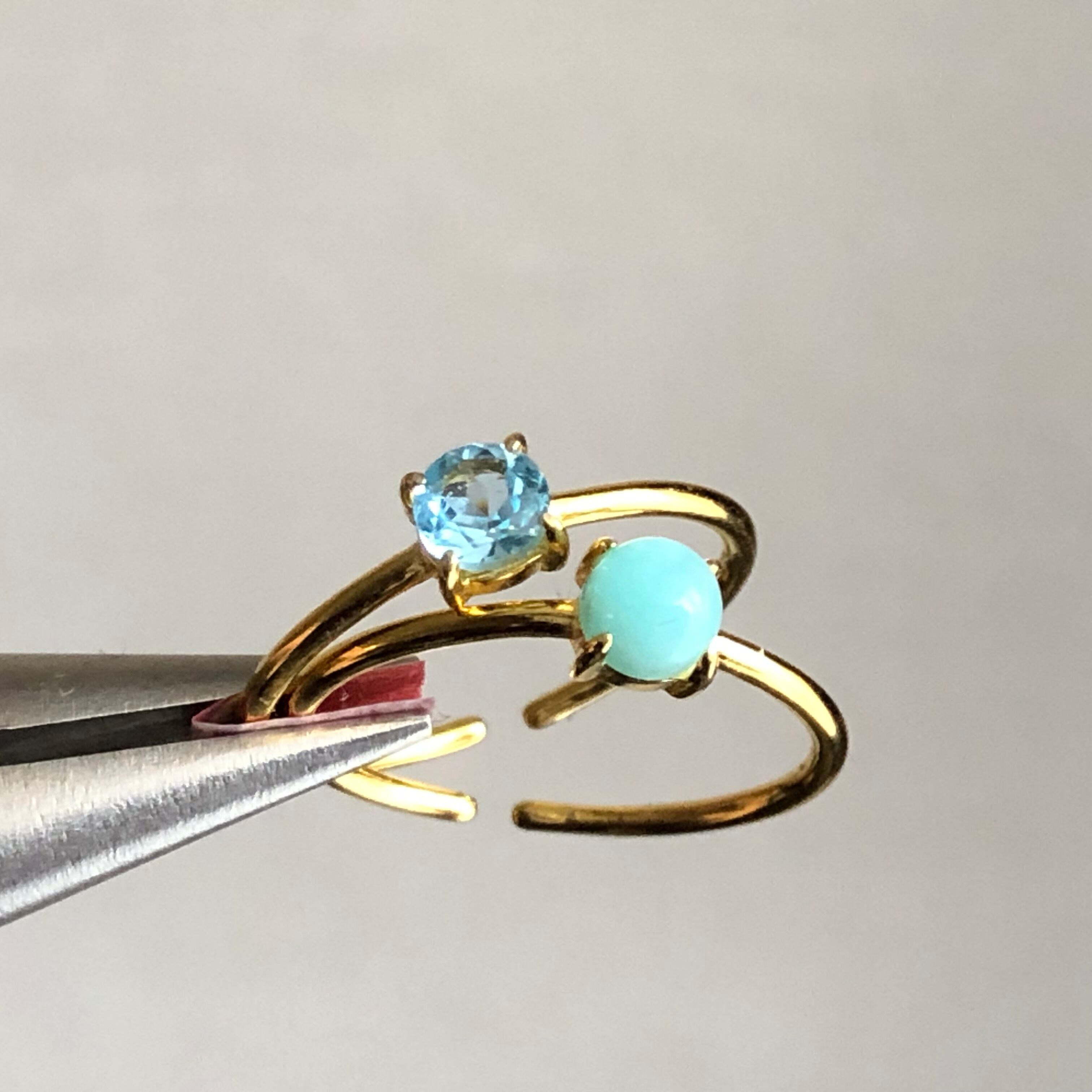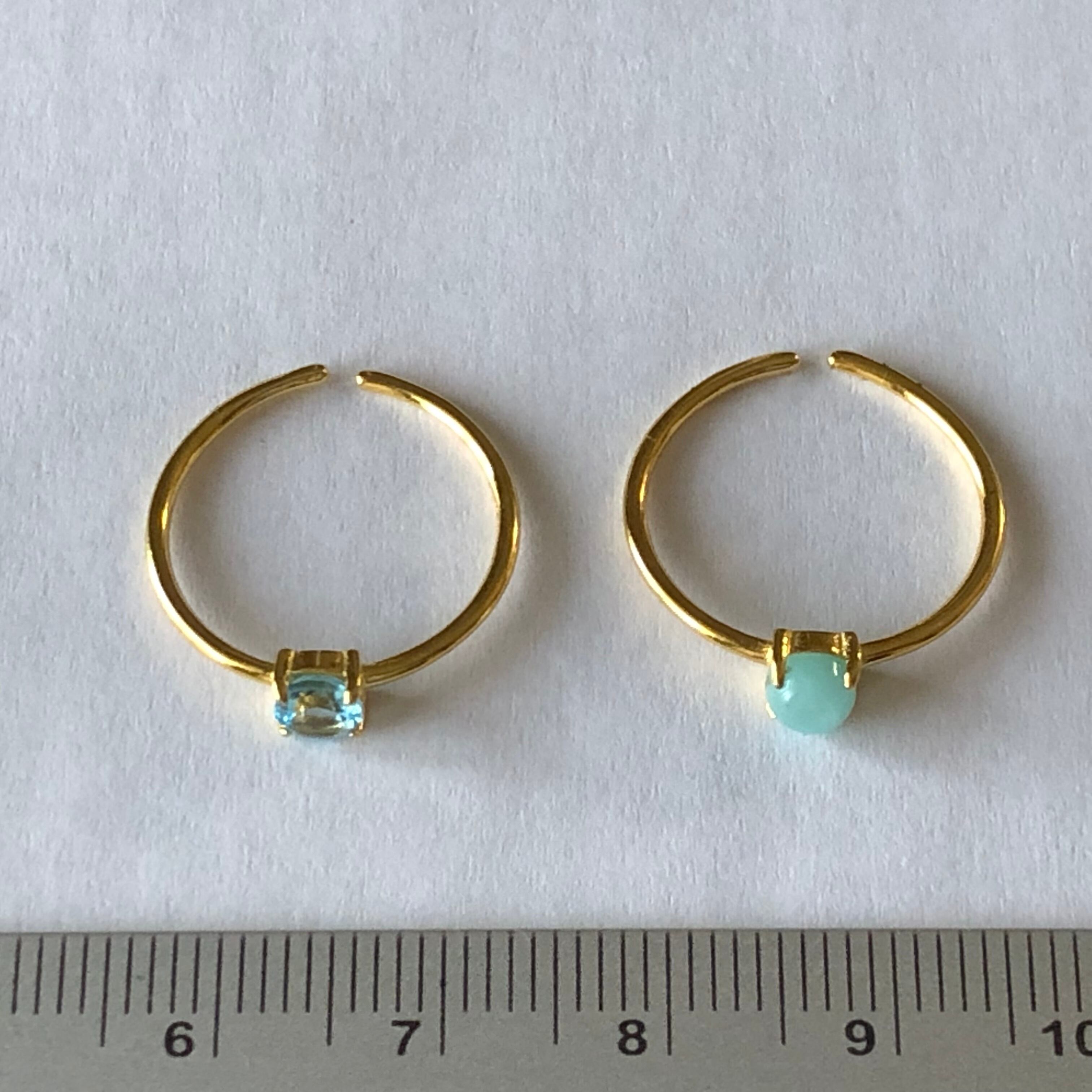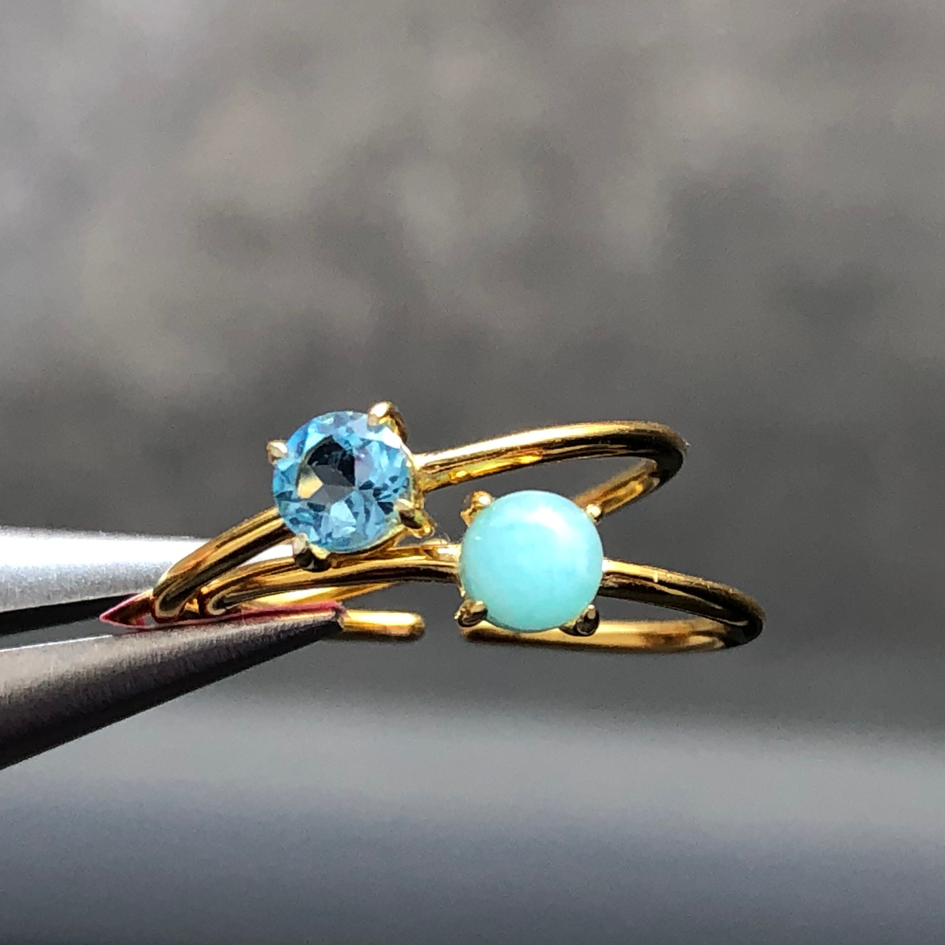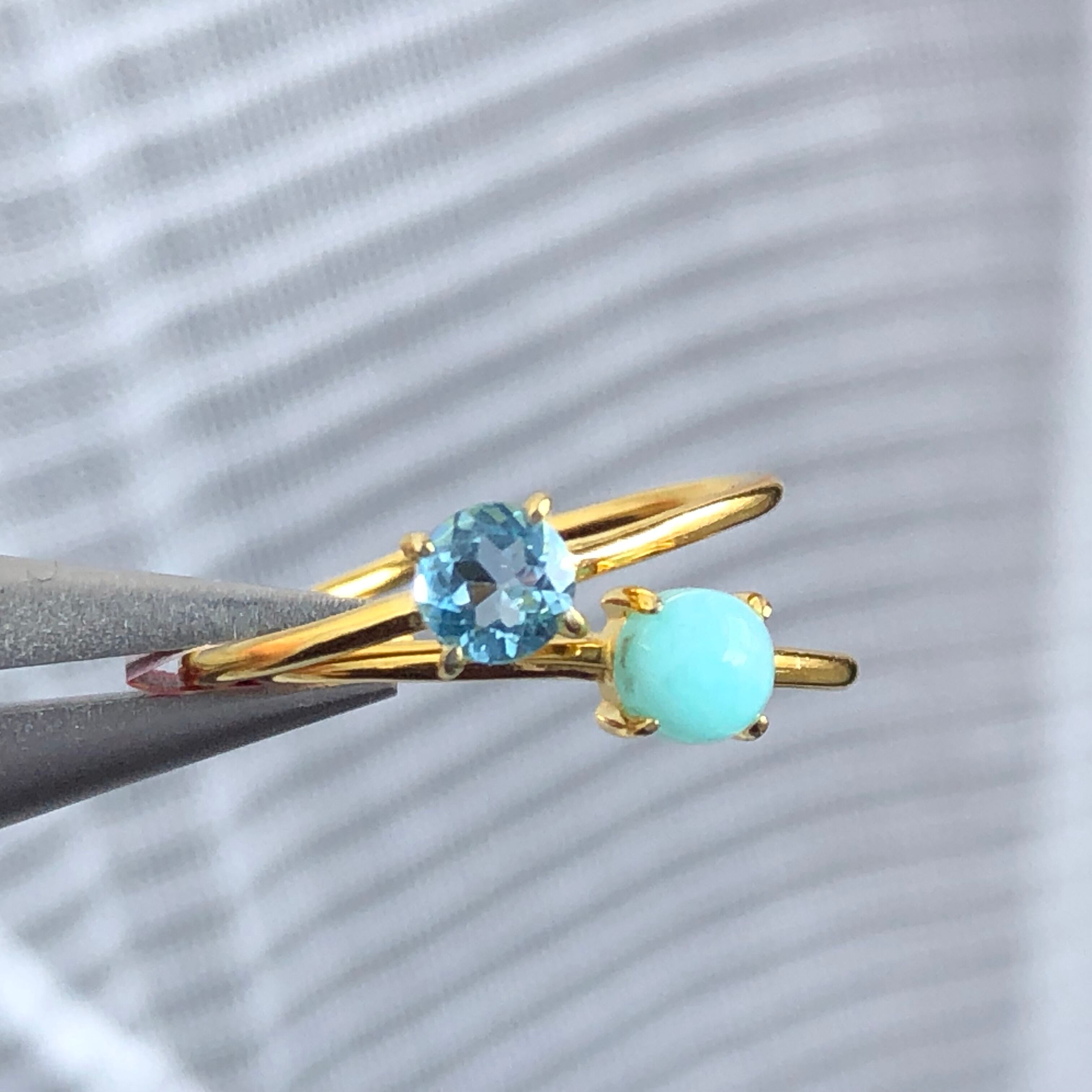 スイスブルートパーズとアマゾナイトのリングセットです。