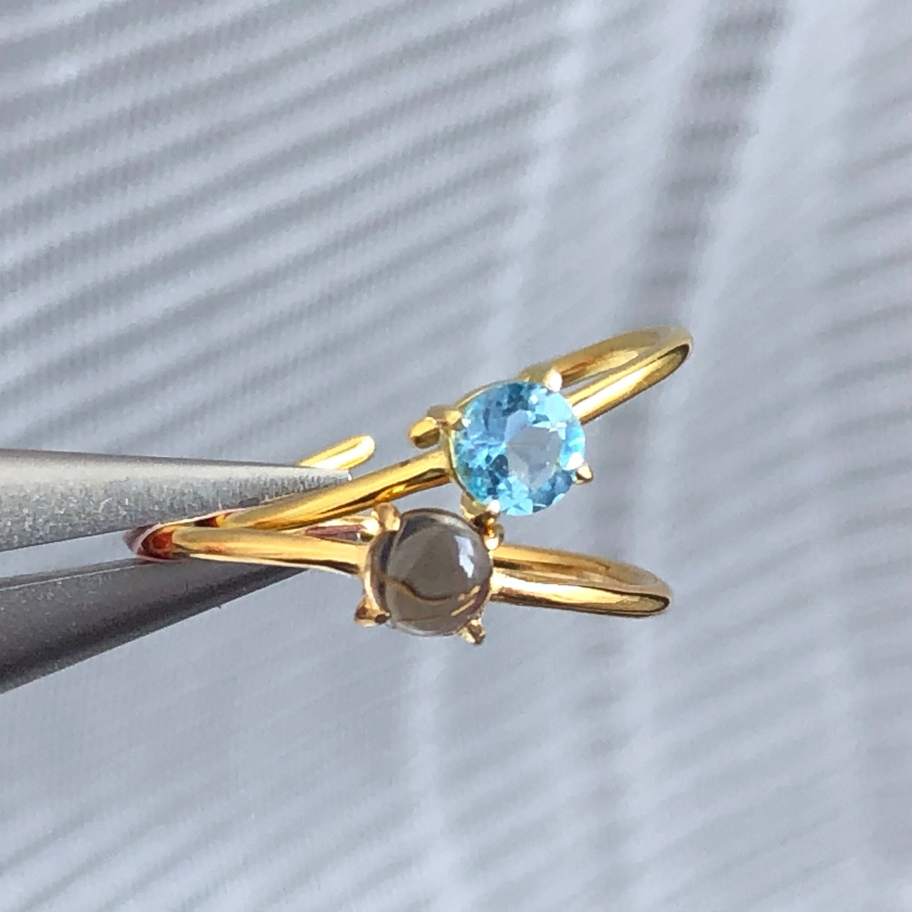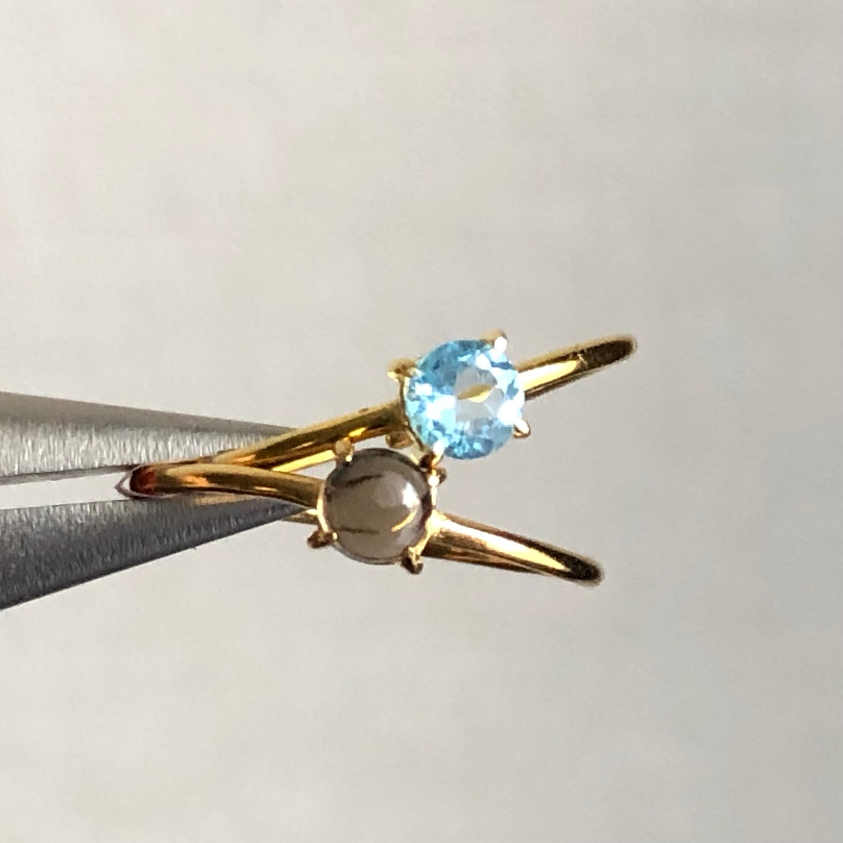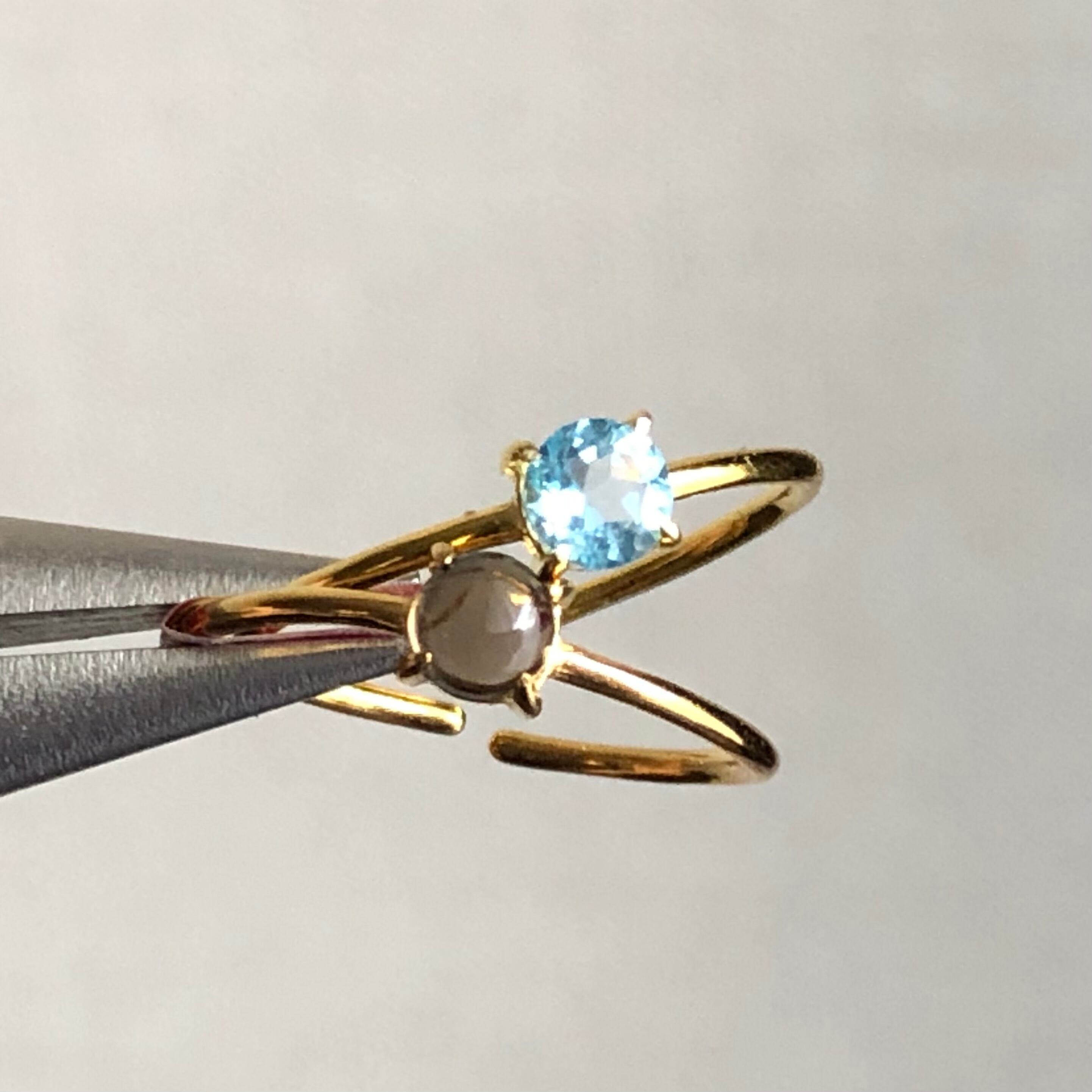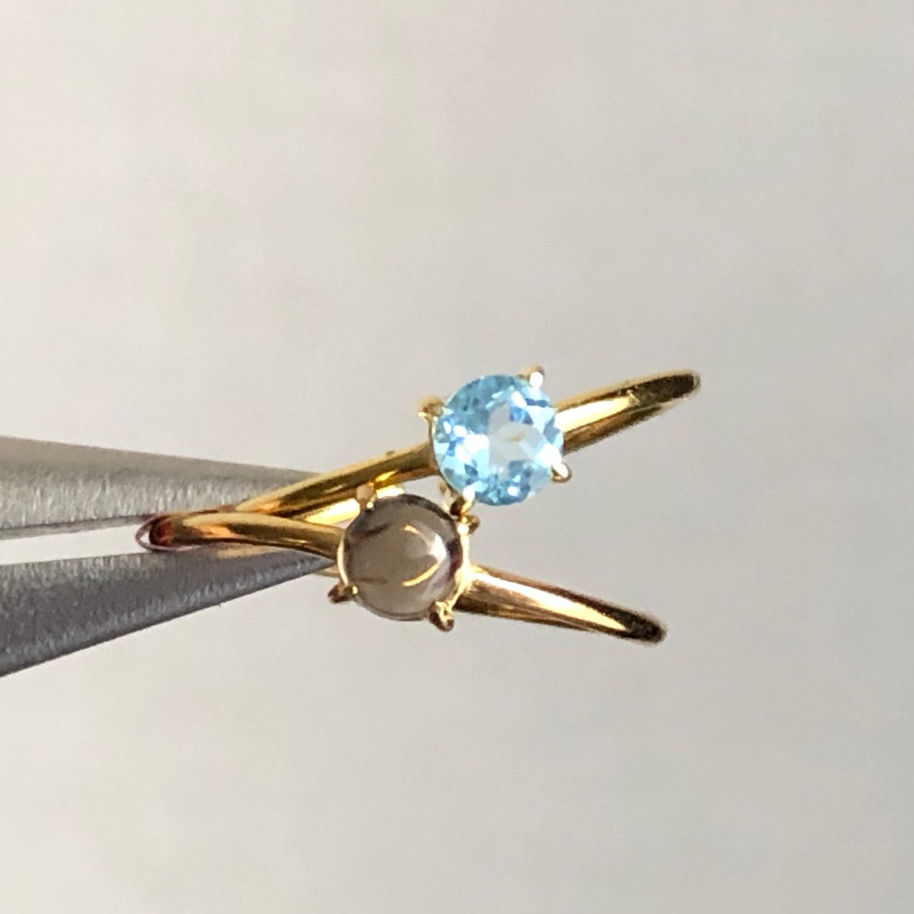 スイスブルートパーズとスモーキークォーツのリングセットです。