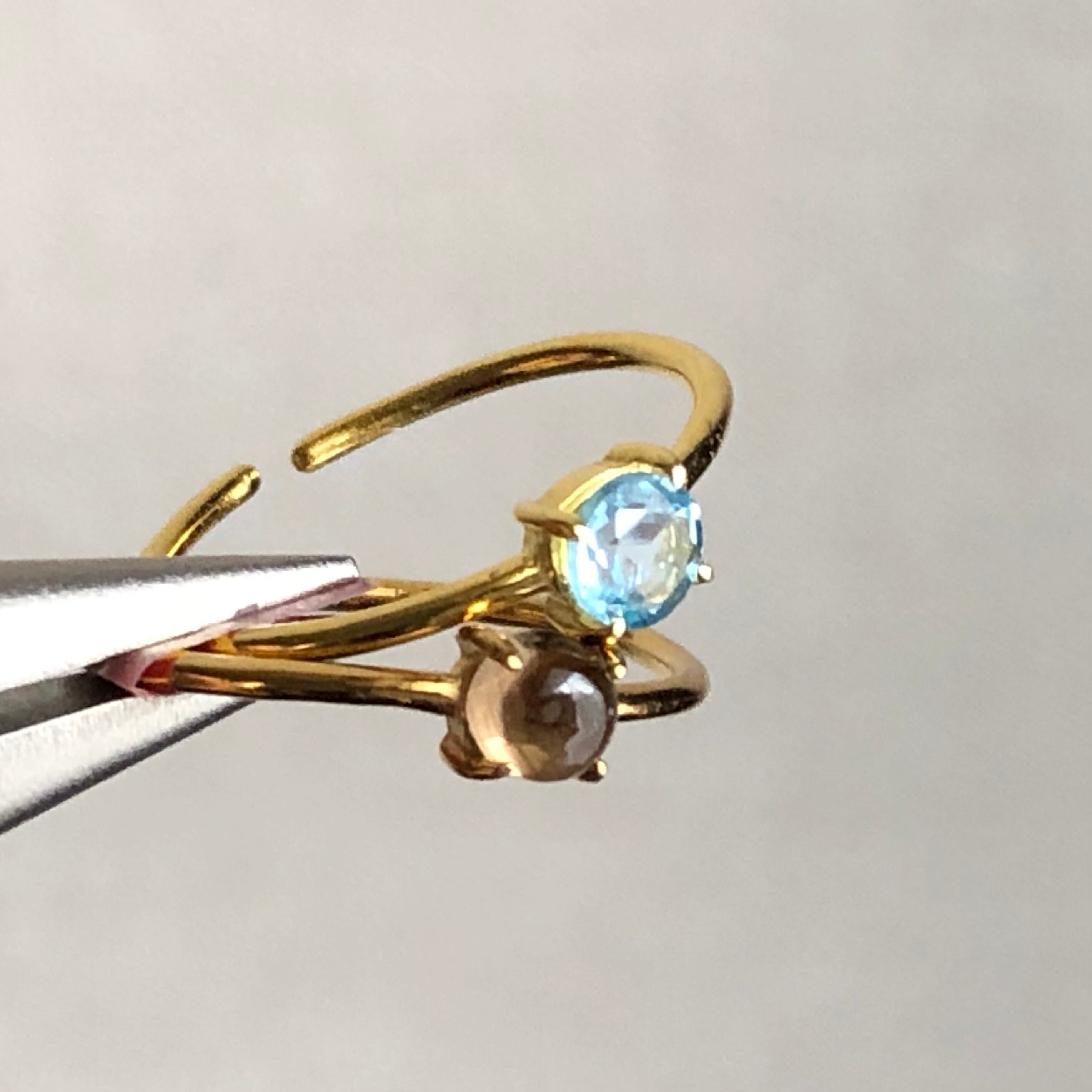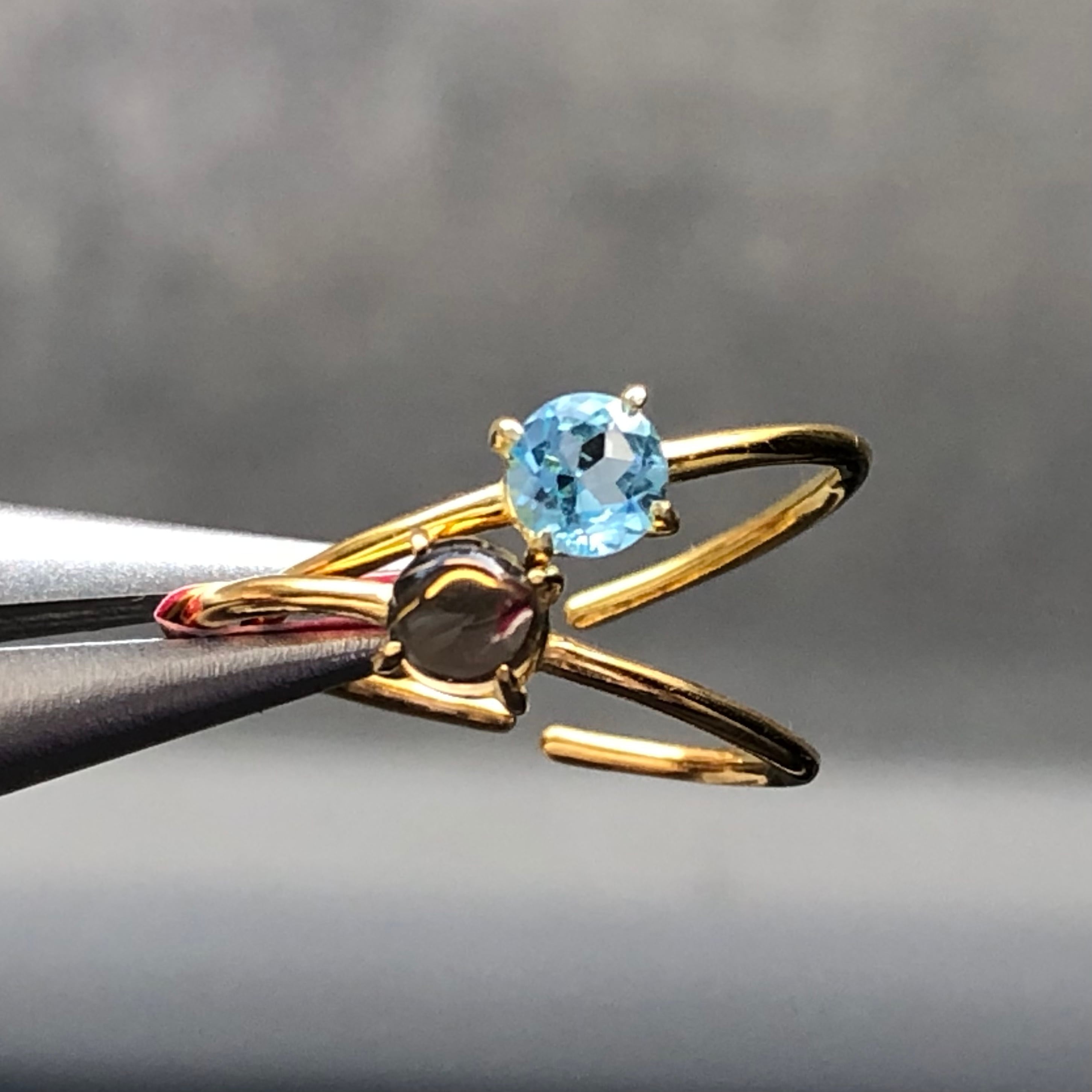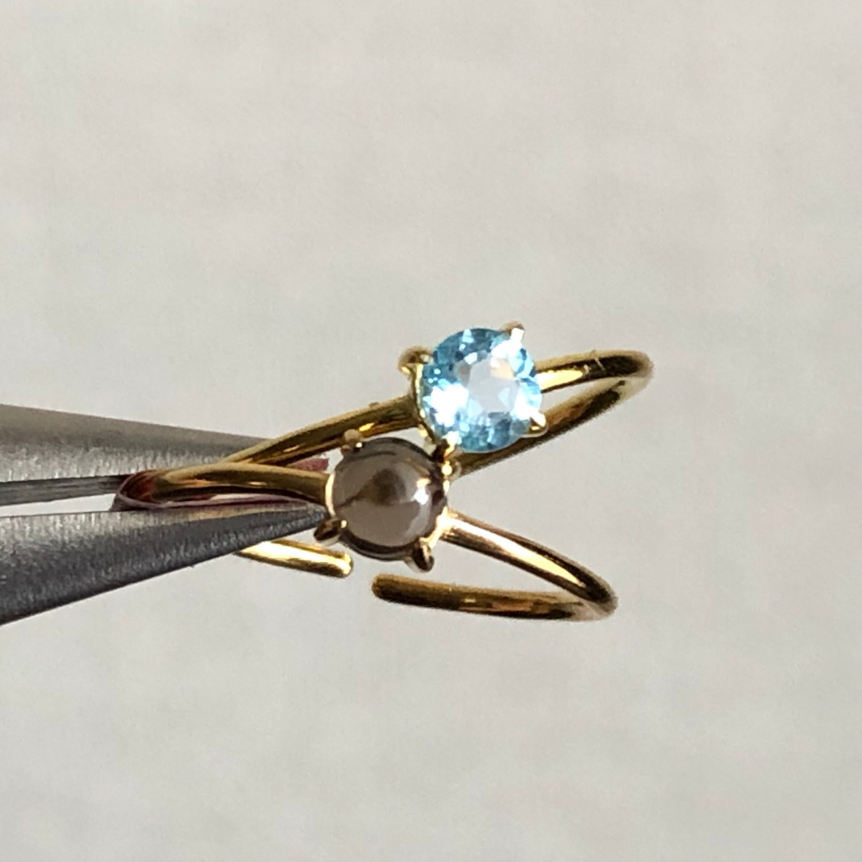スイスブルートパーズとスモーキークォーツのリングセットです。