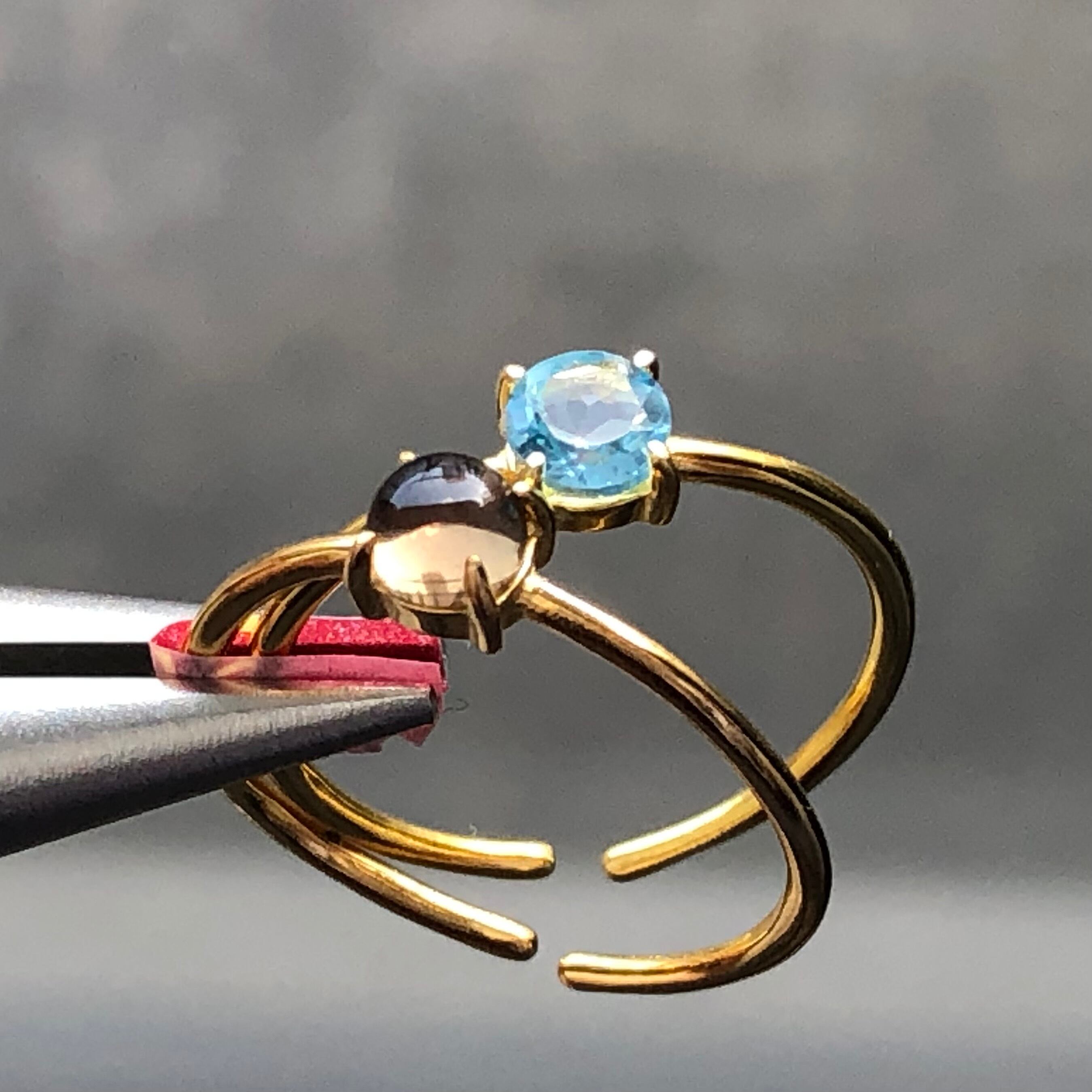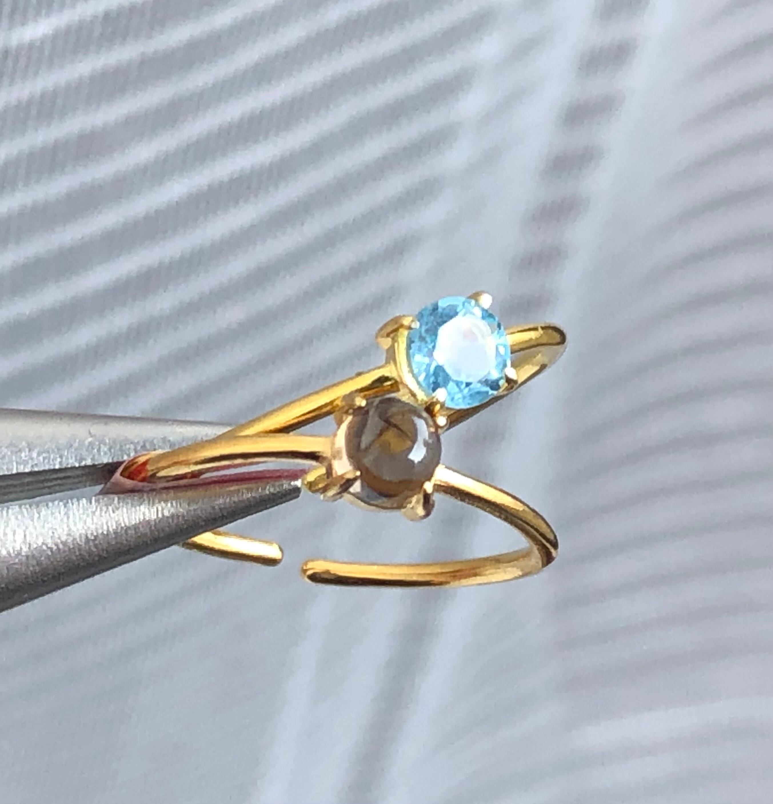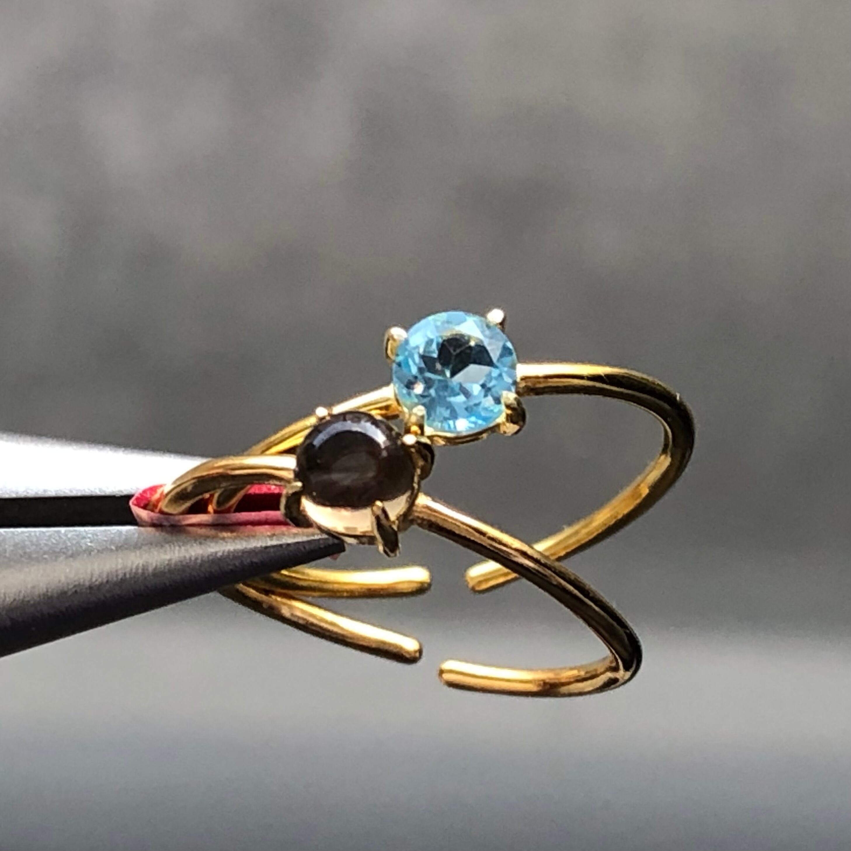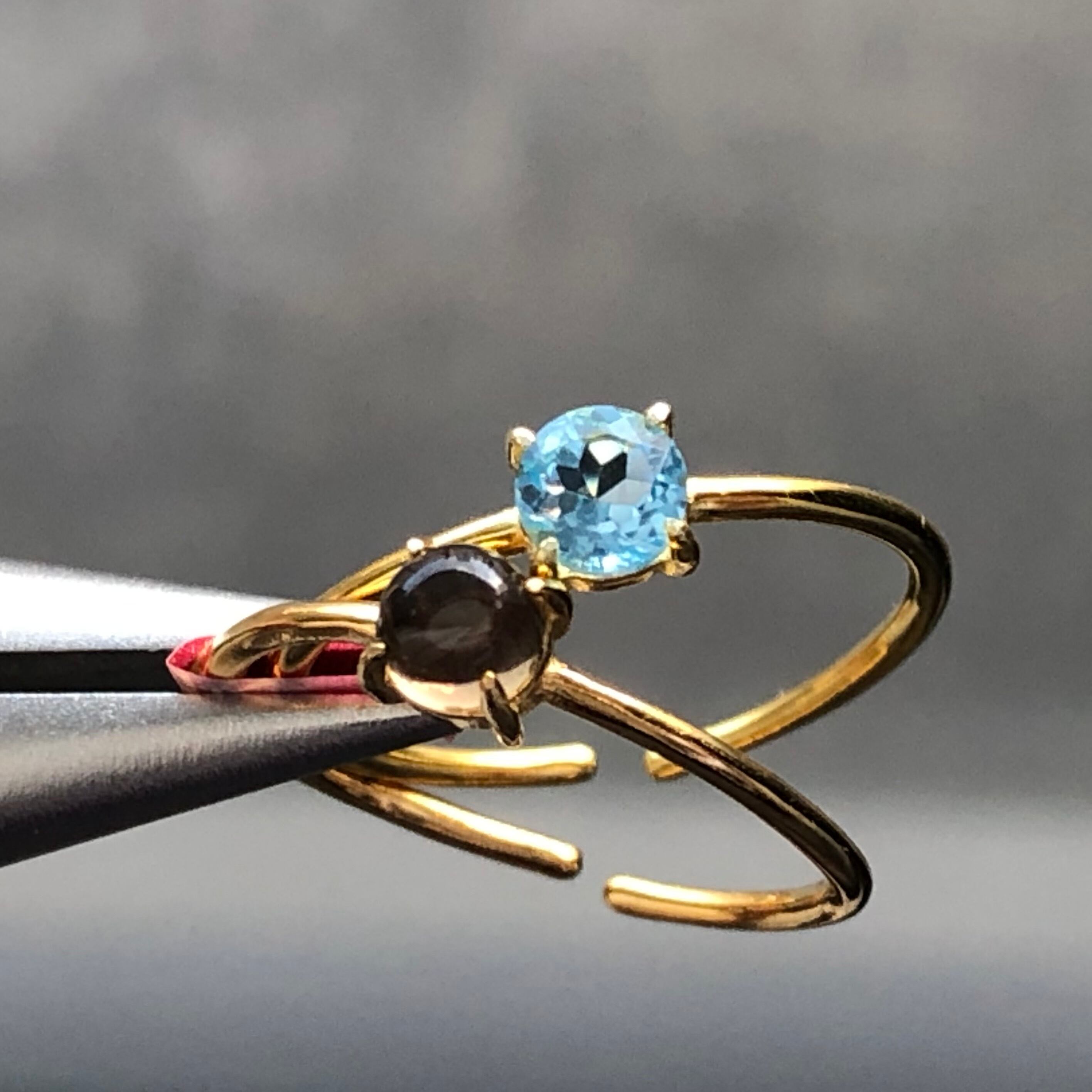 スイスブルートパーズとスモーキークォーツのリングセットです。