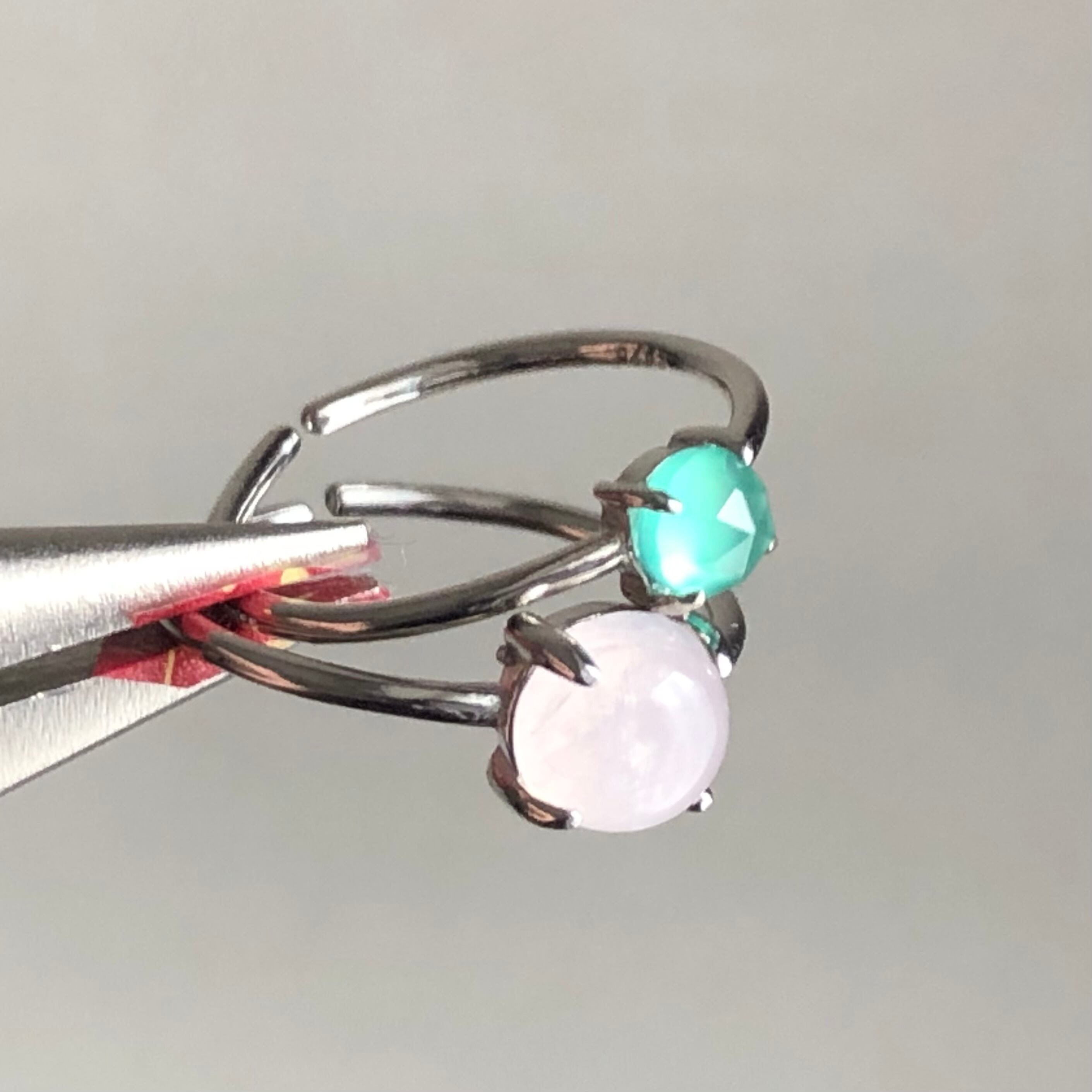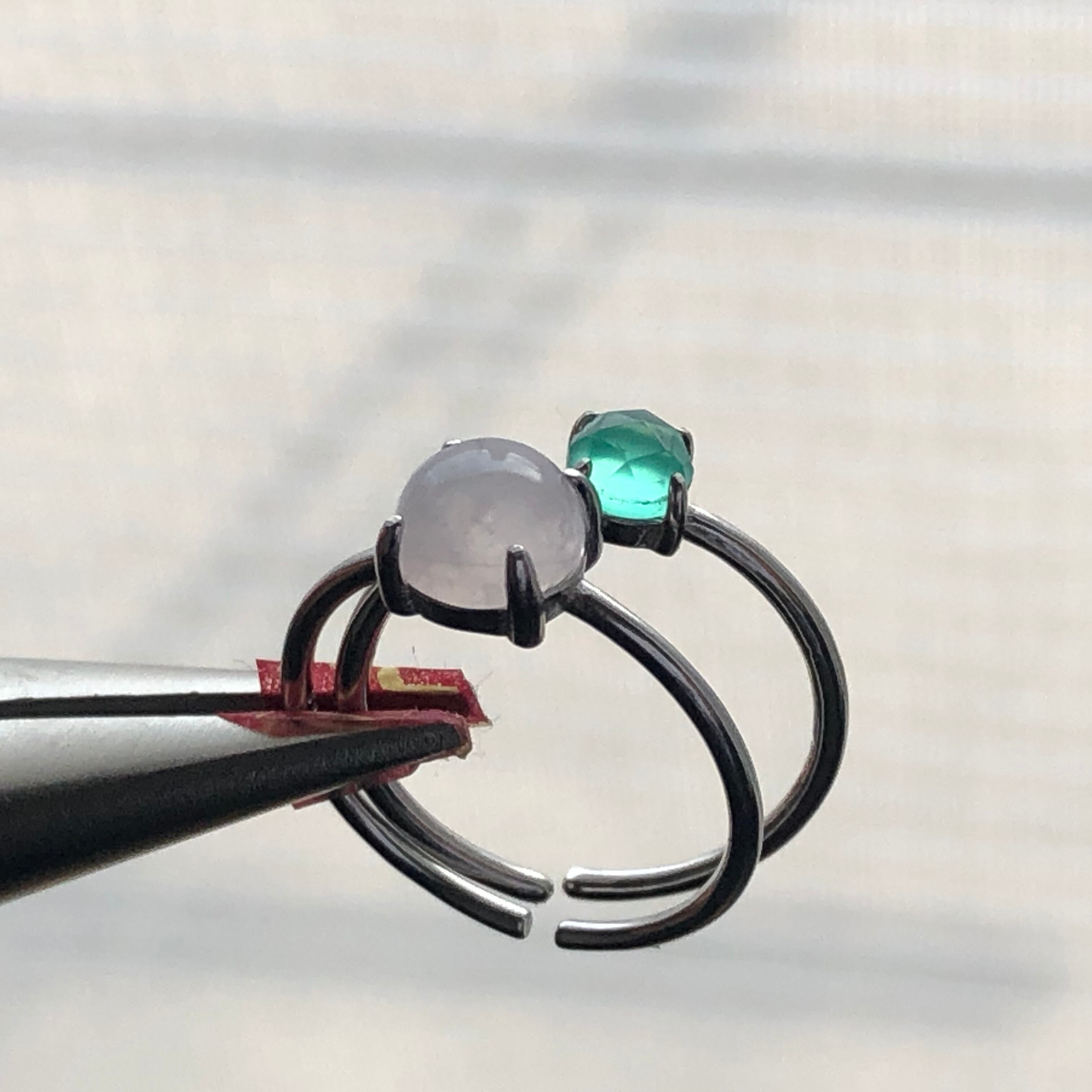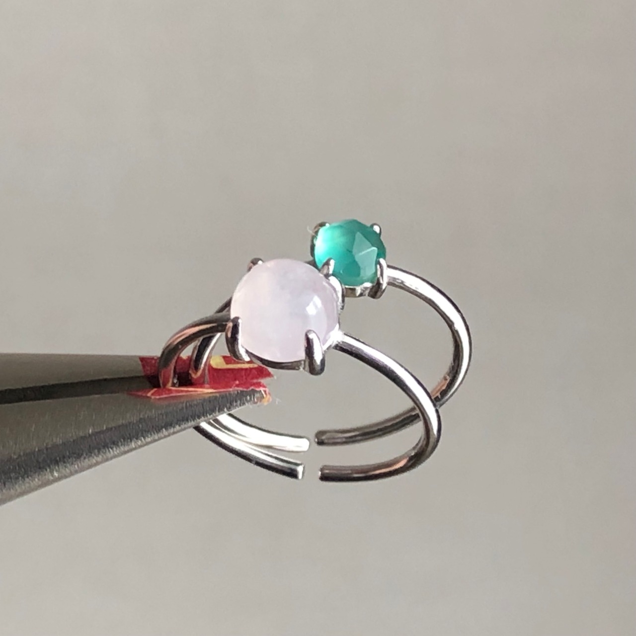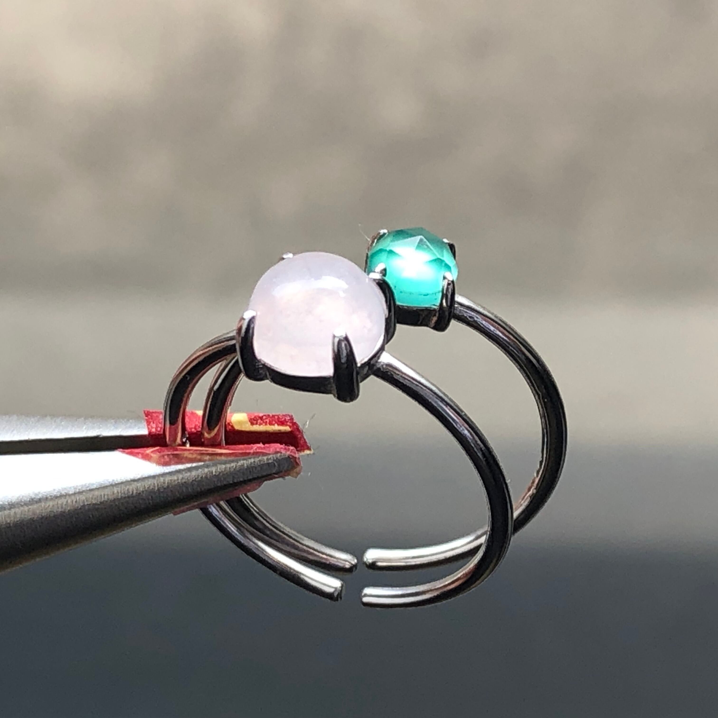ローズクォーツとグリーンオニキス(ローズカット)のリングセットです。