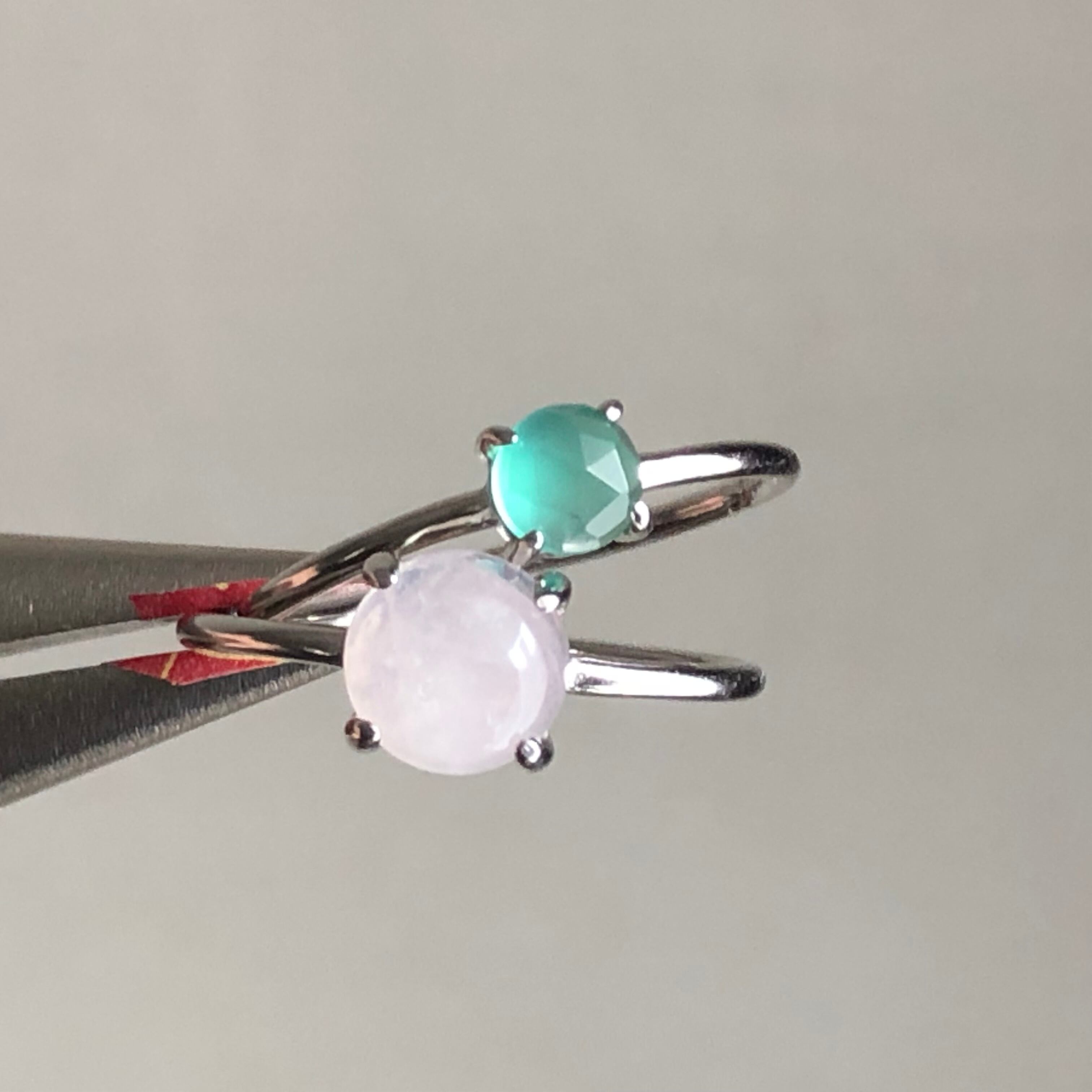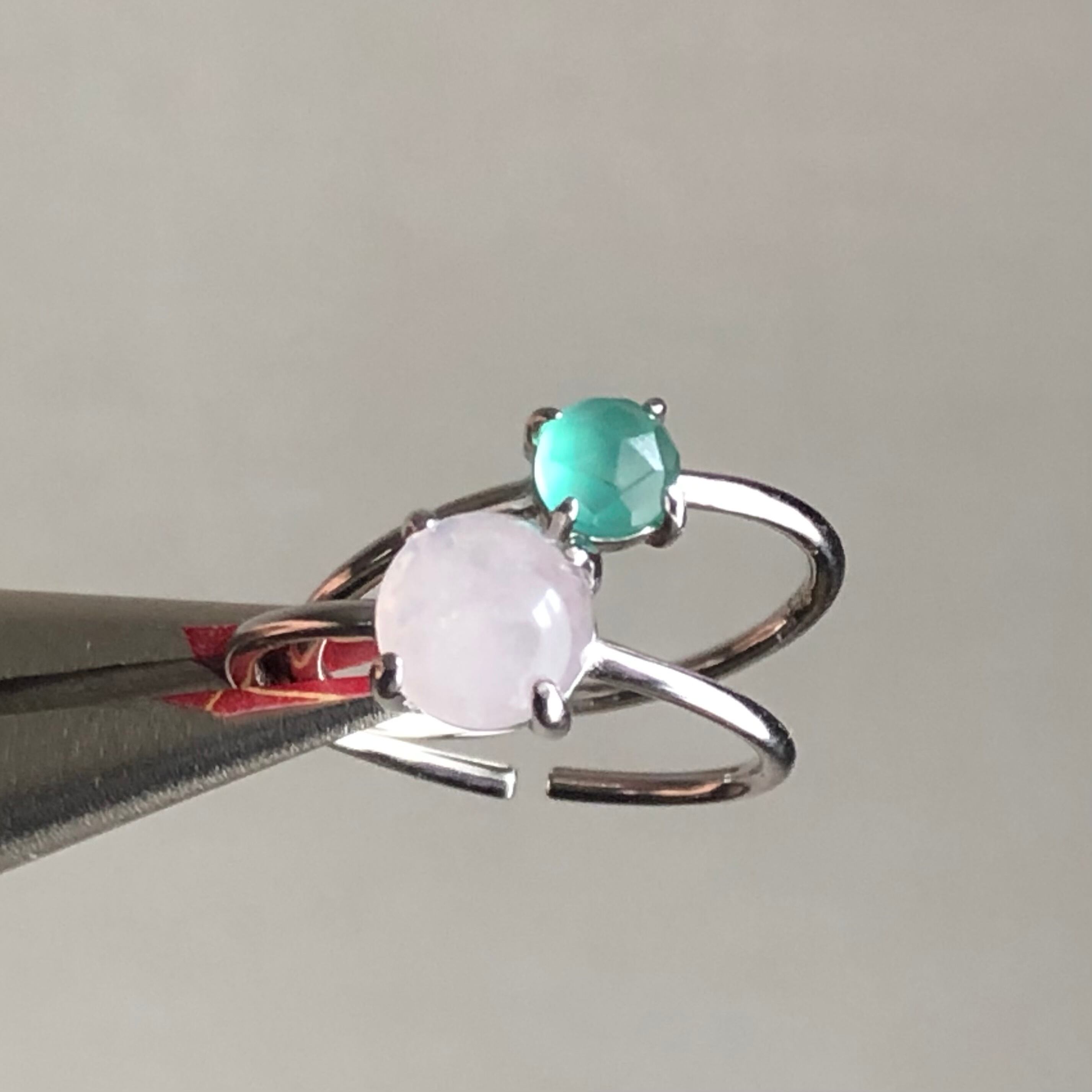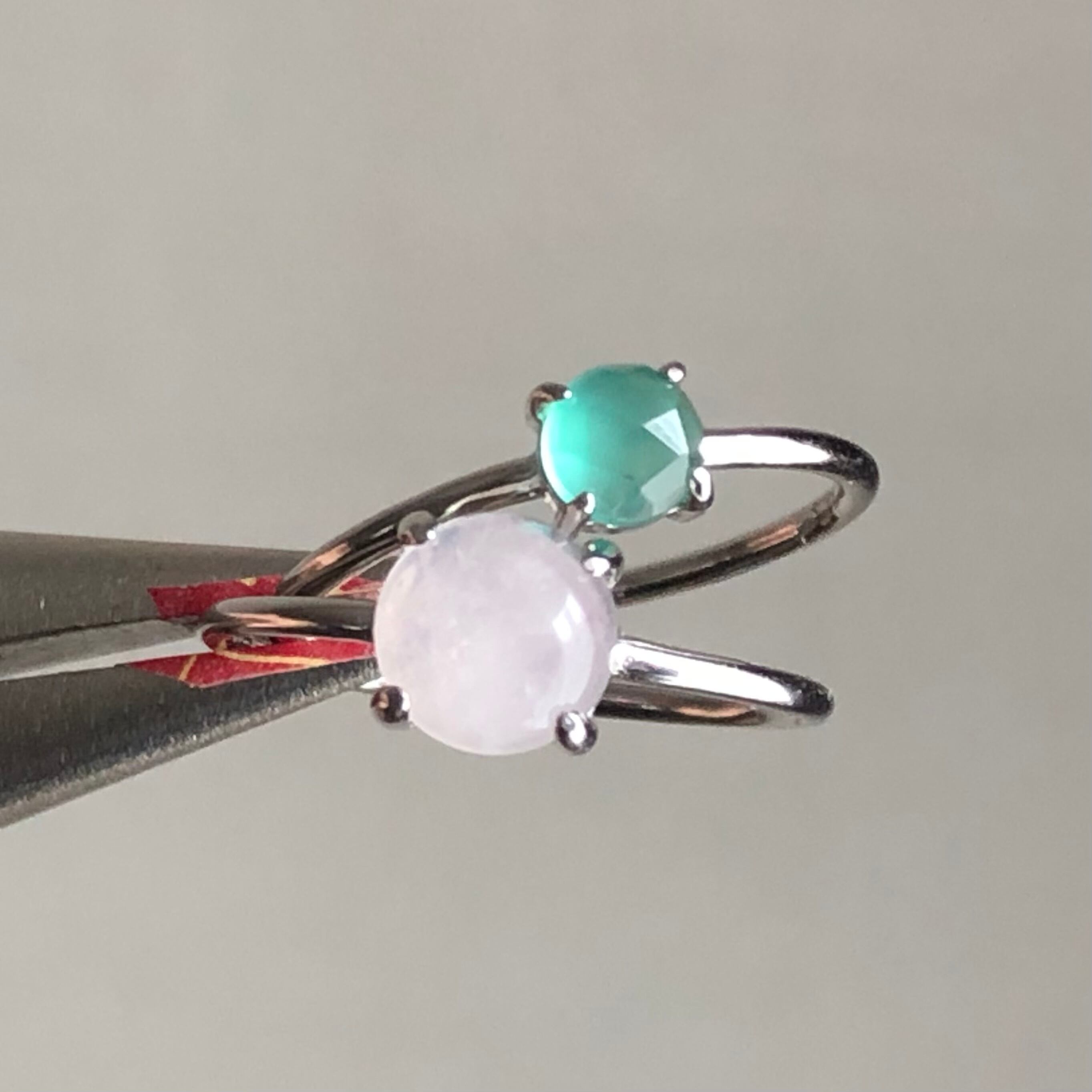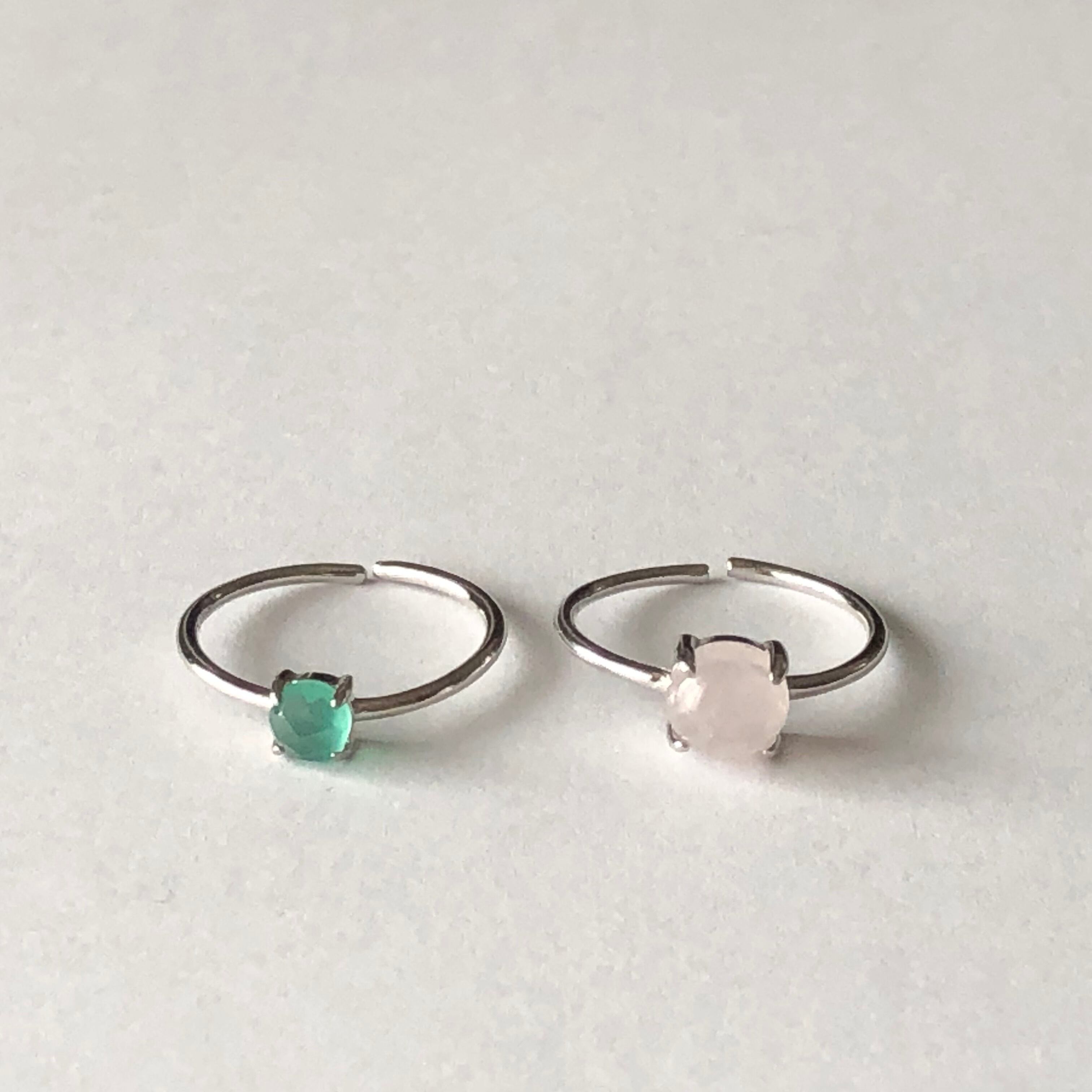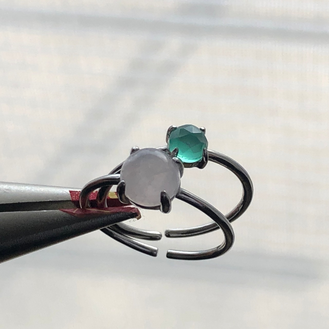 ローズクォーツとグリーンオニキス(ローズカット)のリングセットです。