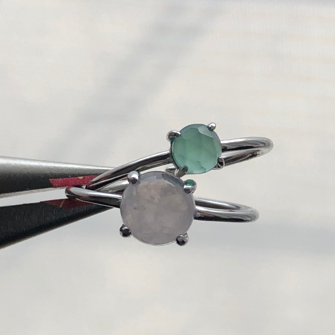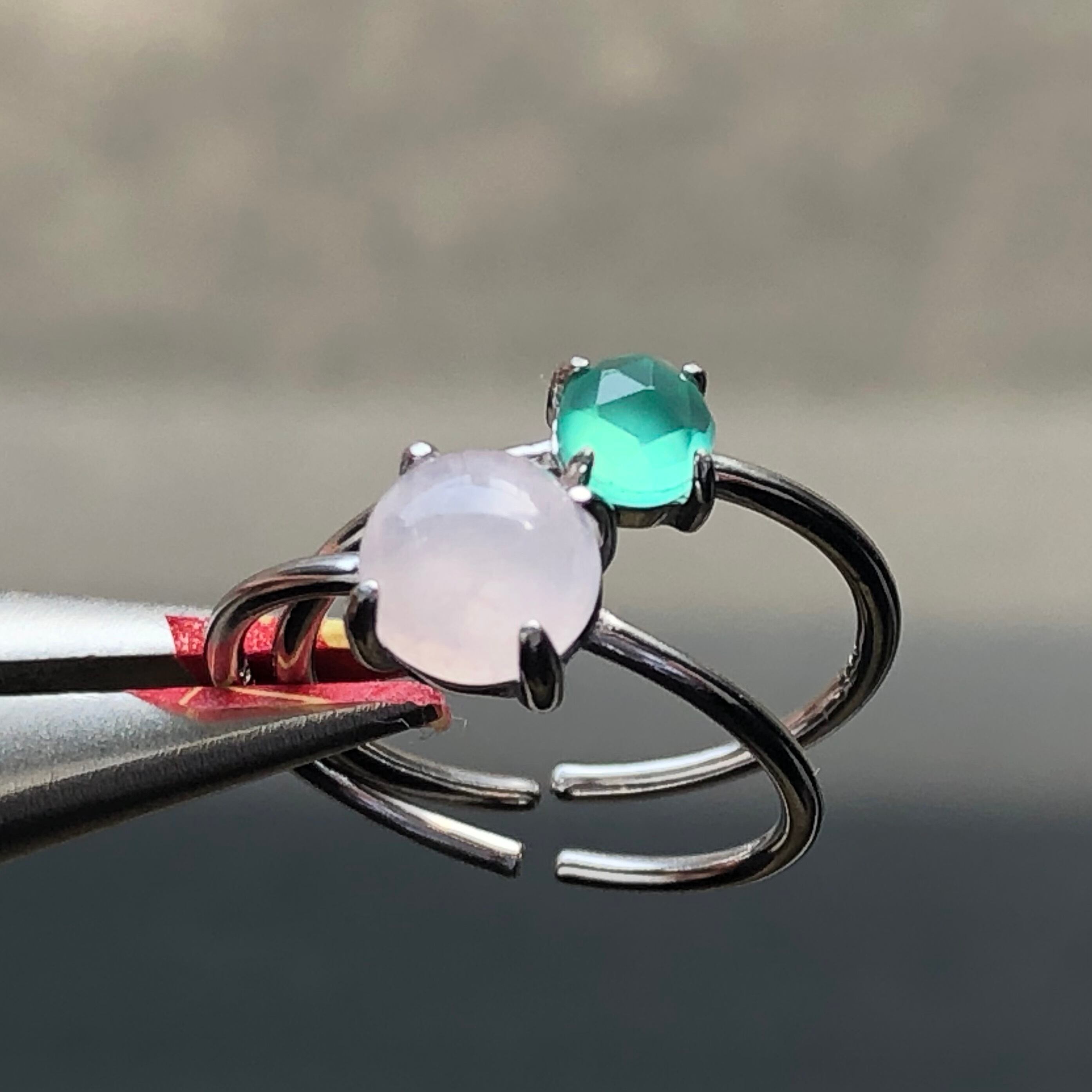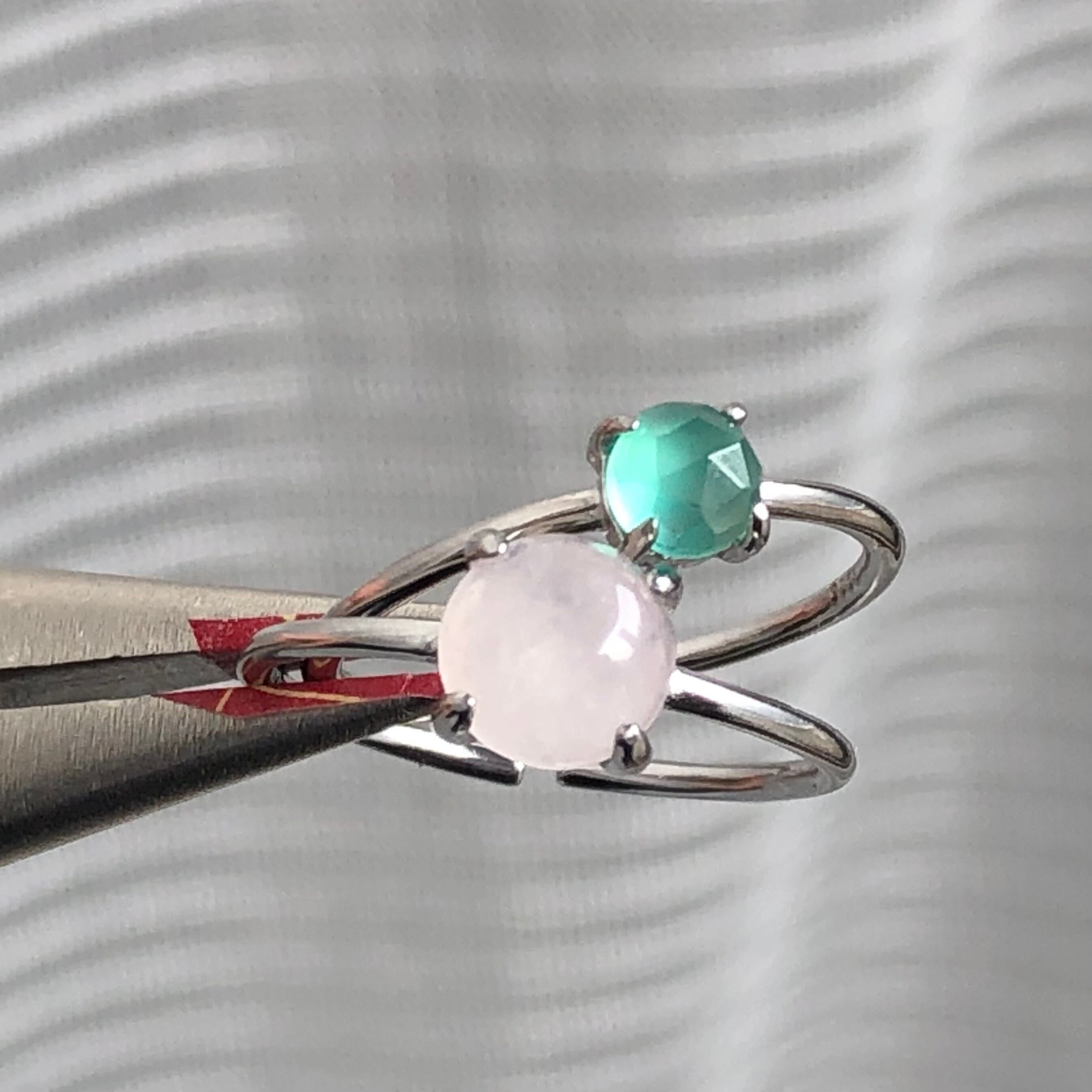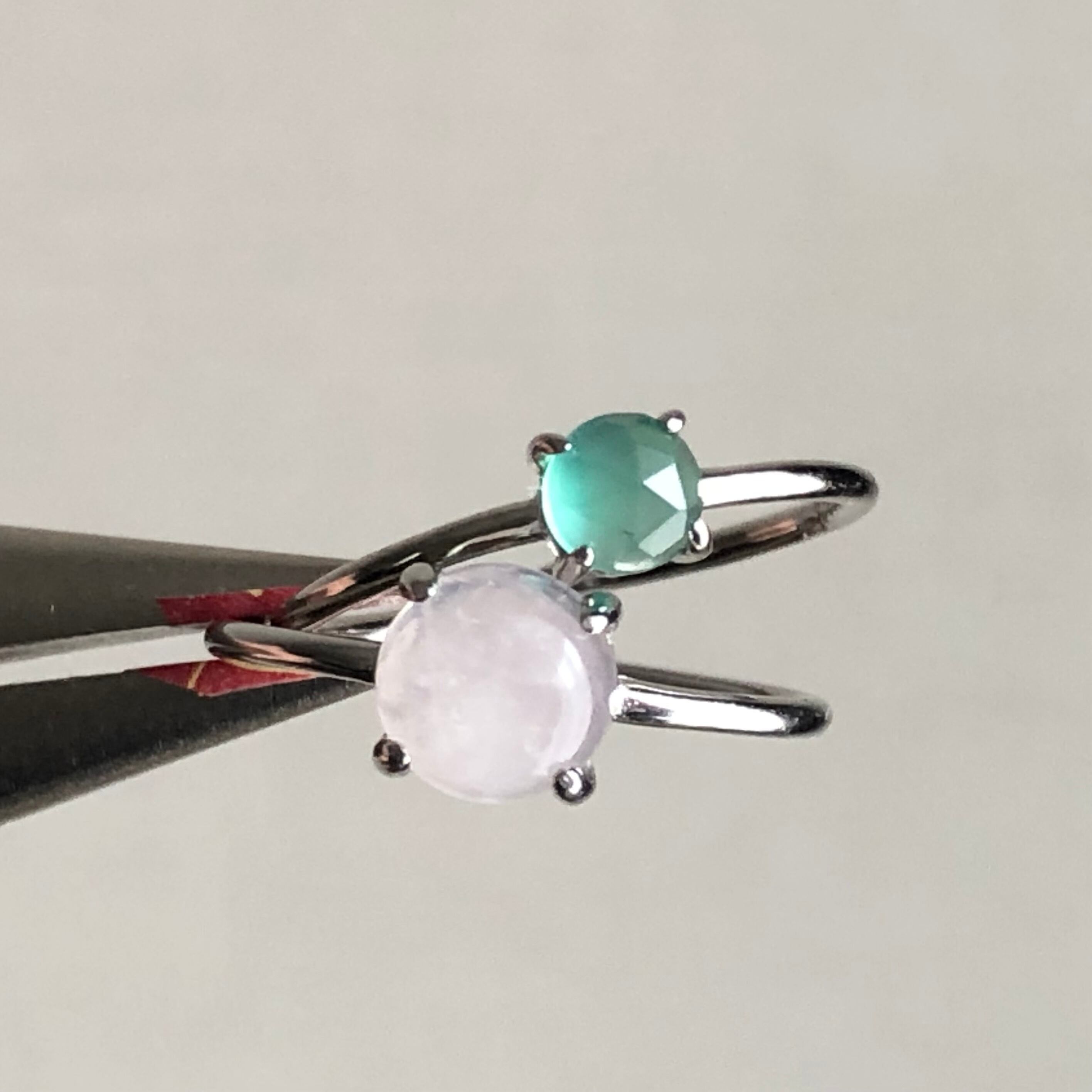 ローズクォーツとグリーンオニキス(ローズカット)のリングセットです。