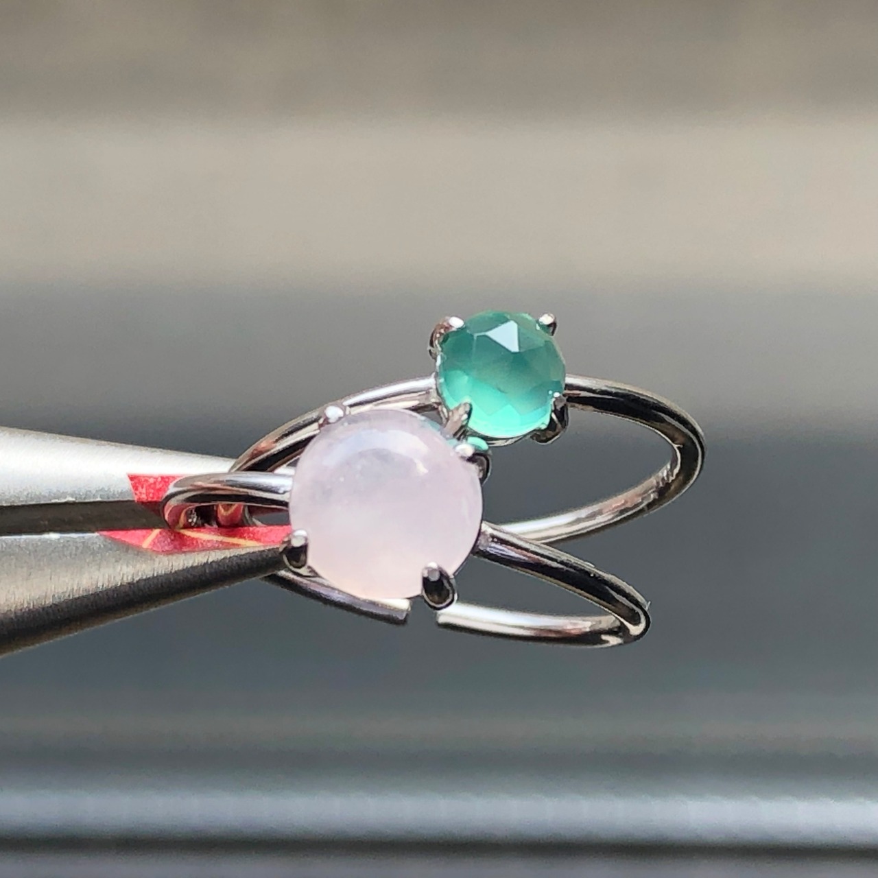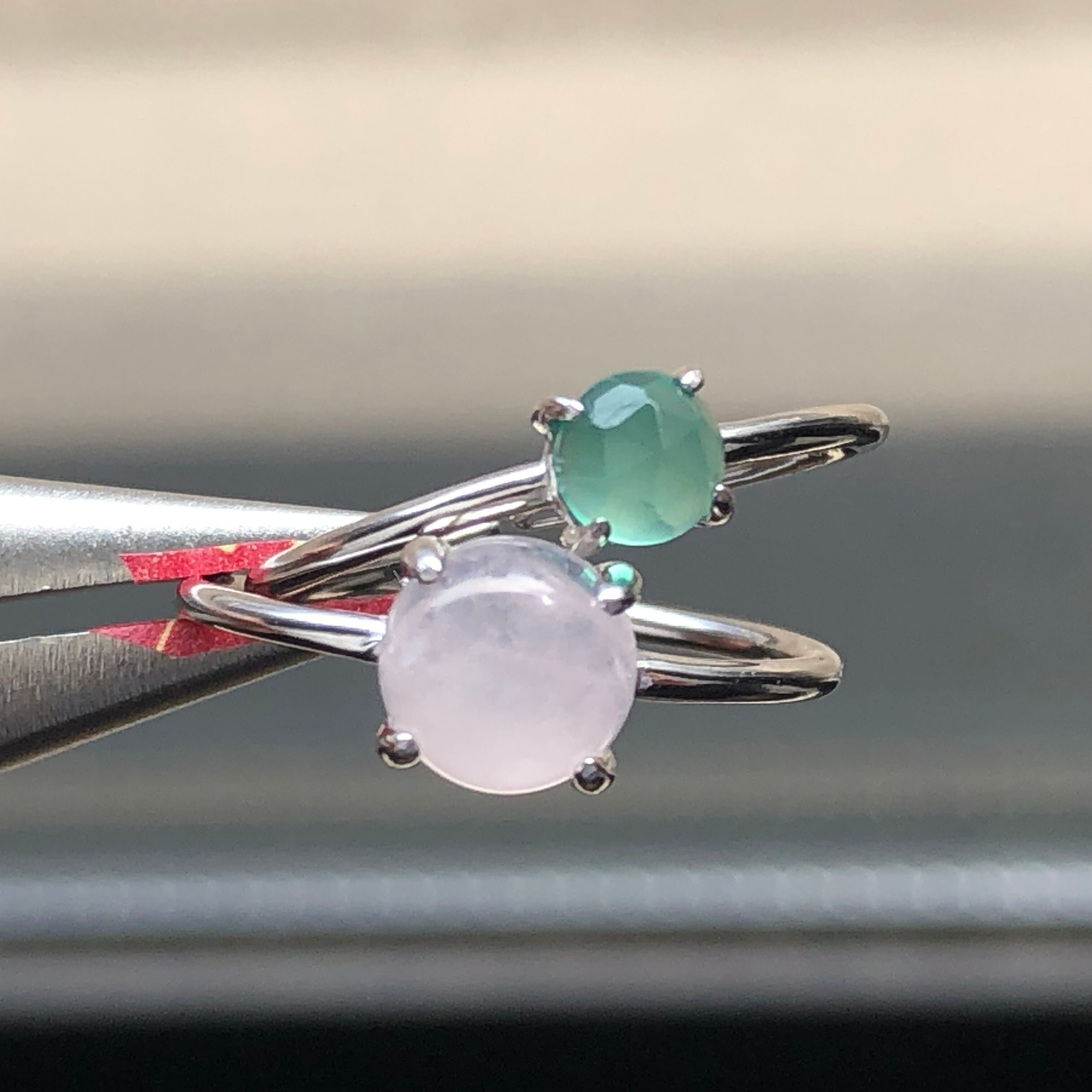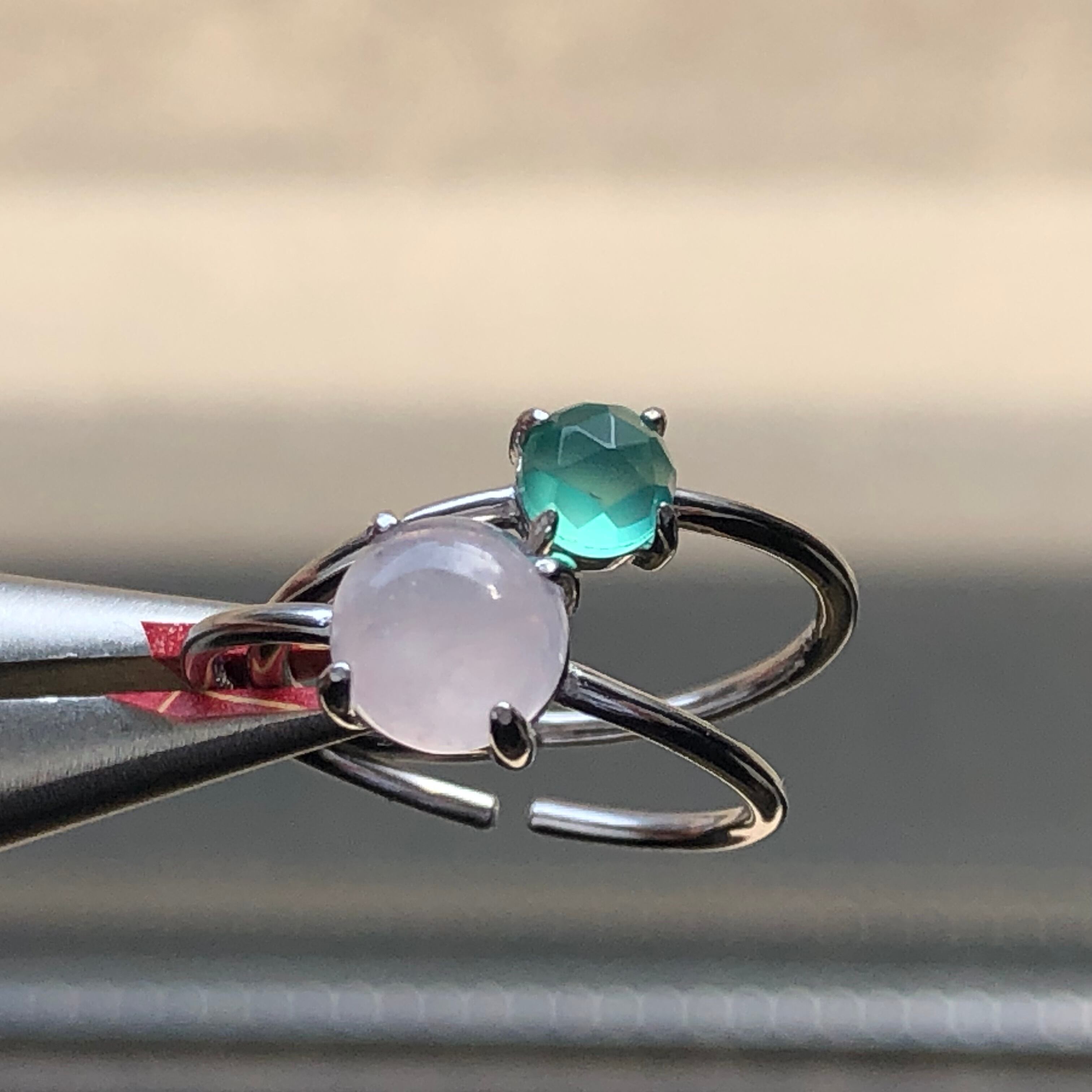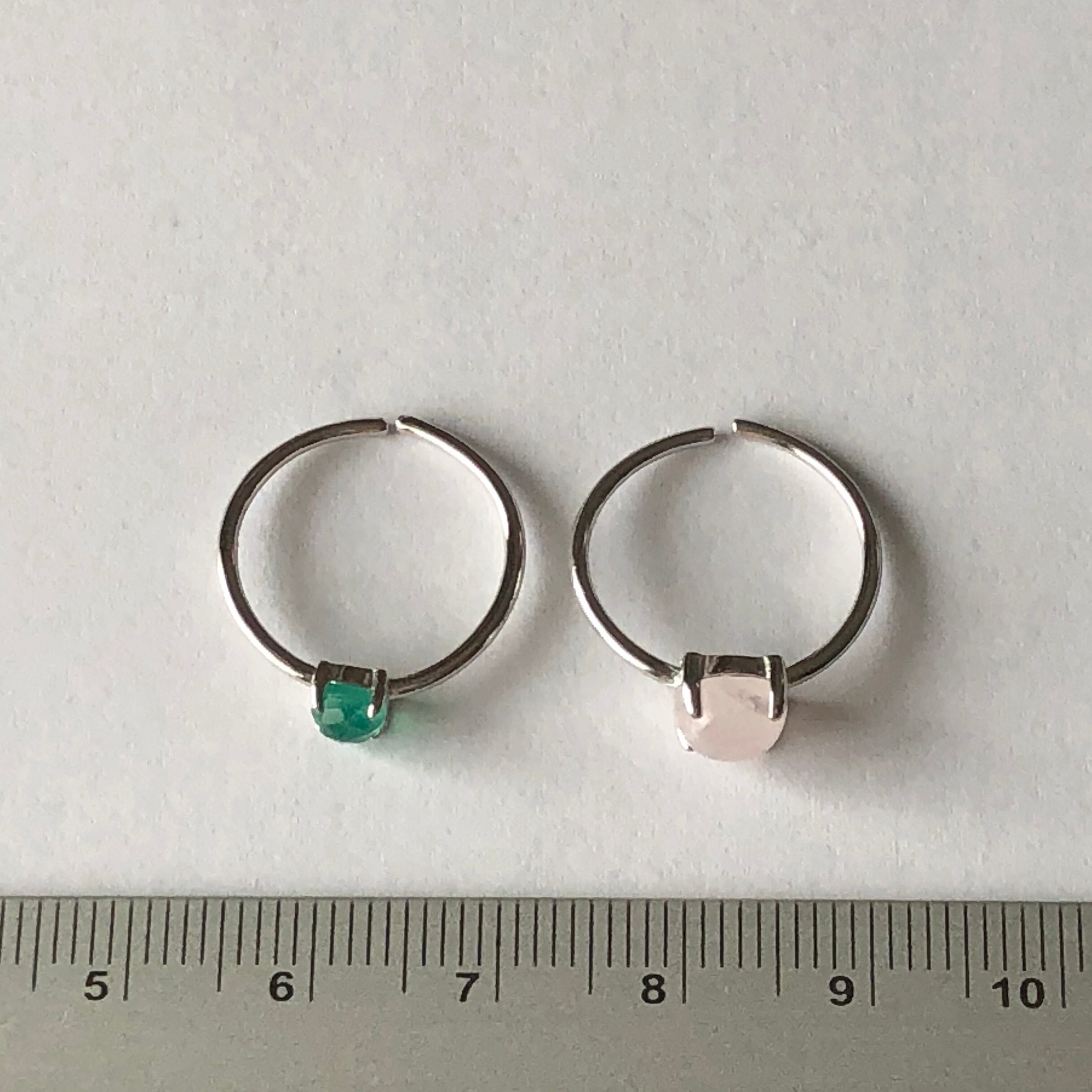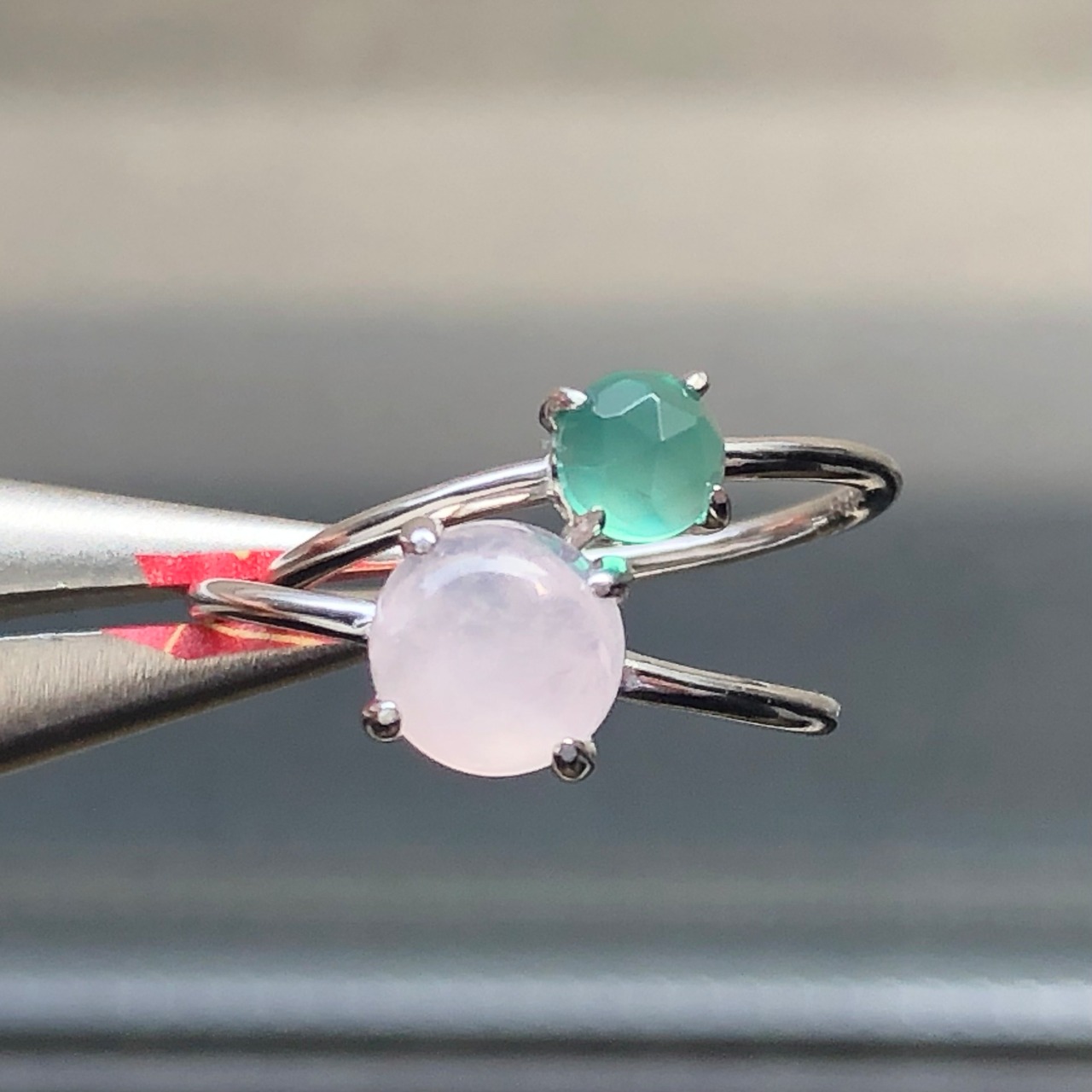 ローズクォーツとグリーンオニキス(ローズカット)のリングセットです。