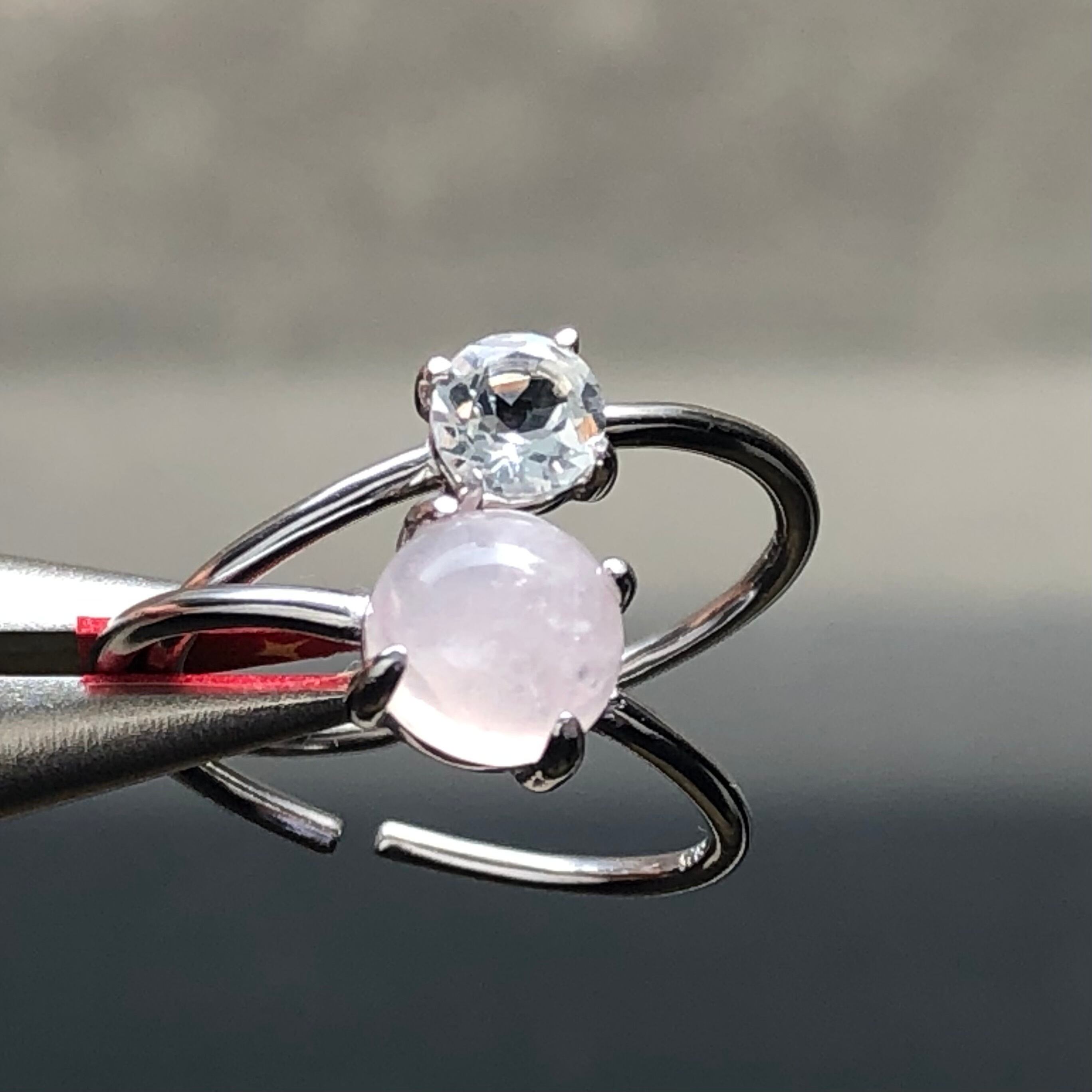 (ローズクォーツ6mm、ホワイトトパーズ4mm)