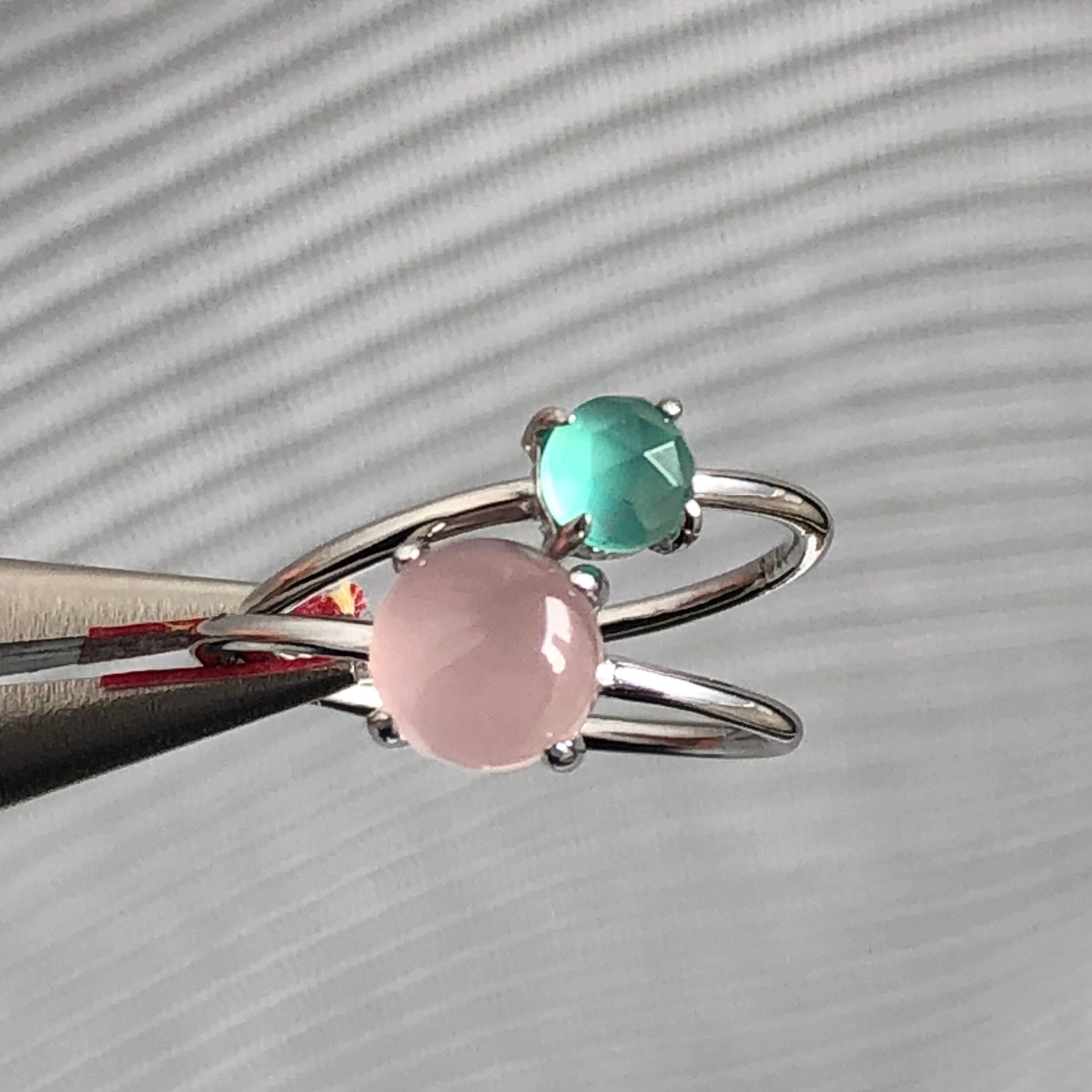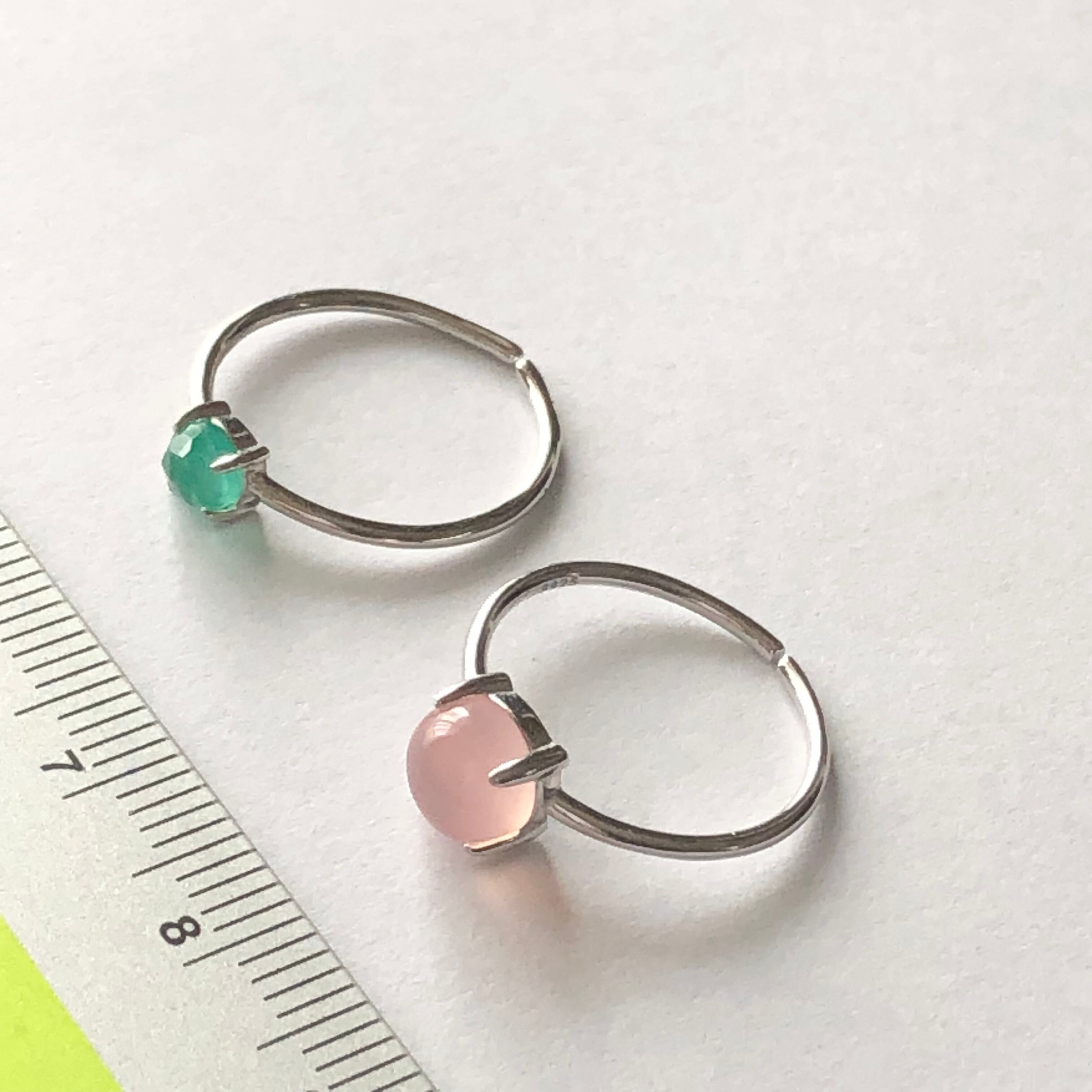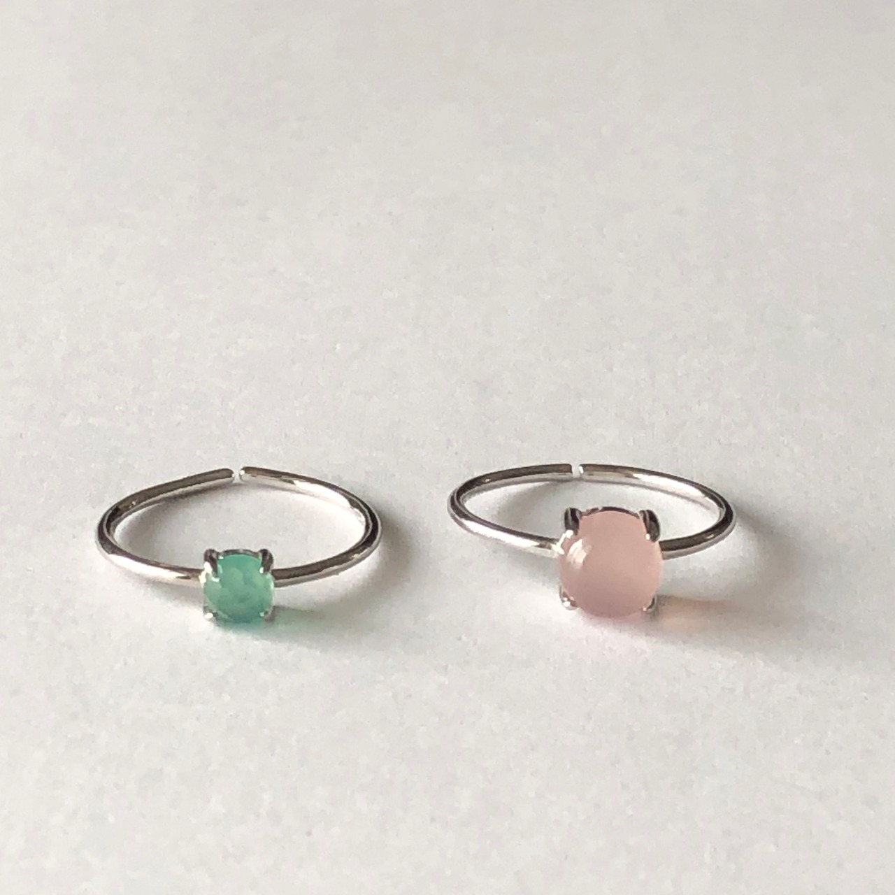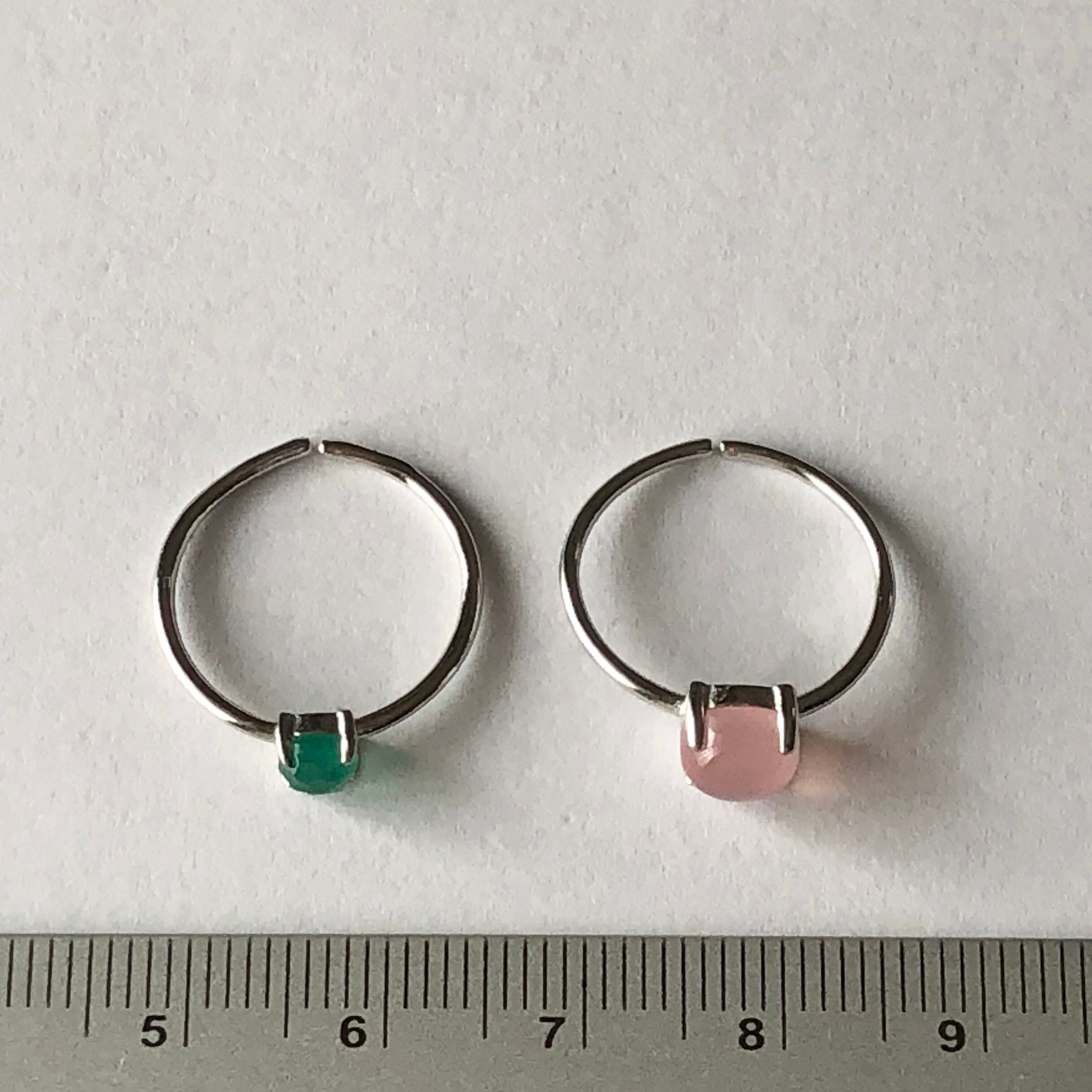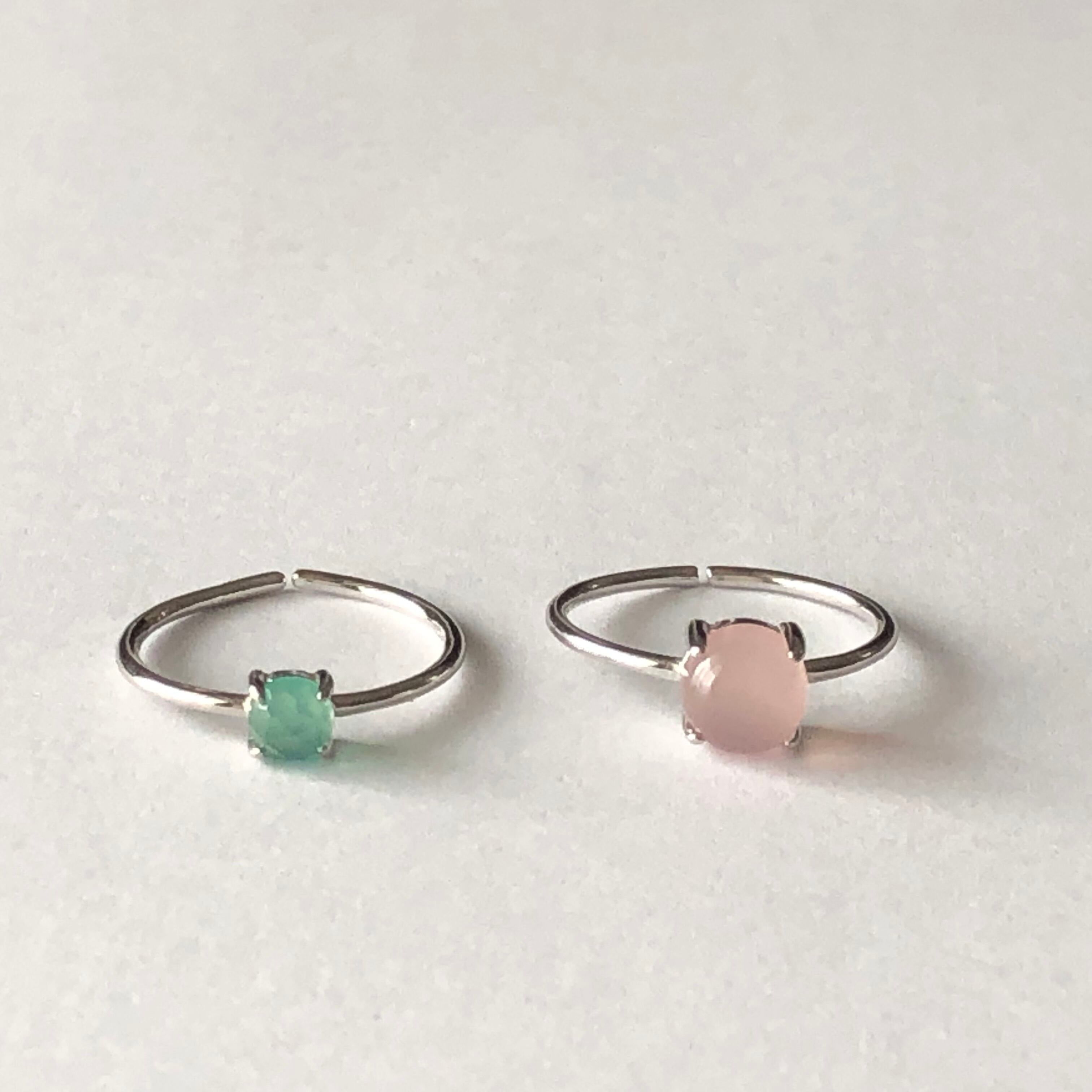 ピンクカルセドニーとグリーンオニキスのリングセットです。