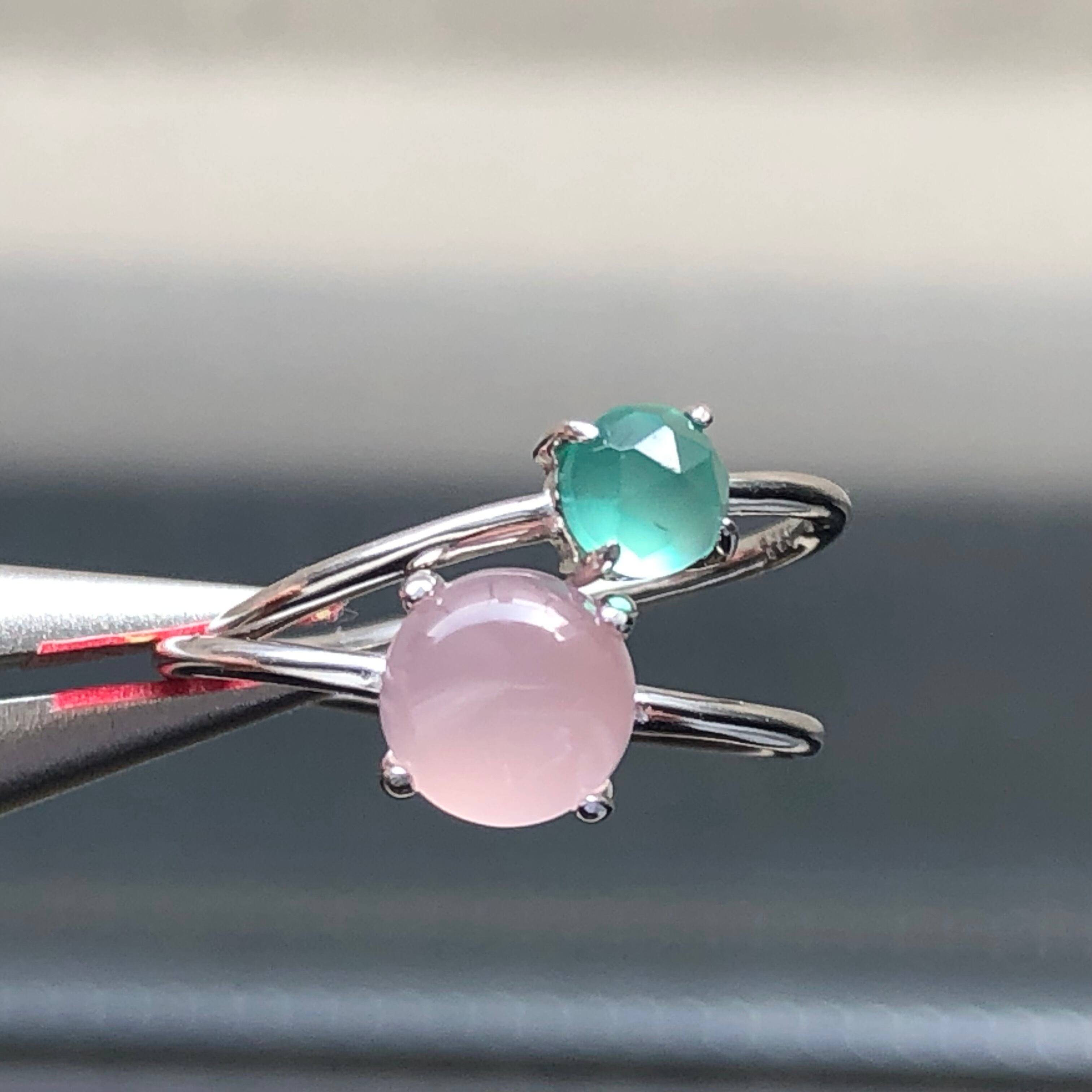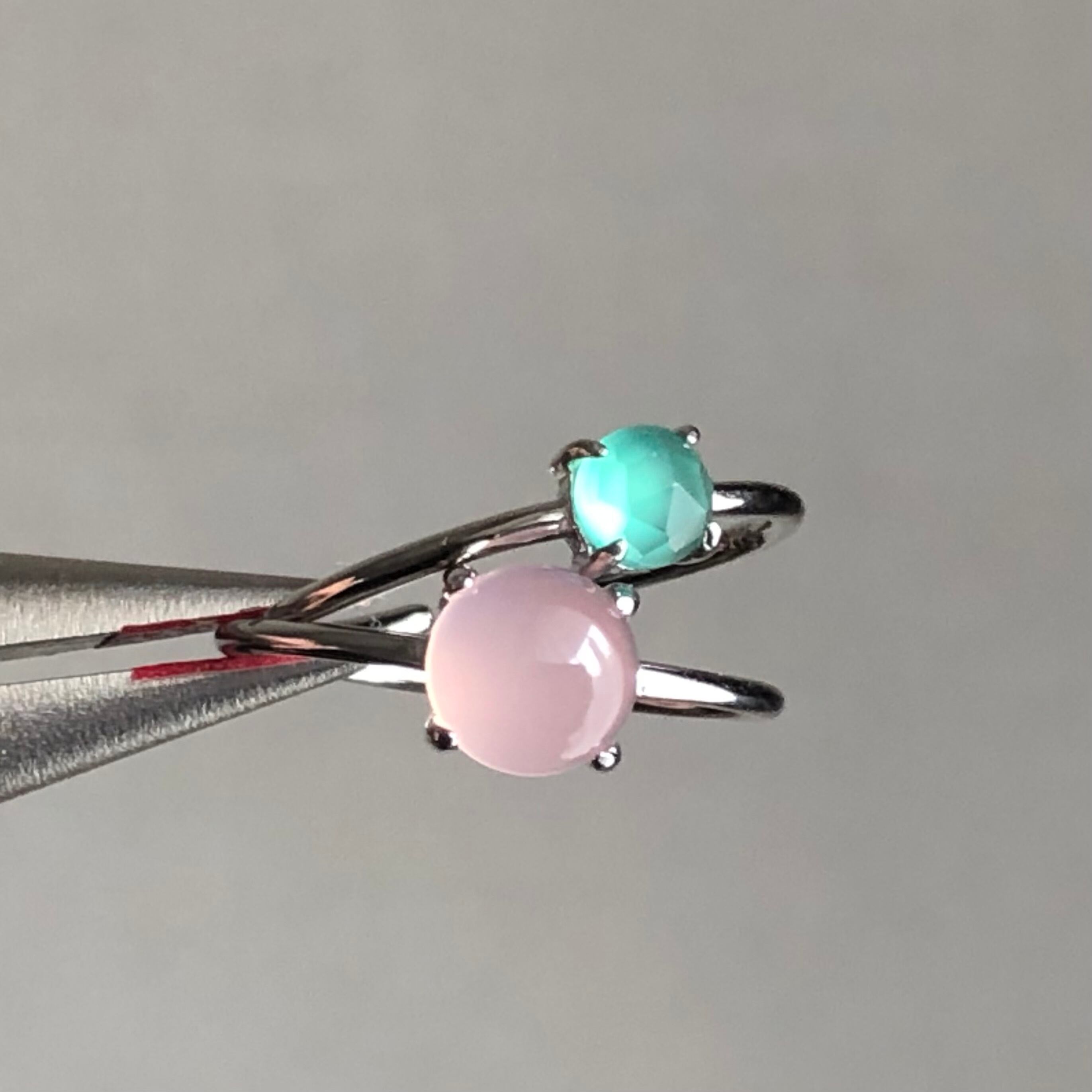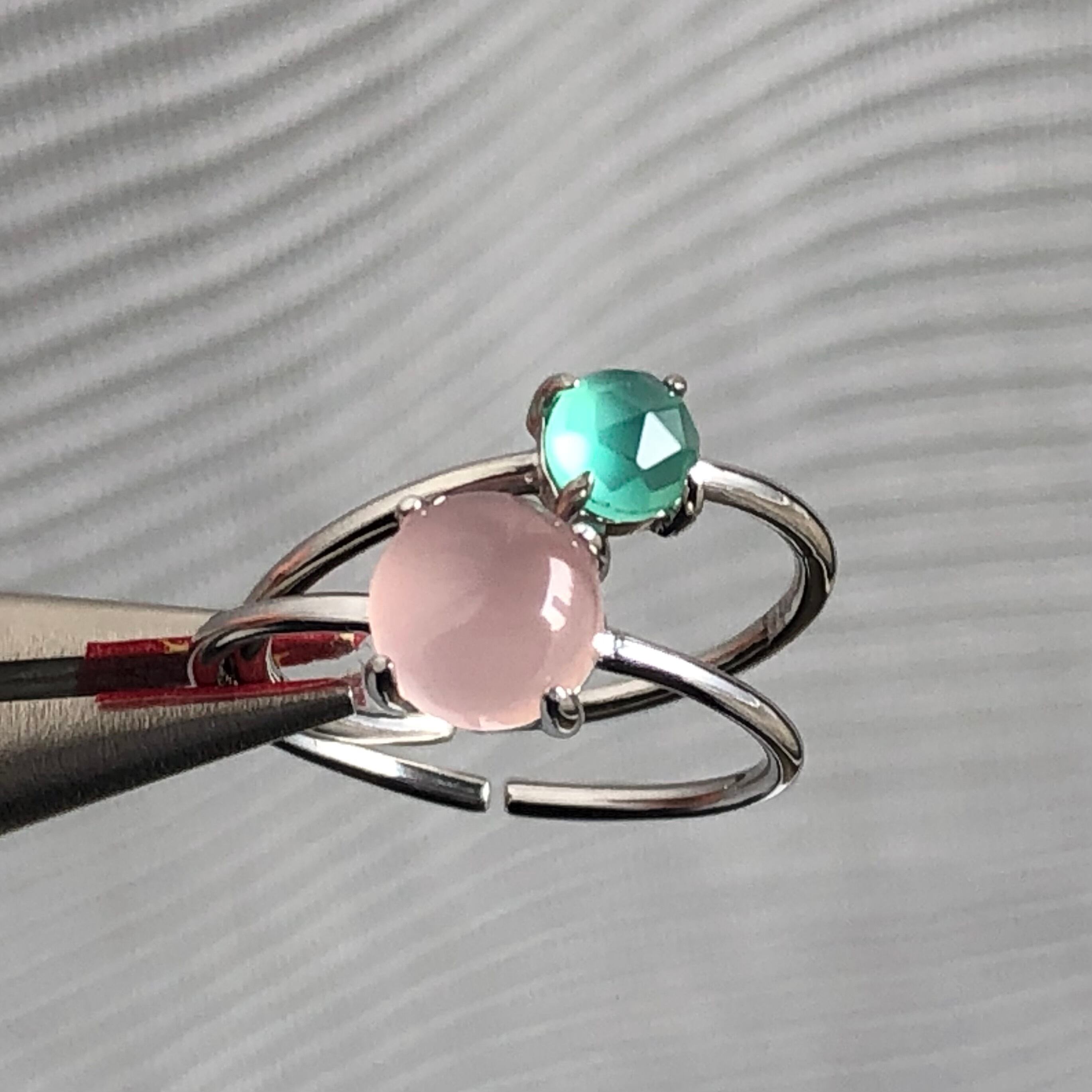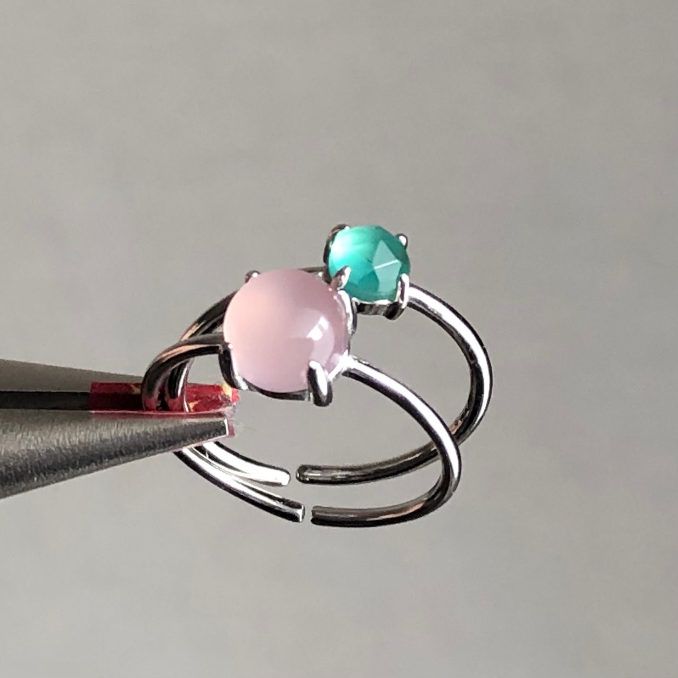 ピンクカルセドニーとグリーンオニキスのリングセットです。