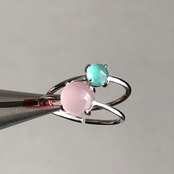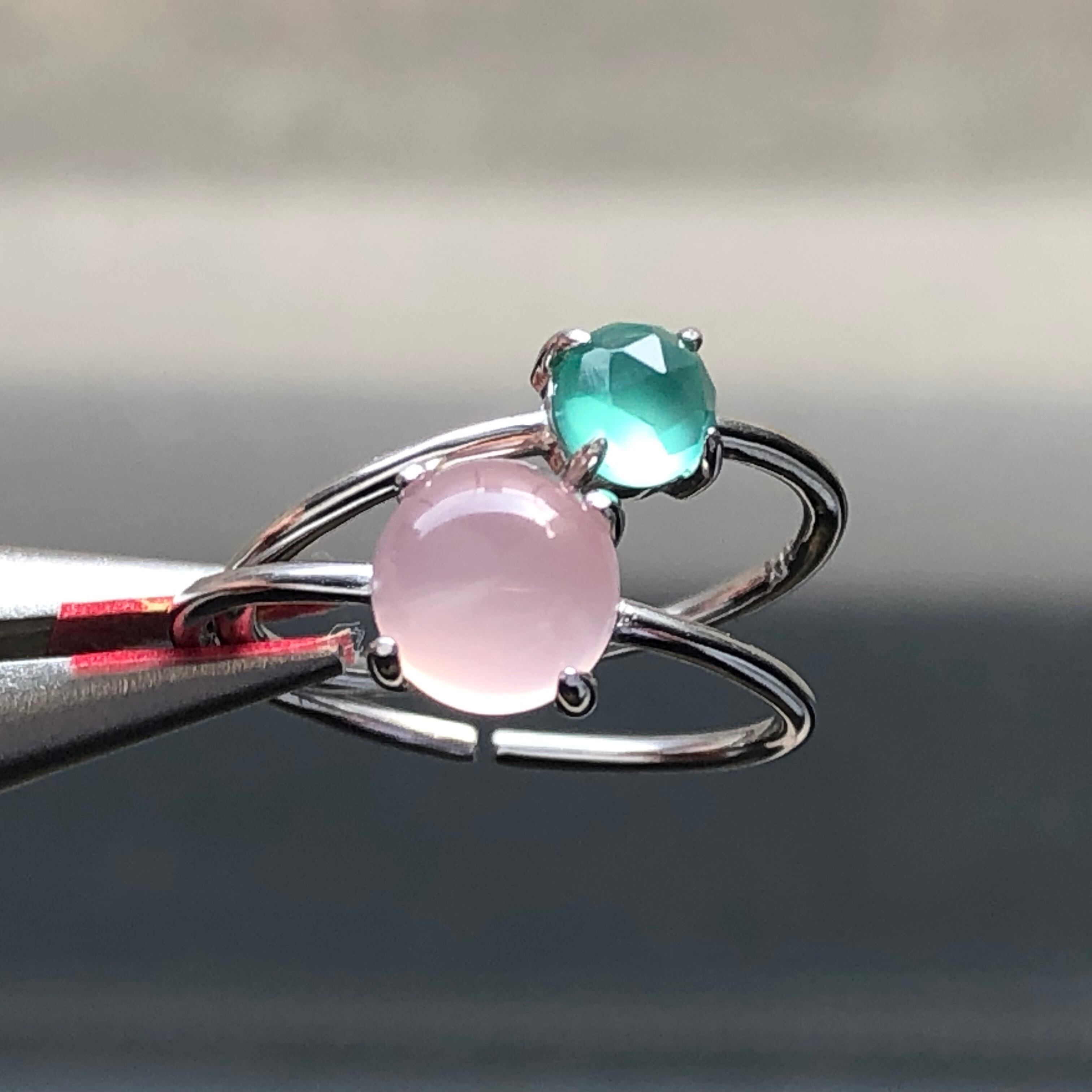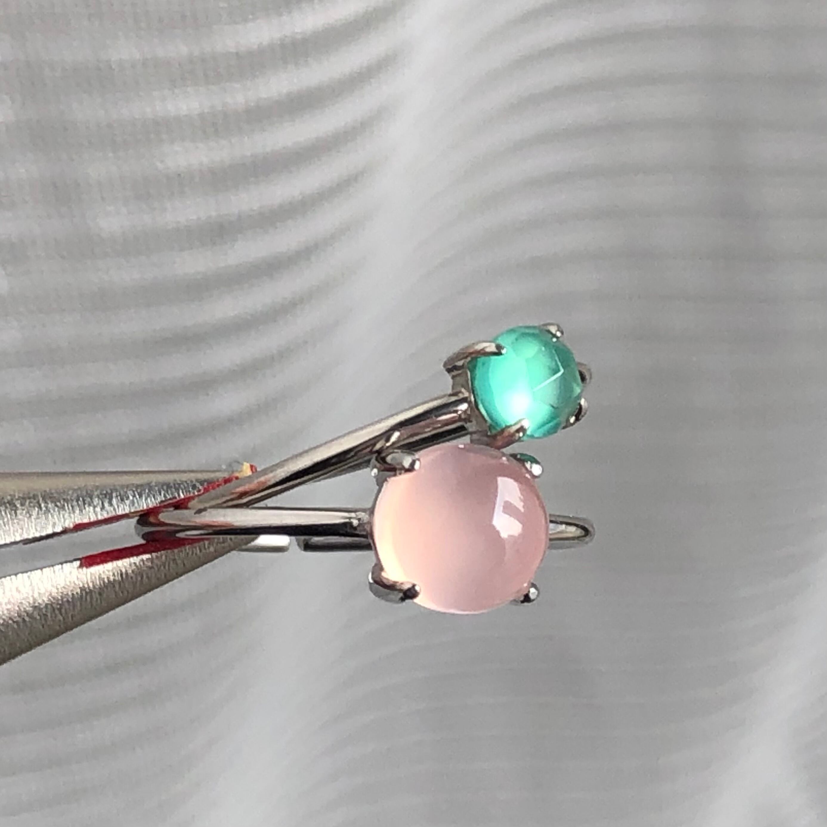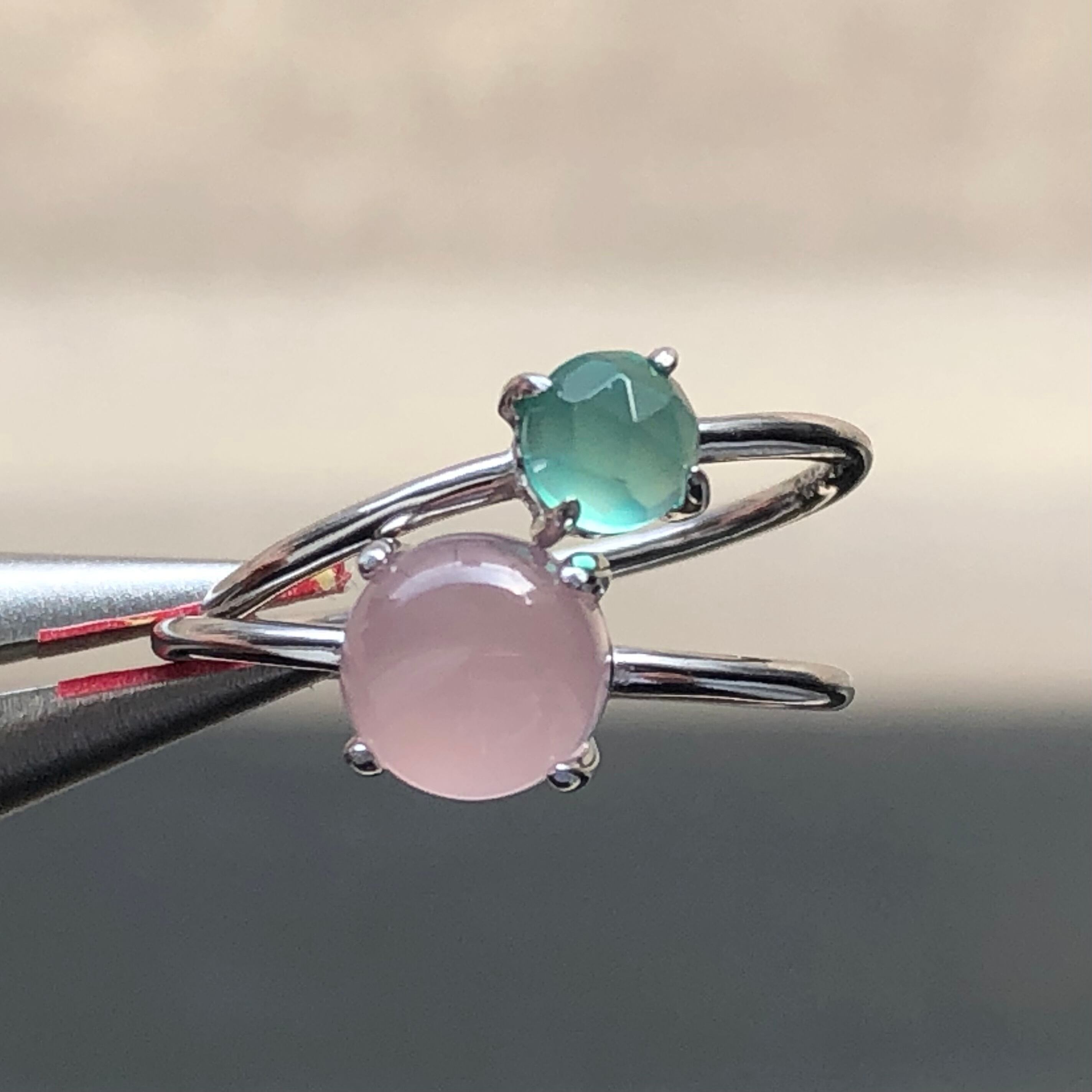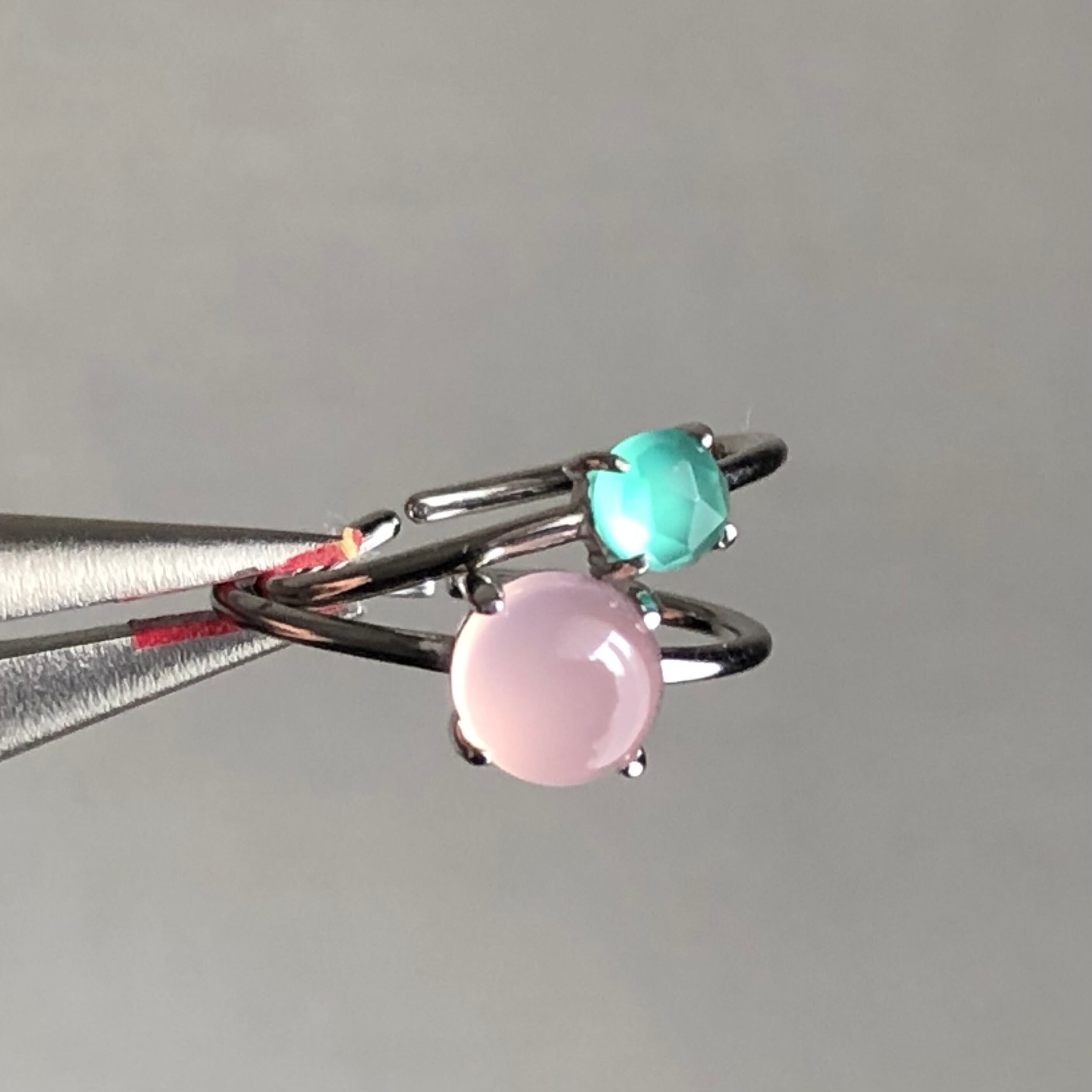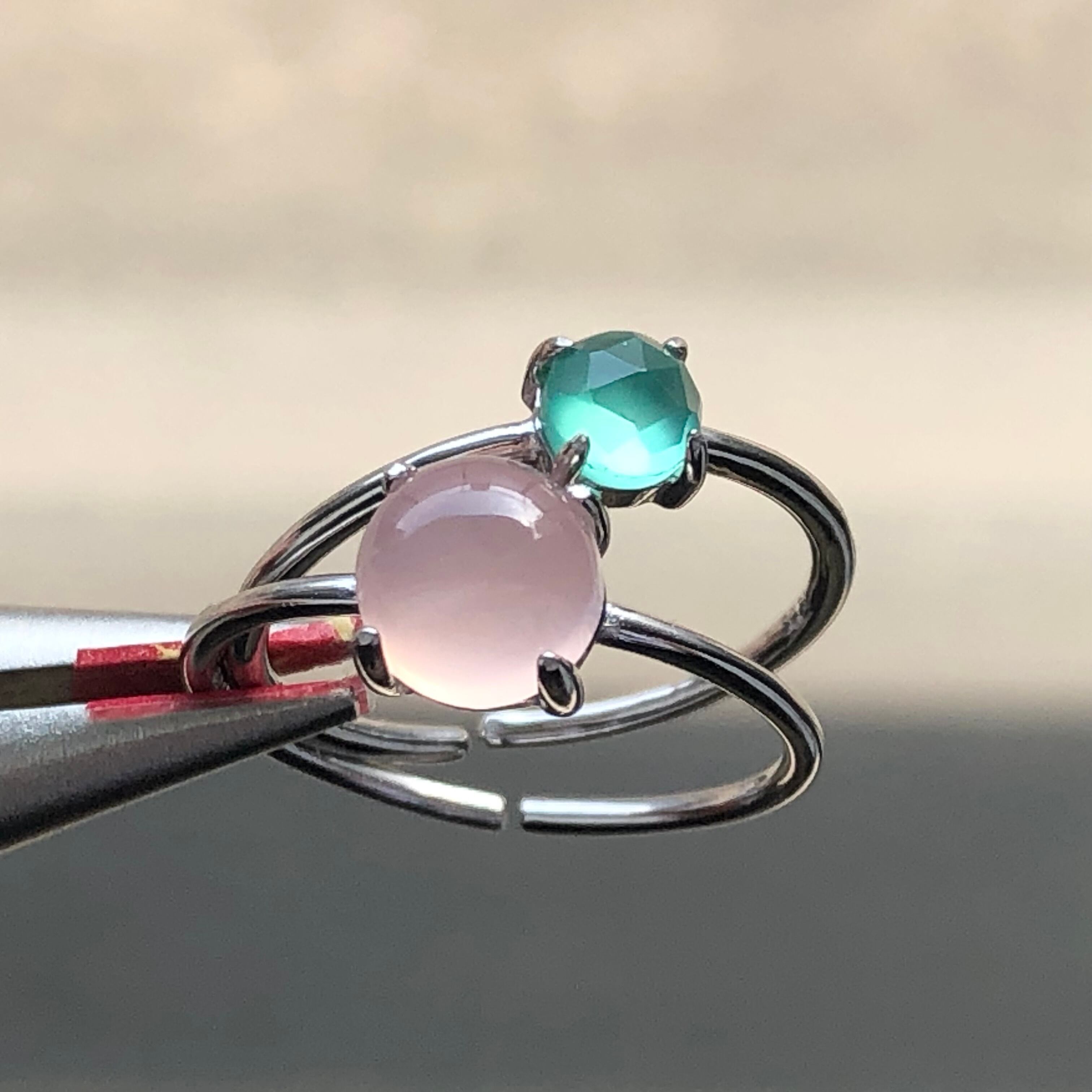 ピンクカルセドニーとグリーンオニキスのリングセットです。