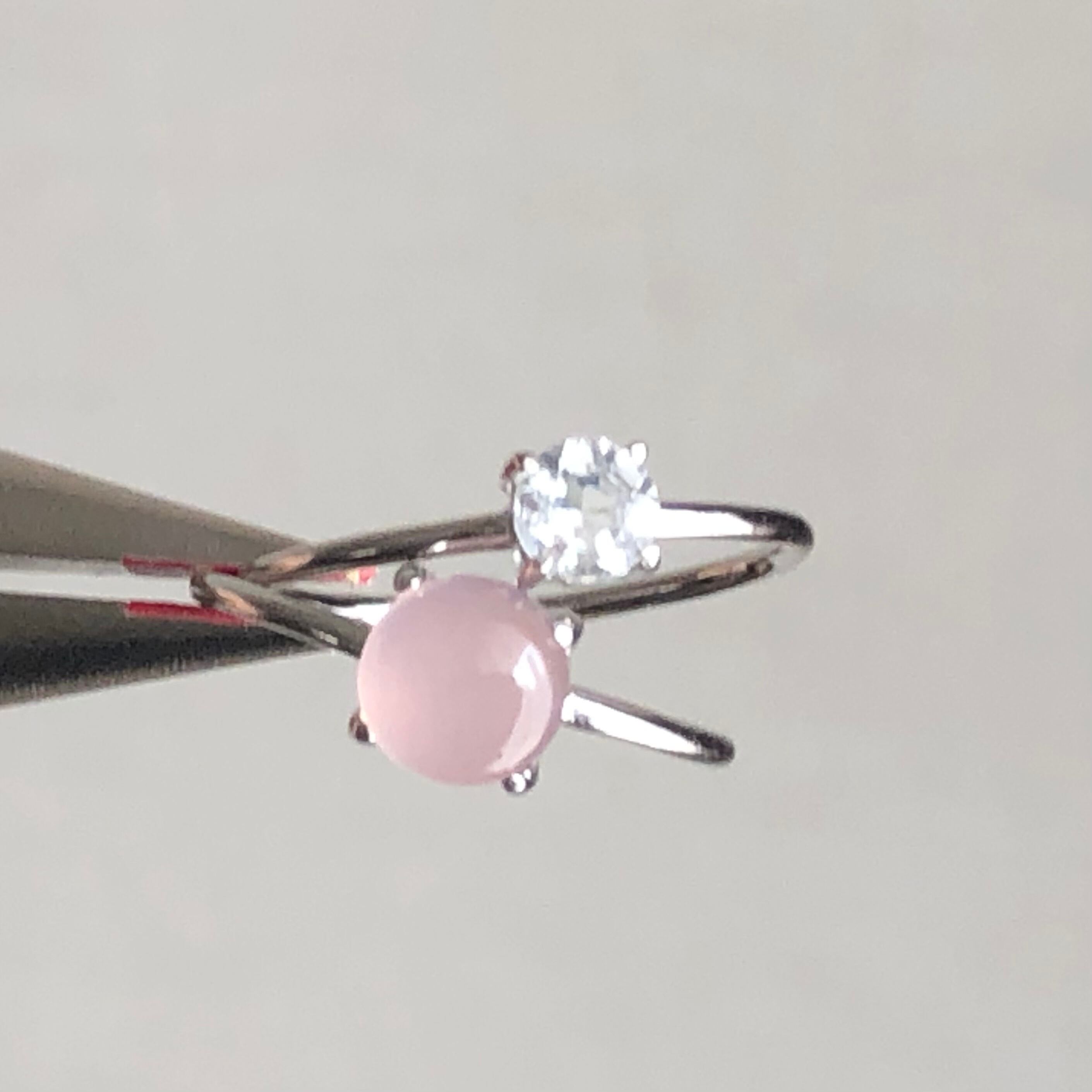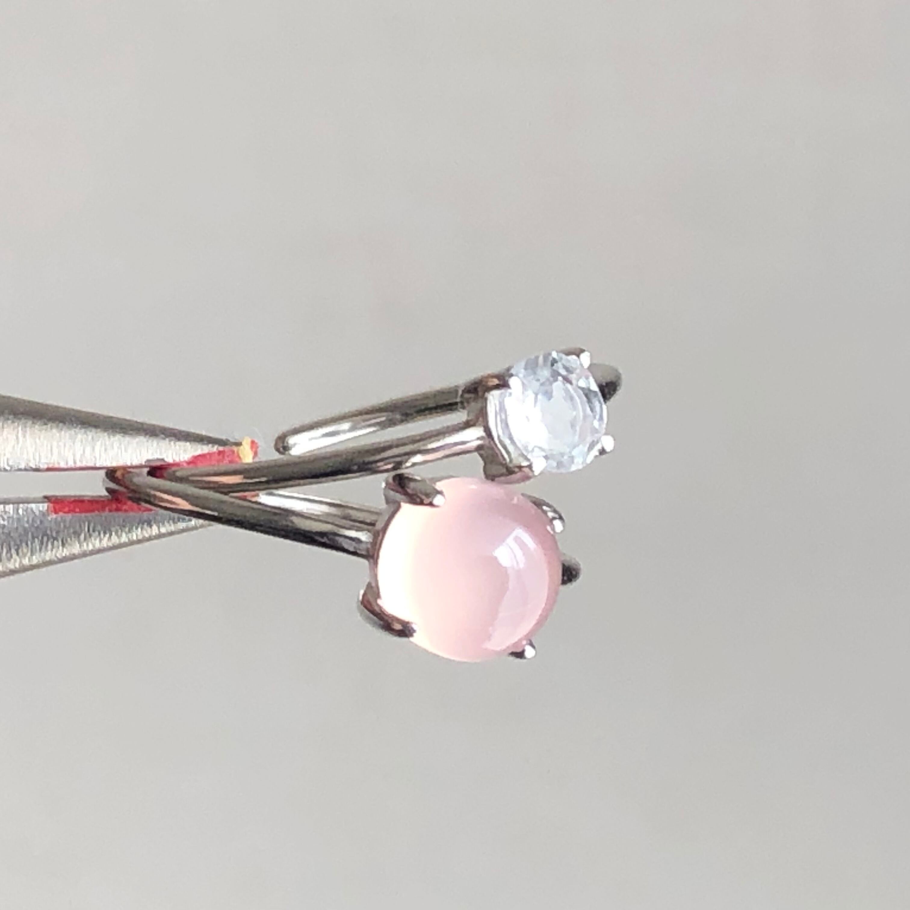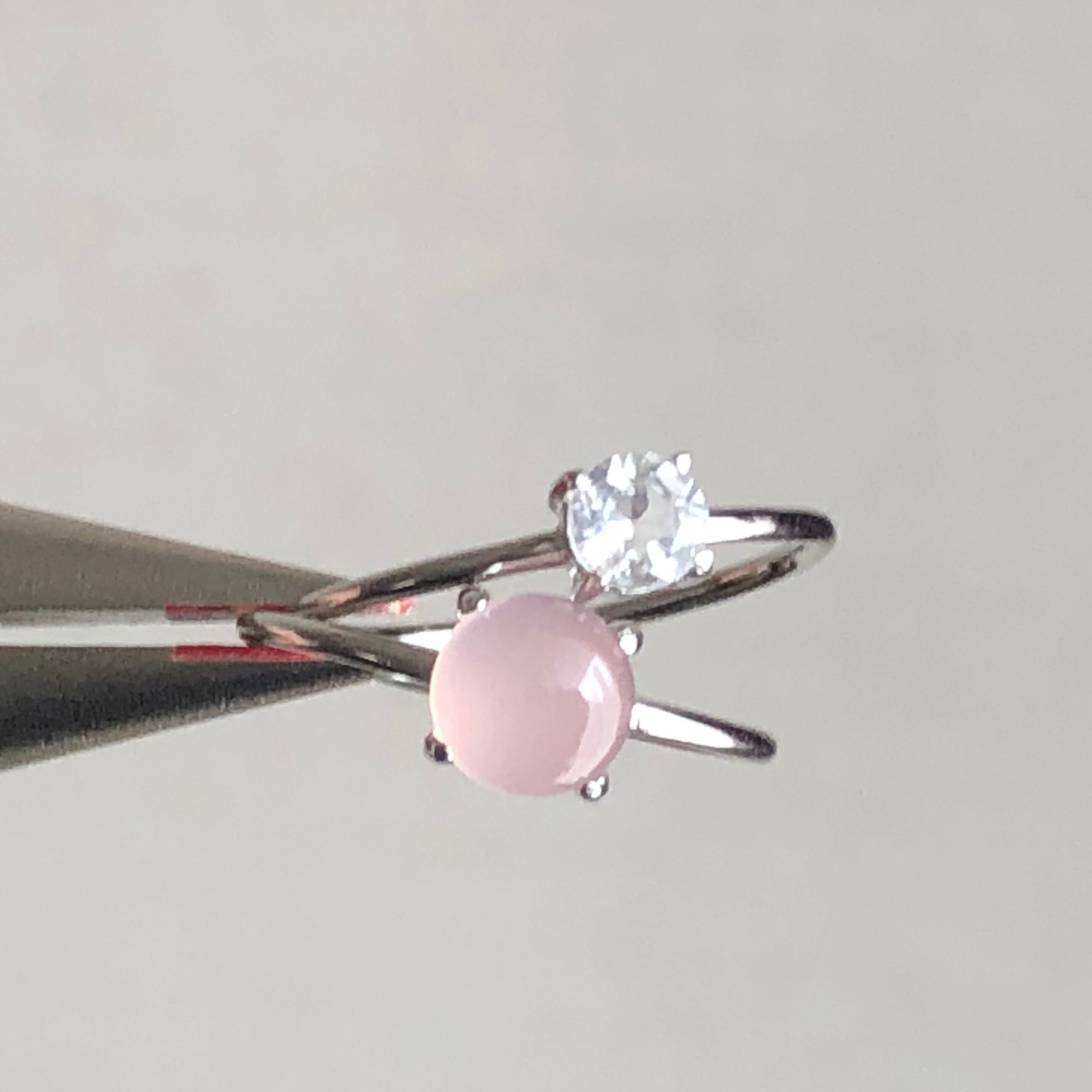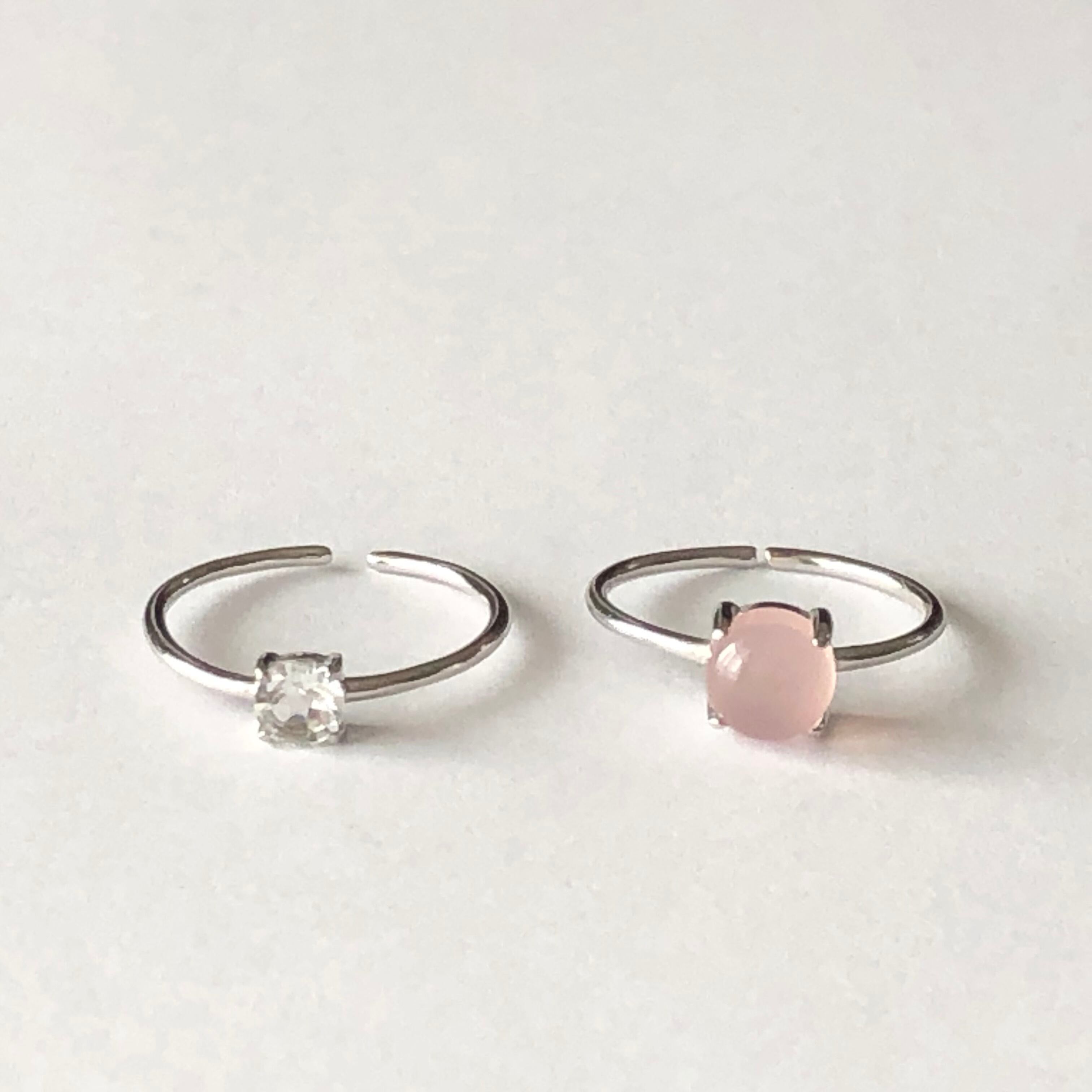 ピンクカルセドニーとホワイトトパーズのリングセットです。