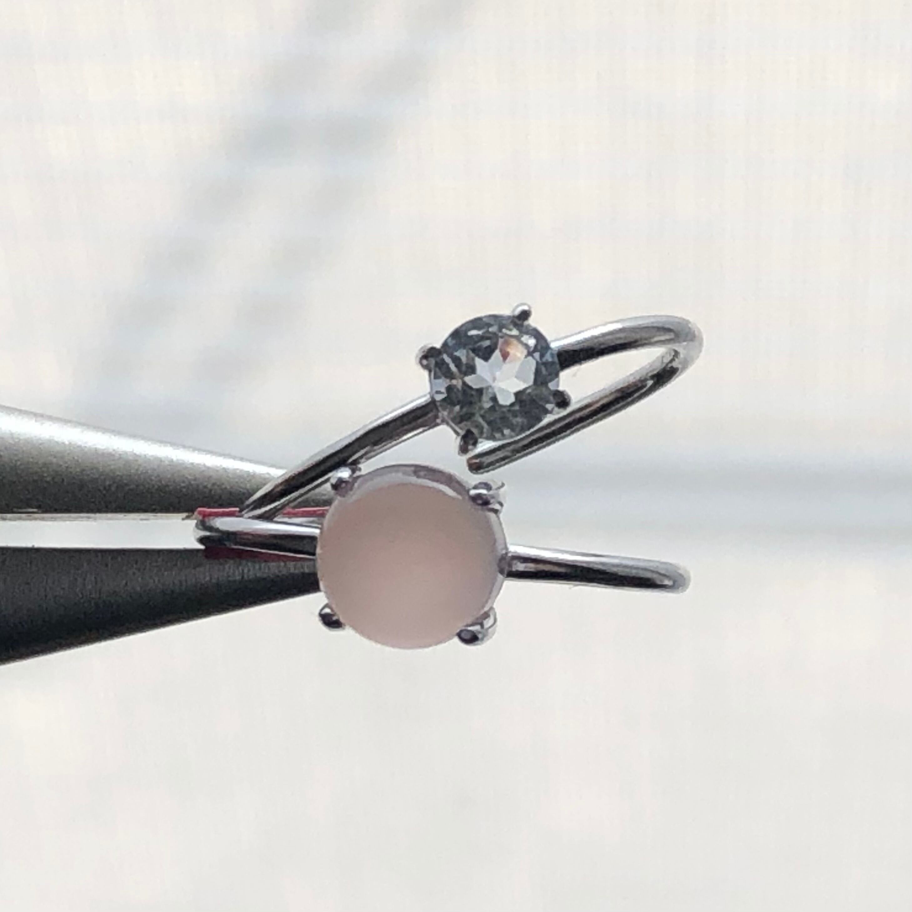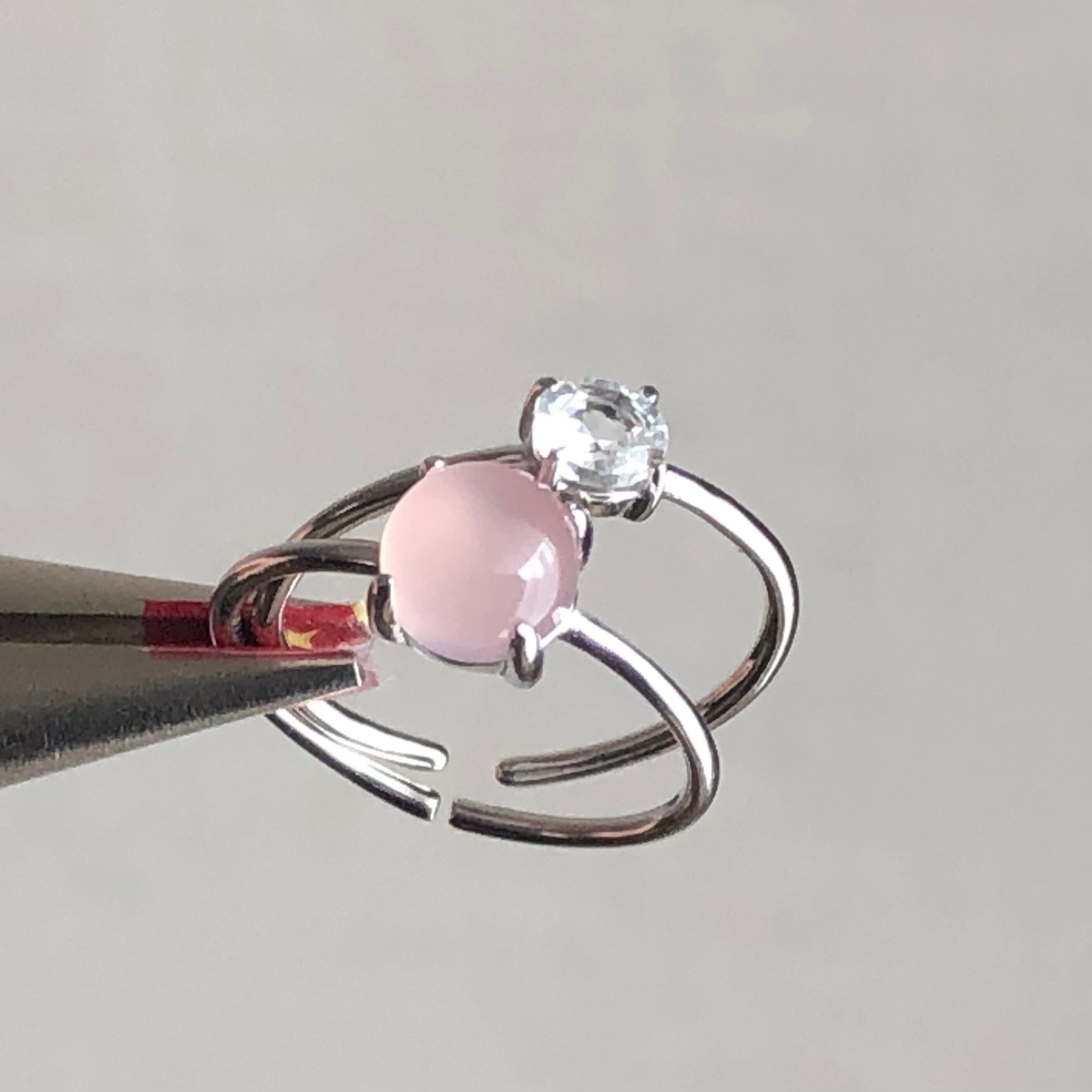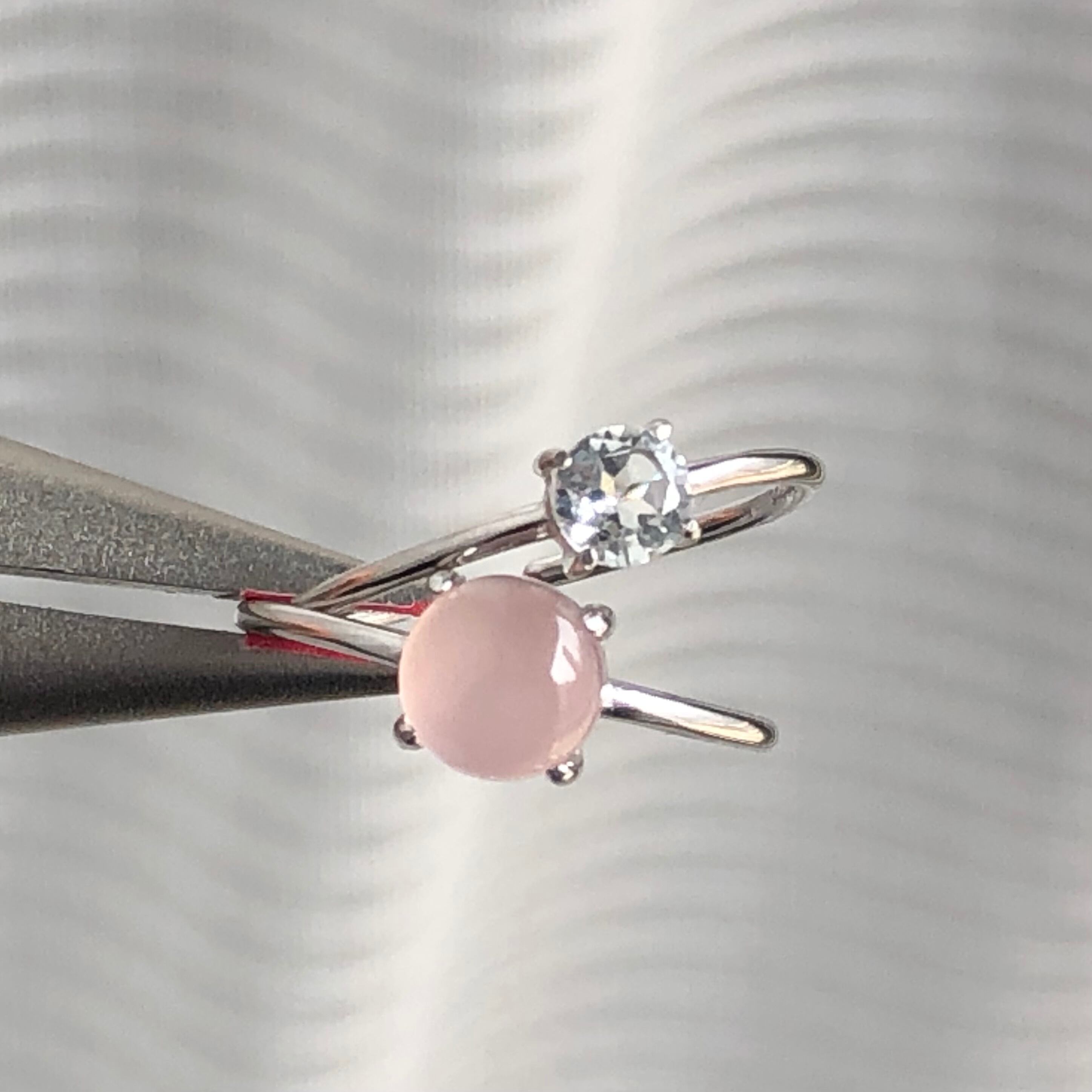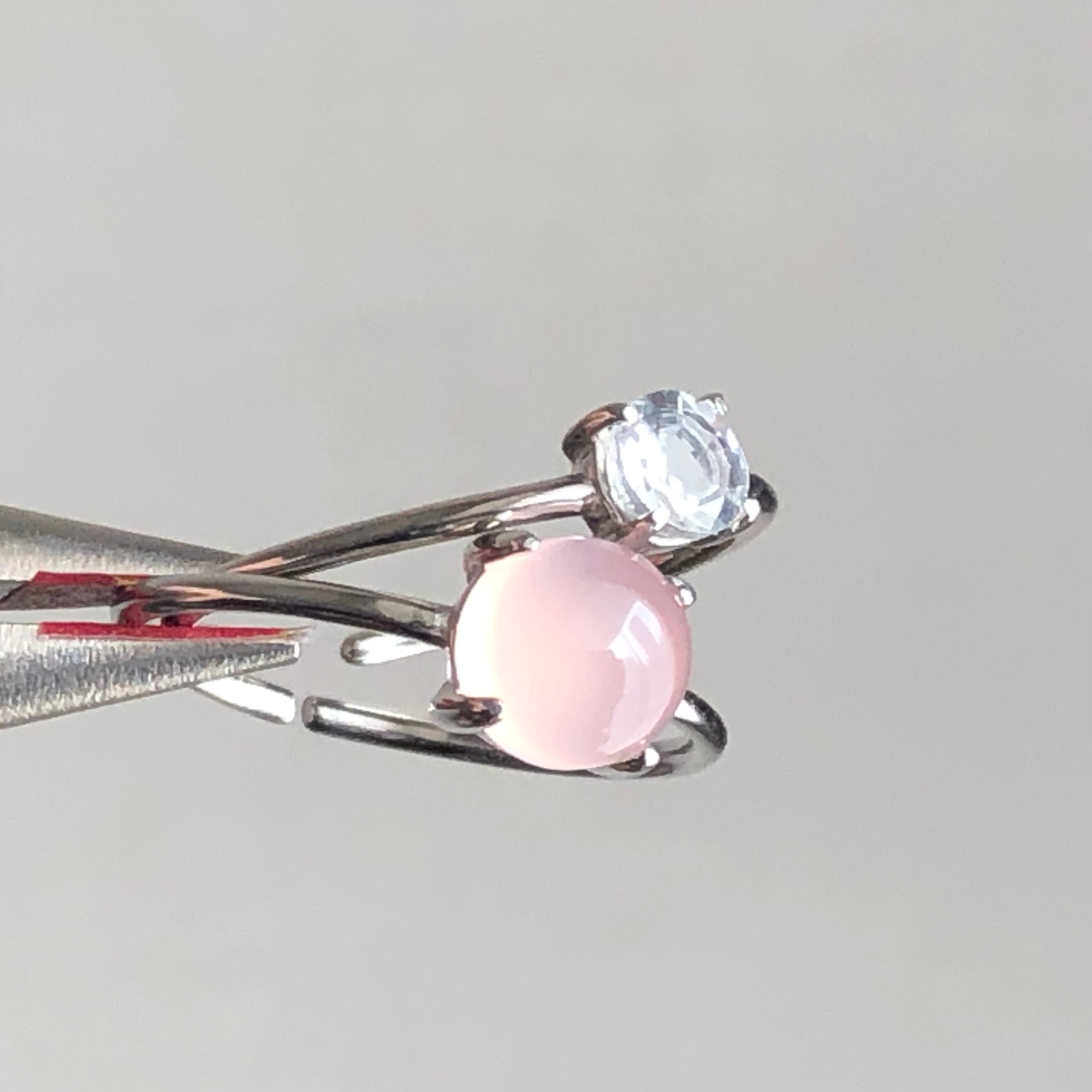ピンクカルセドニーとホワイトトパーズのリングセットです。