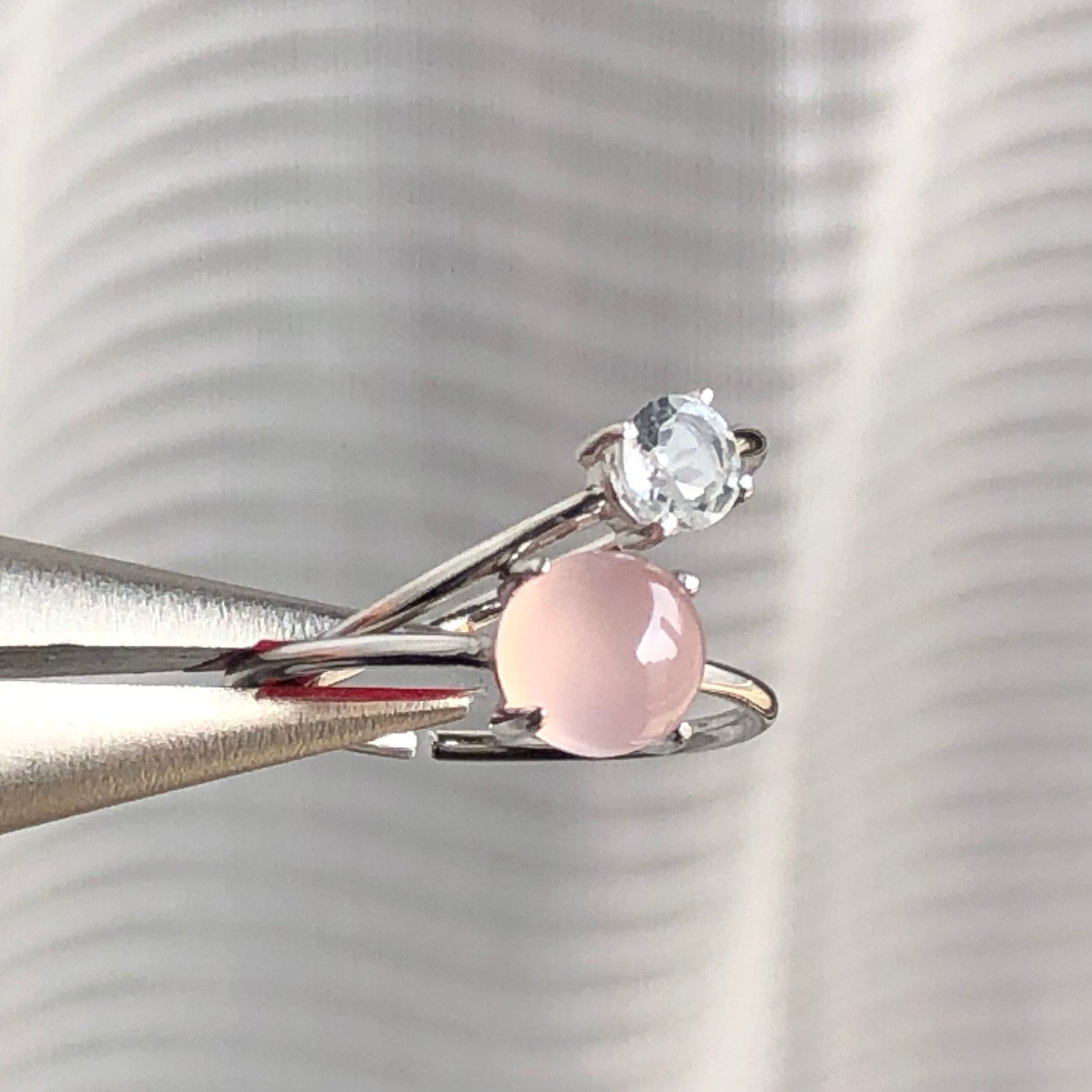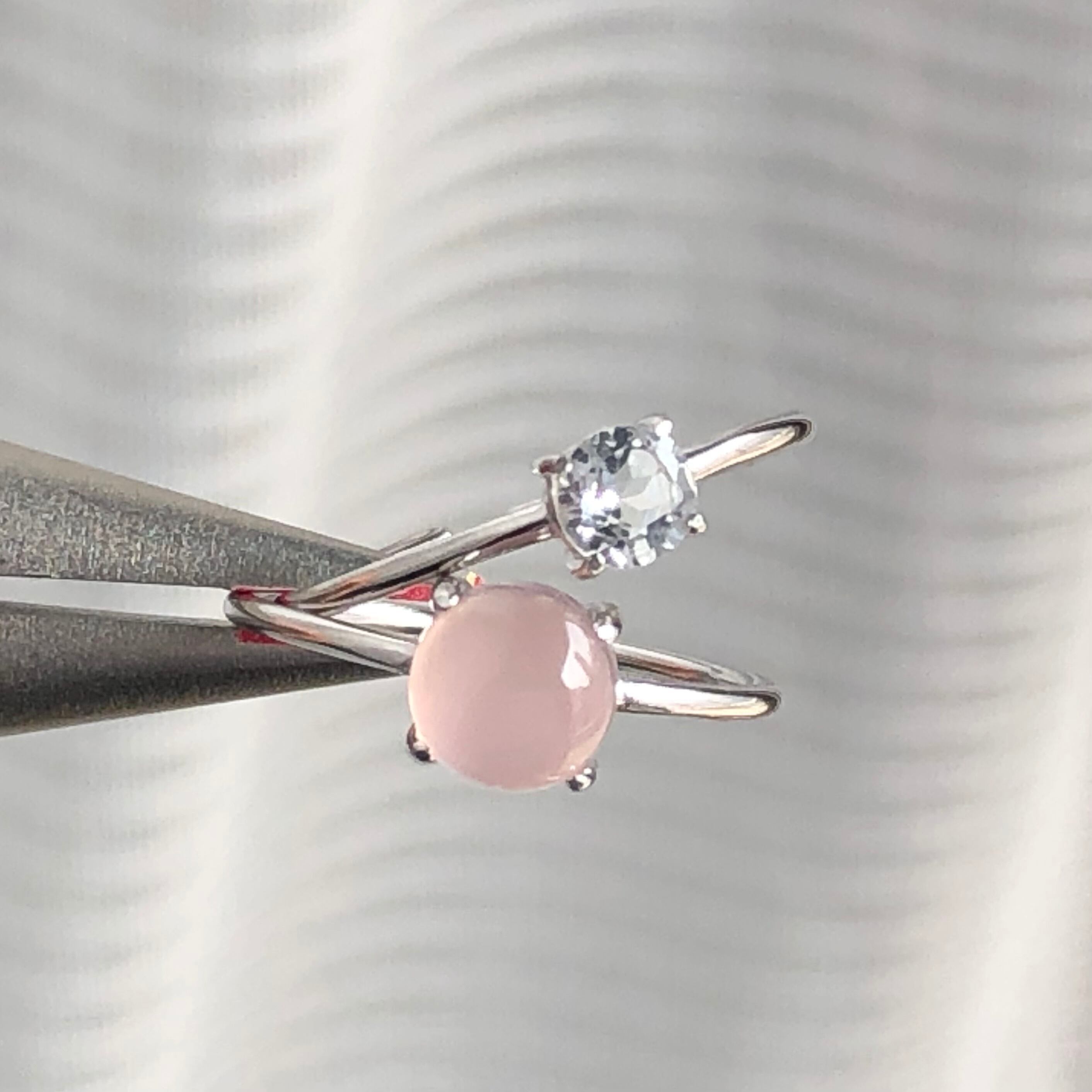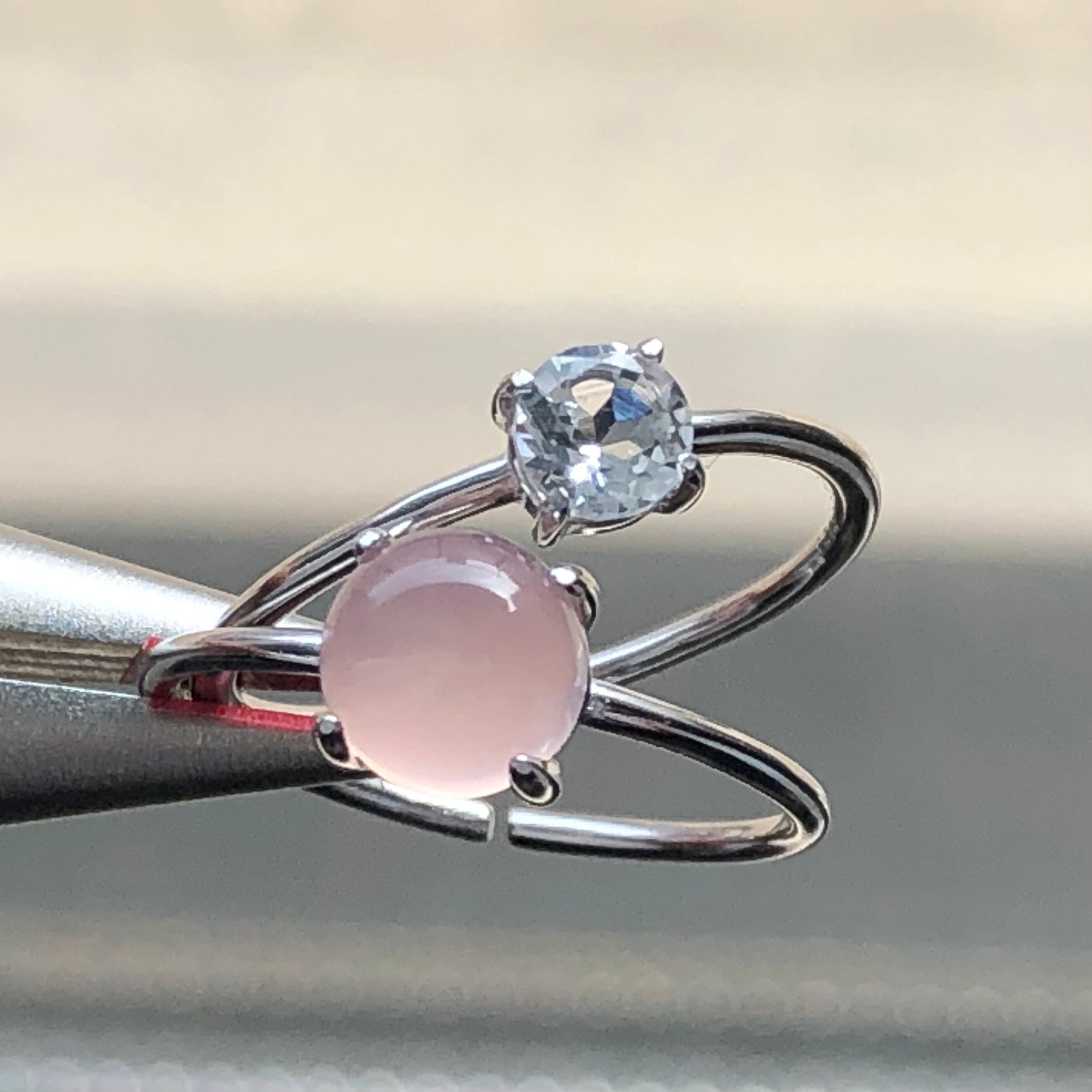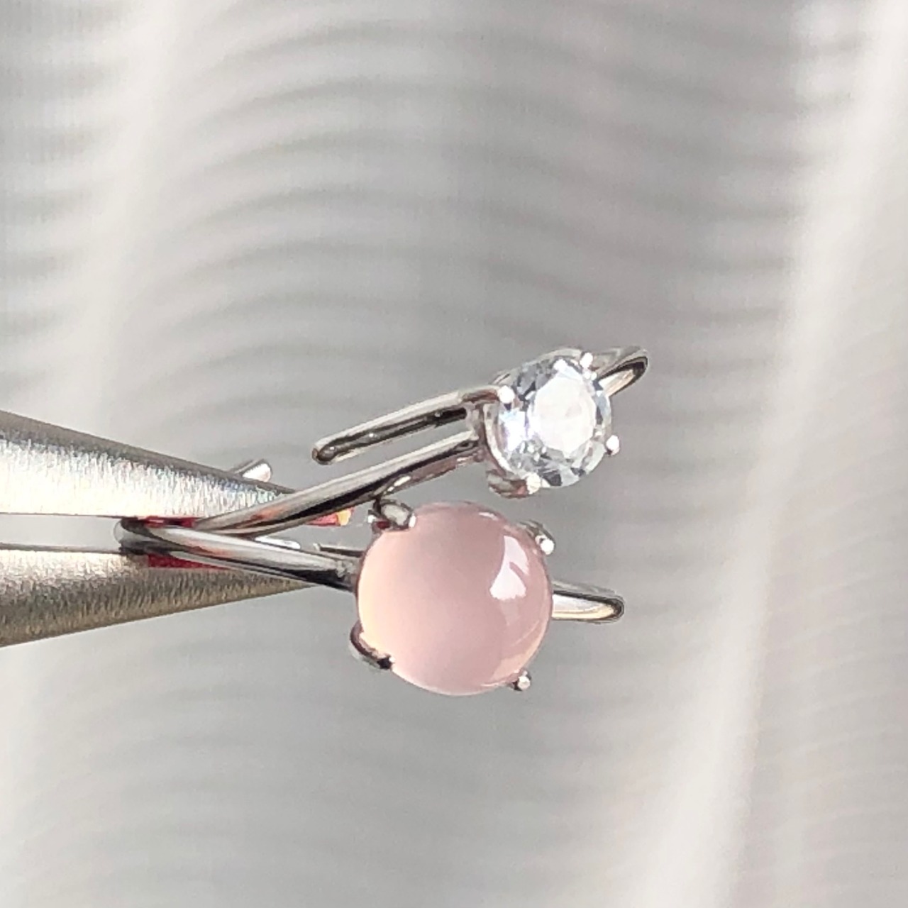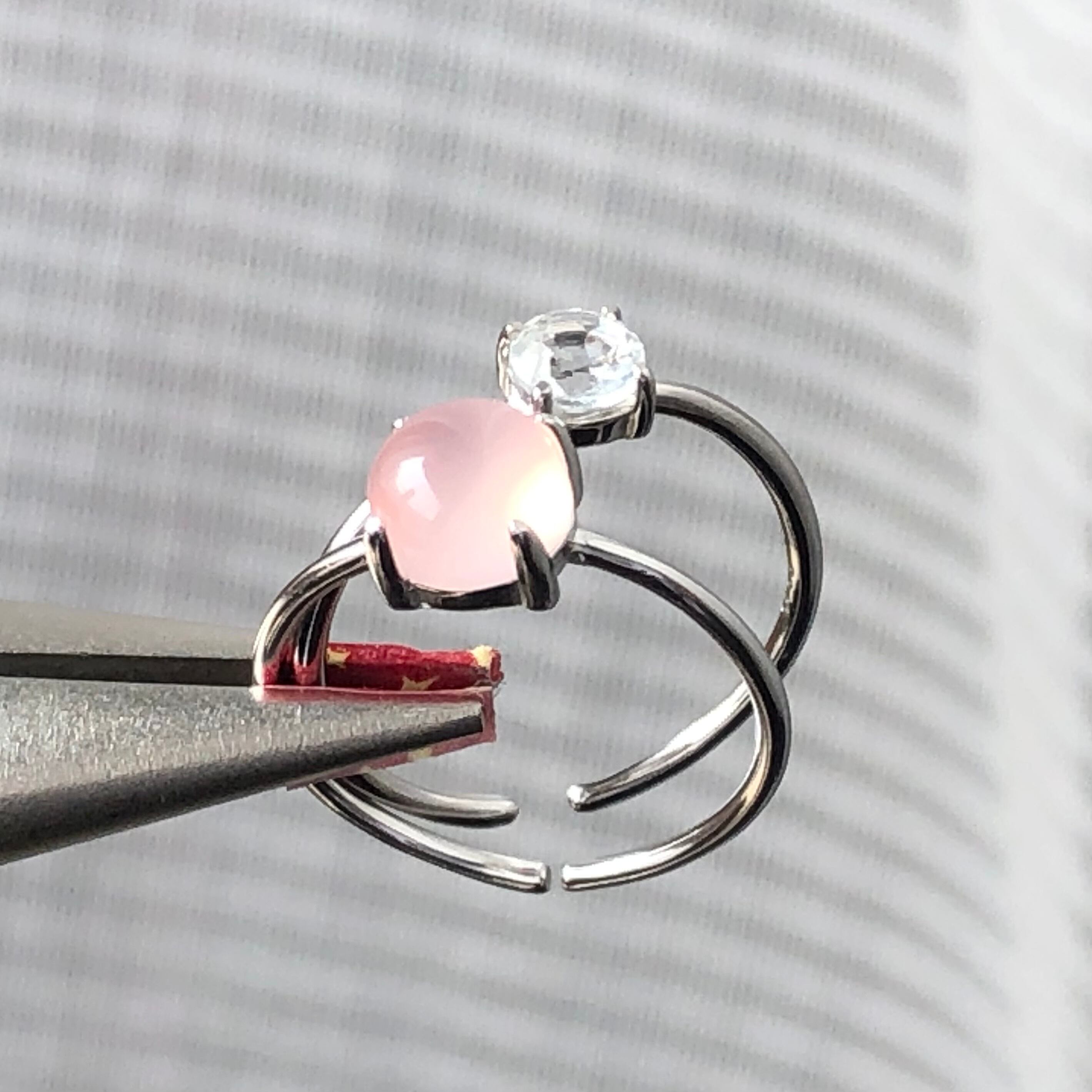 ピンクカルセドニーとホワイトトパーズのリングセットです。
