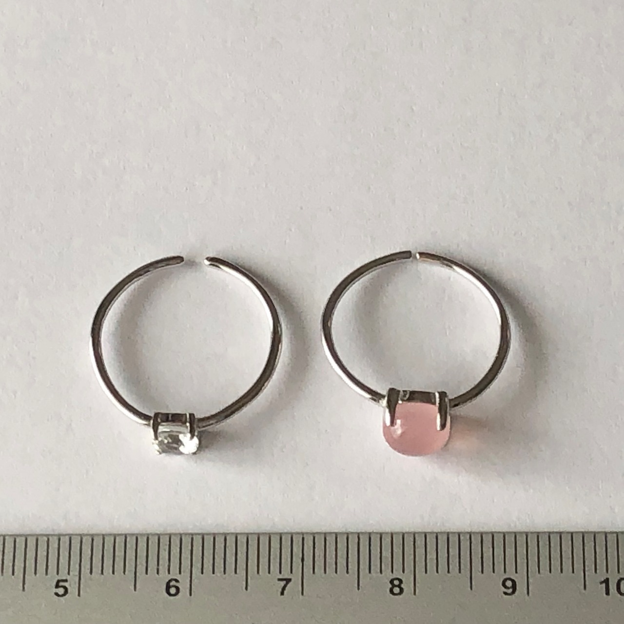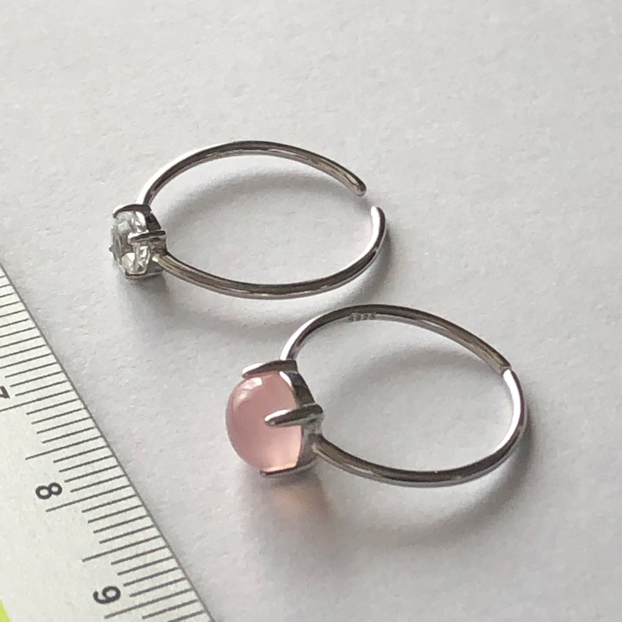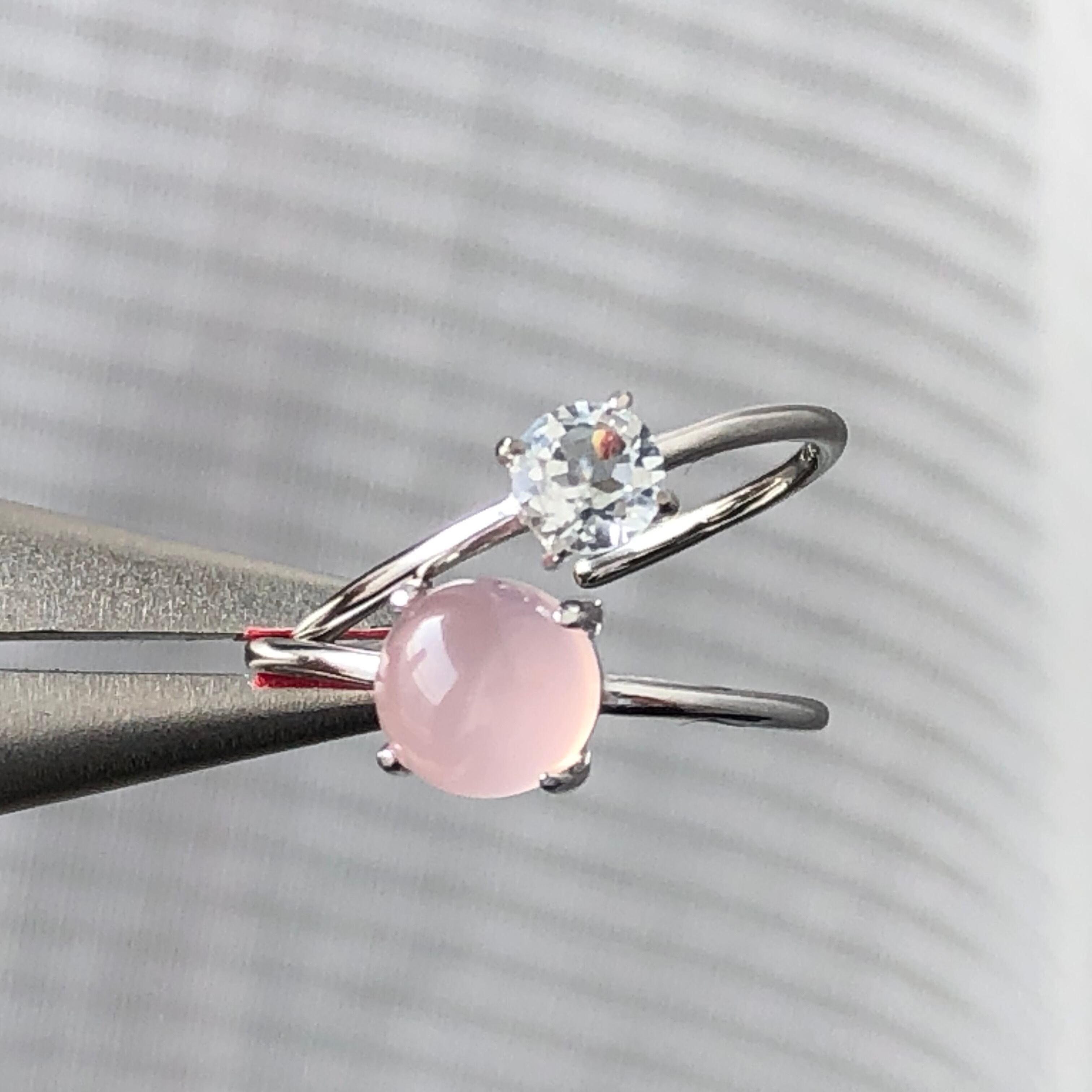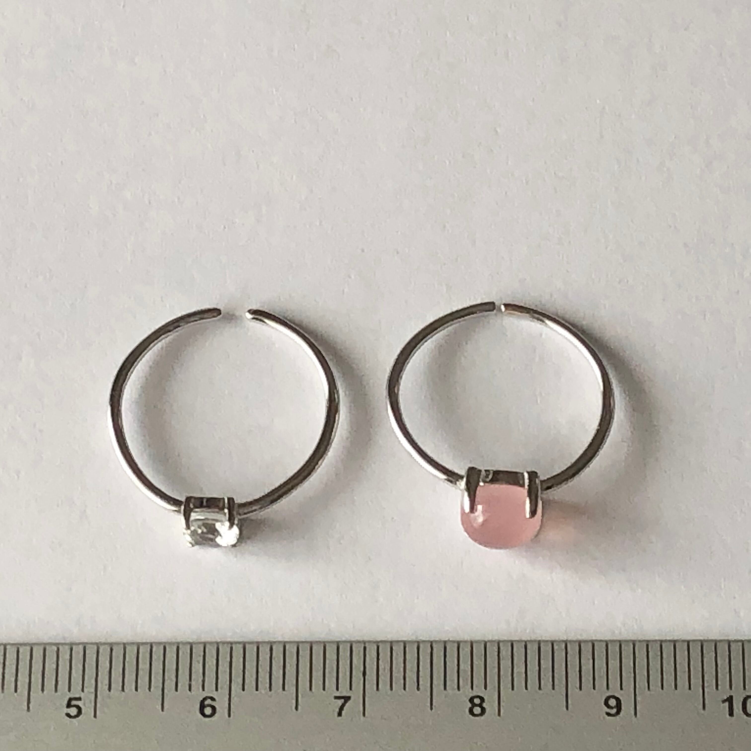 ピンクカルセドニーとホワイトトパーズのリングセットです。