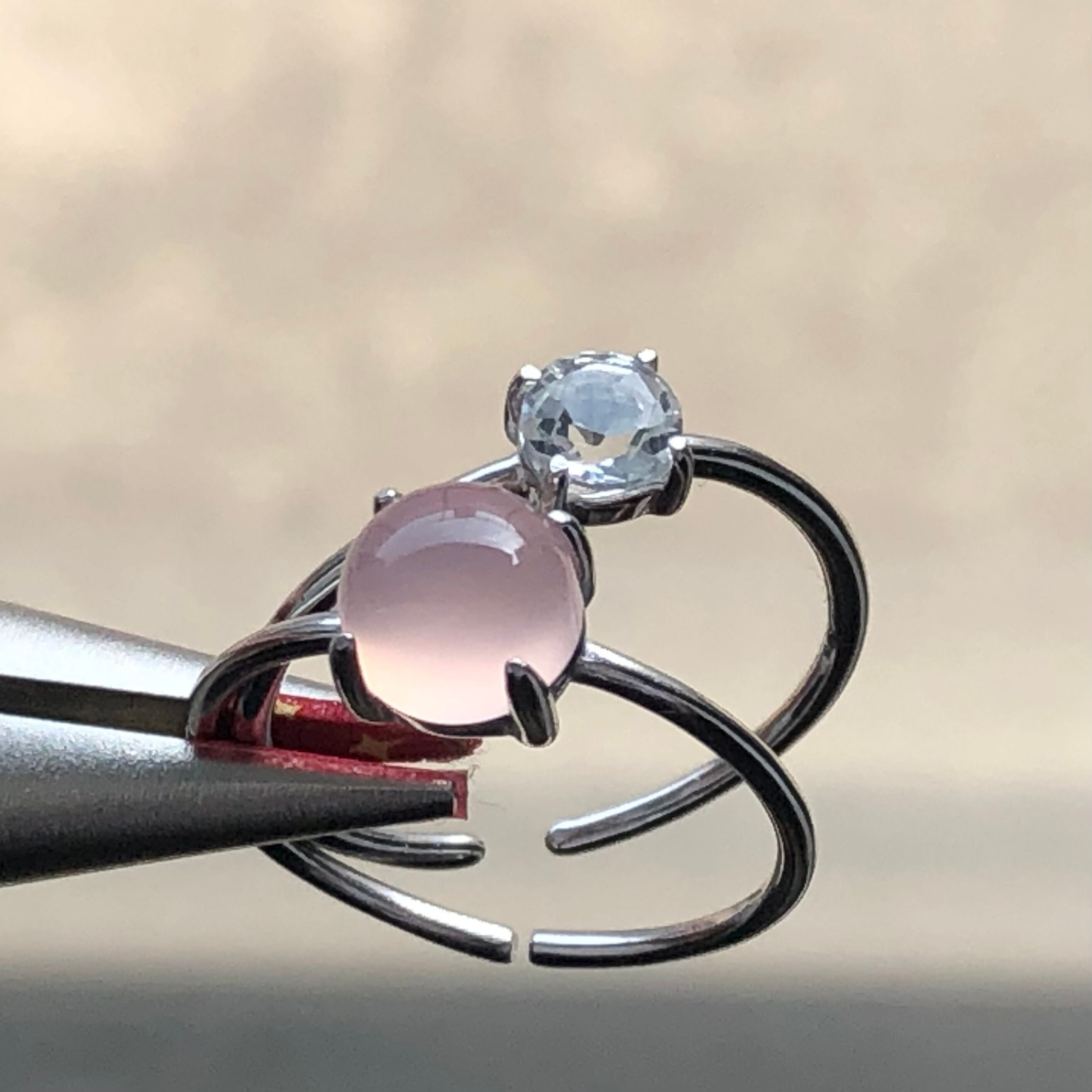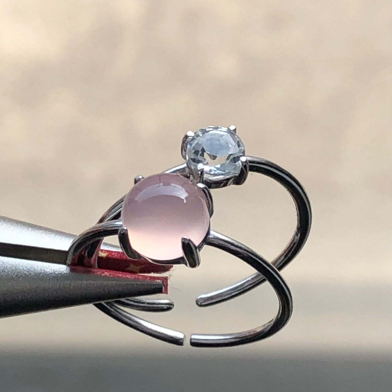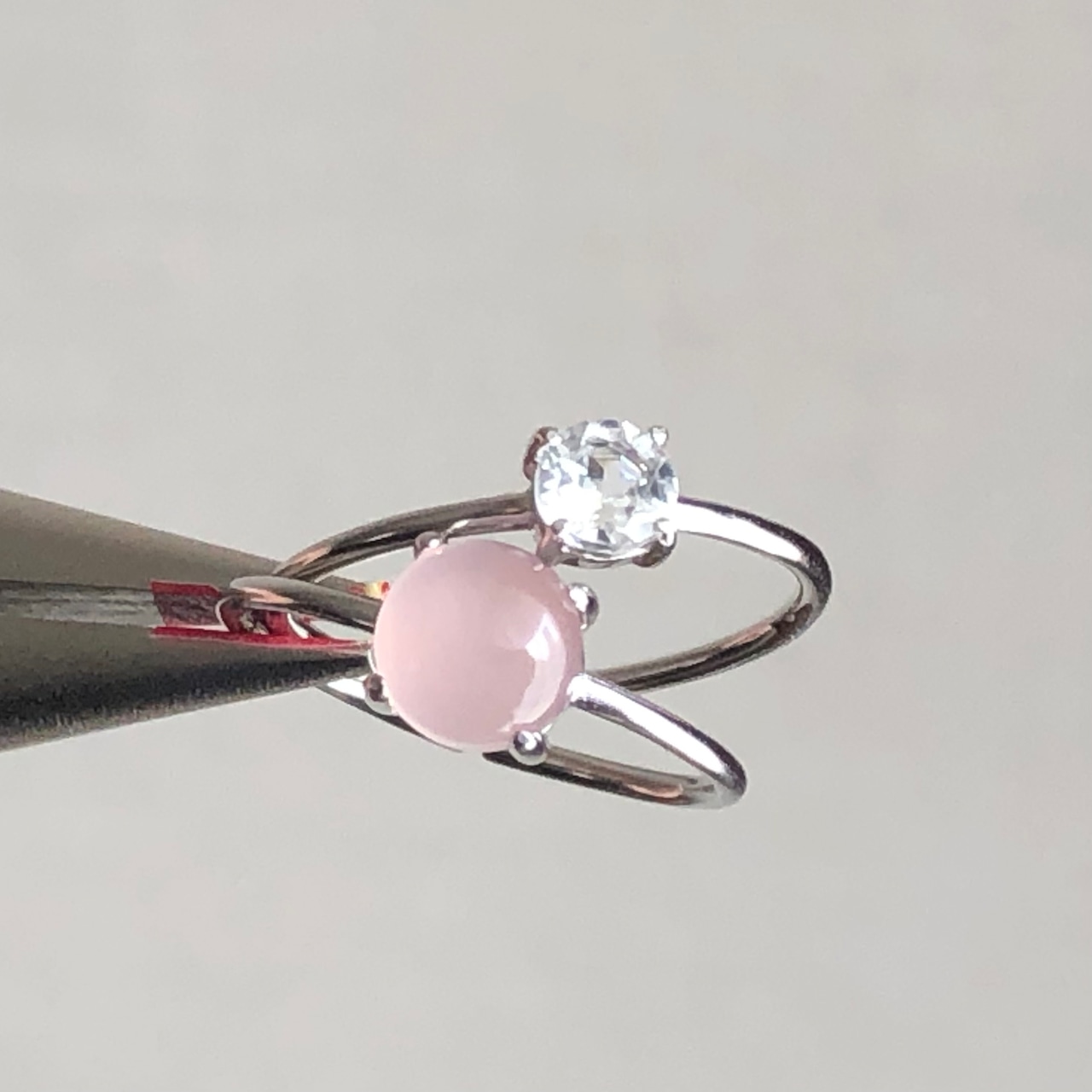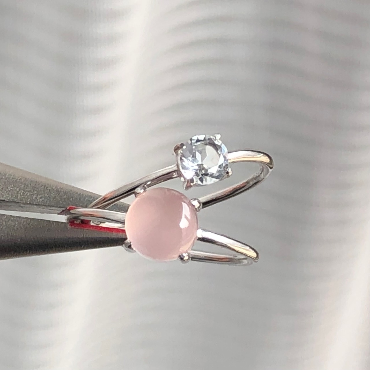 ピンクカルセドニーとホワイトトパーズのリングセットです。