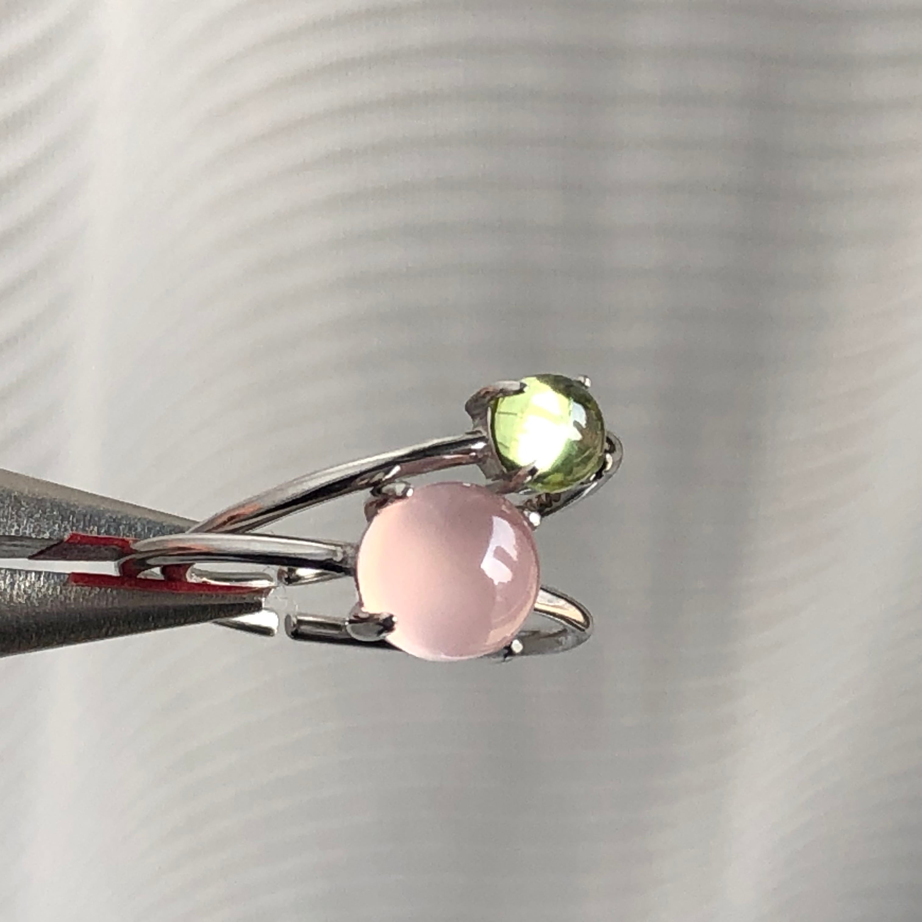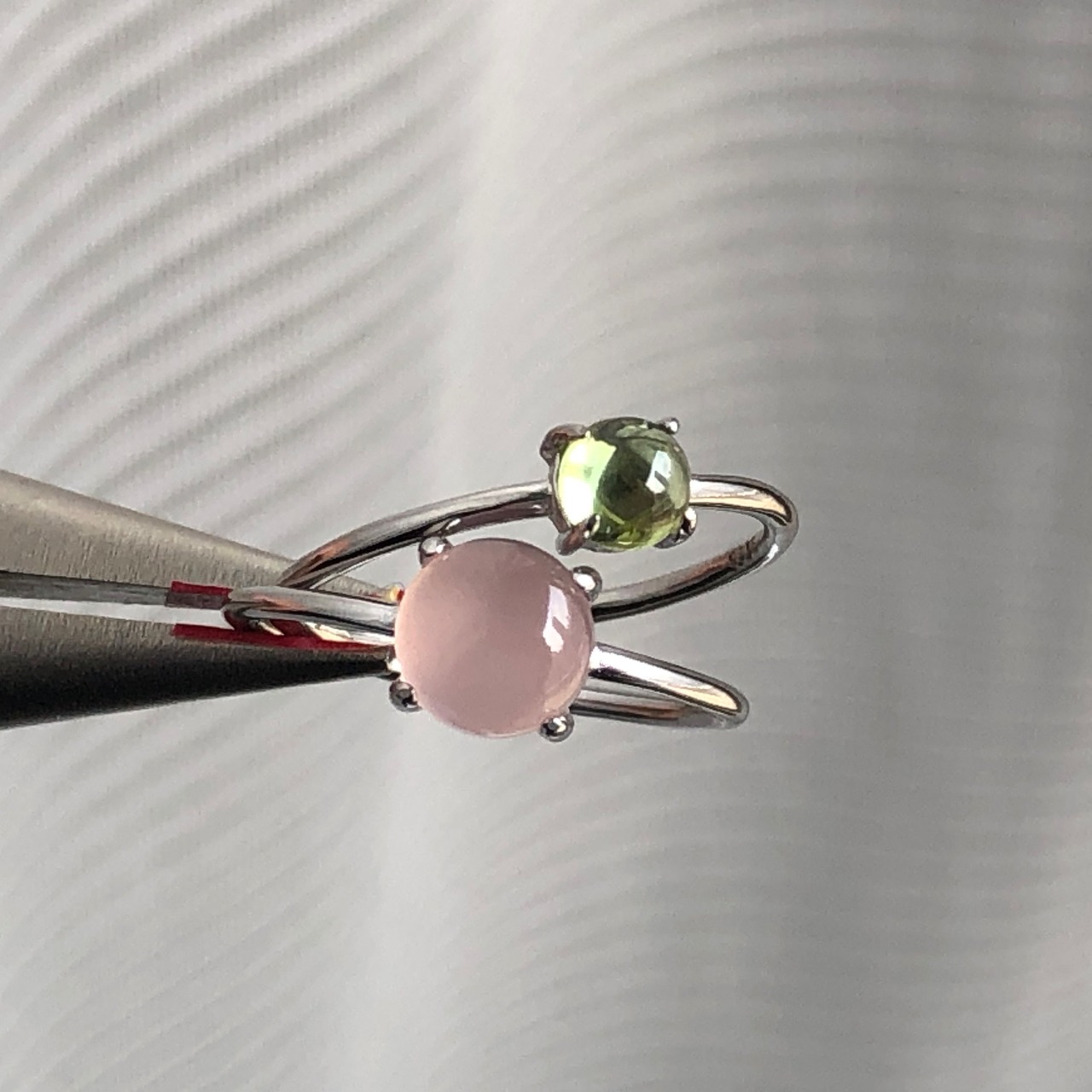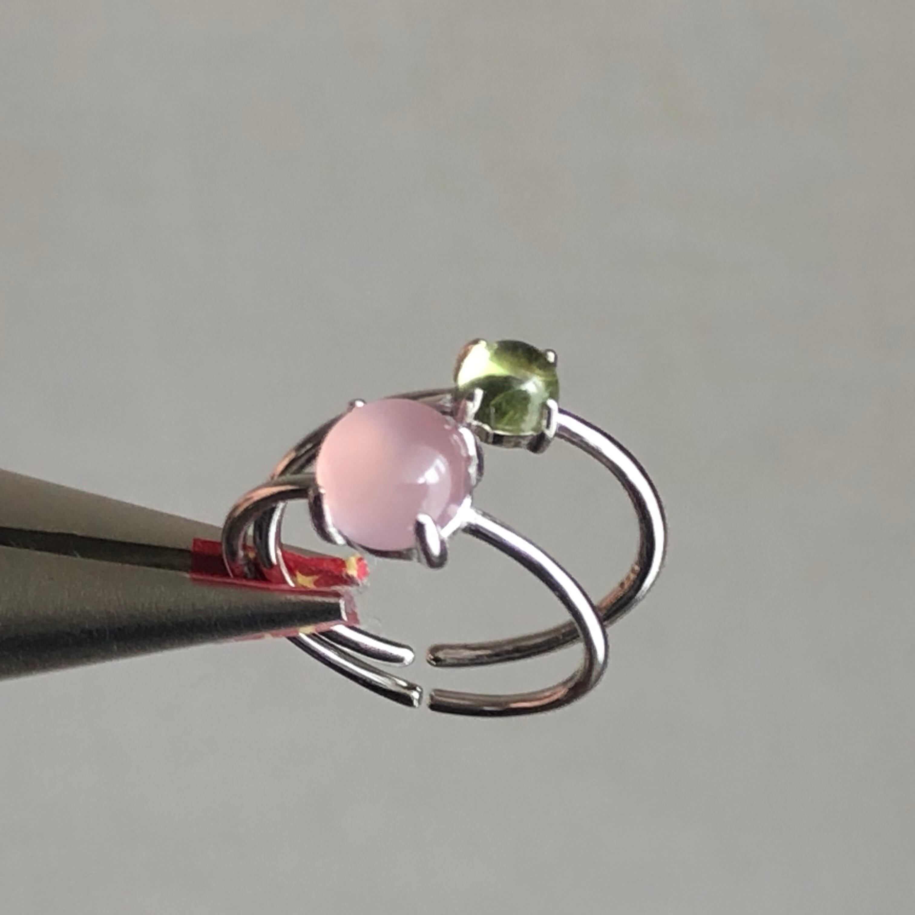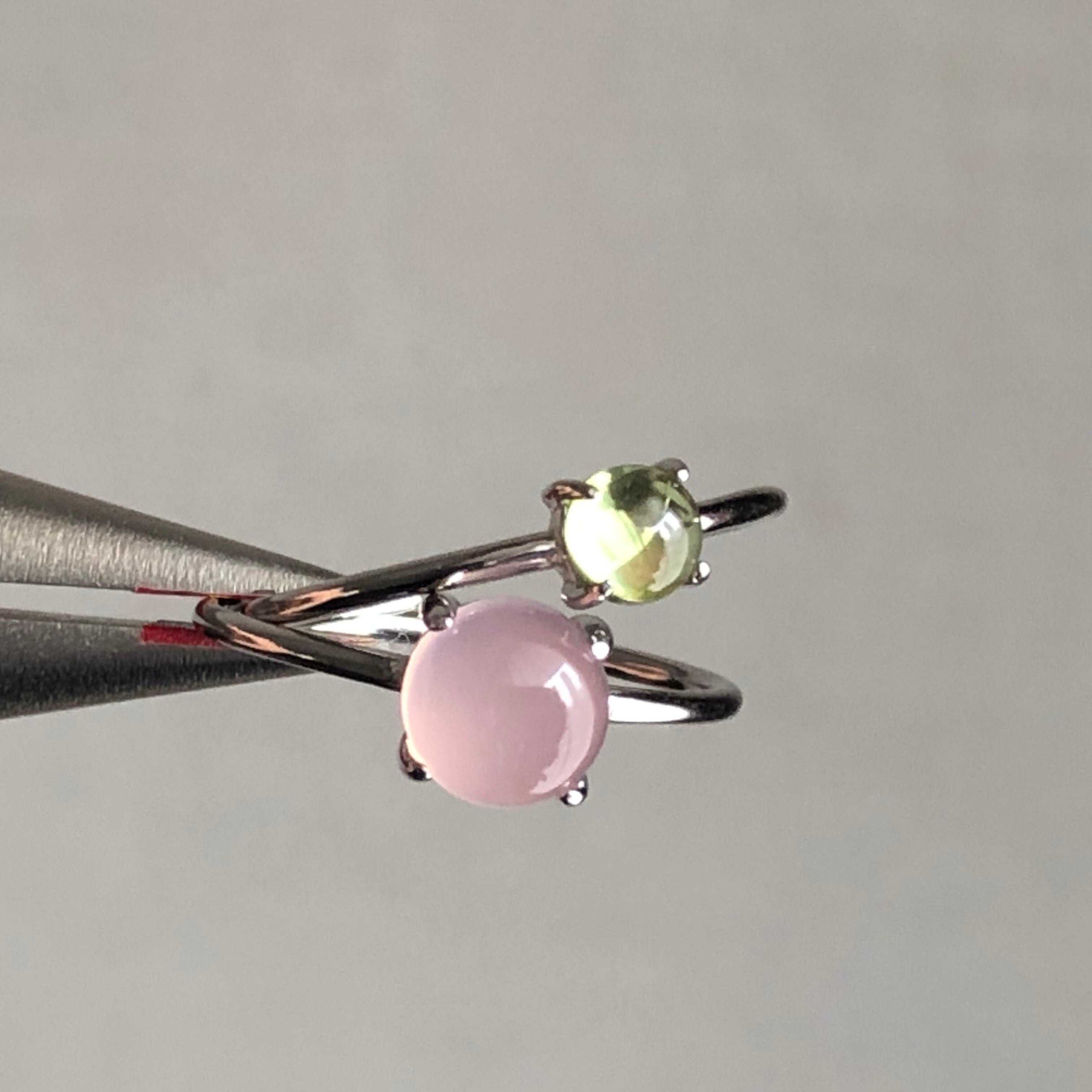 (ピンクカルセドニー6mm、ペリドット4mm)