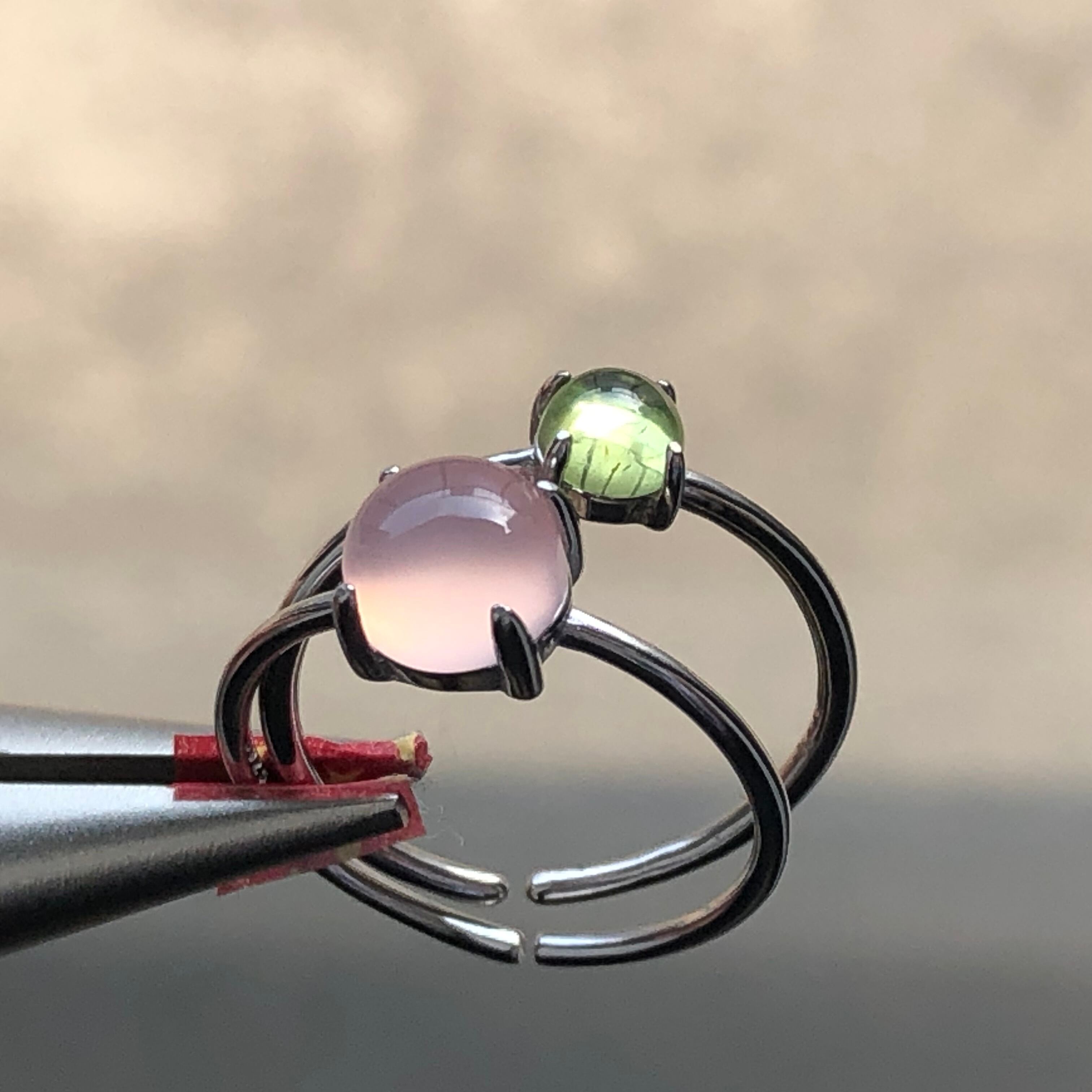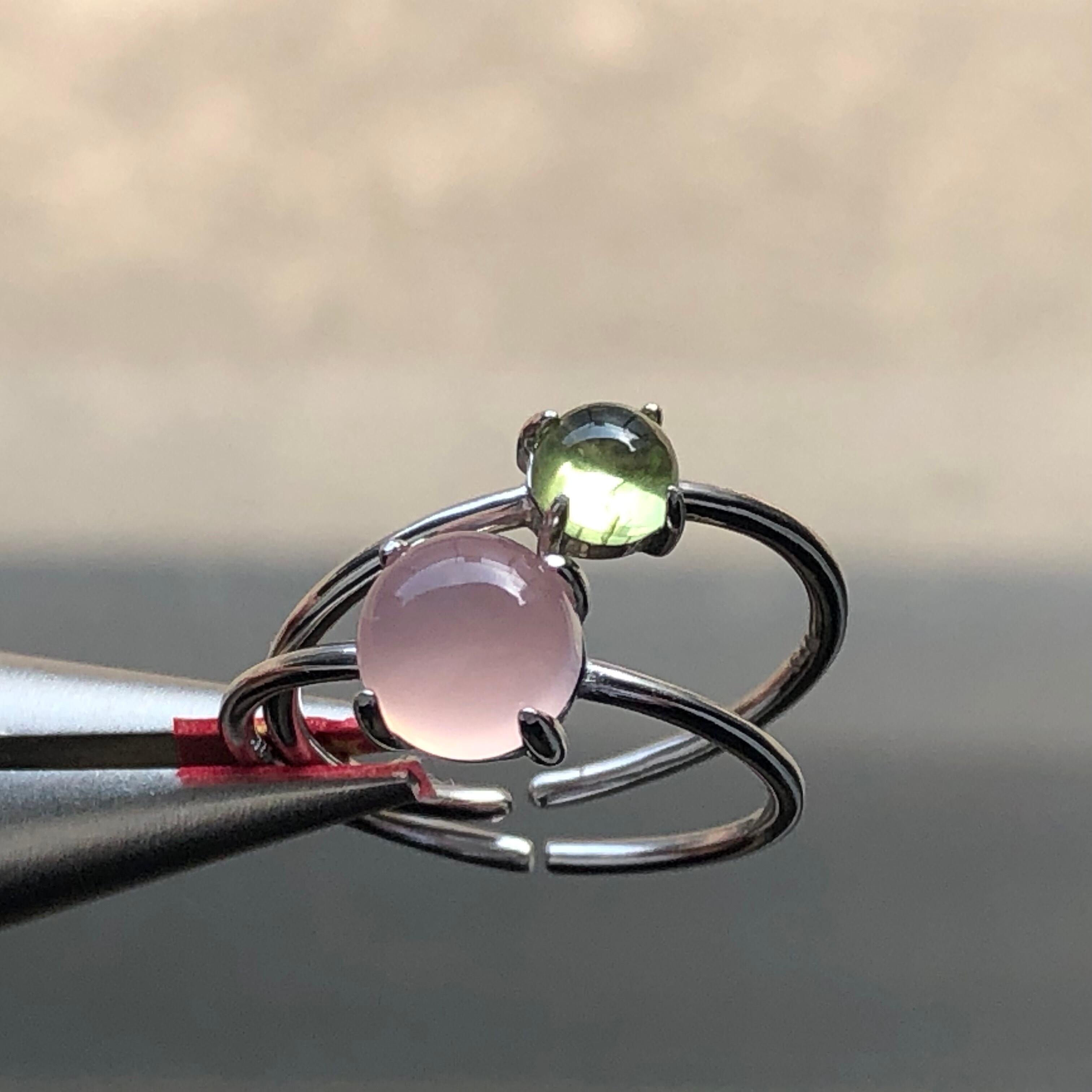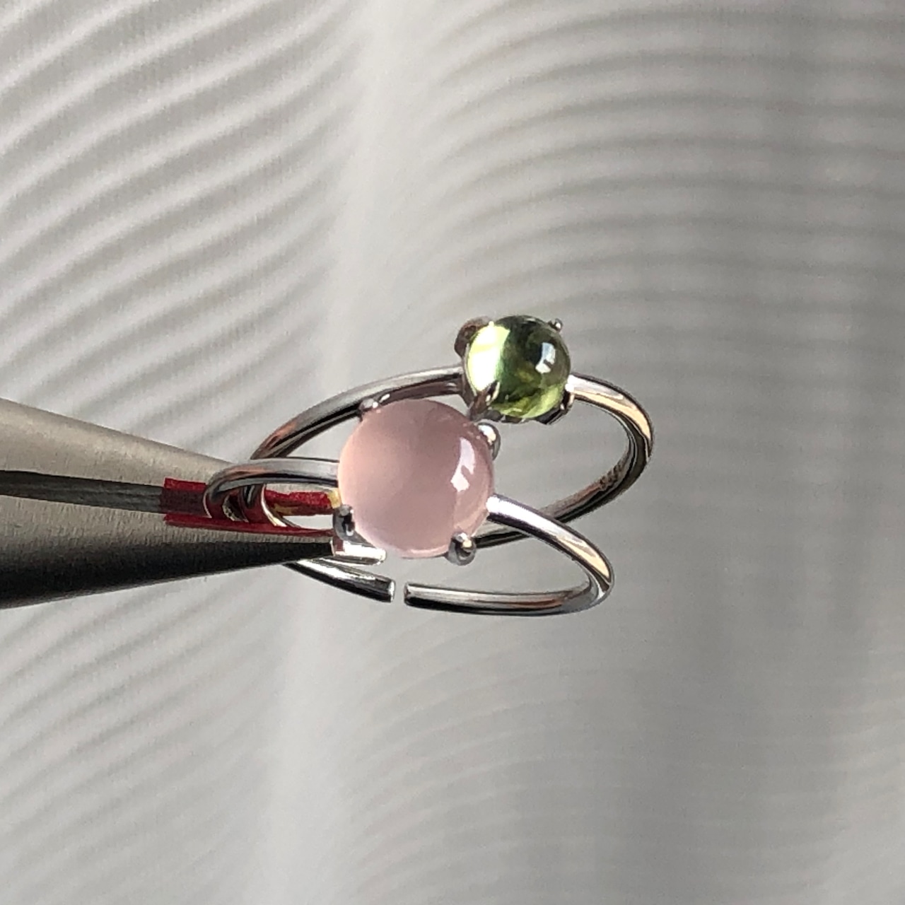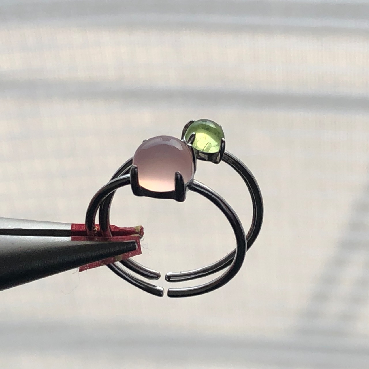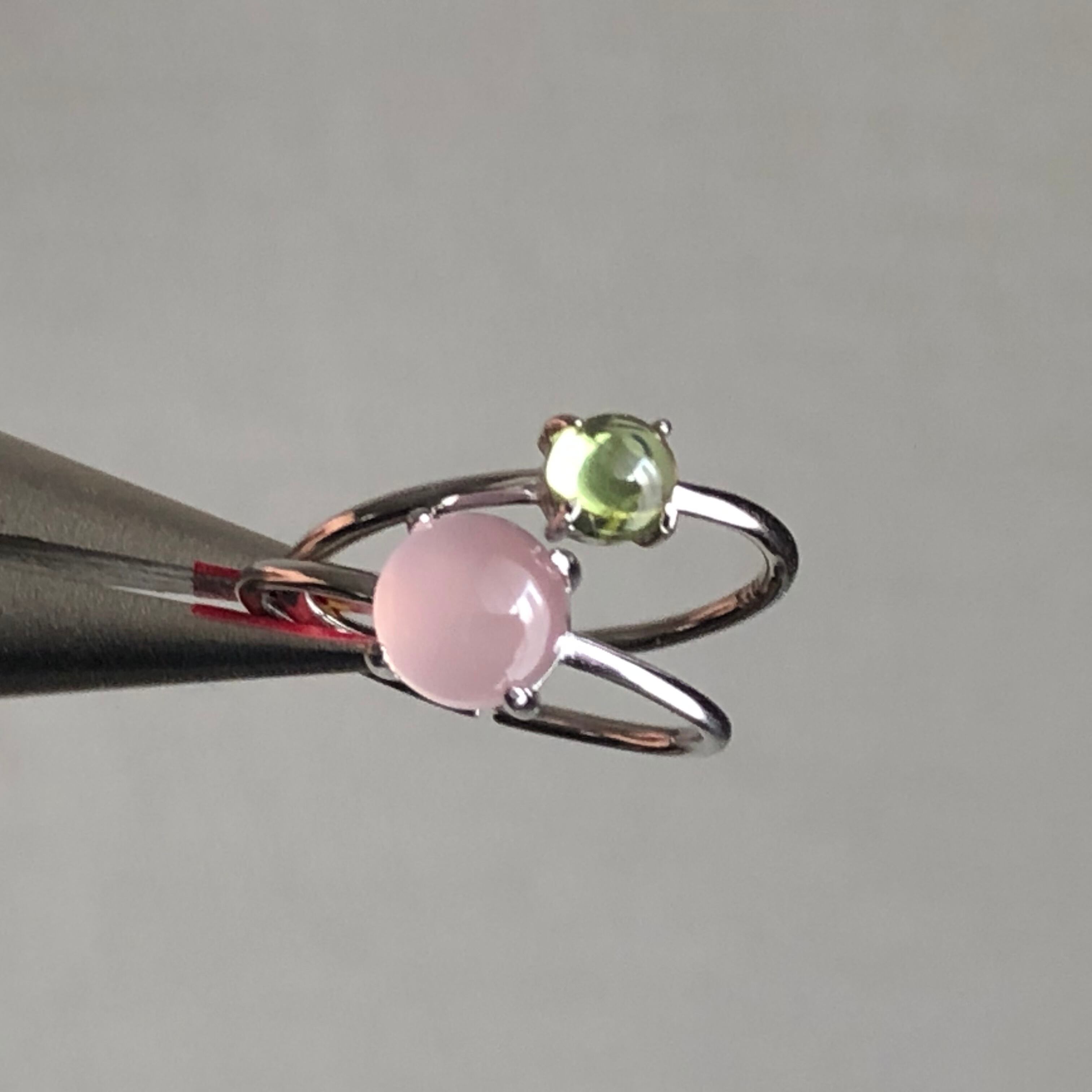 (ピンクカルセドニー6mm、ペリドット4mm)