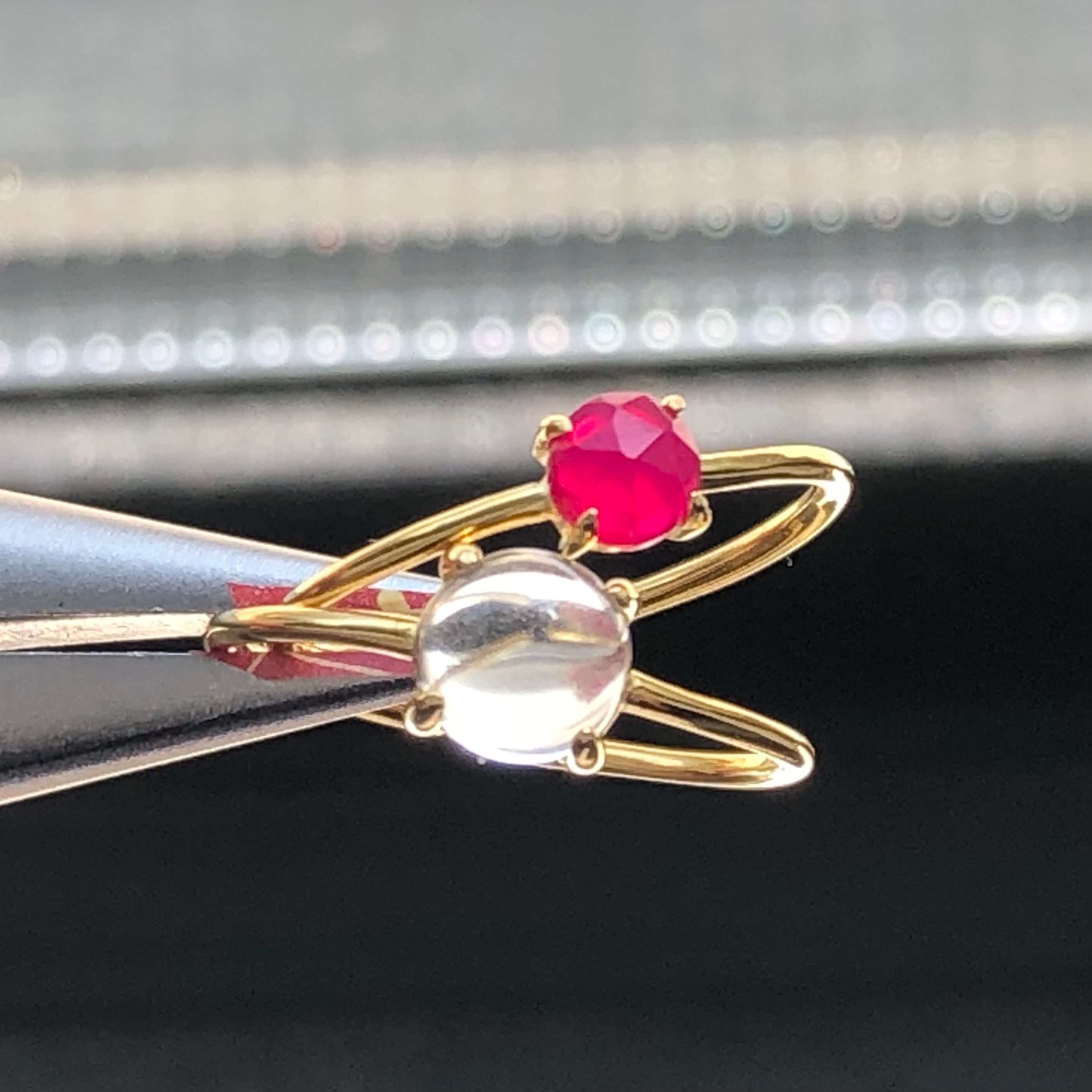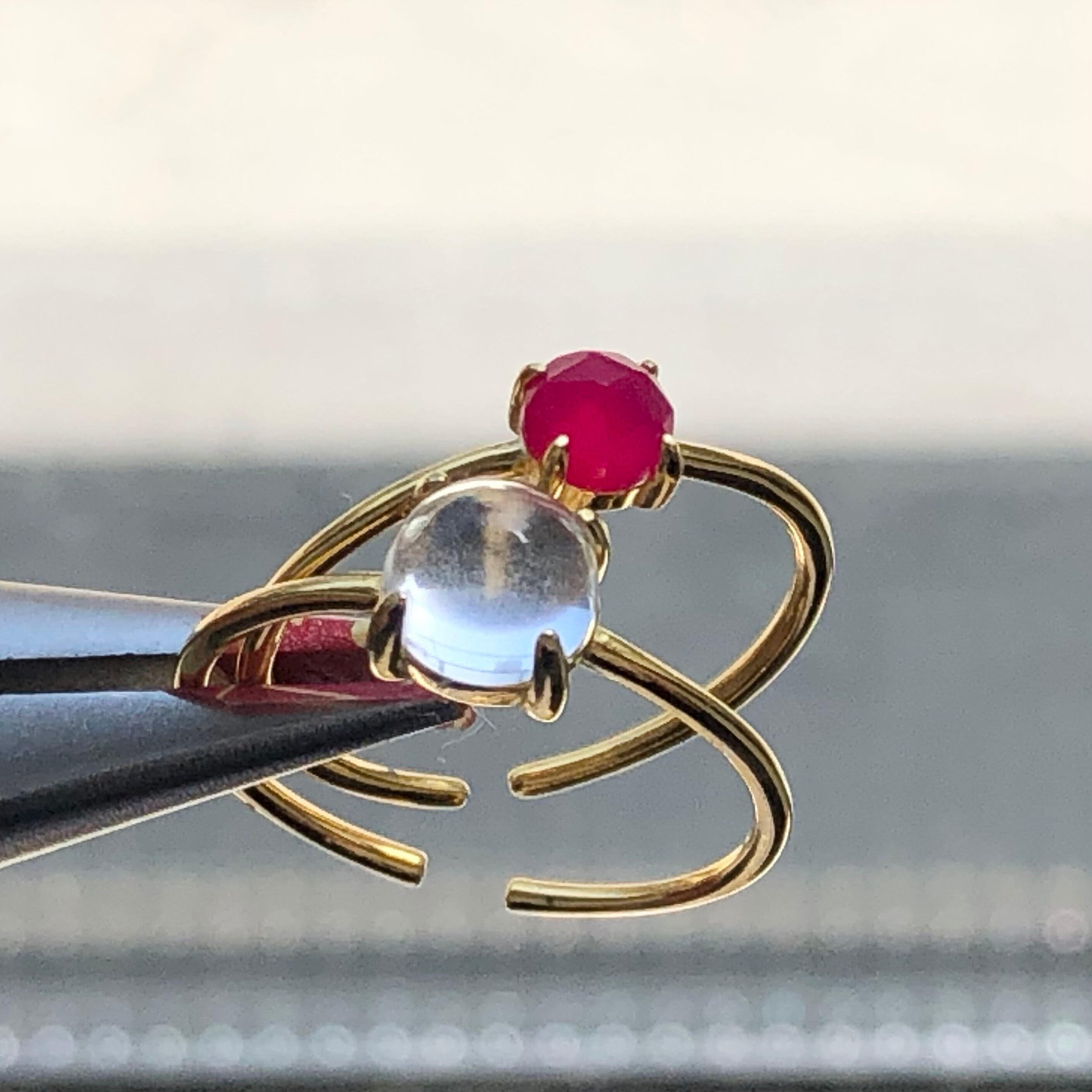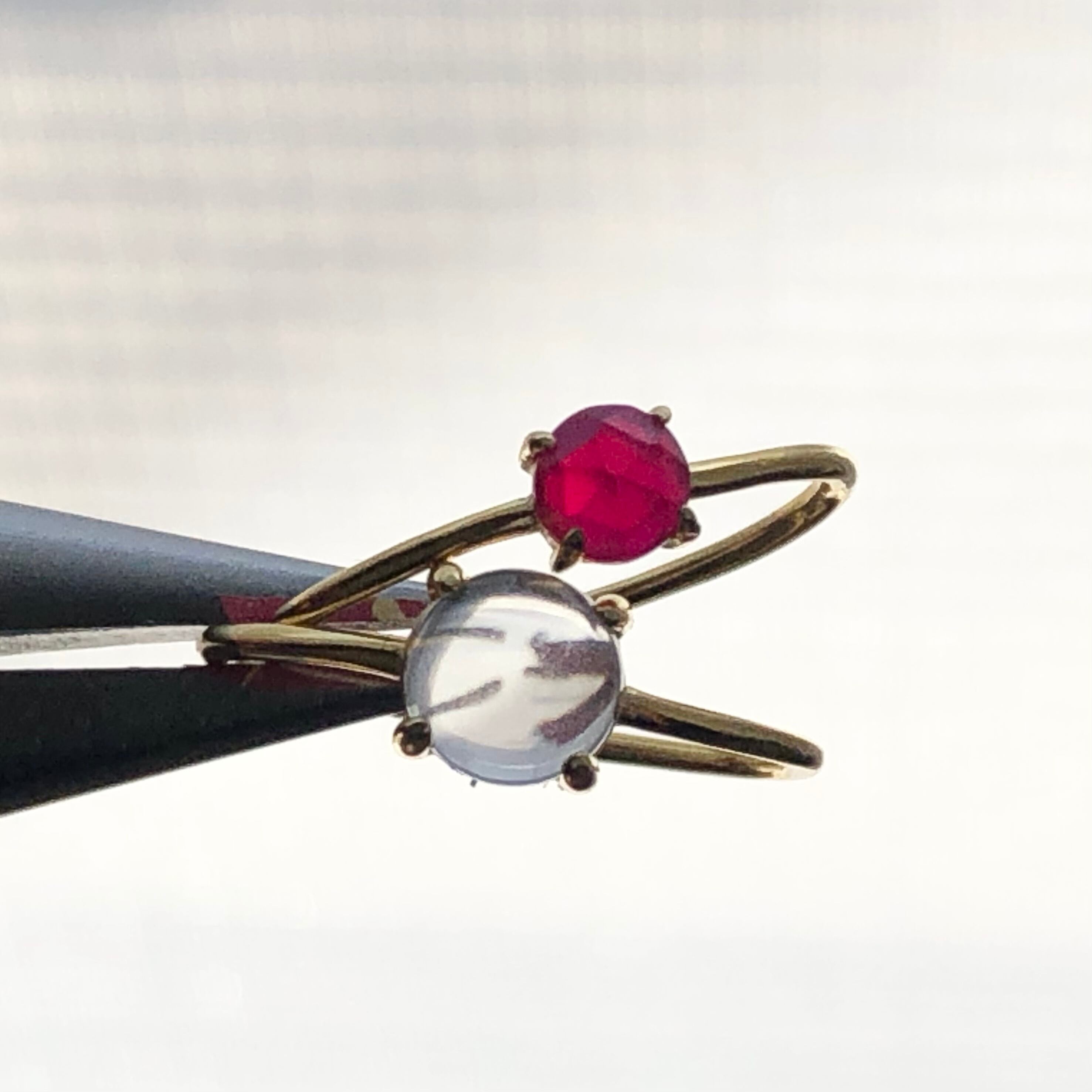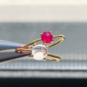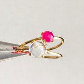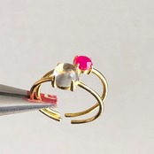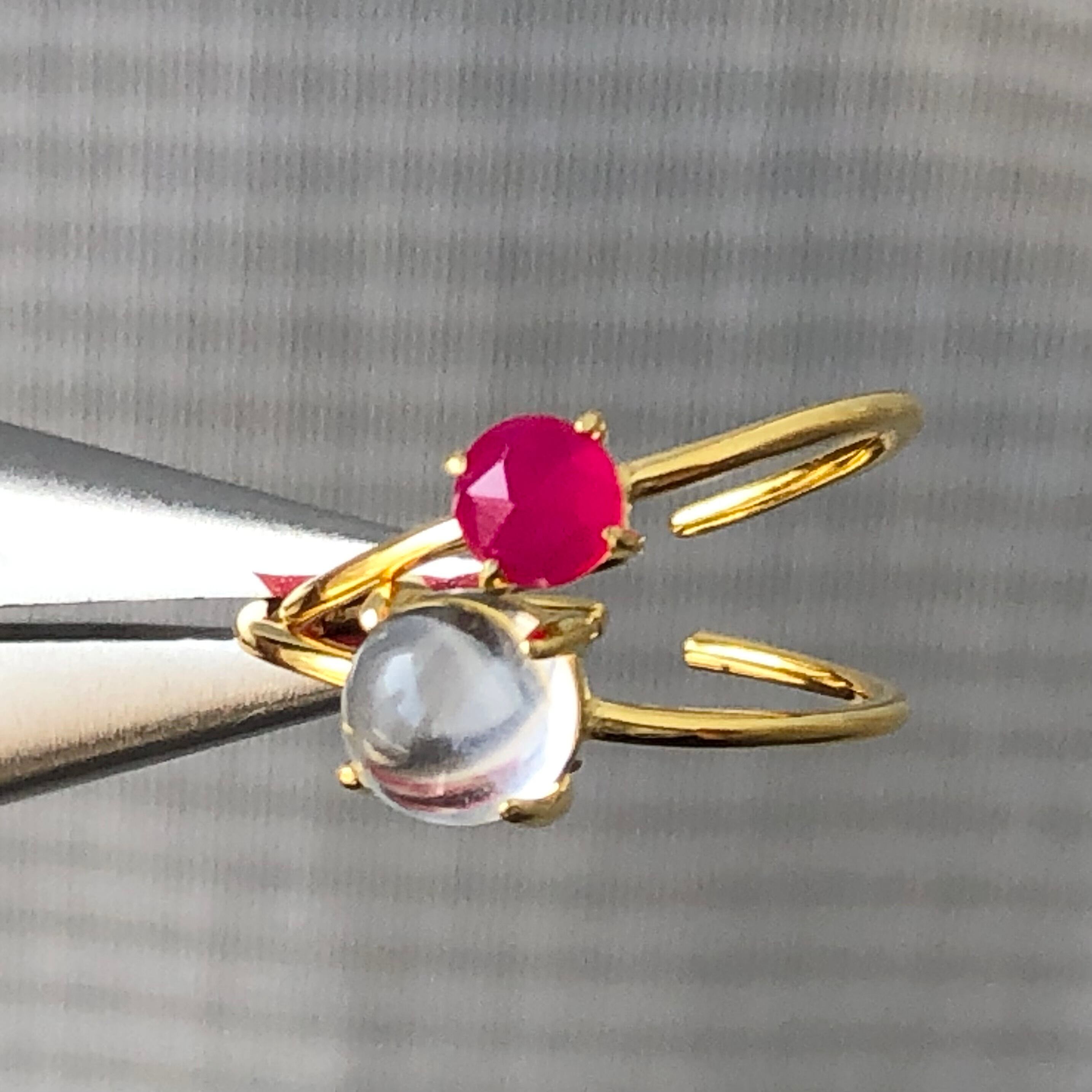 ローズカットのフューシャピンクカルセドニーとクリスタルのリングセットです。