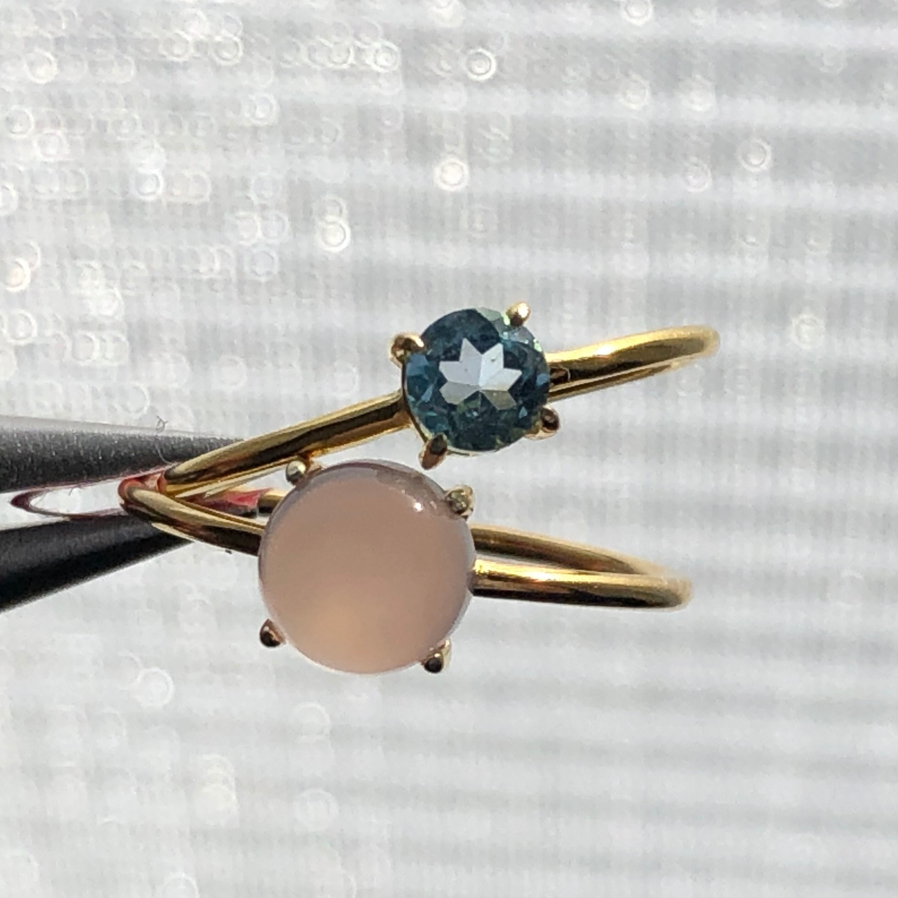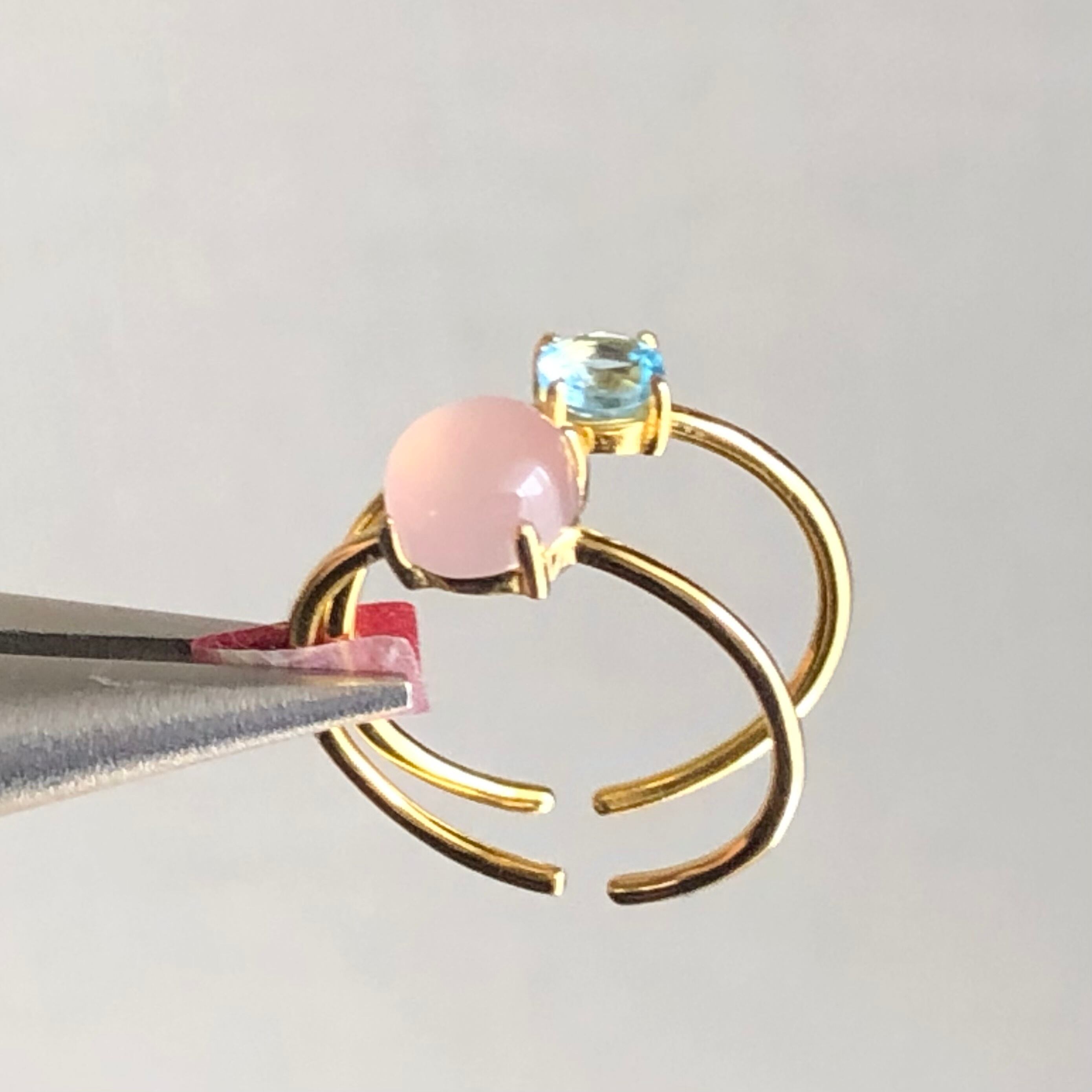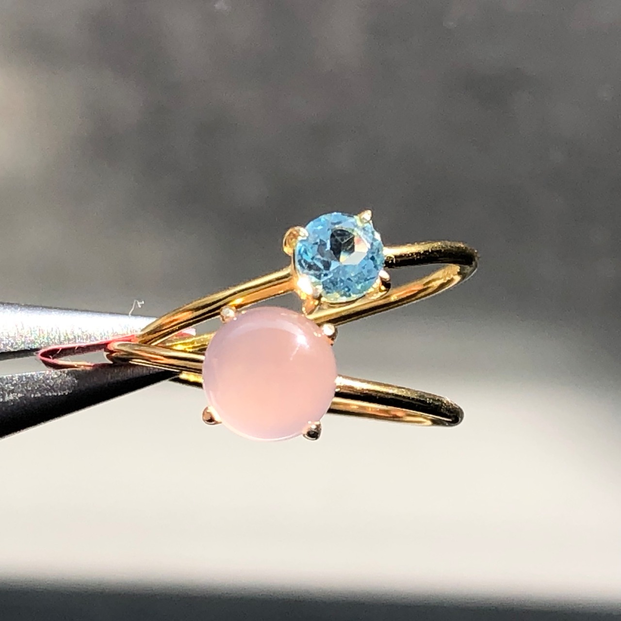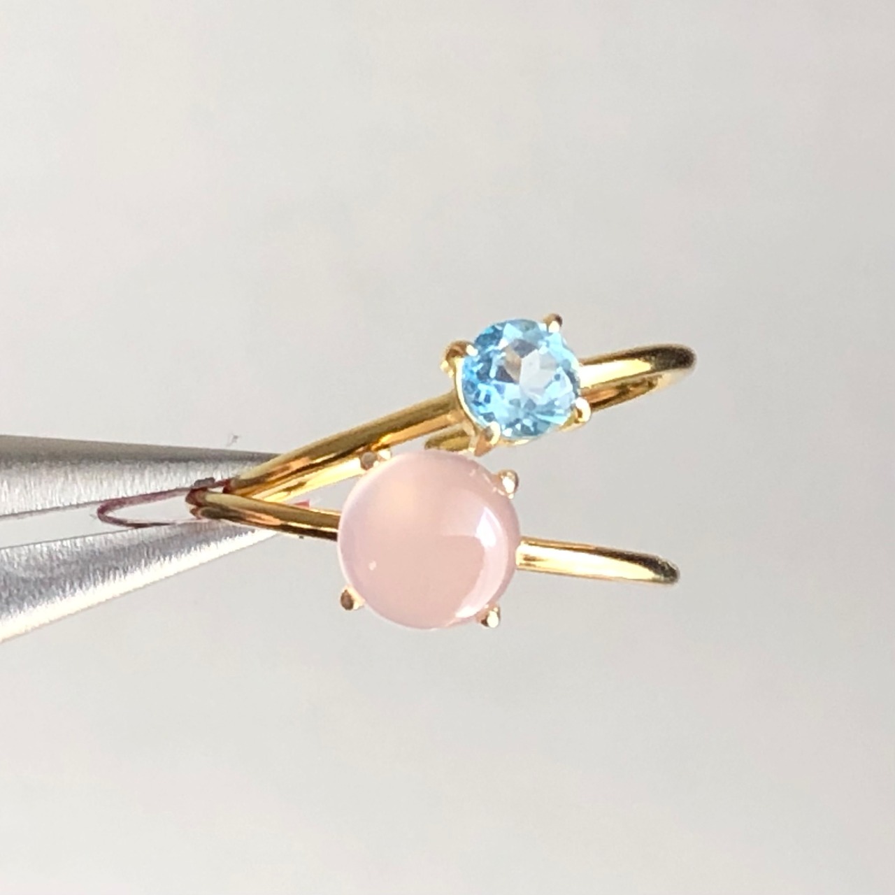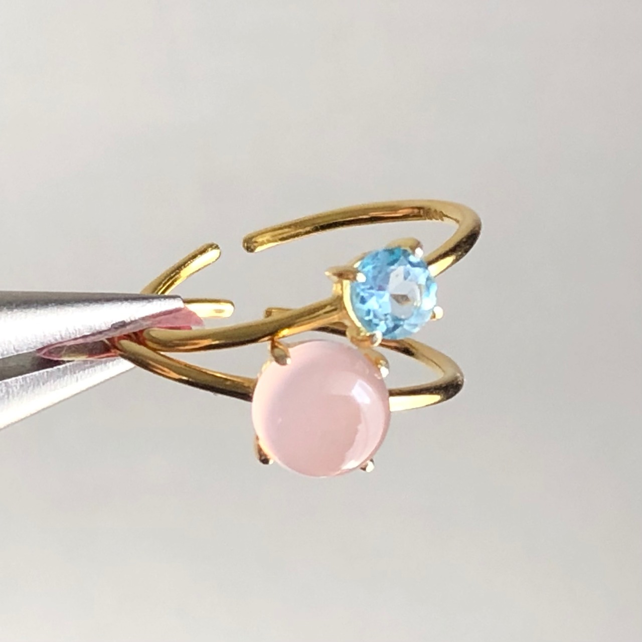 スイスブルートパーズとピンクカルセドニーのリングセットです。