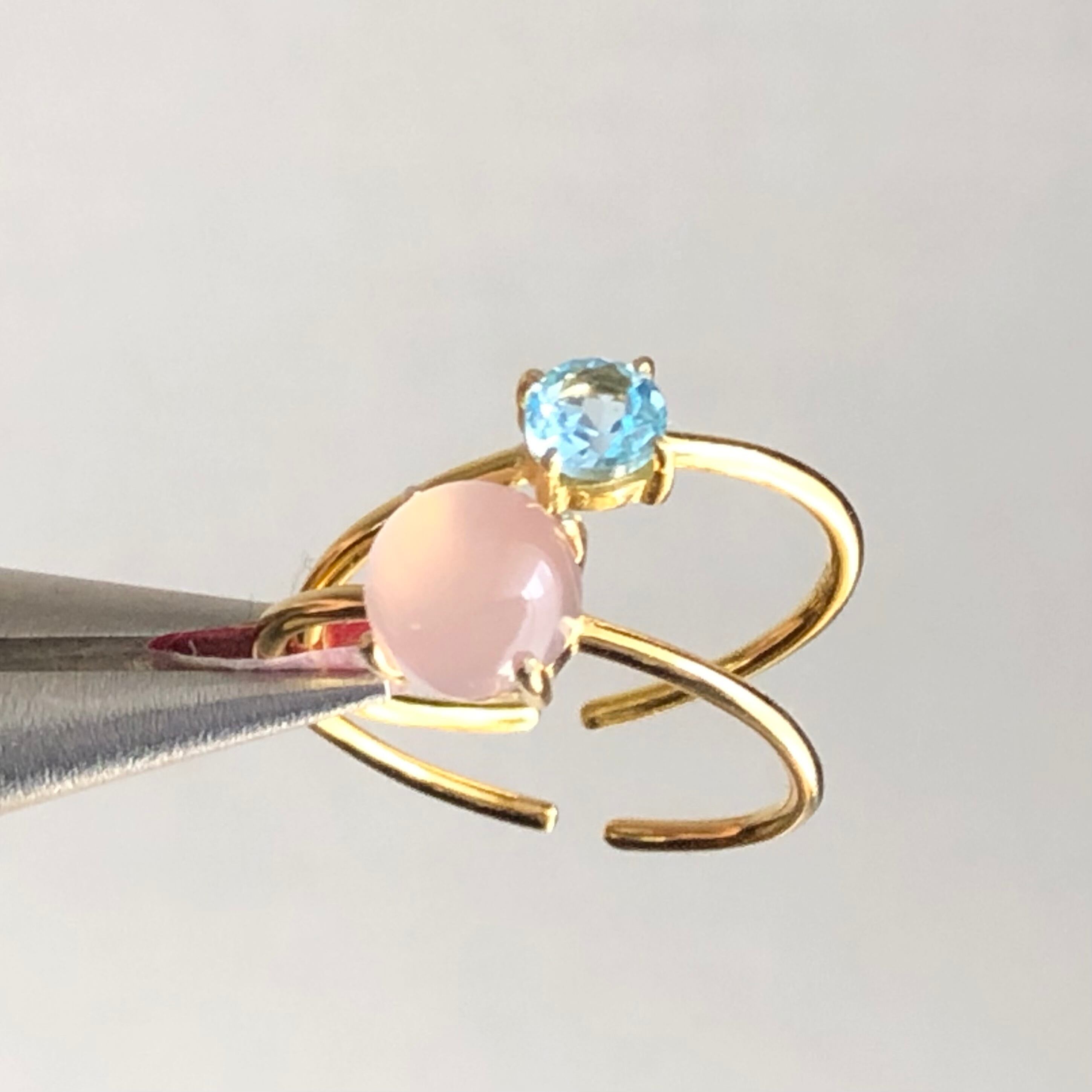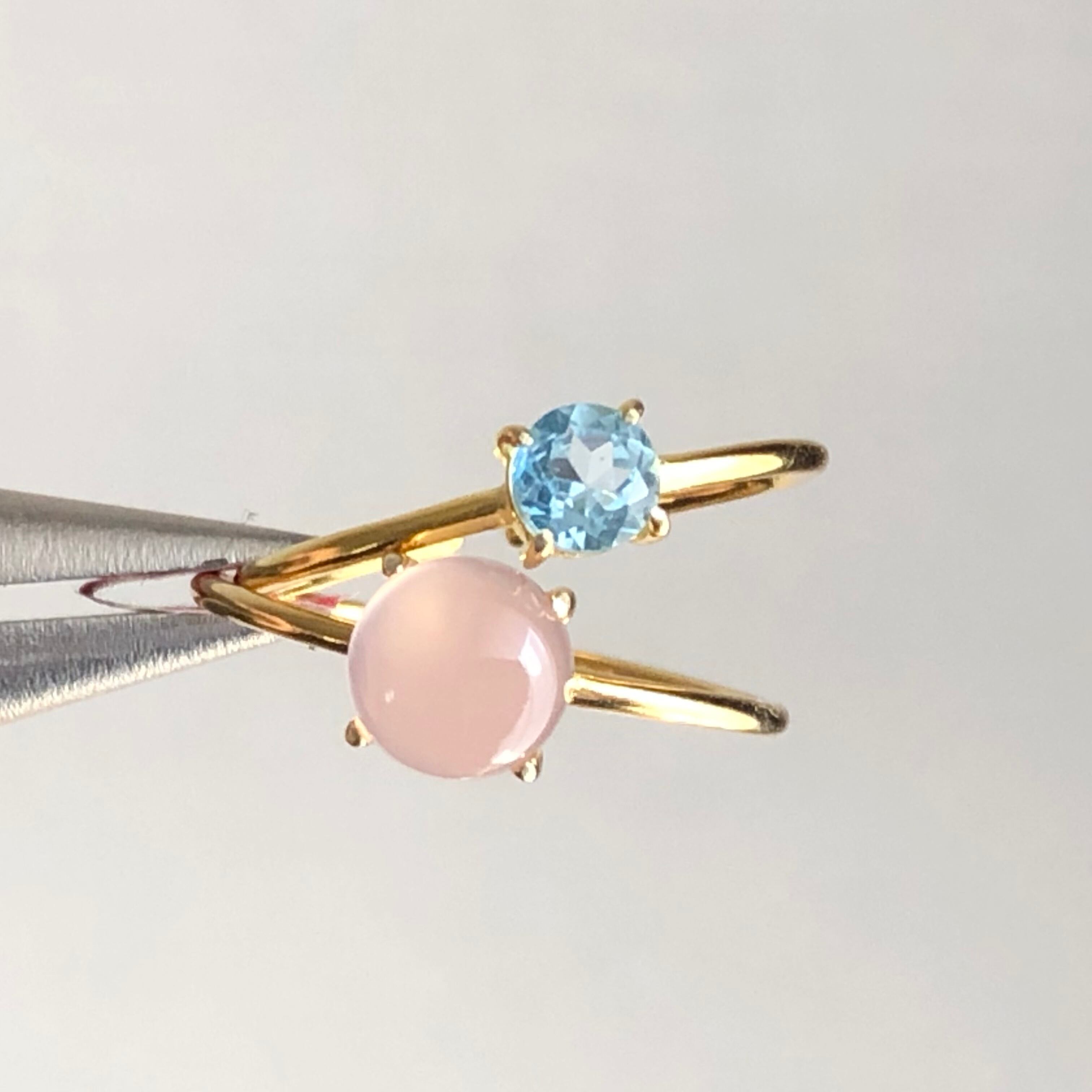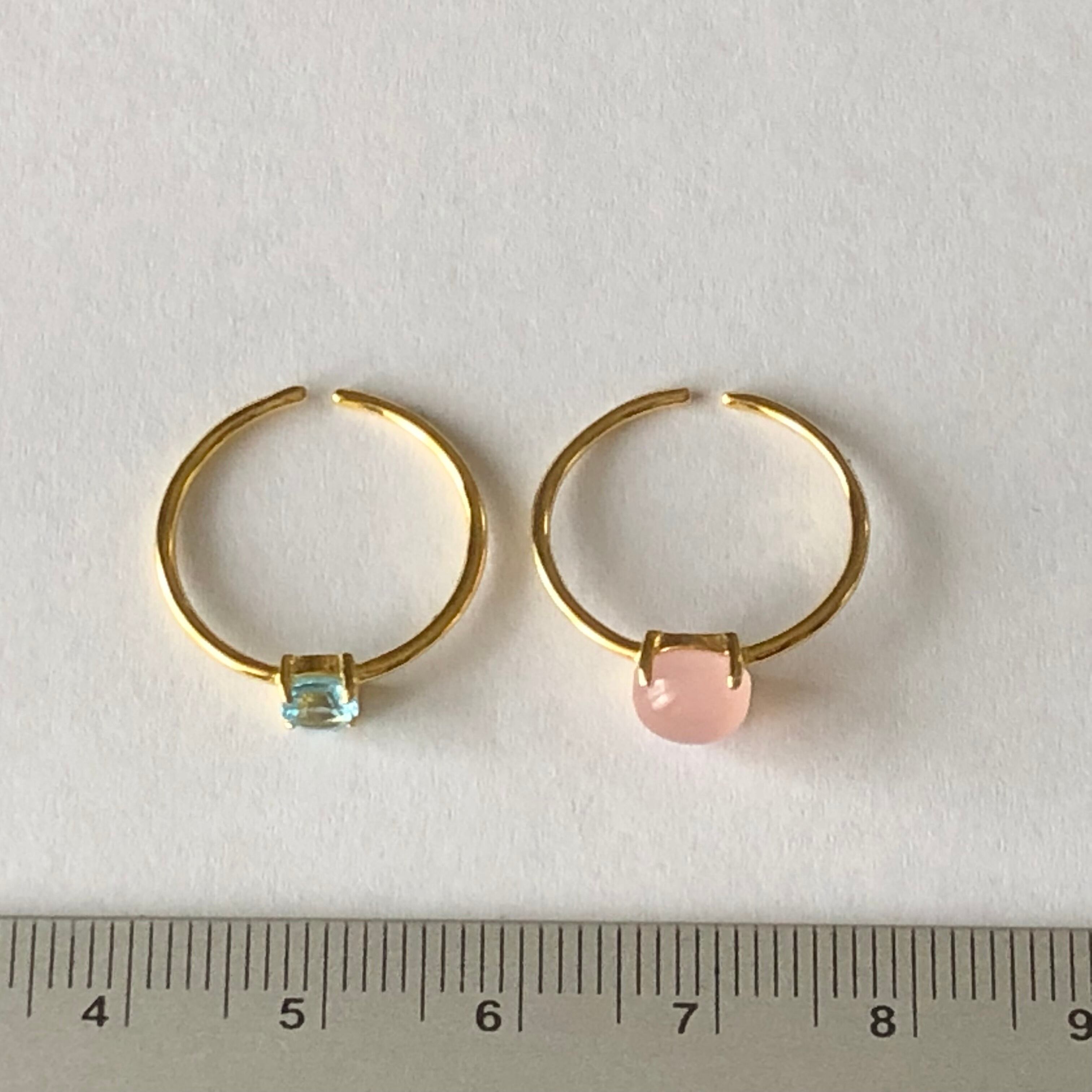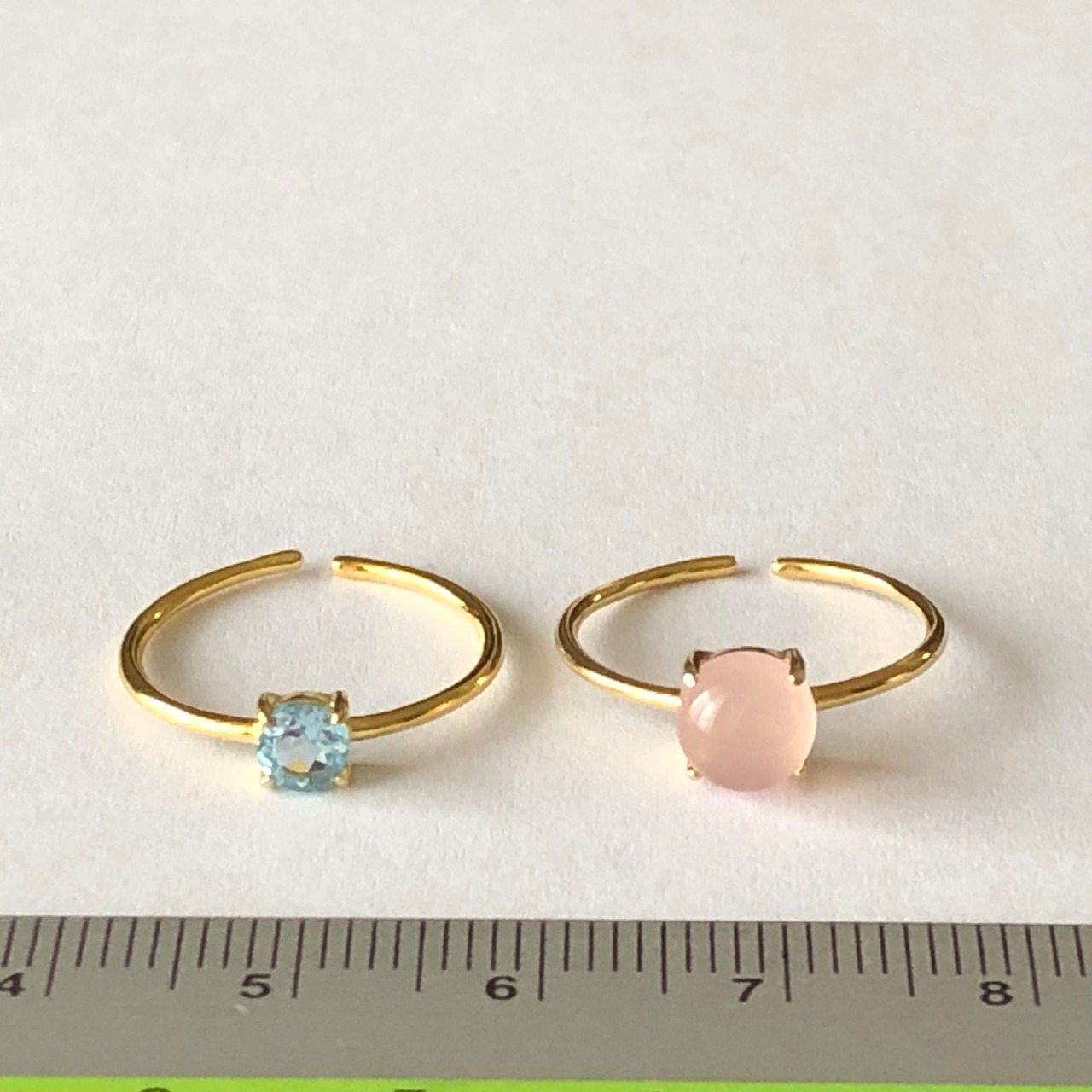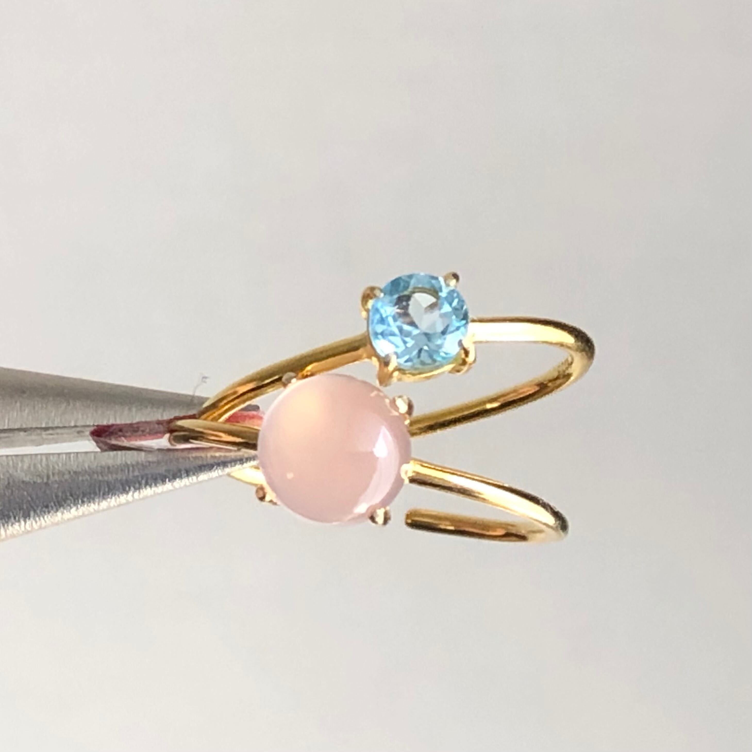 スイスブルートパーズとピンクカルセドニーのリングセットです。