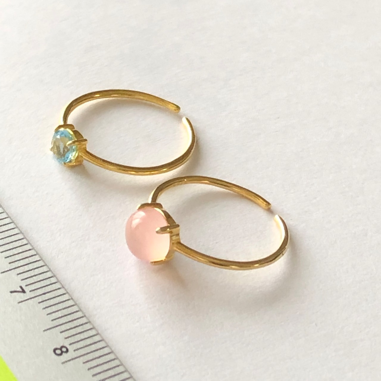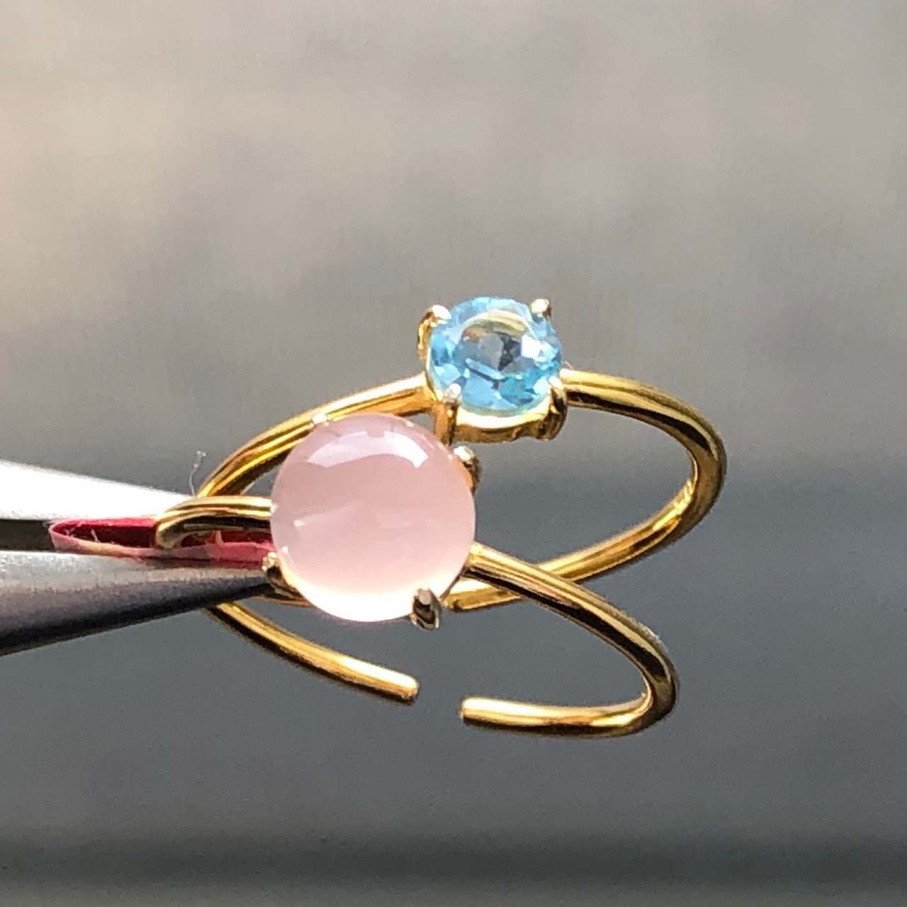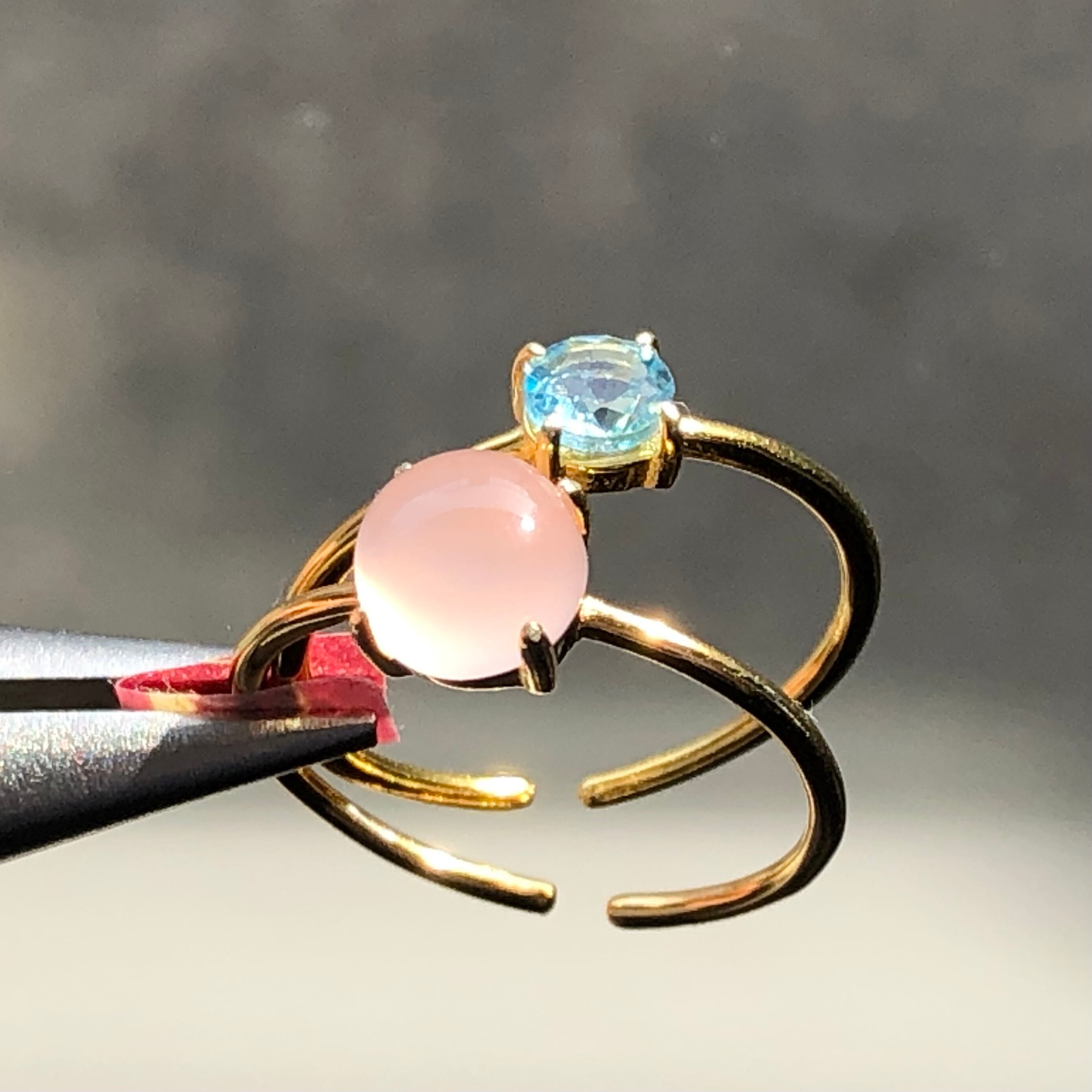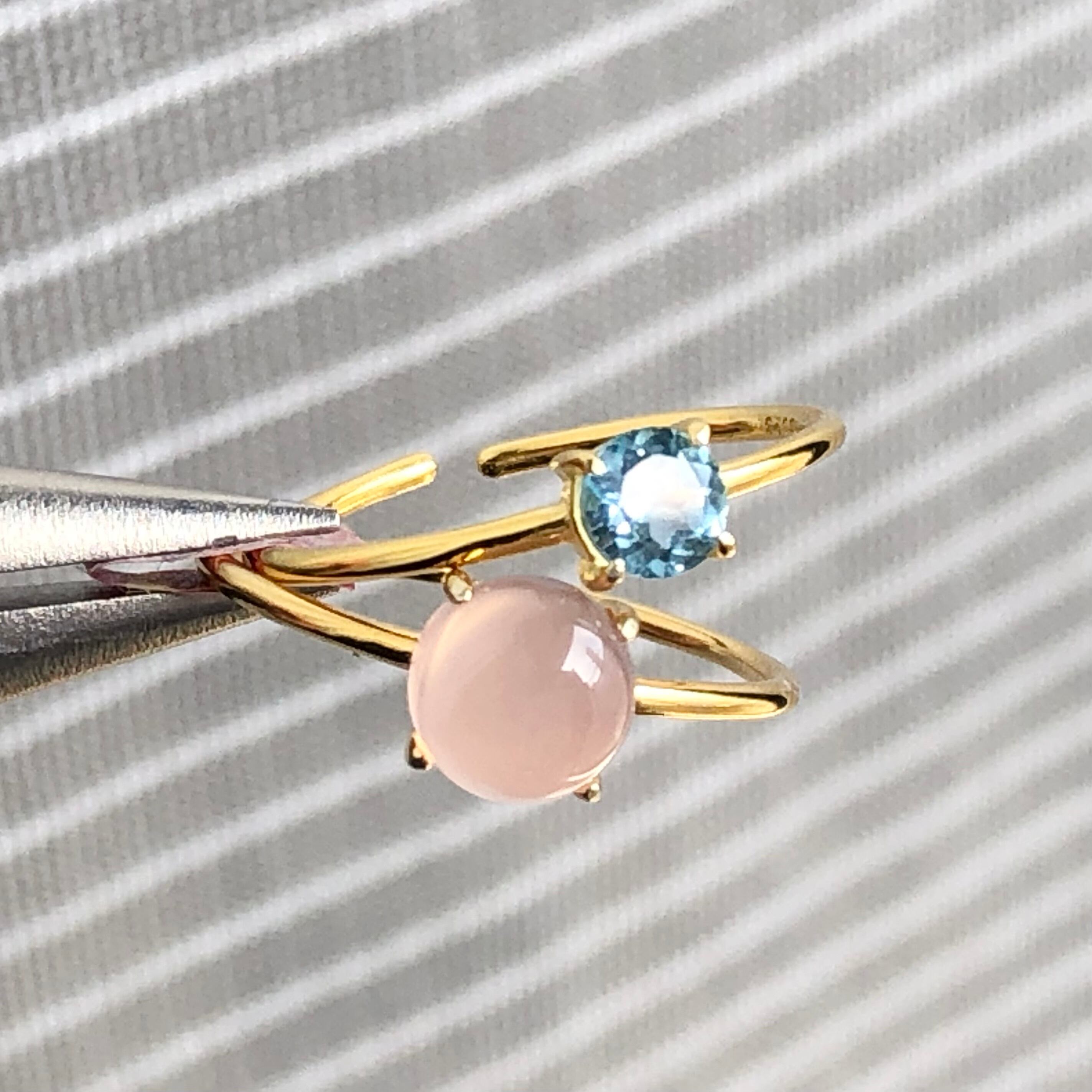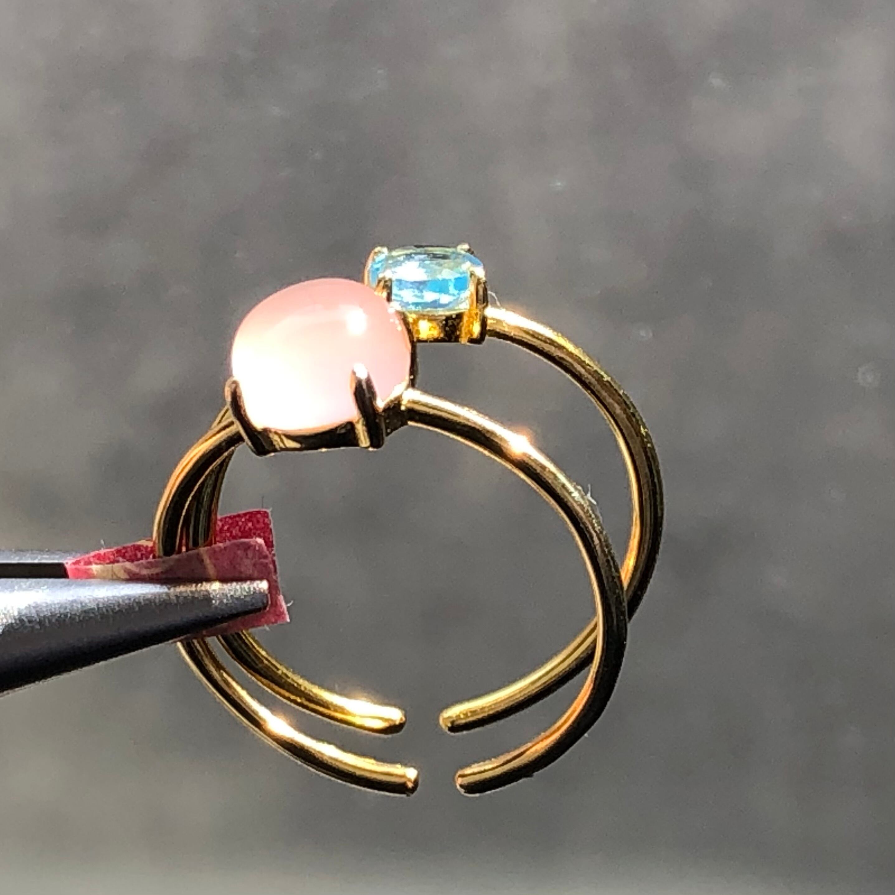 スイスブルートパーズとピンクカルセドニーのリングセットです。