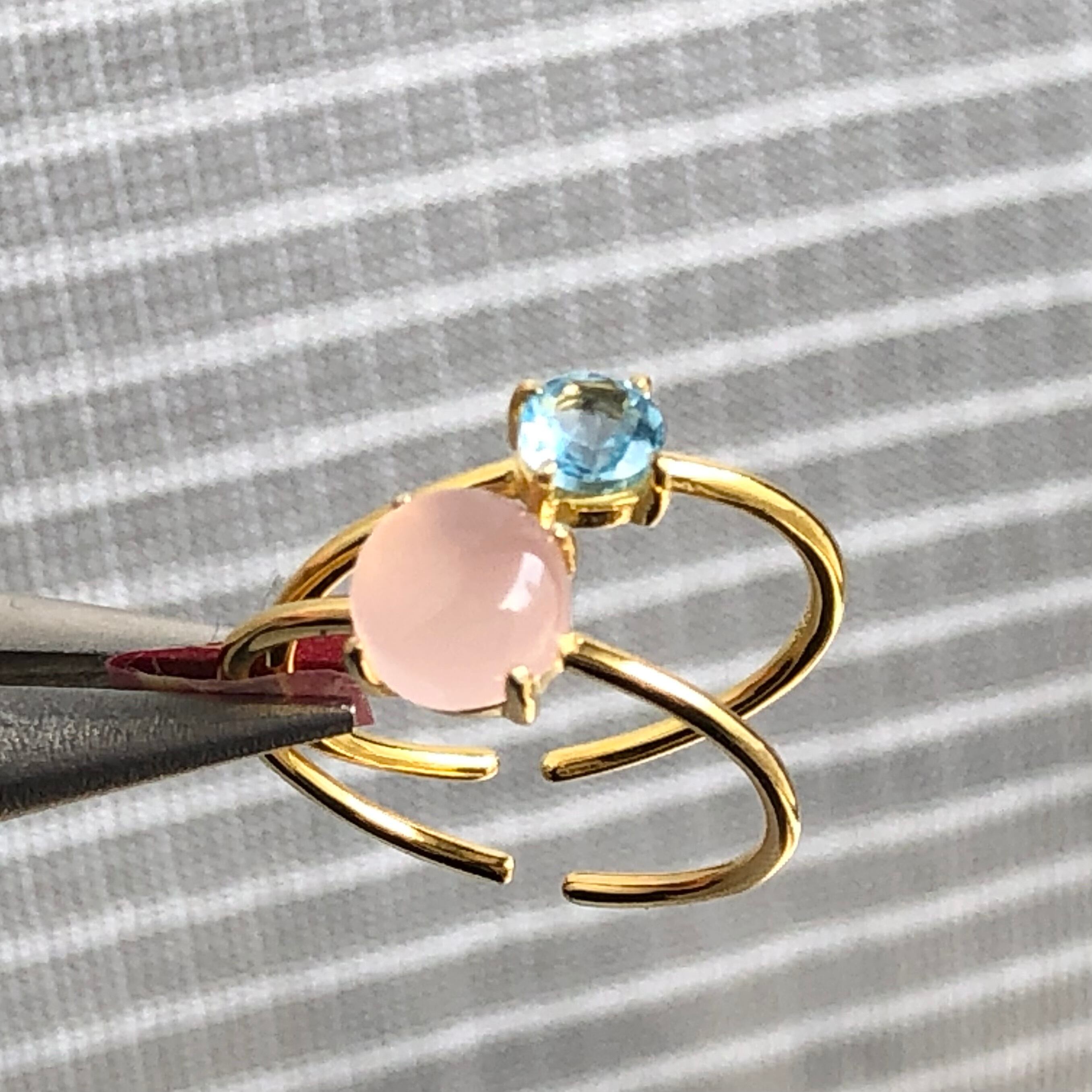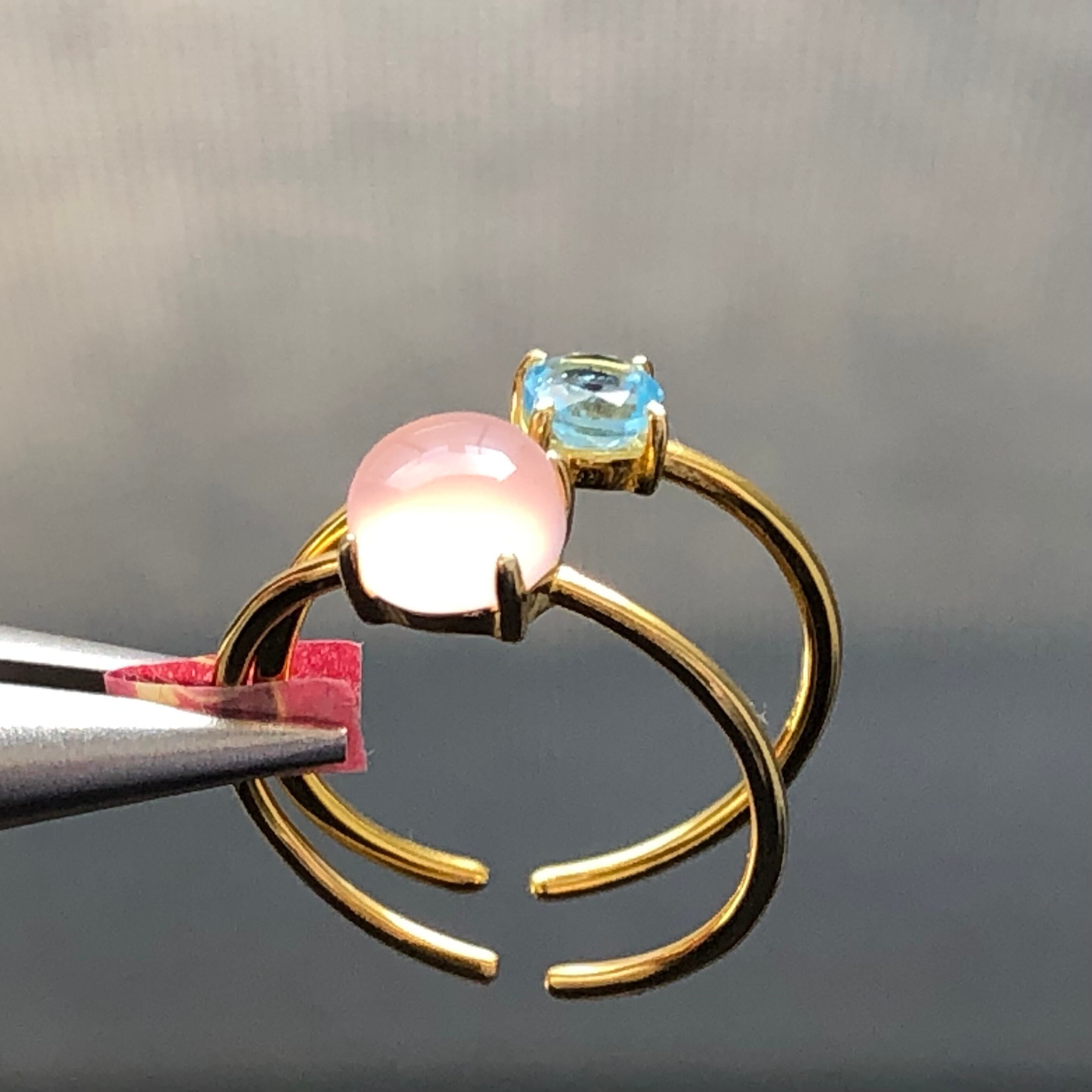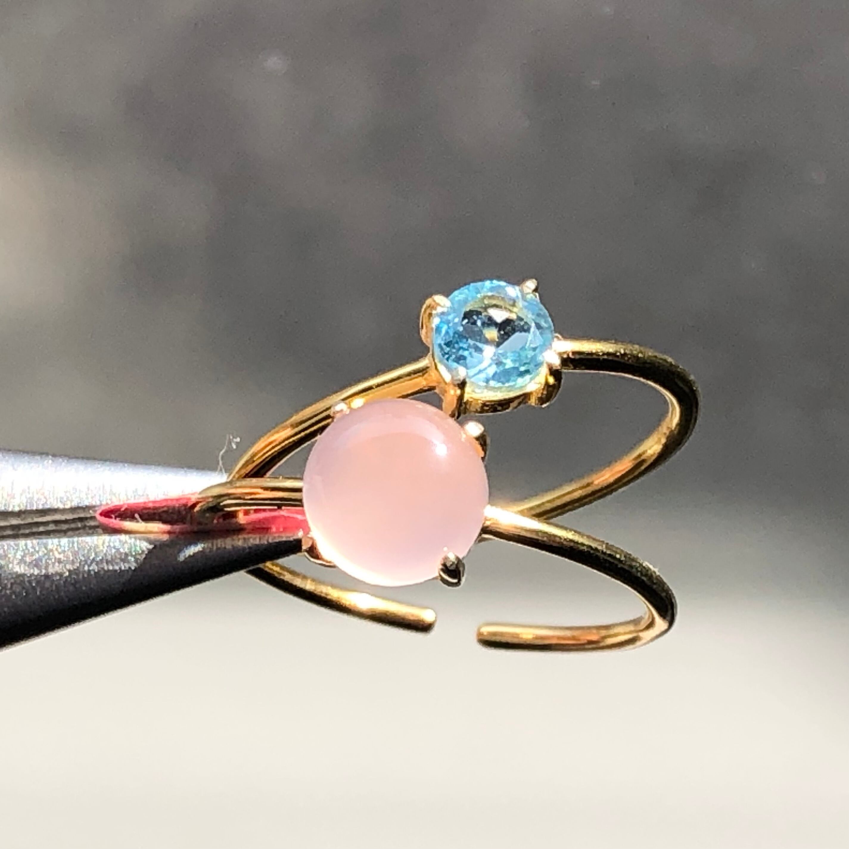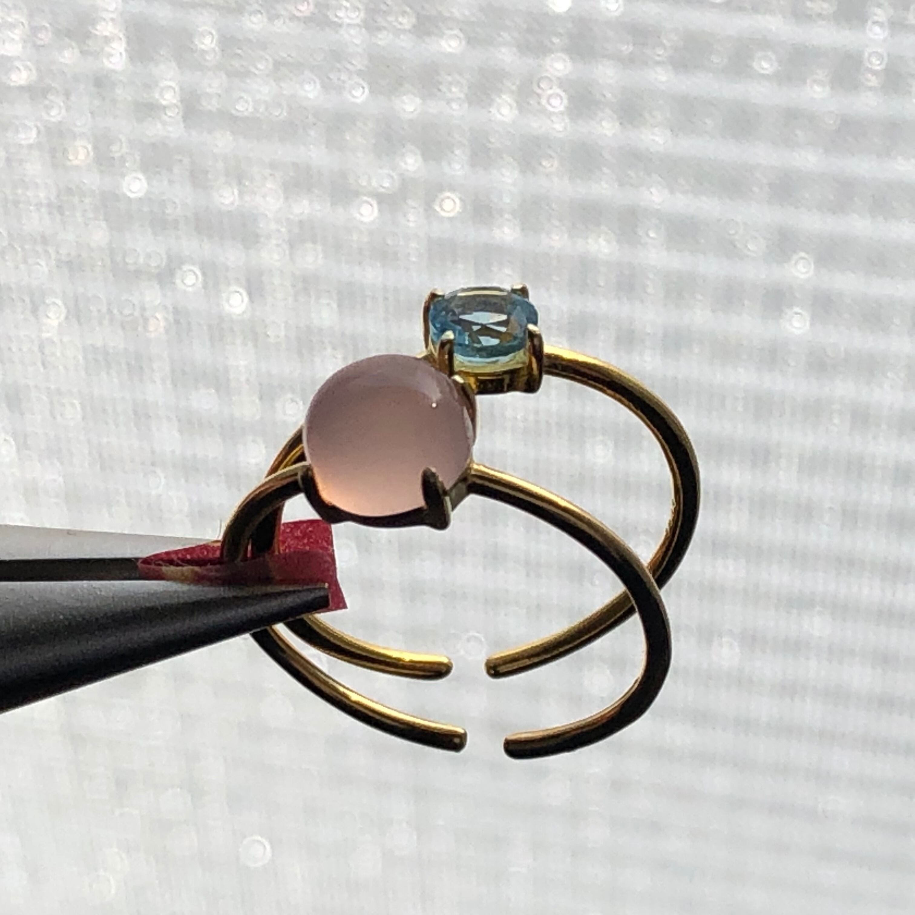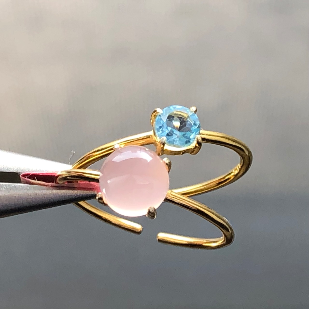 スイスブルートパーズとピンクカルセドニーのリングセットです。