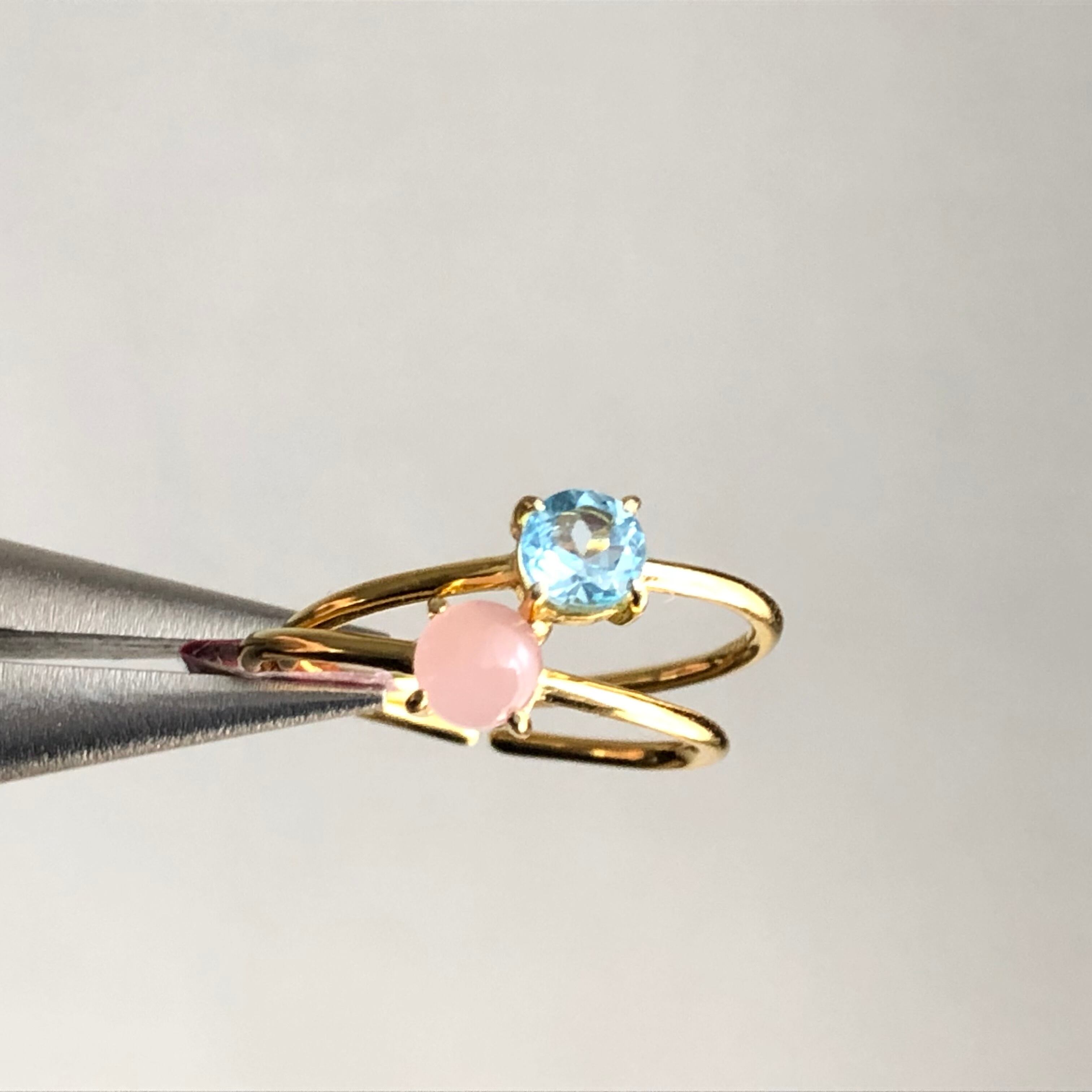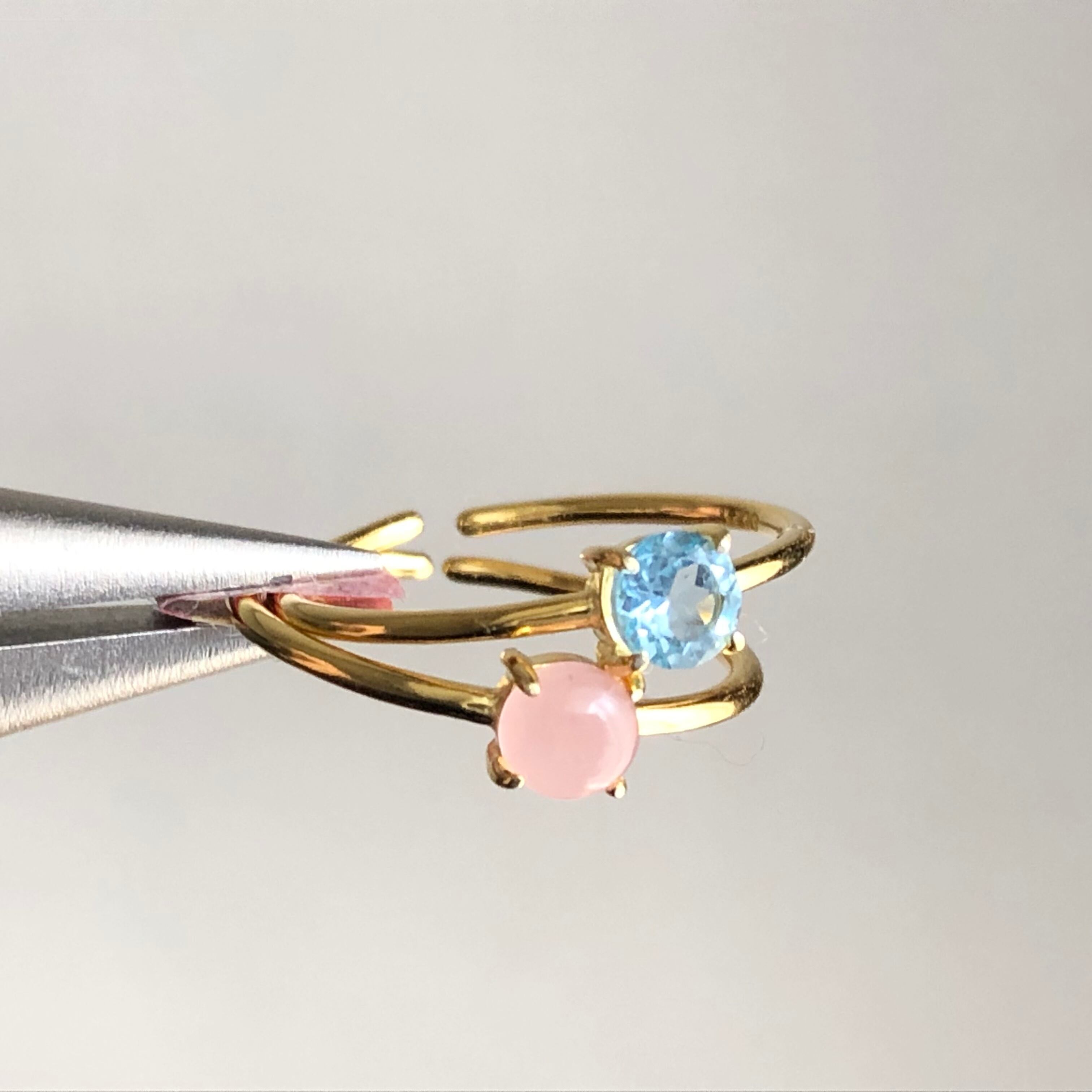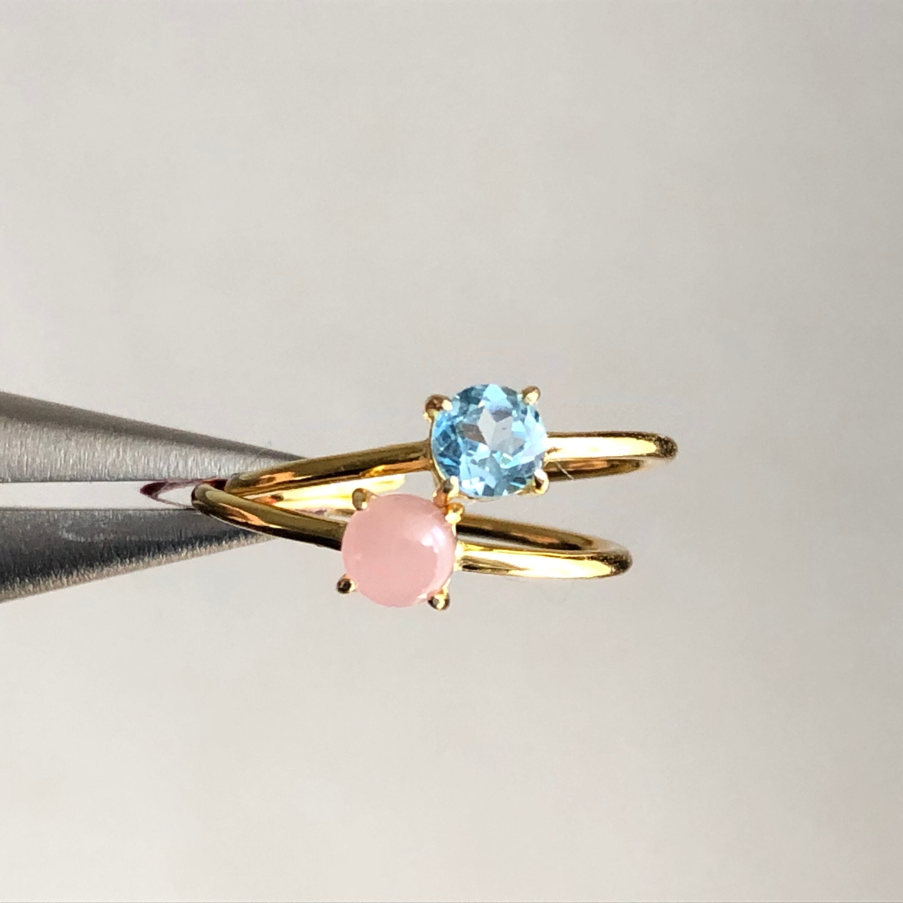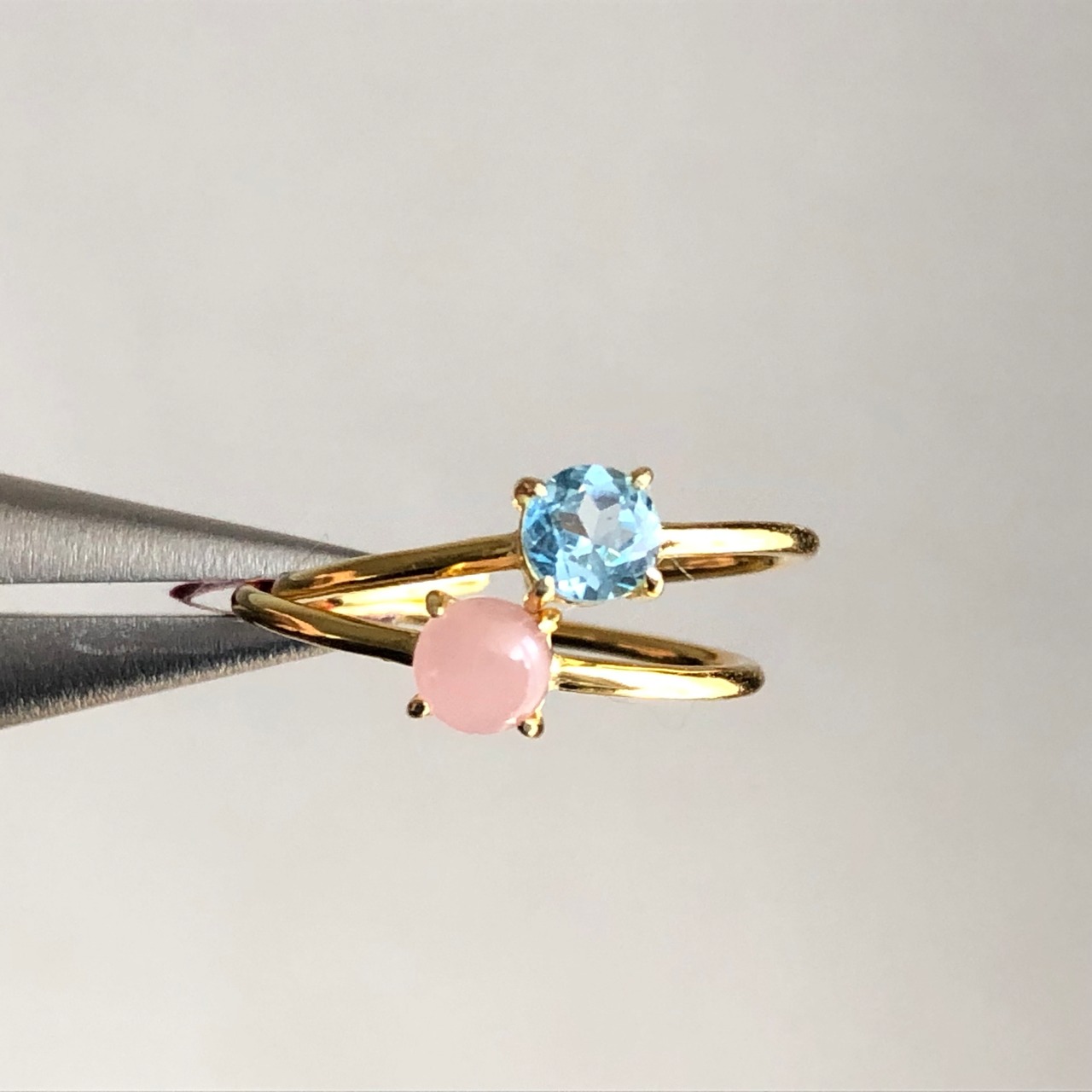 スイスブルートパーズとグァバクォーツのリングセットです。