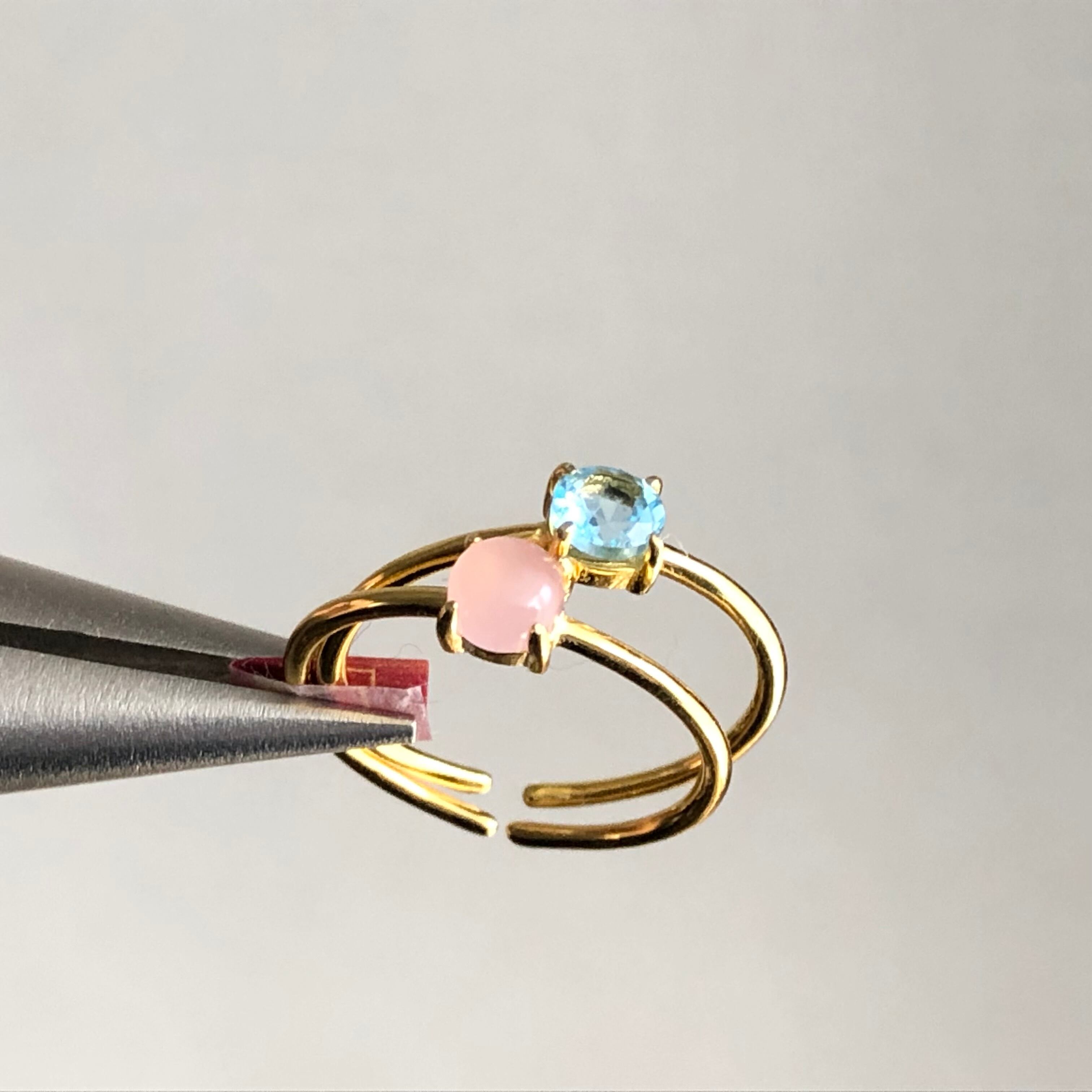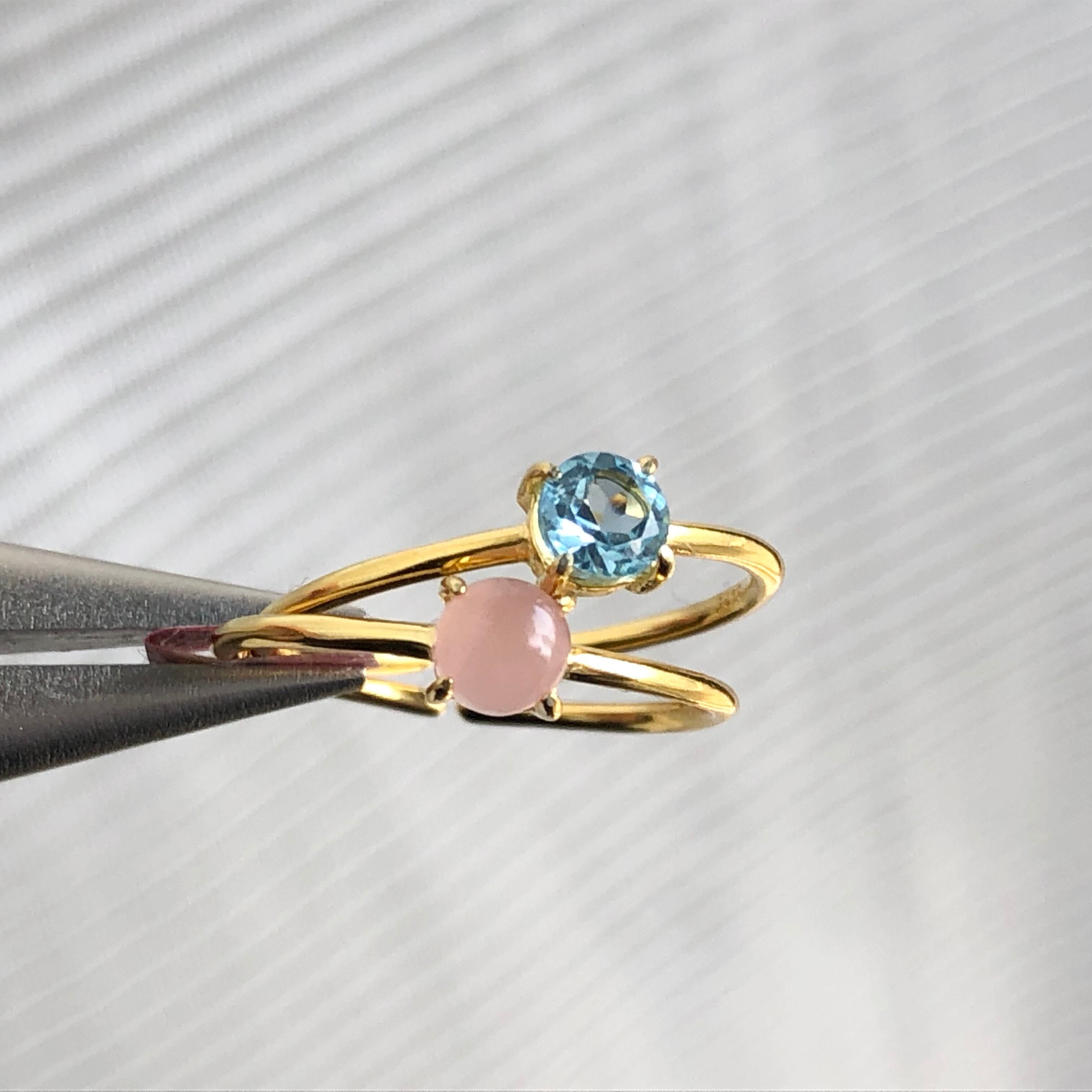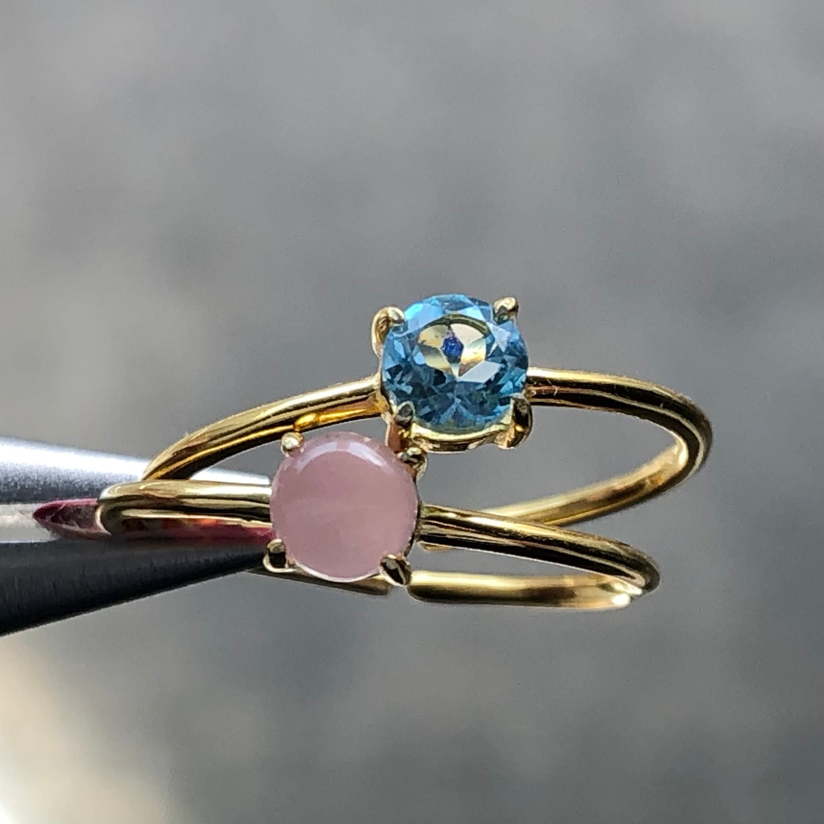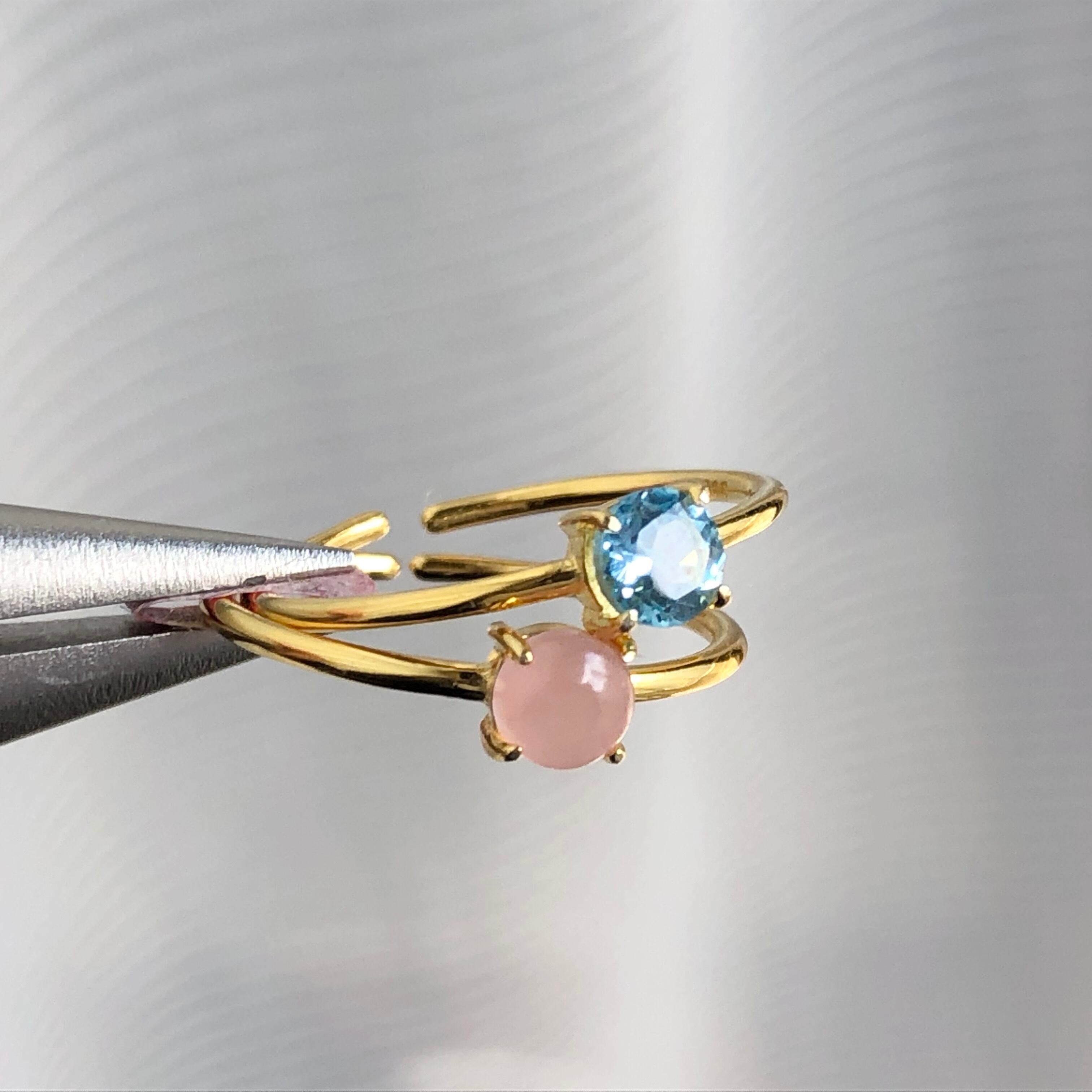 スイスブルートパーズとグァバクォーツのリングセットです。