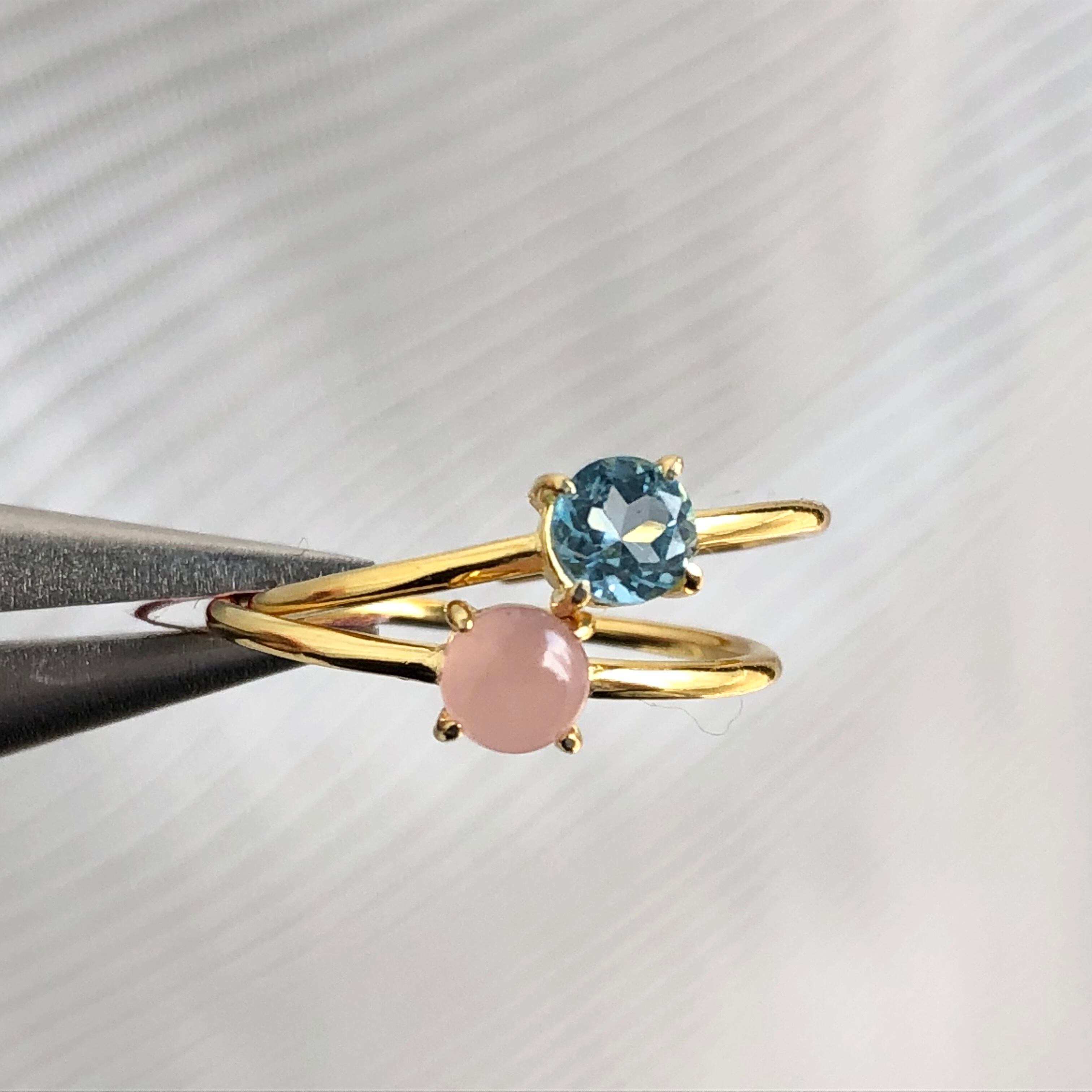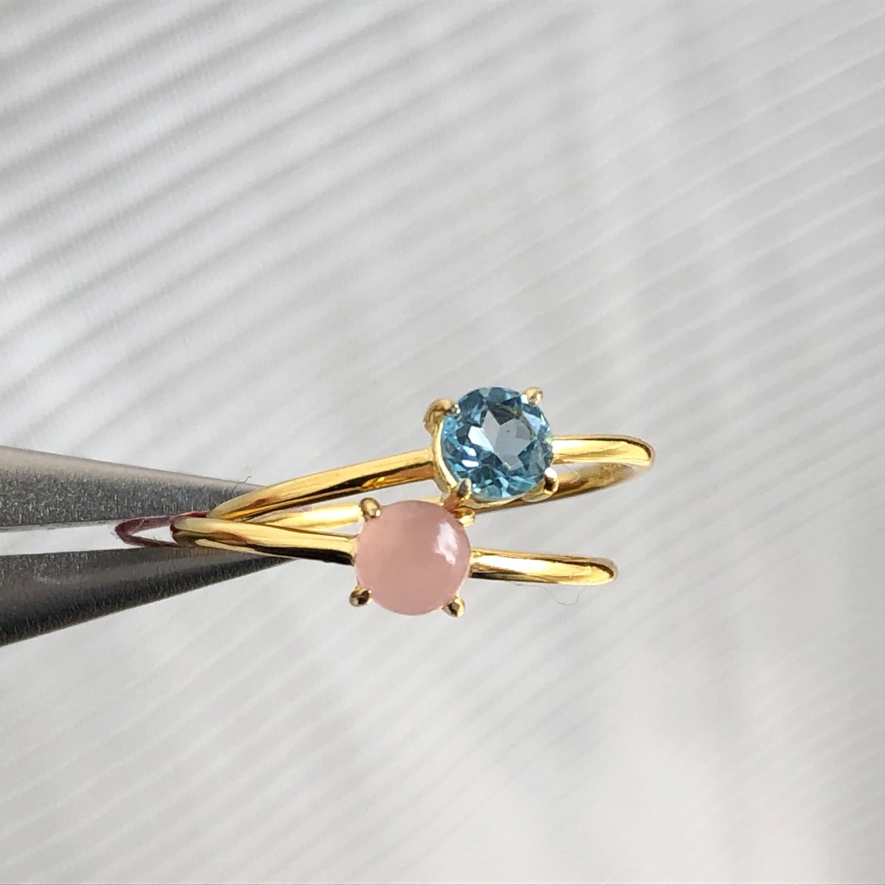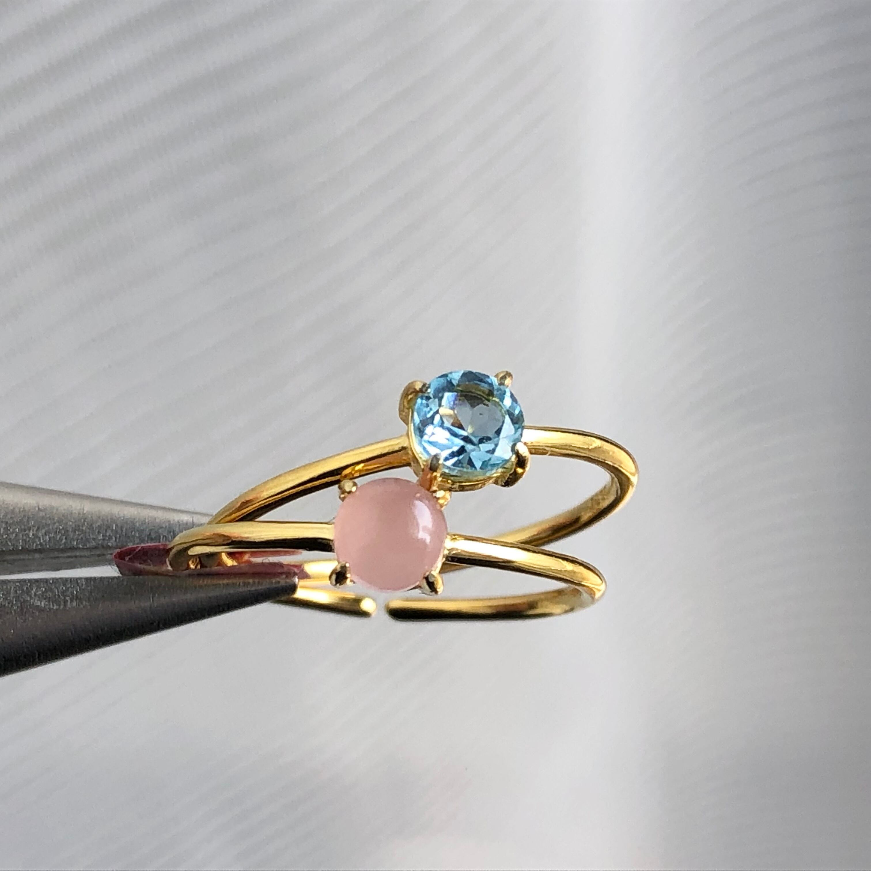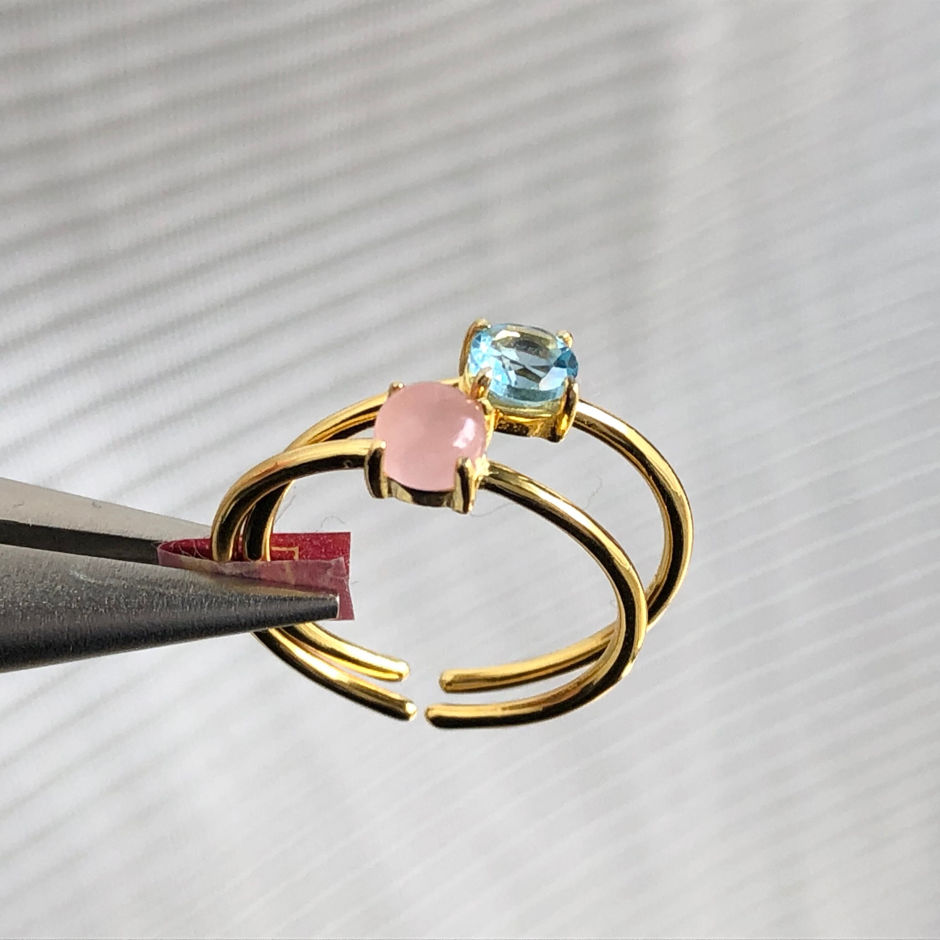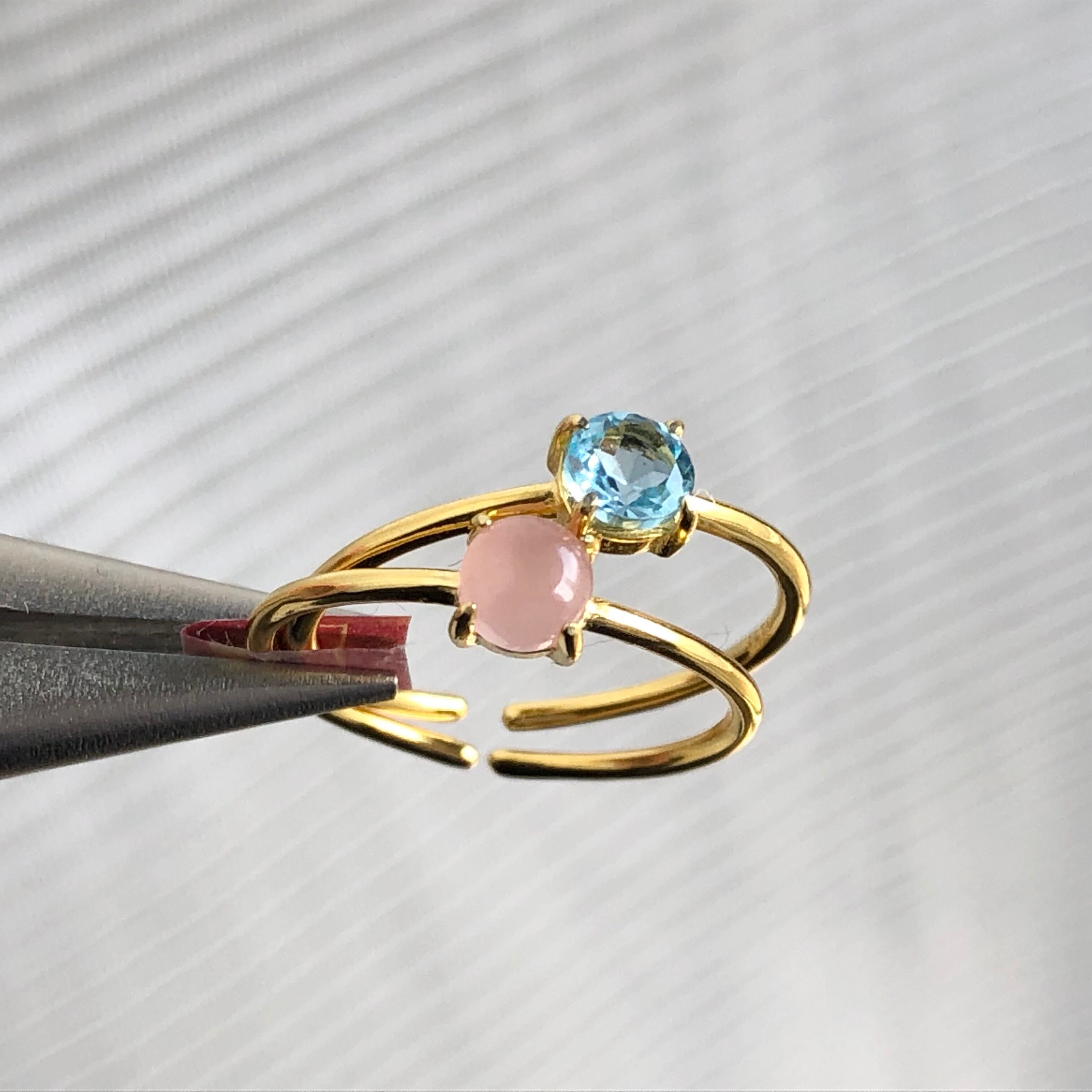 スイスブルートパーズとグァバクォーツのリングセットです。