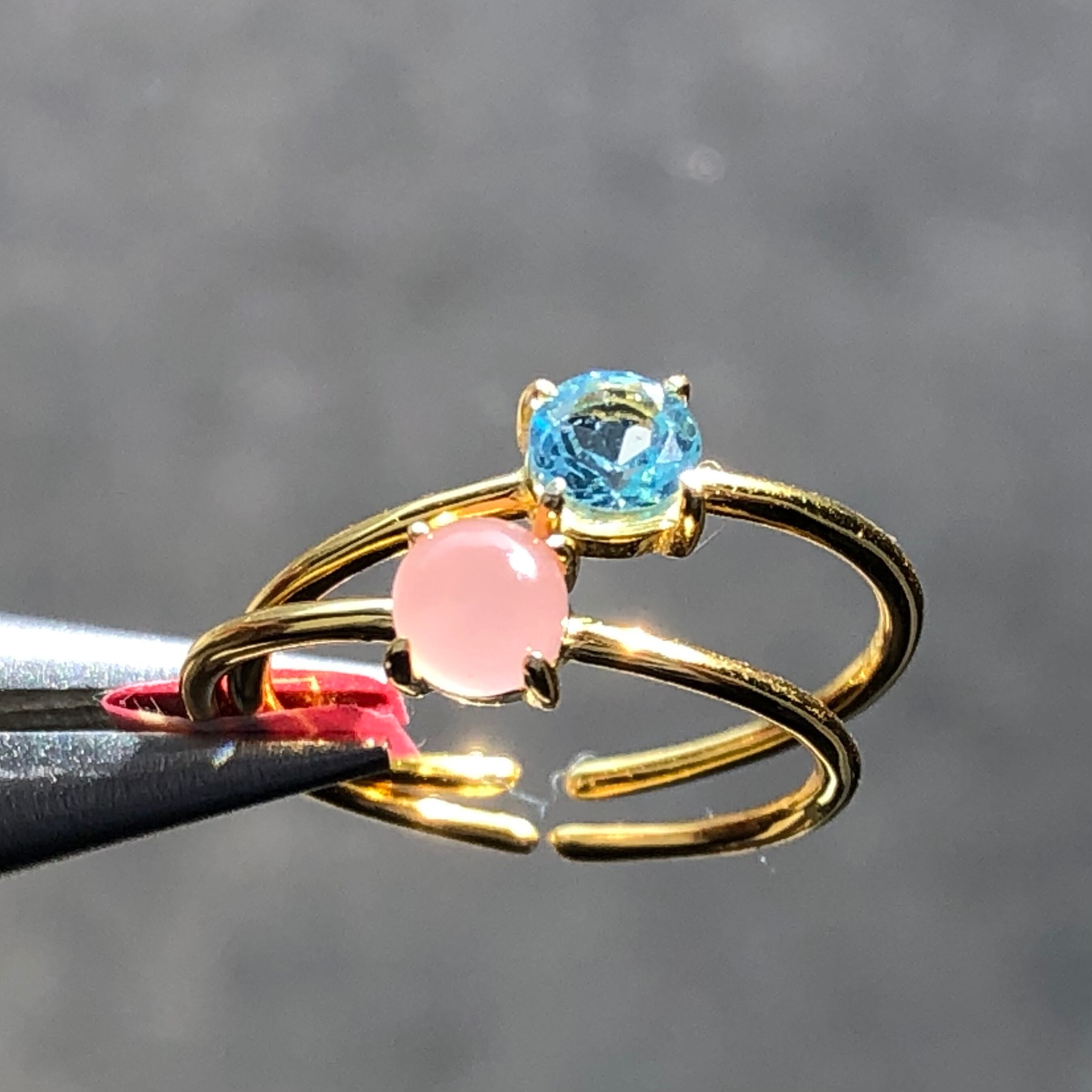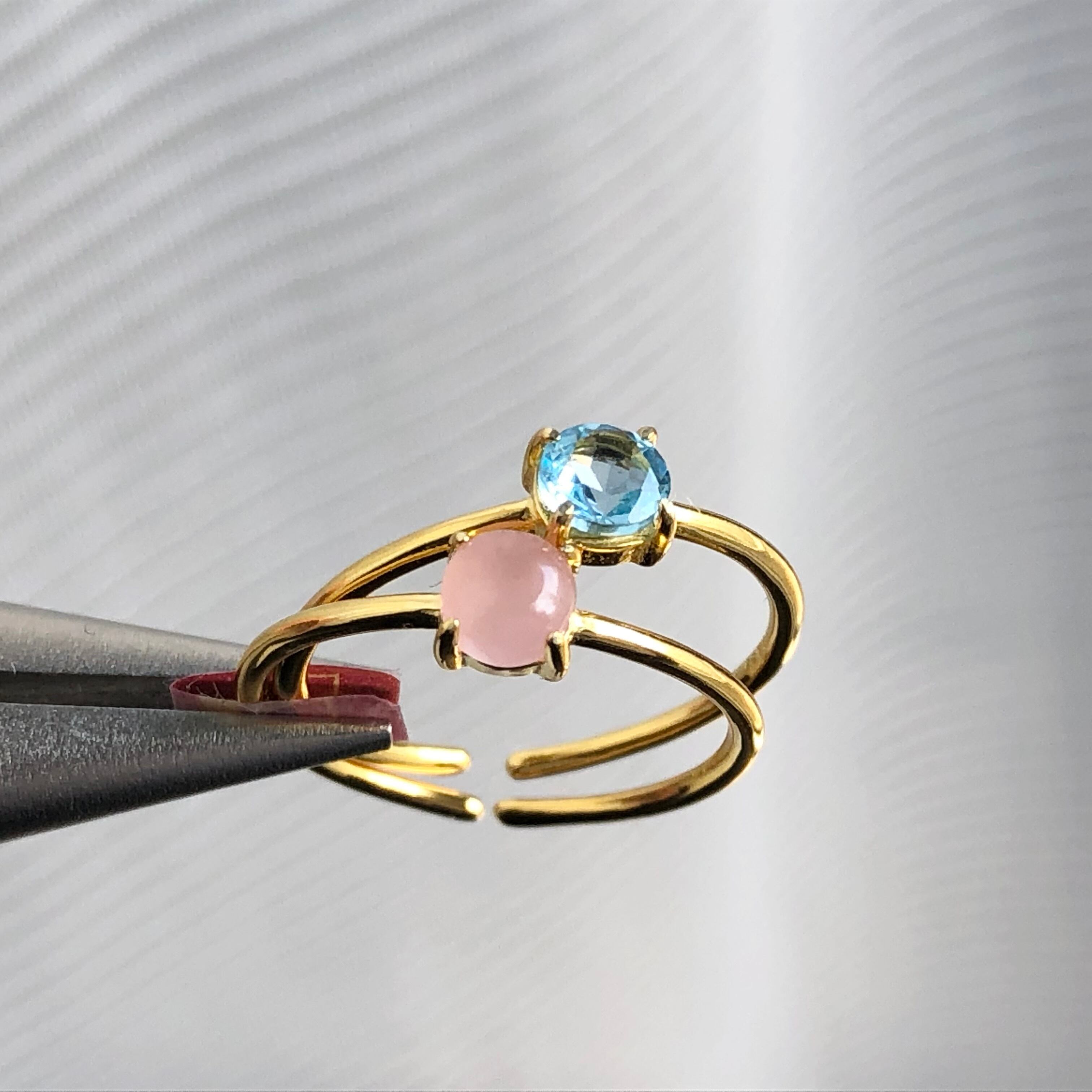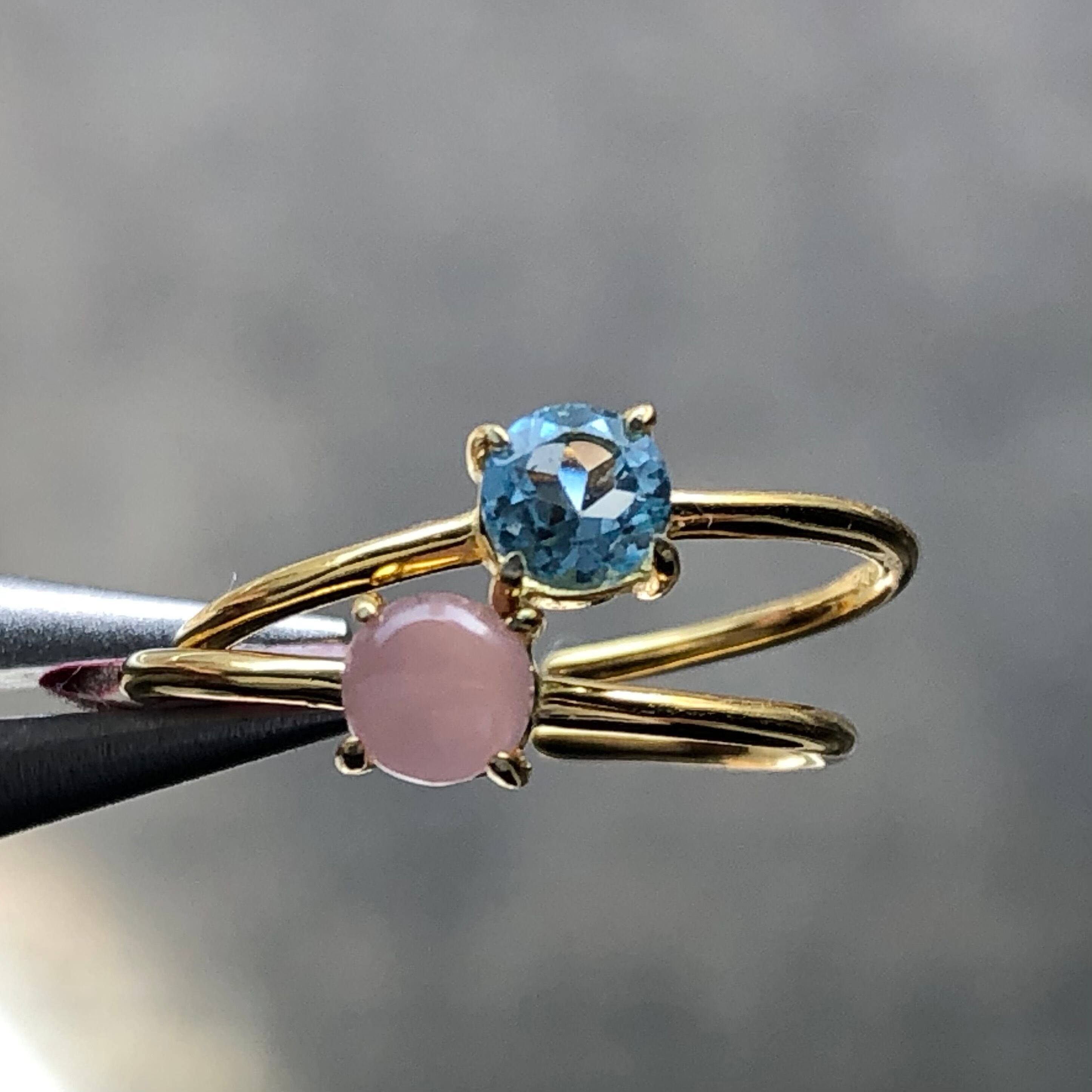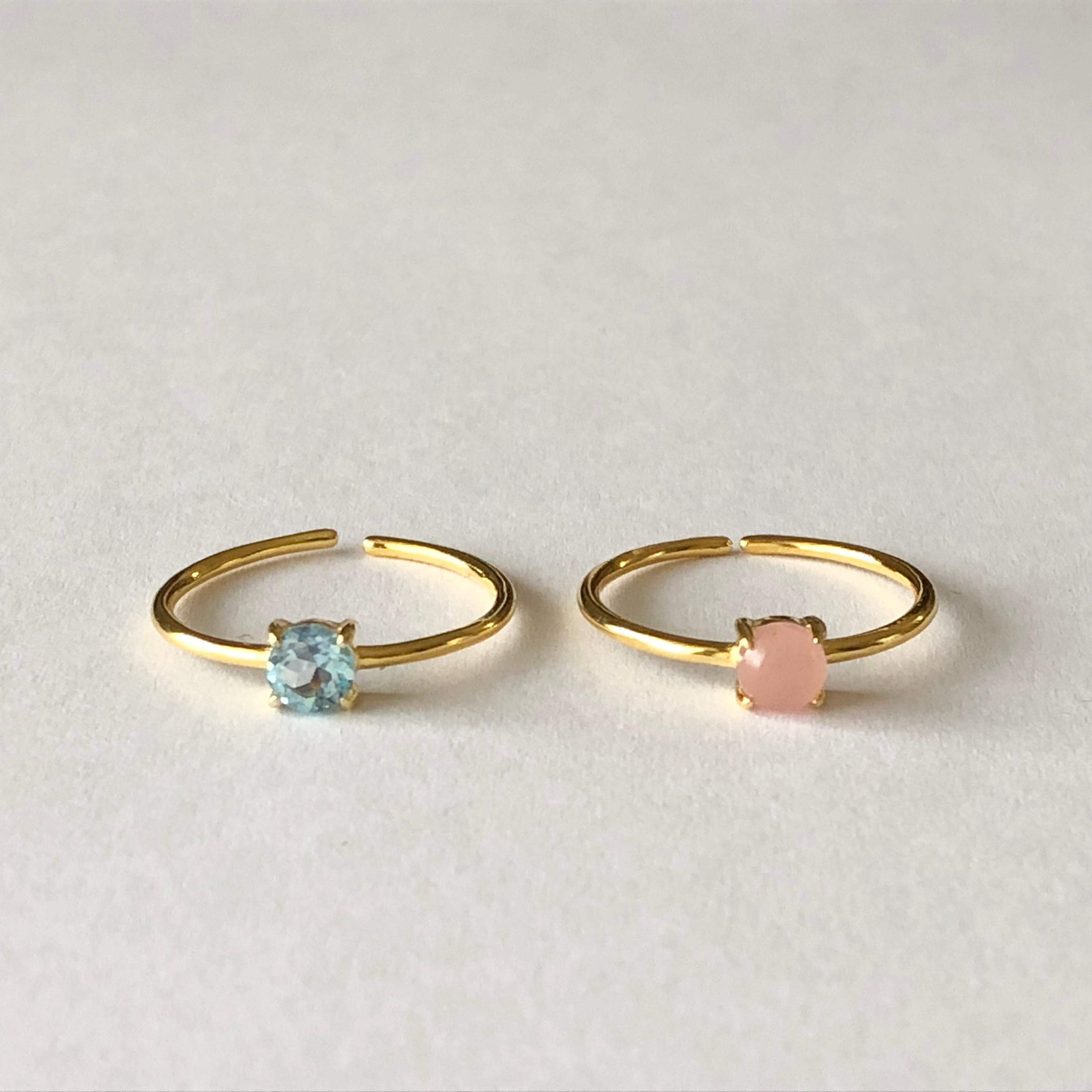 スイスブルートパーズとグァバクォーツのリングセットです。